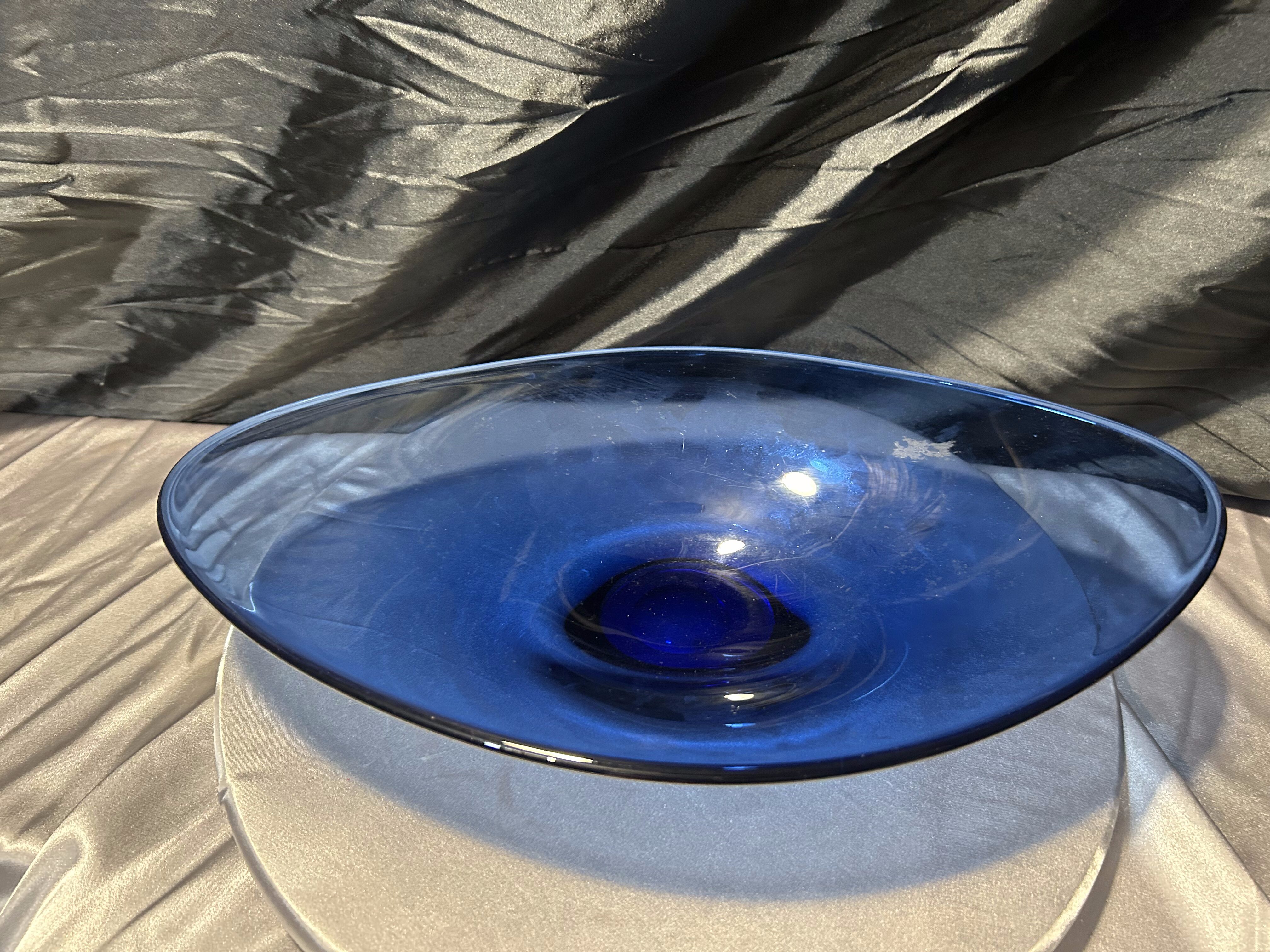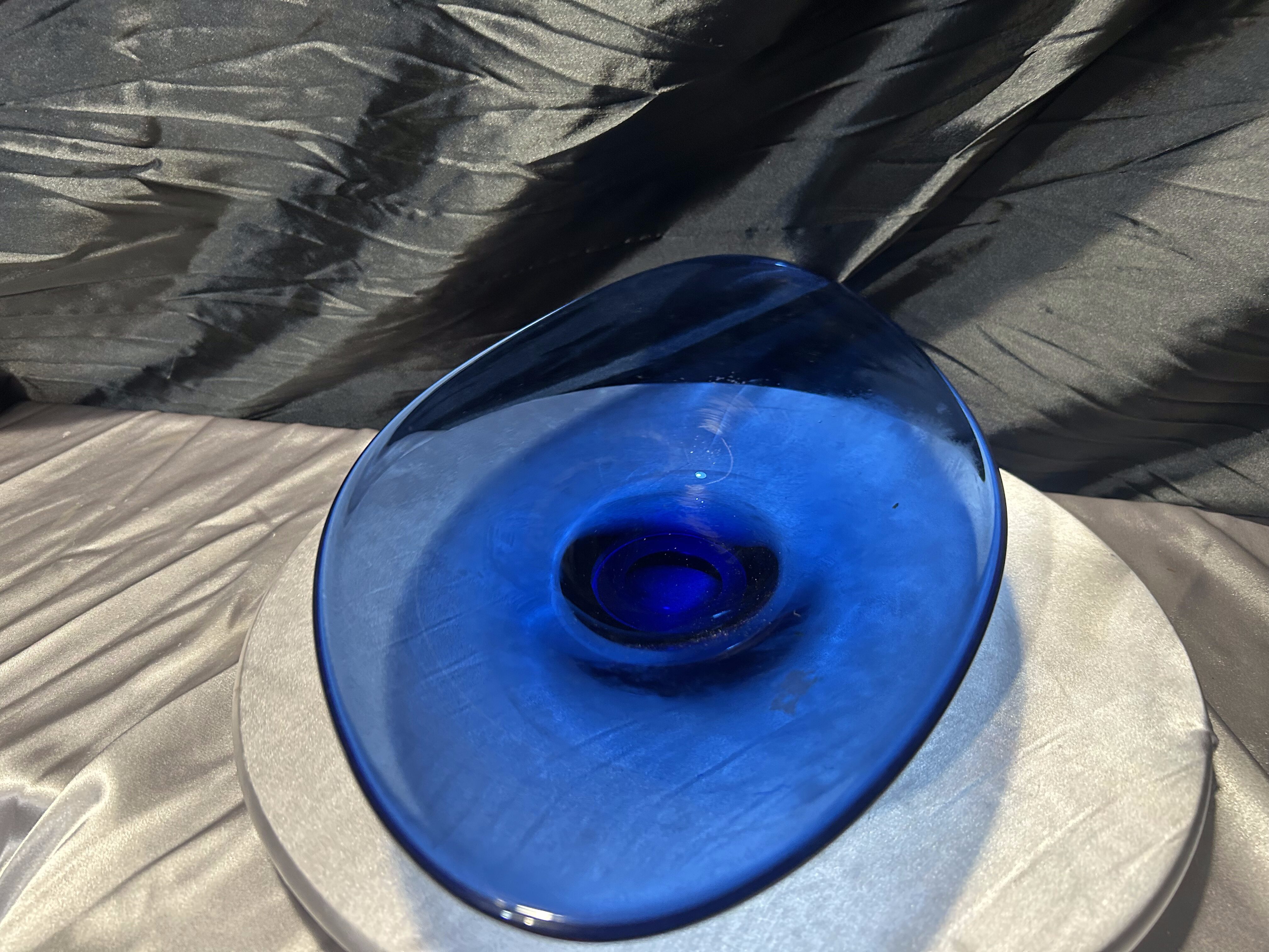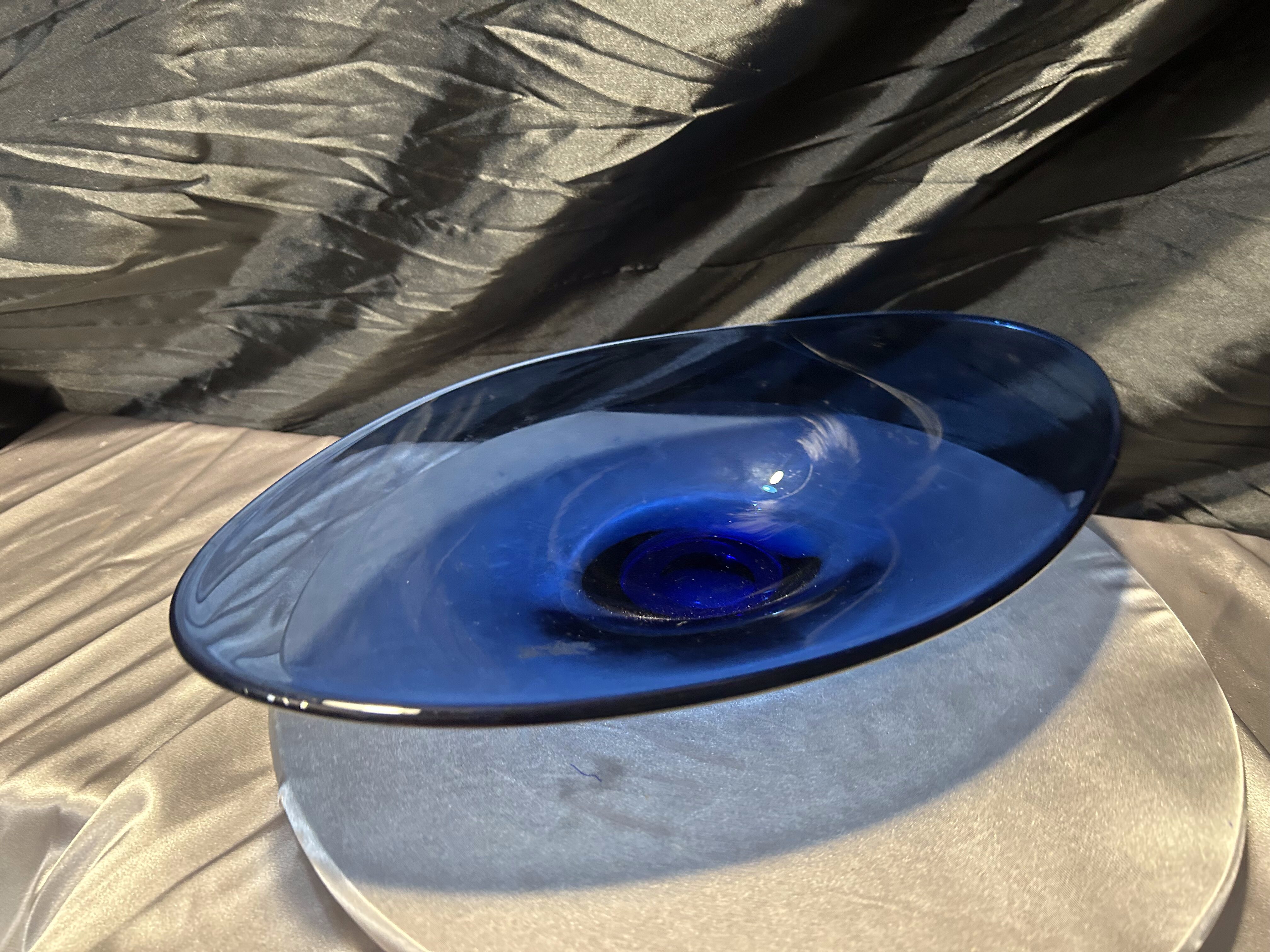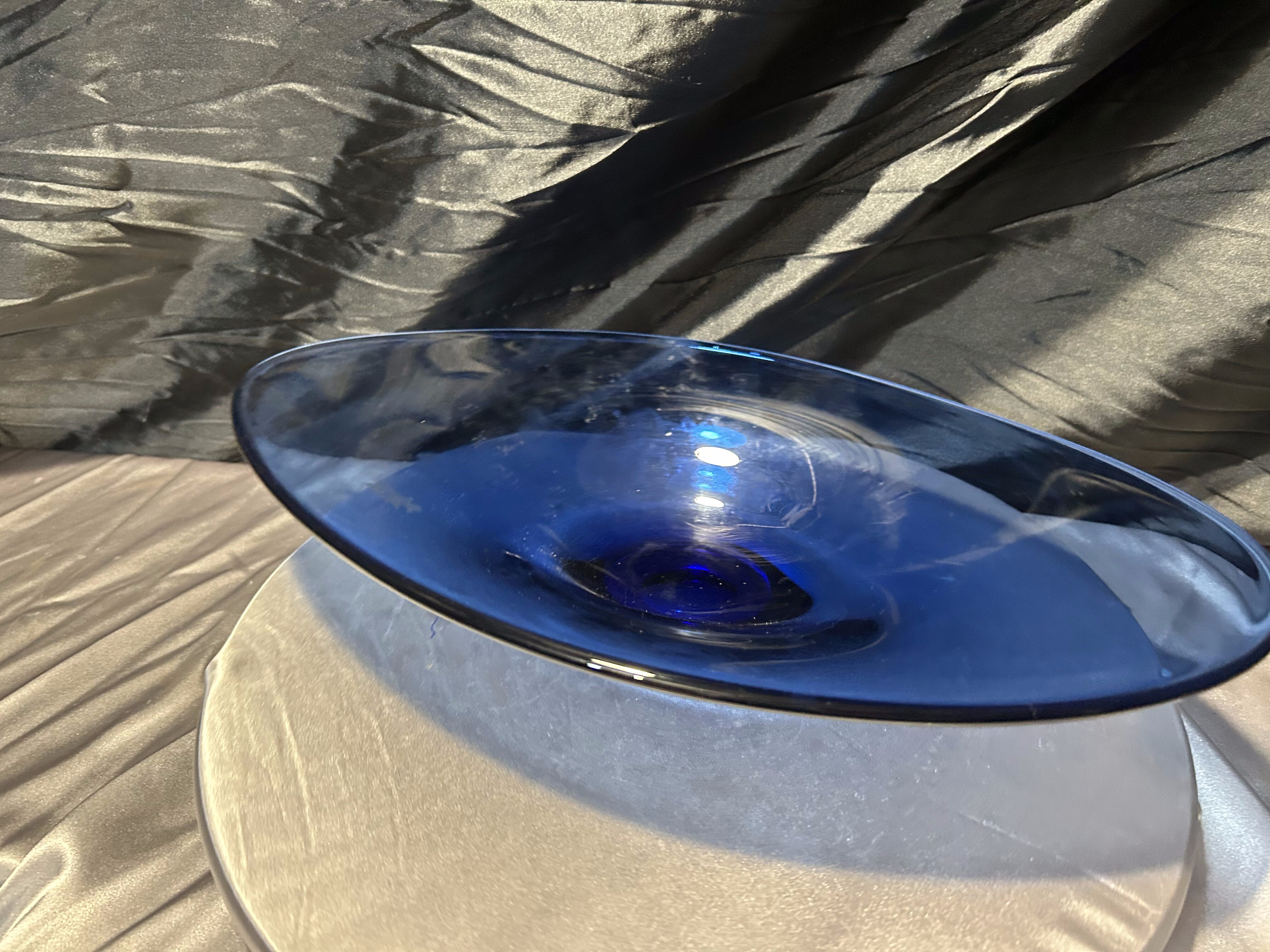 - Granatowa patera – szkło artystyczne – efektowna dekoracja w dużym formacie