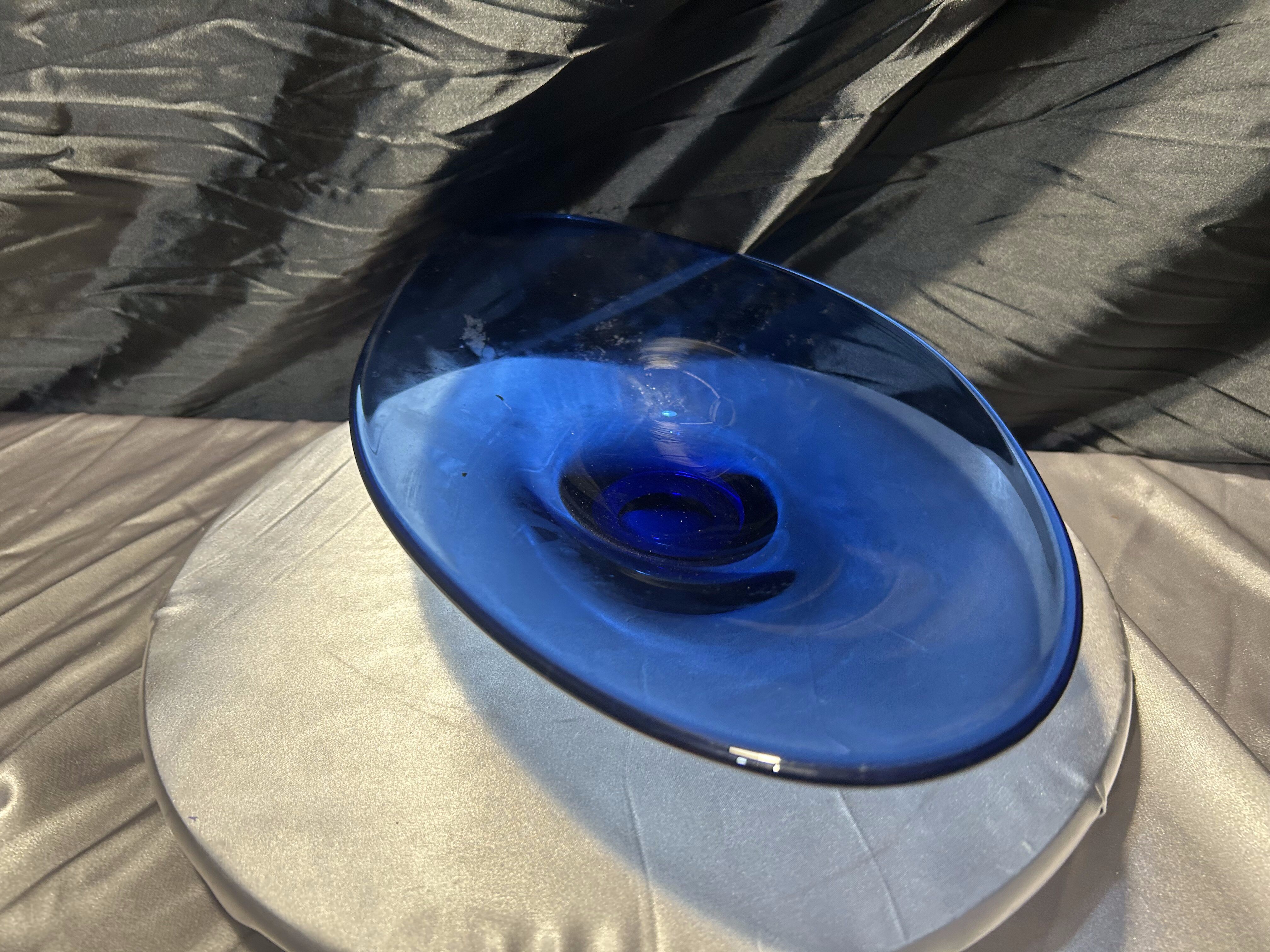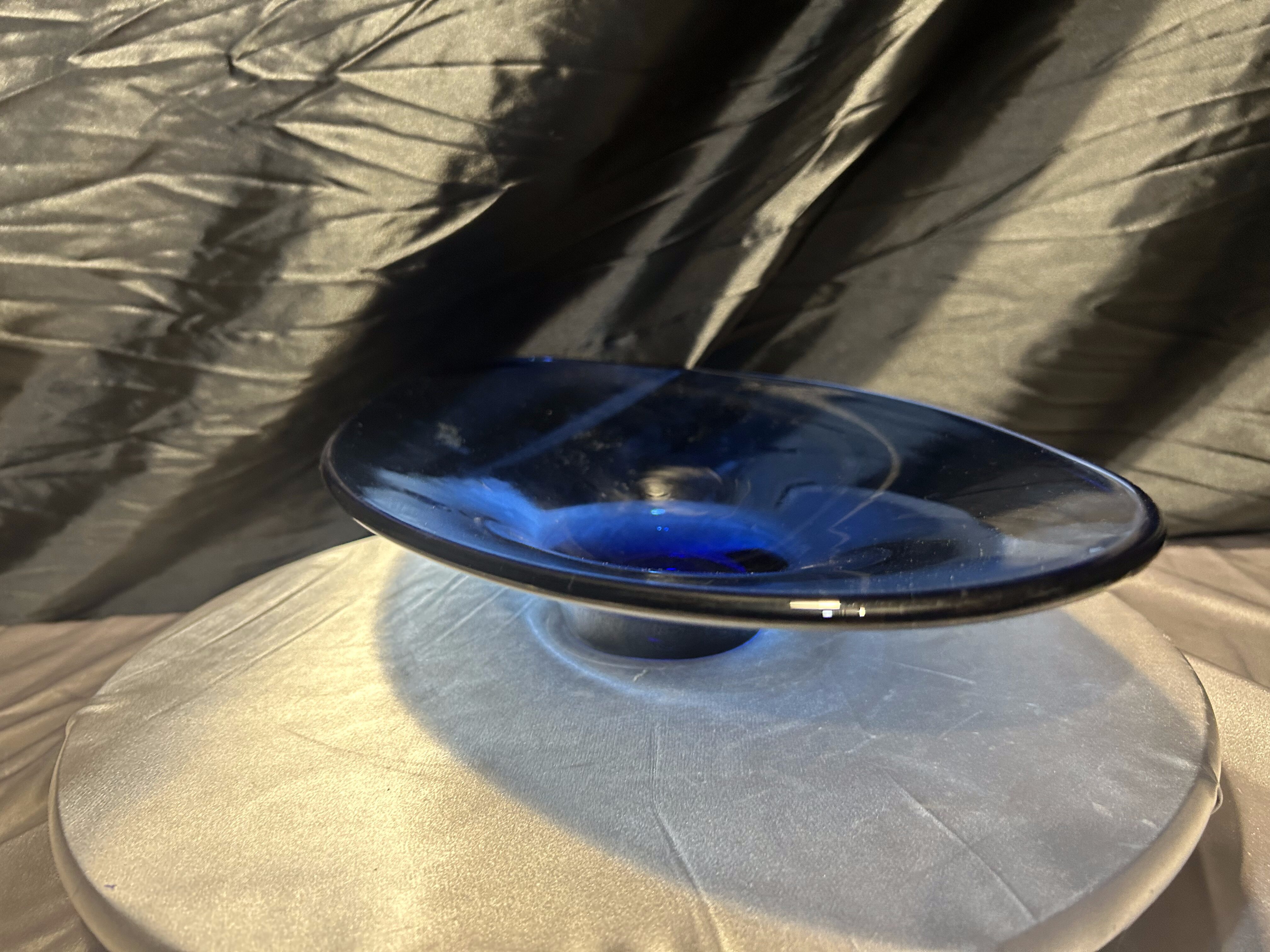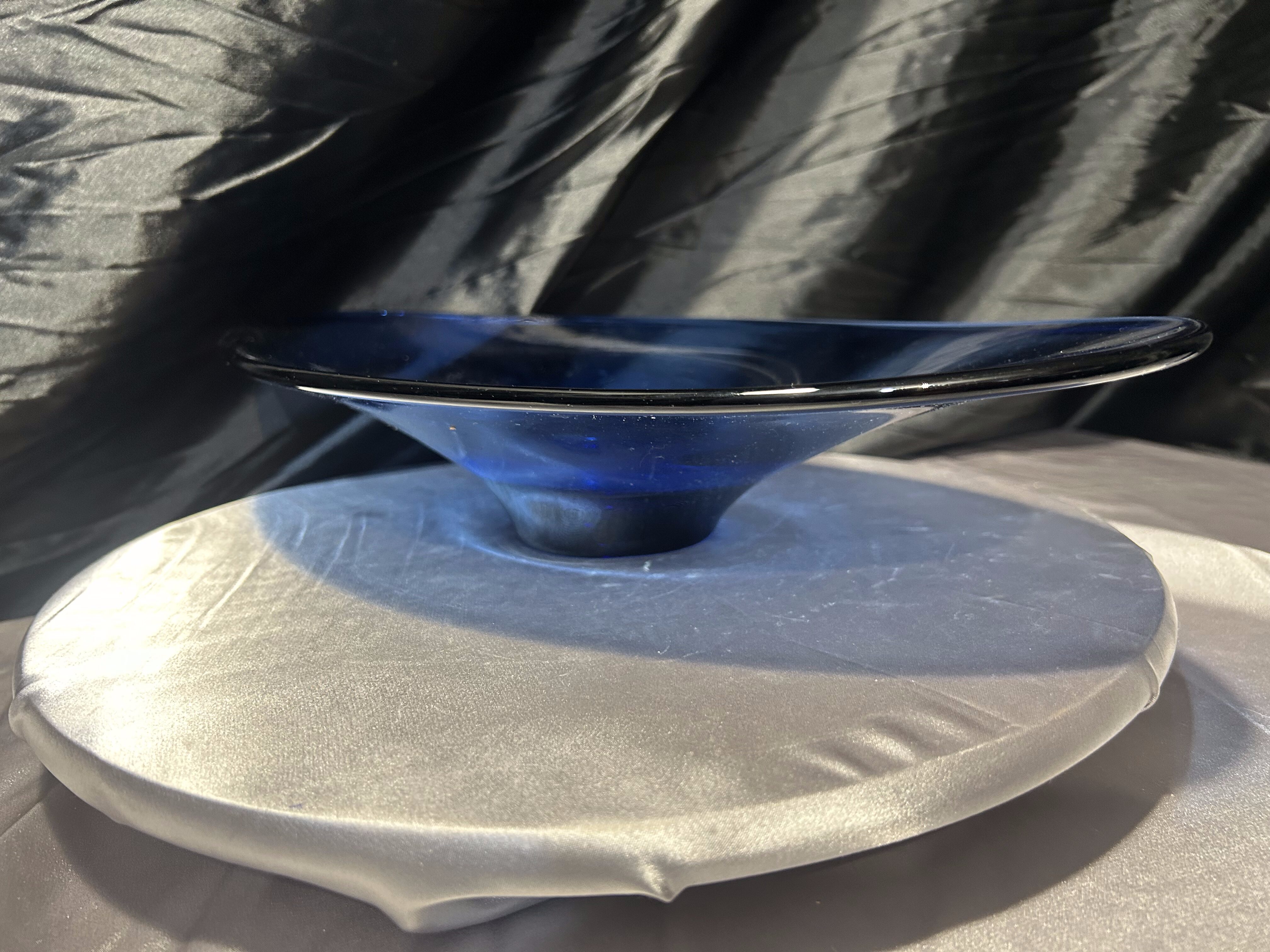 Granatowa patera – szkło artystyczne – efektowna dekoracja w dużym formacie