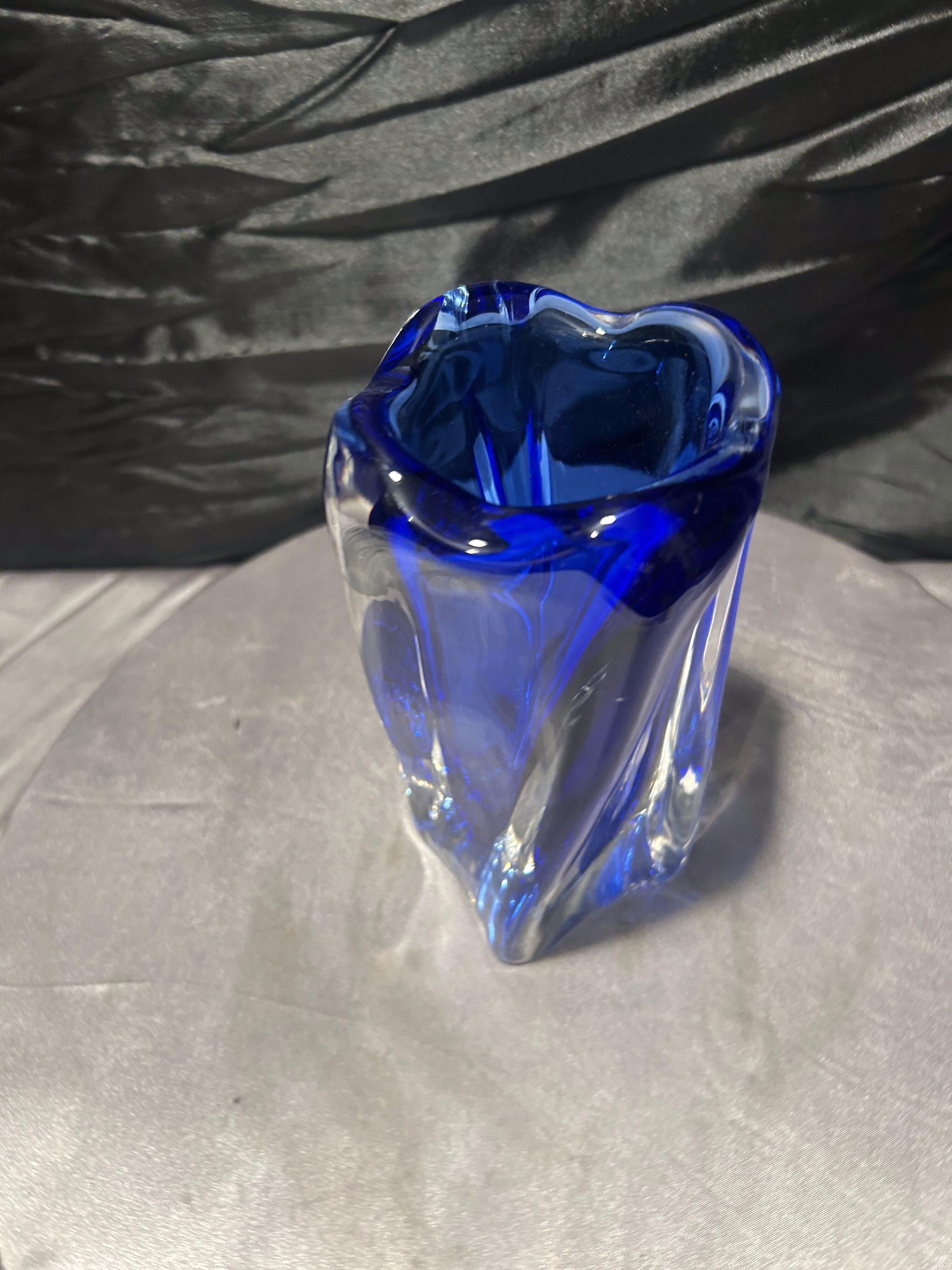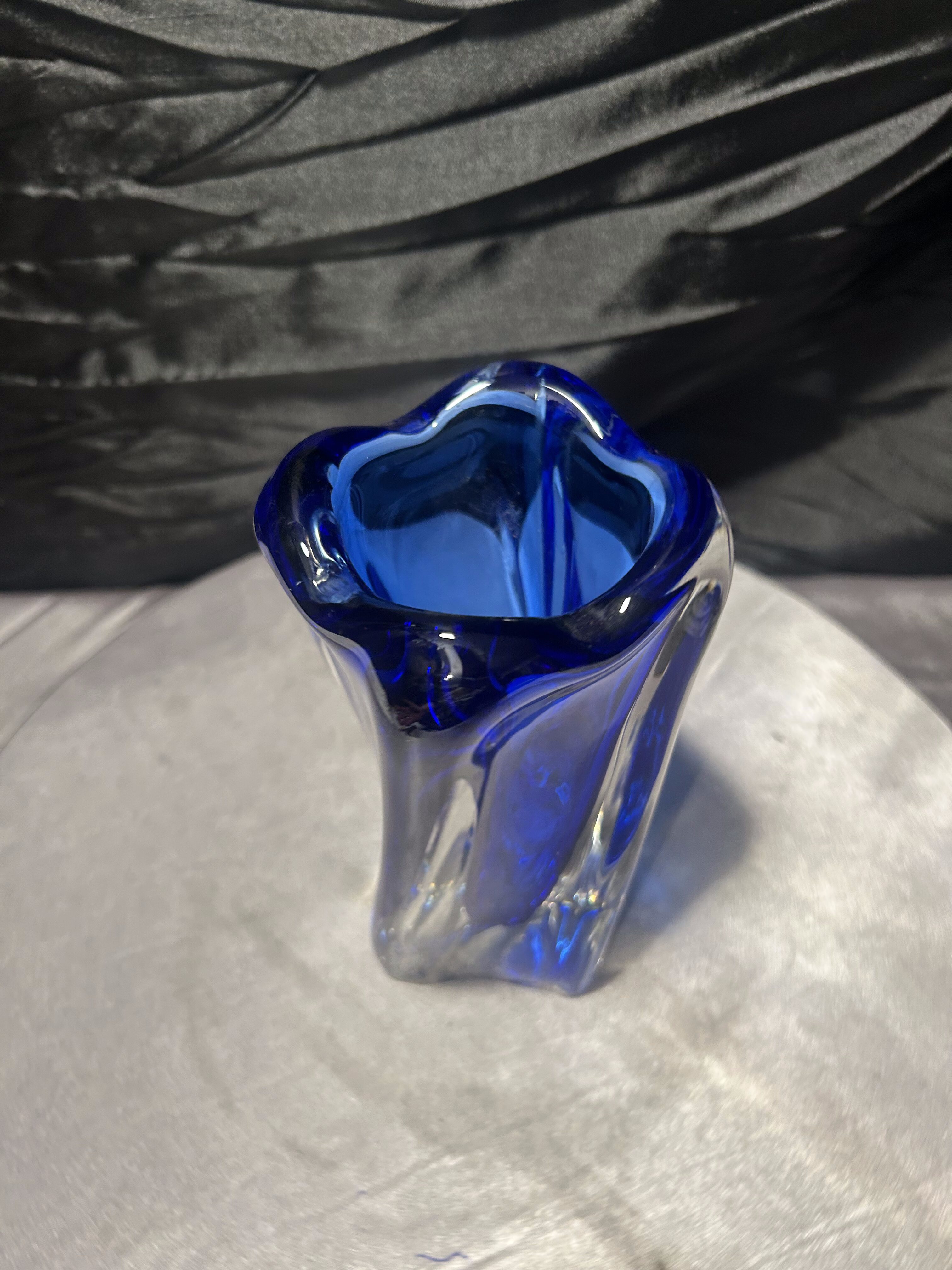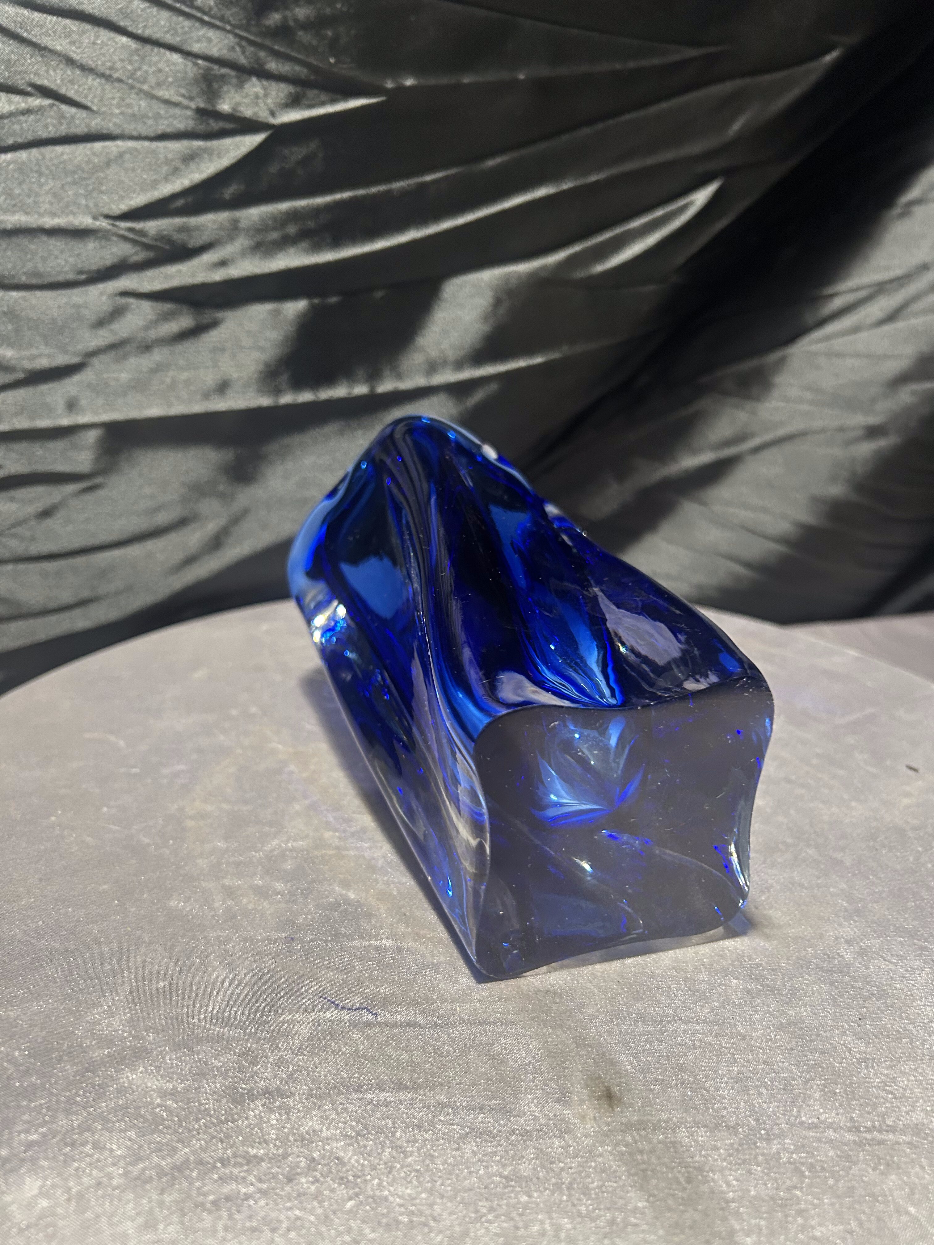 - Granatowy wazon artystyczny – zakręcony wzór – masywne szkło