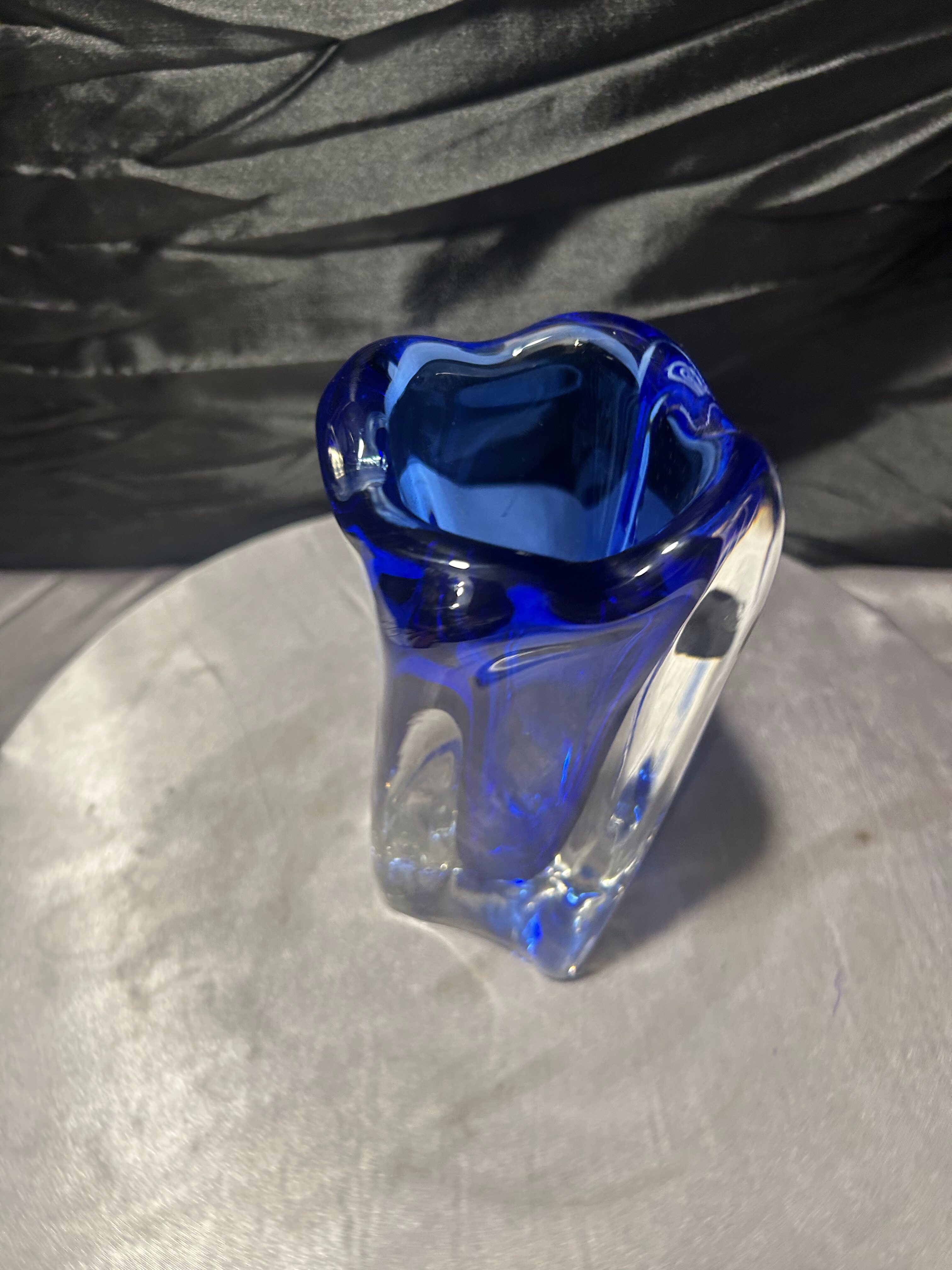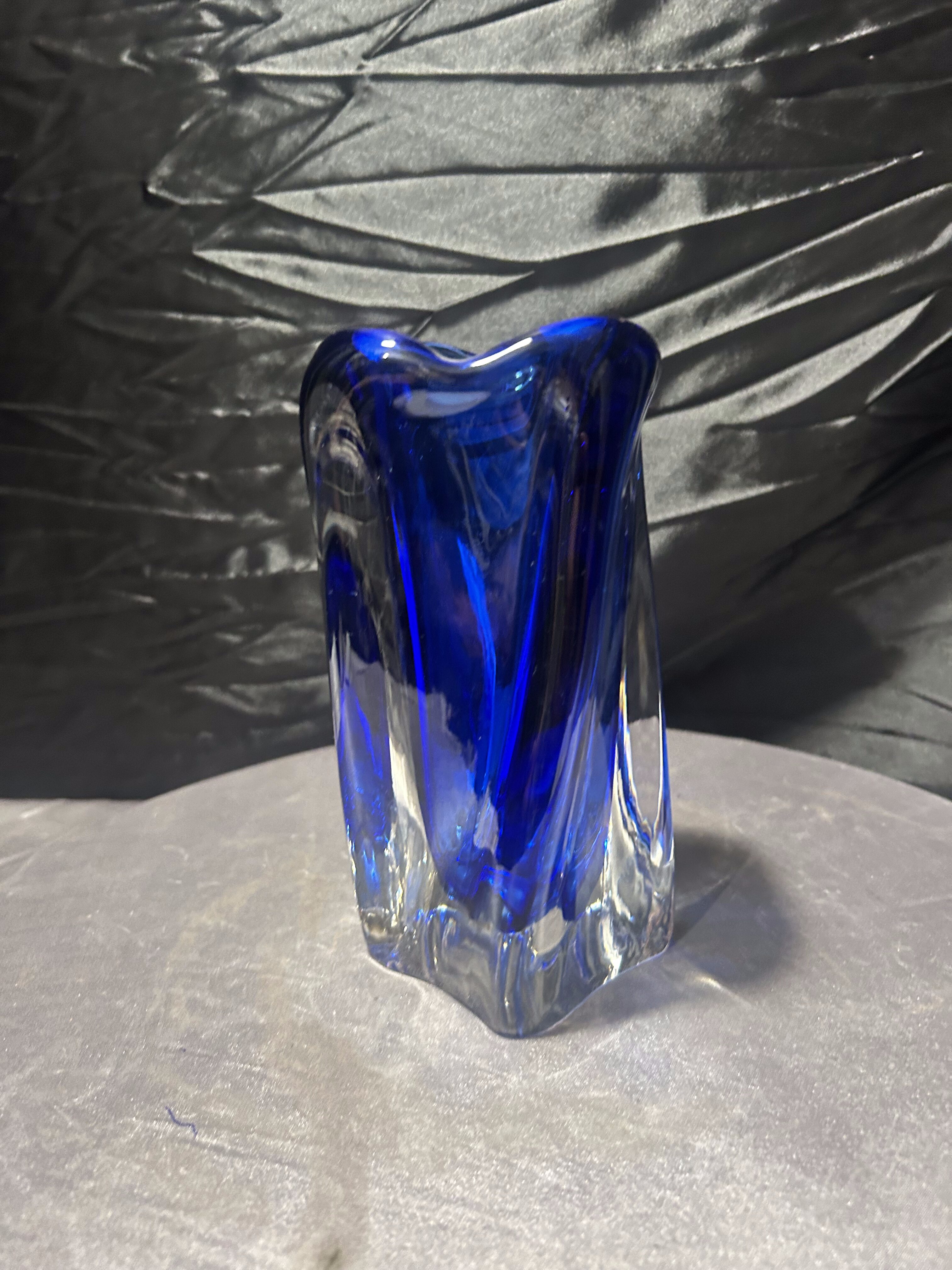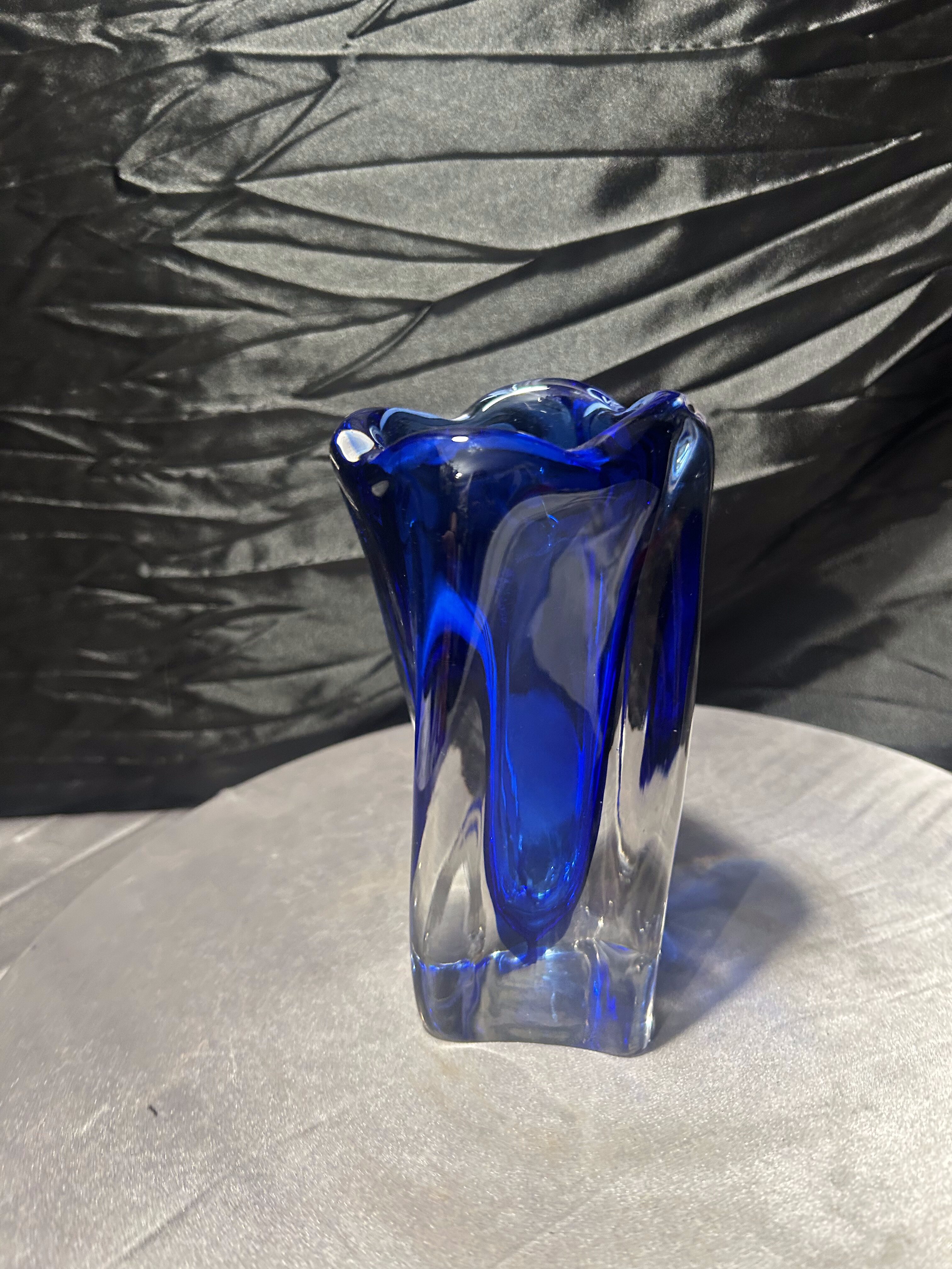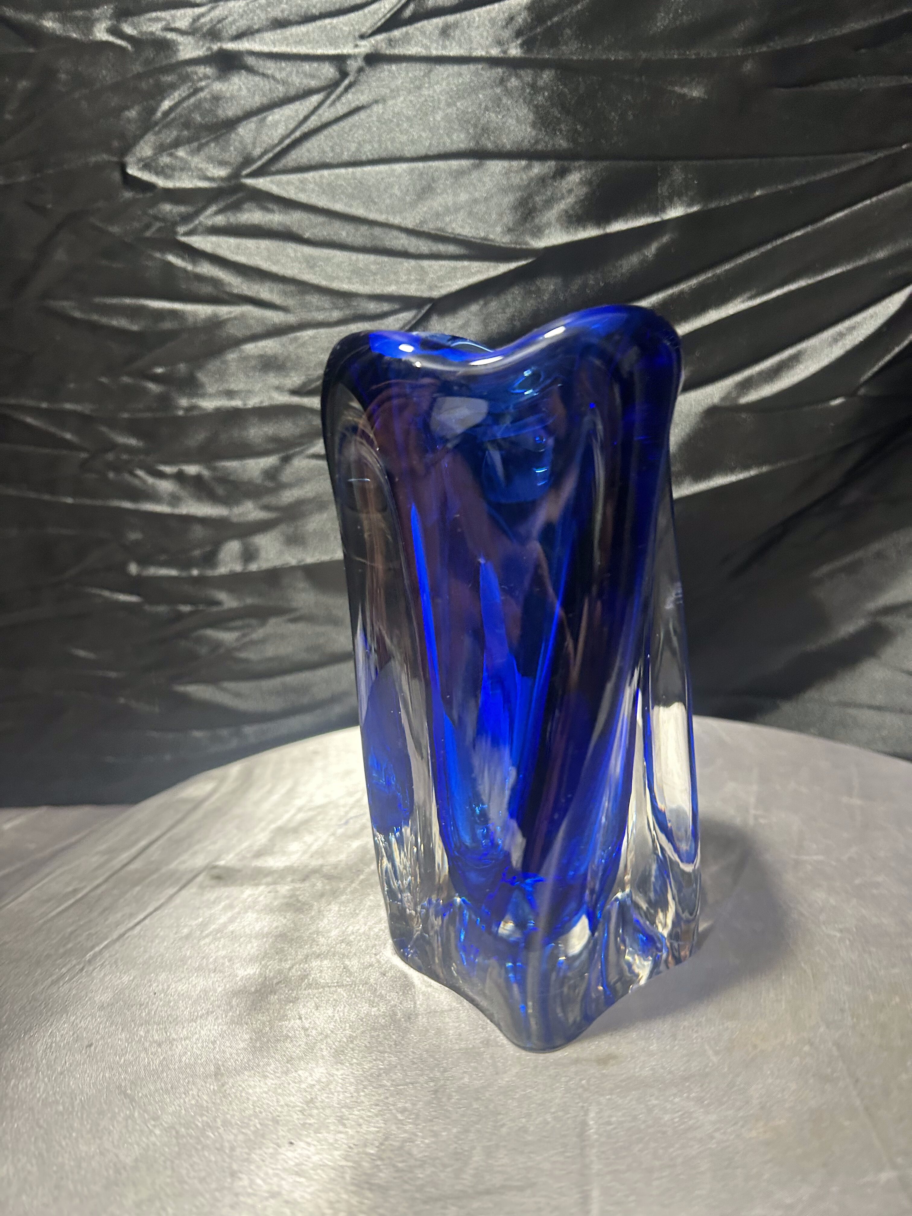 - Granatowy wazon artystyczny – zakręcony wzór – masywne szkło