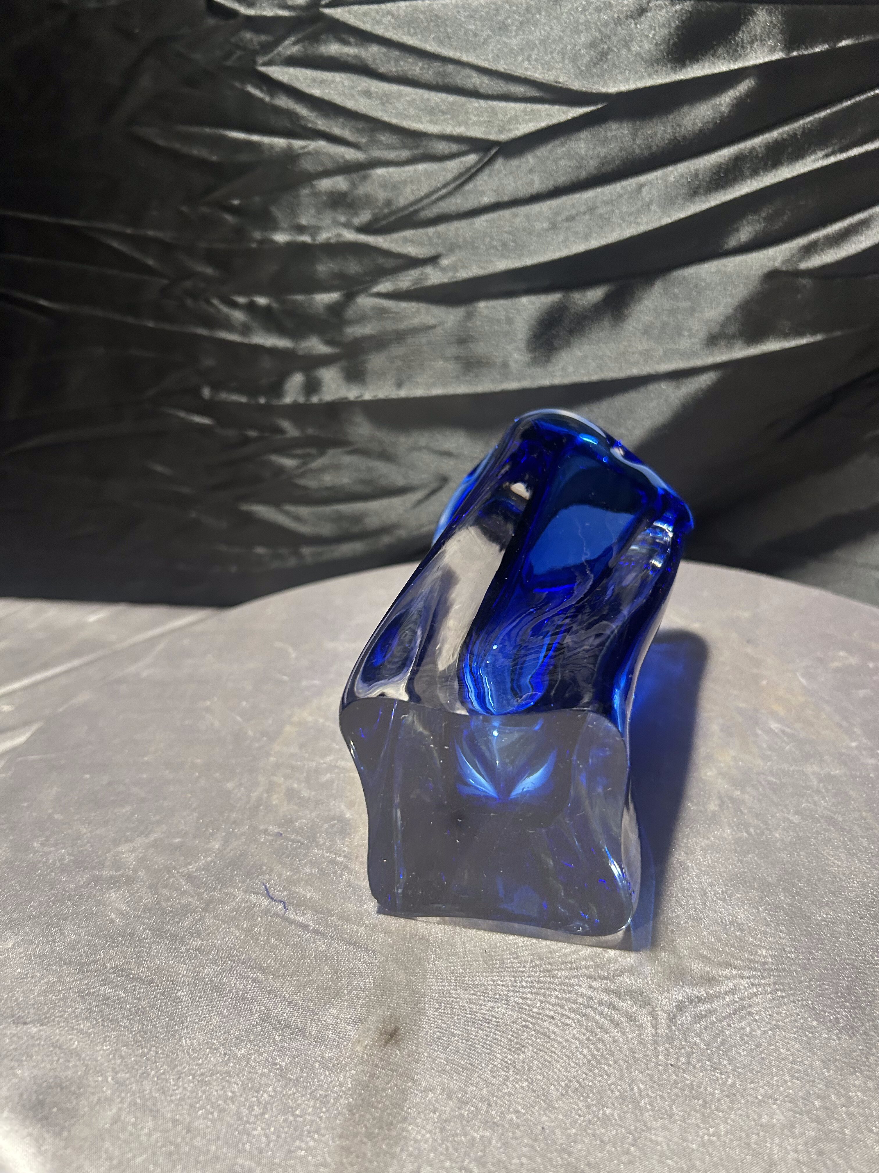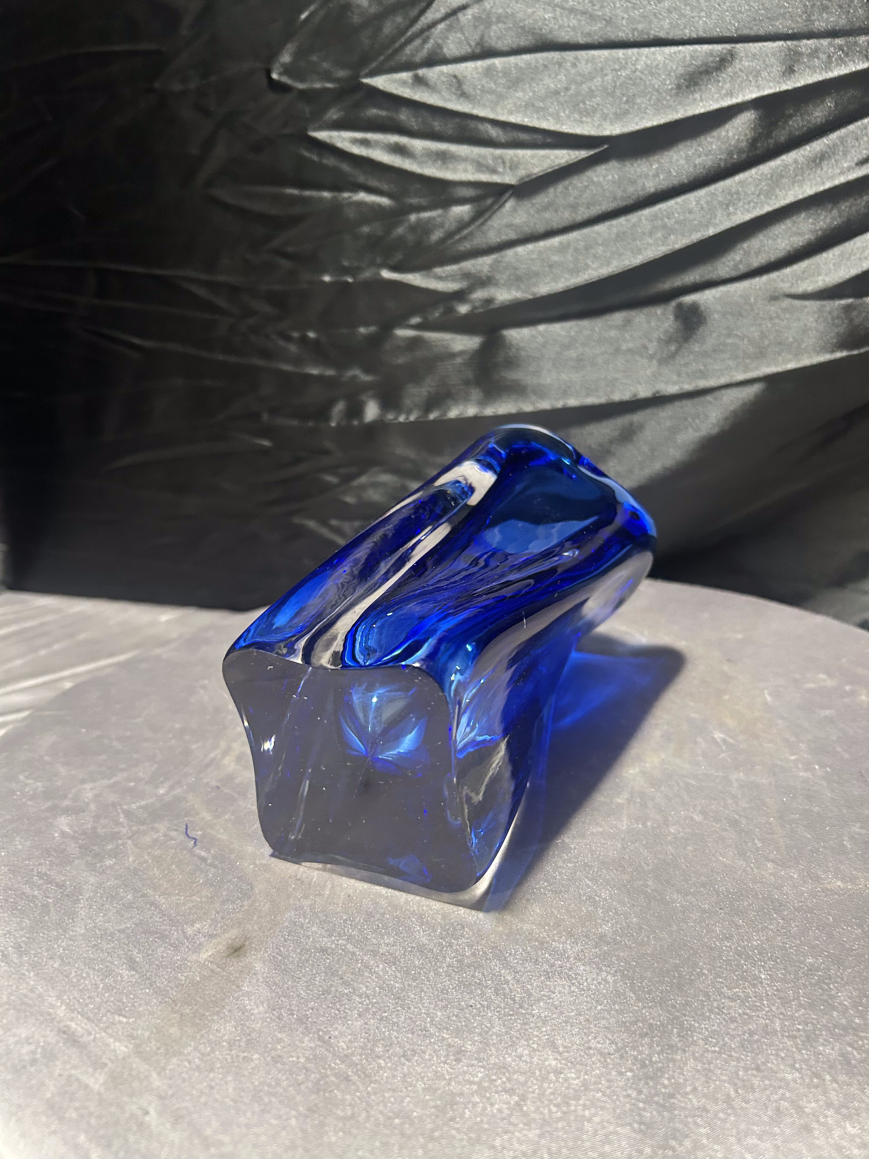 Granatowy wazon artystyczny – zakręcony wzór – masywne szkło