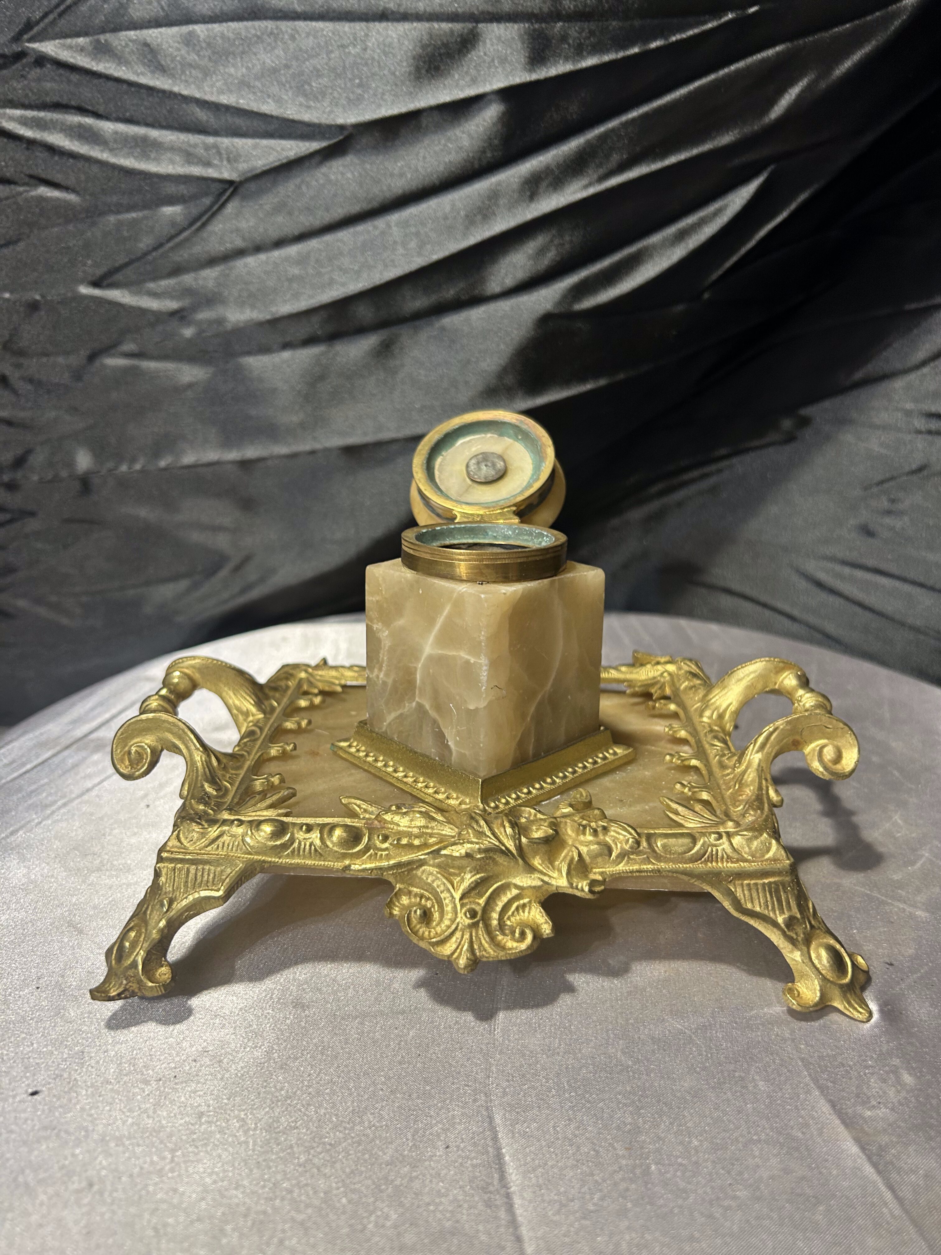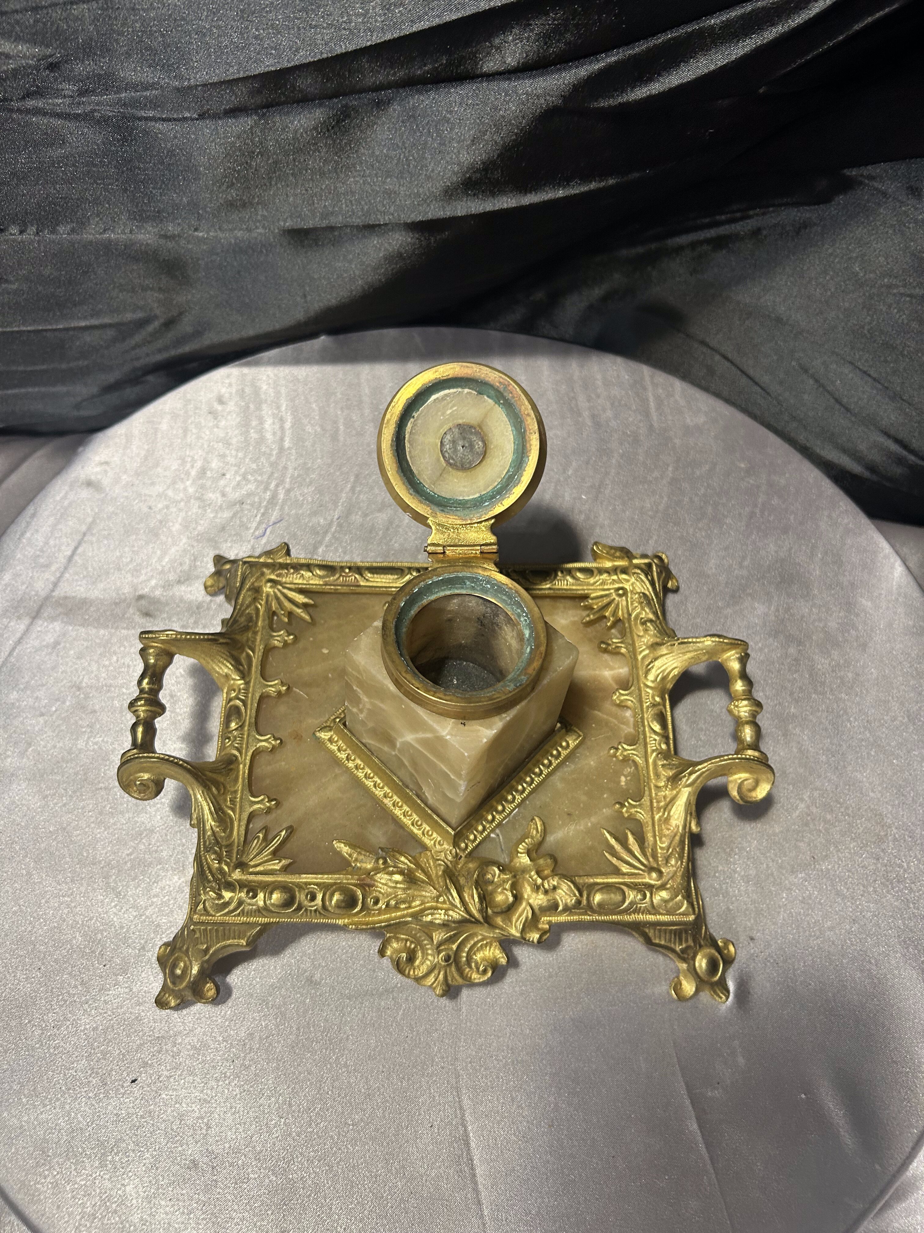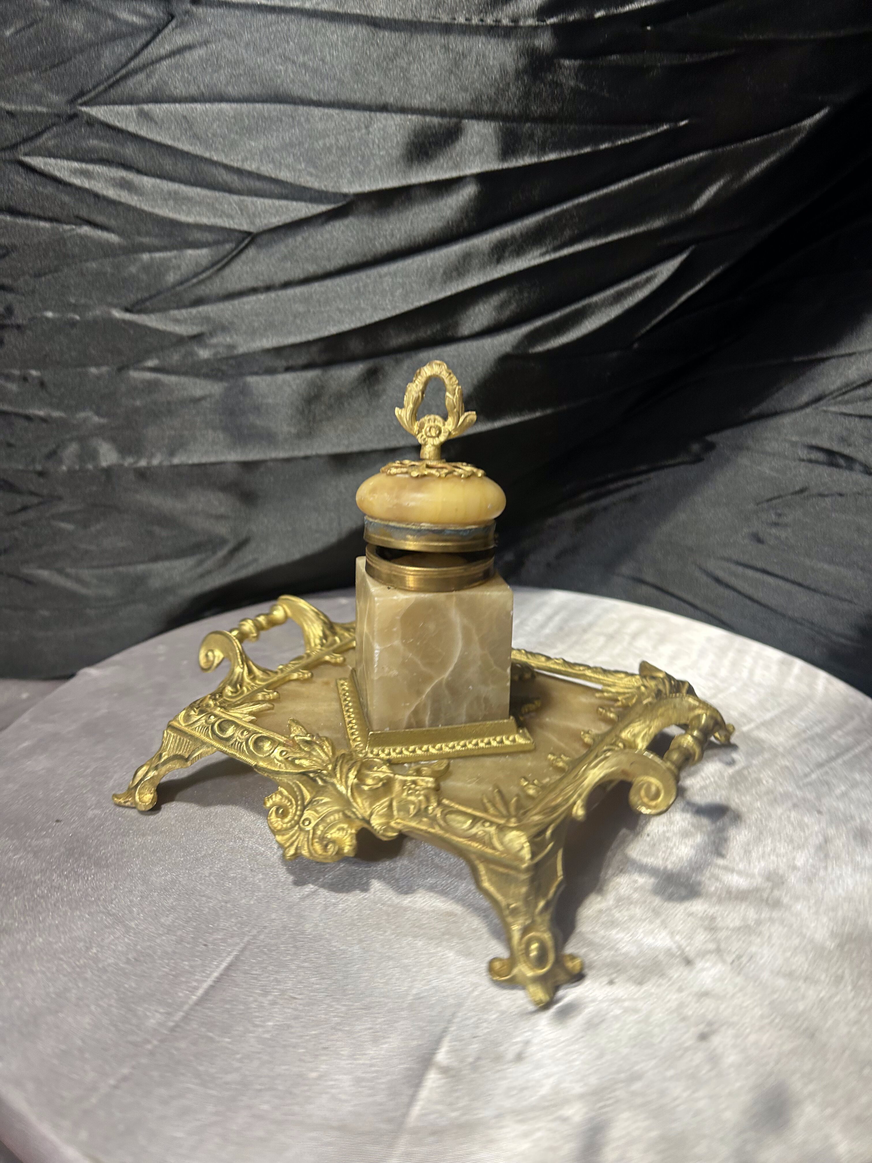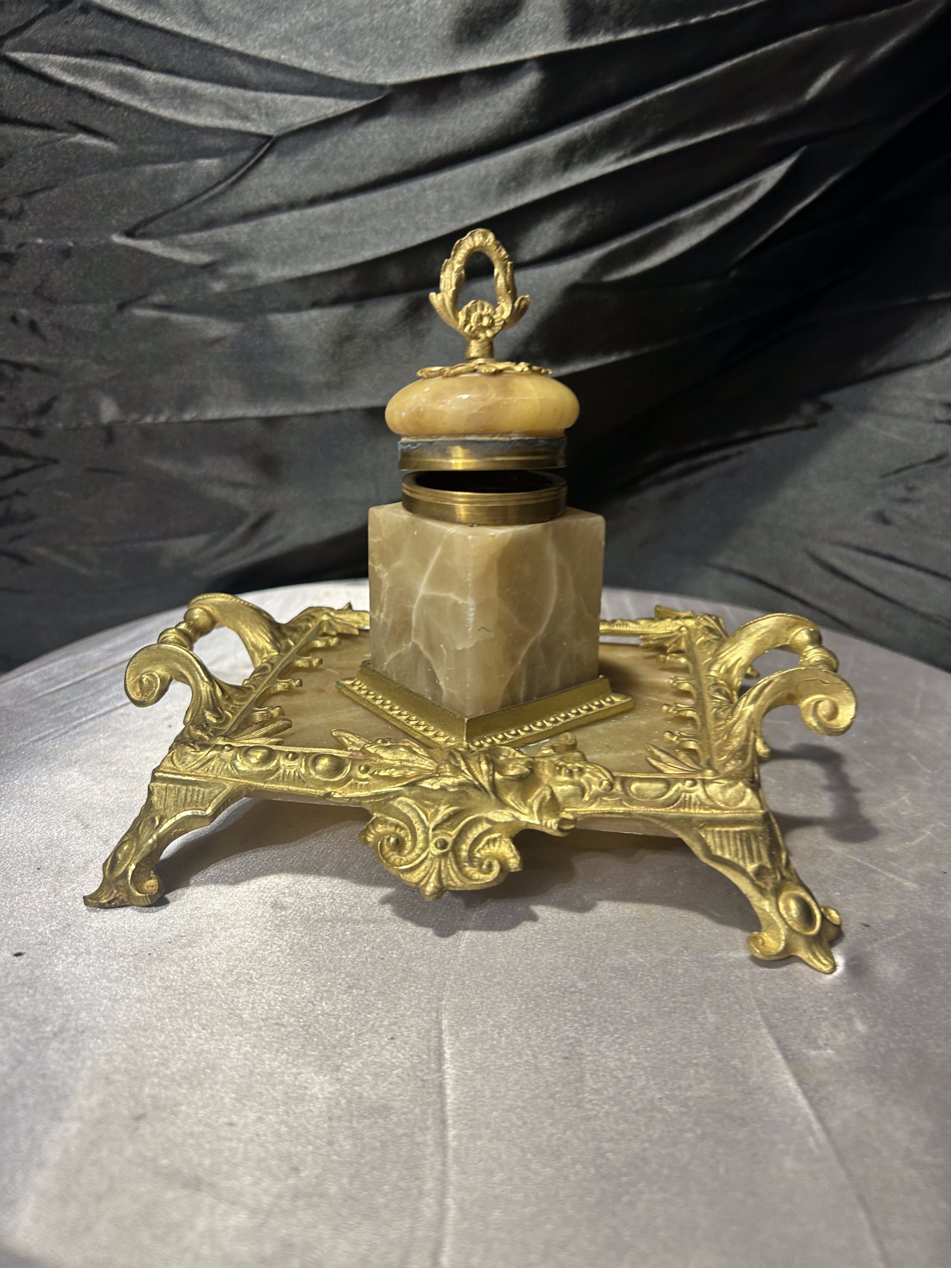 Kałamarz z mosiądzu i onyksu – bogato zdobiony – styl klasyczny