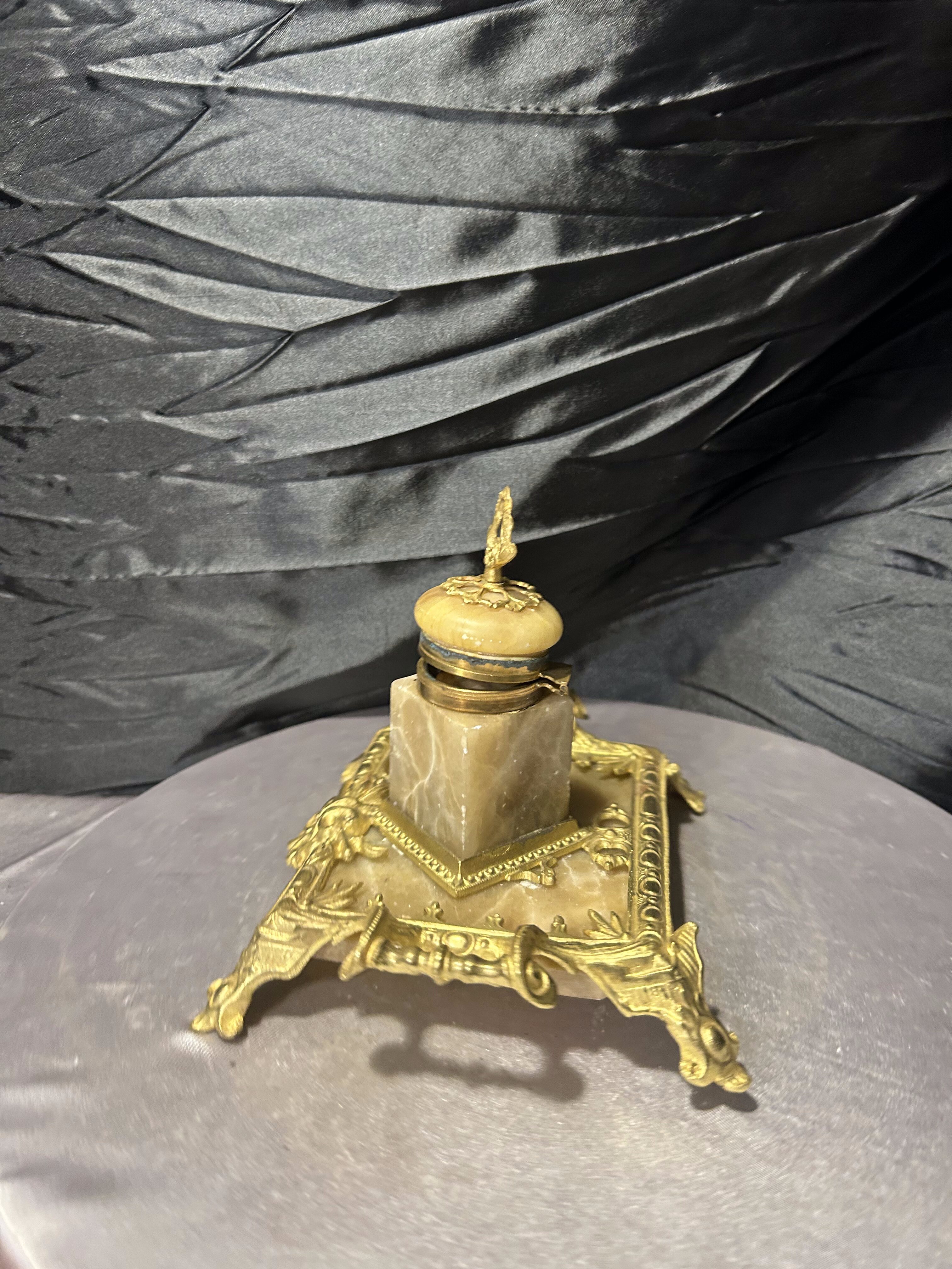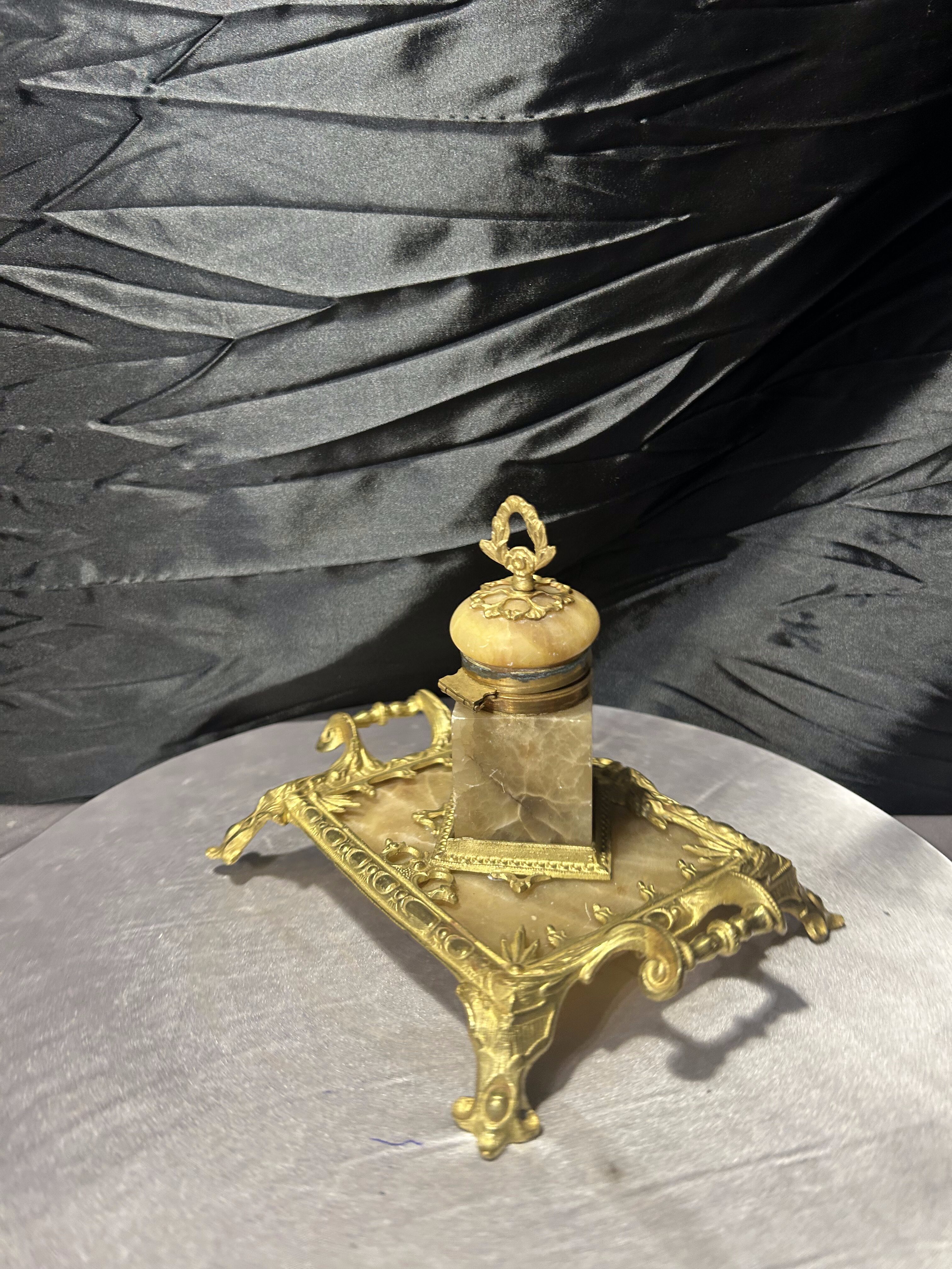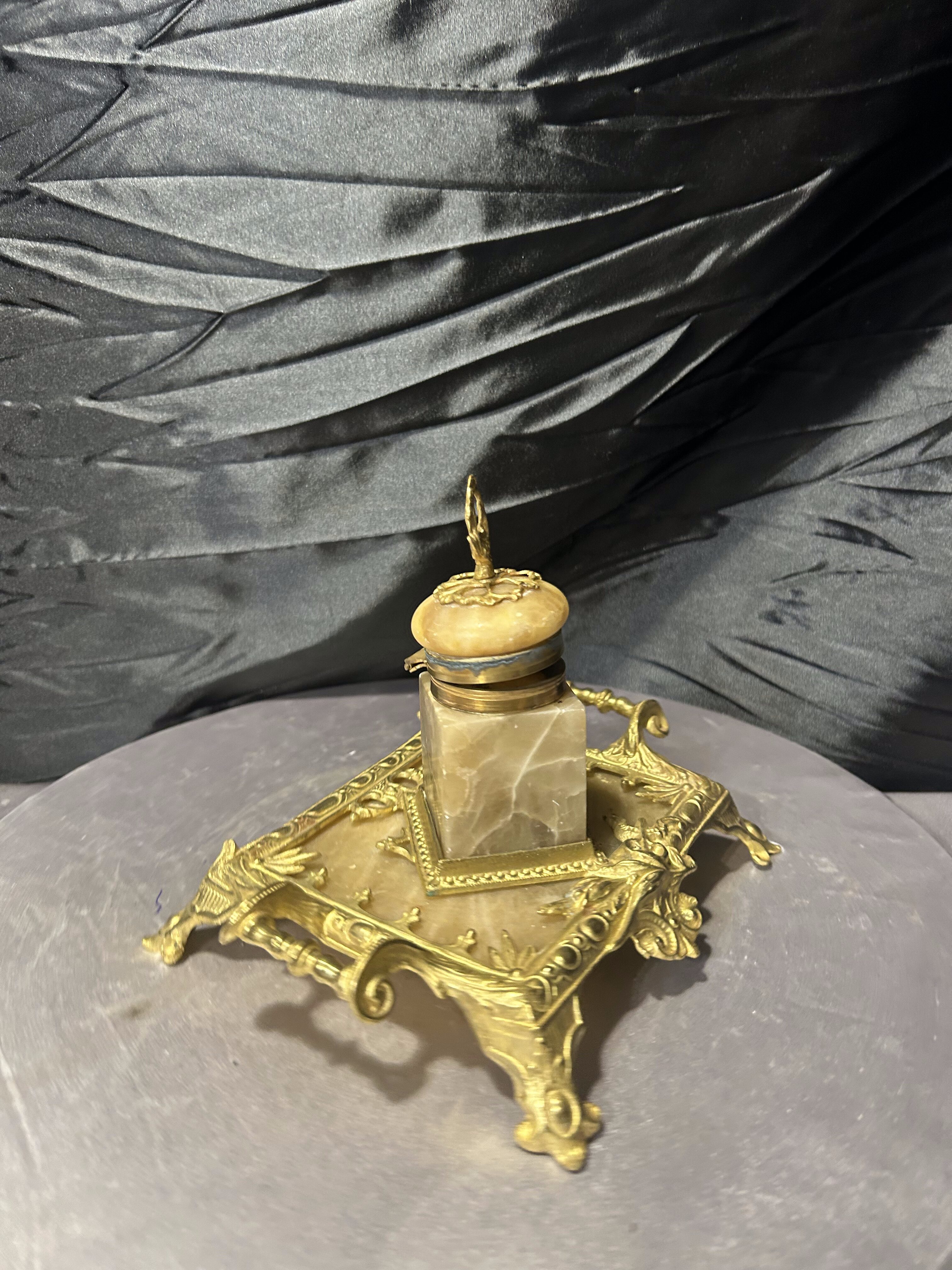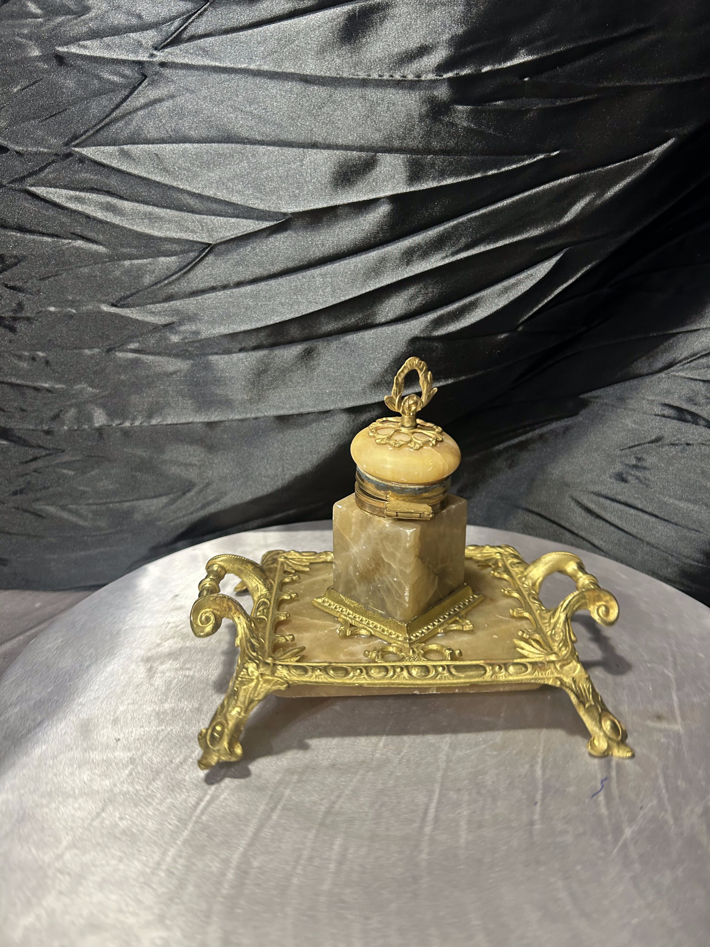 Kałamarz z mosiądzu i onyksu – bogato zdobiony – styl klasyczny