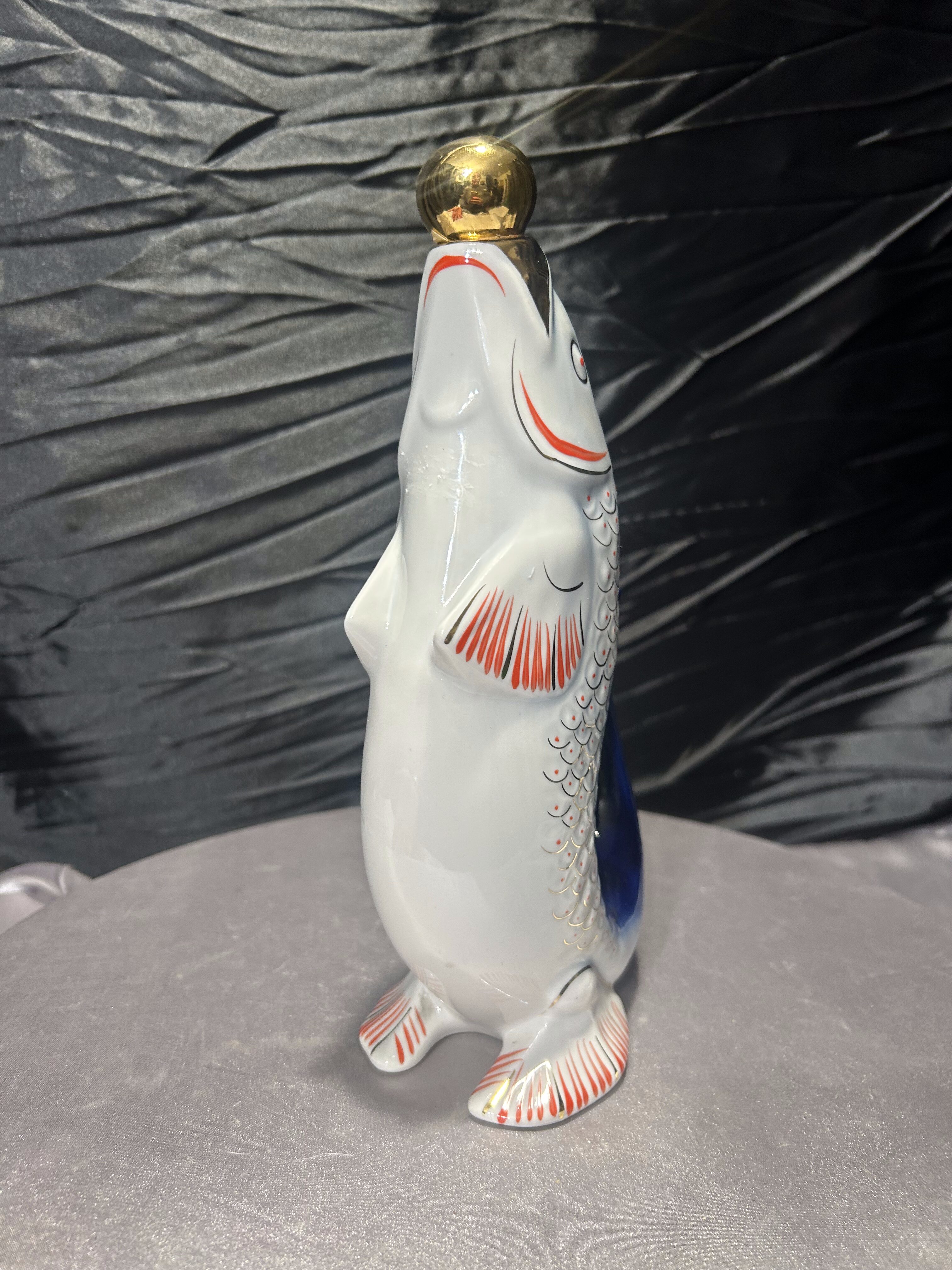 Karafka porcelanowa „Rybka” – ZSRR, Riga – złocony korek – lata 50.–70. XX w.