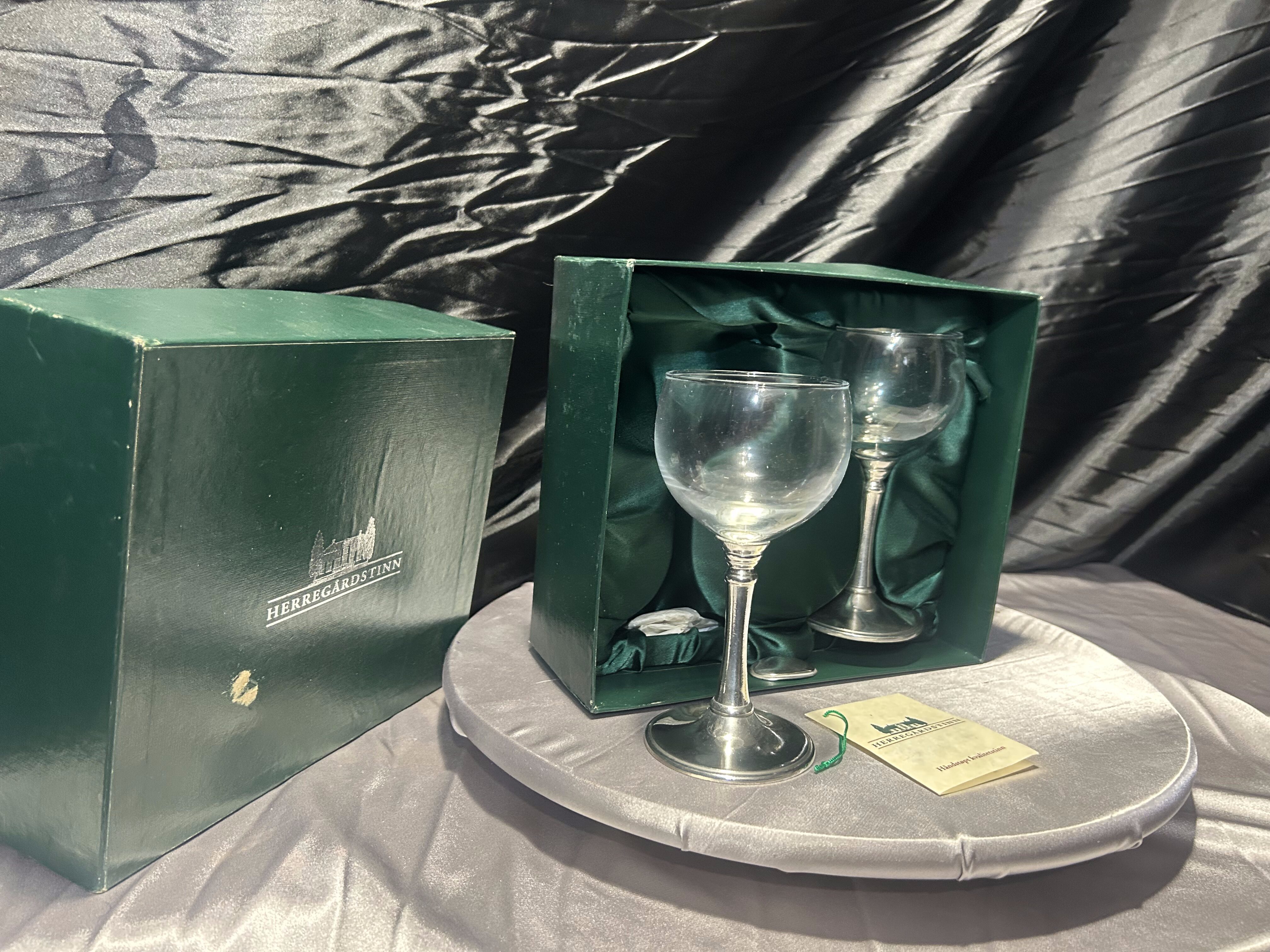 – Komplet dwóch markowych kieliszków Herregårdstinn