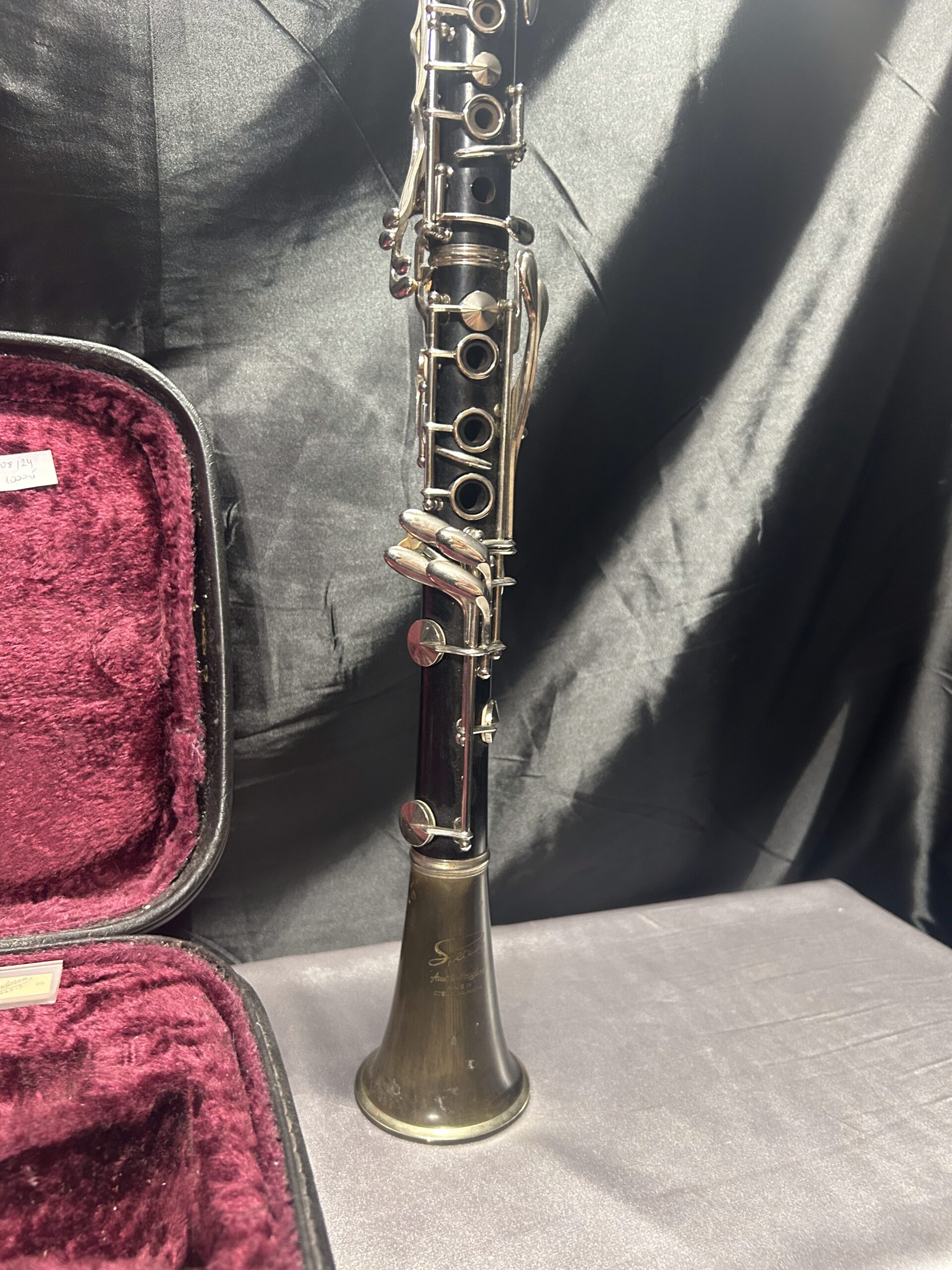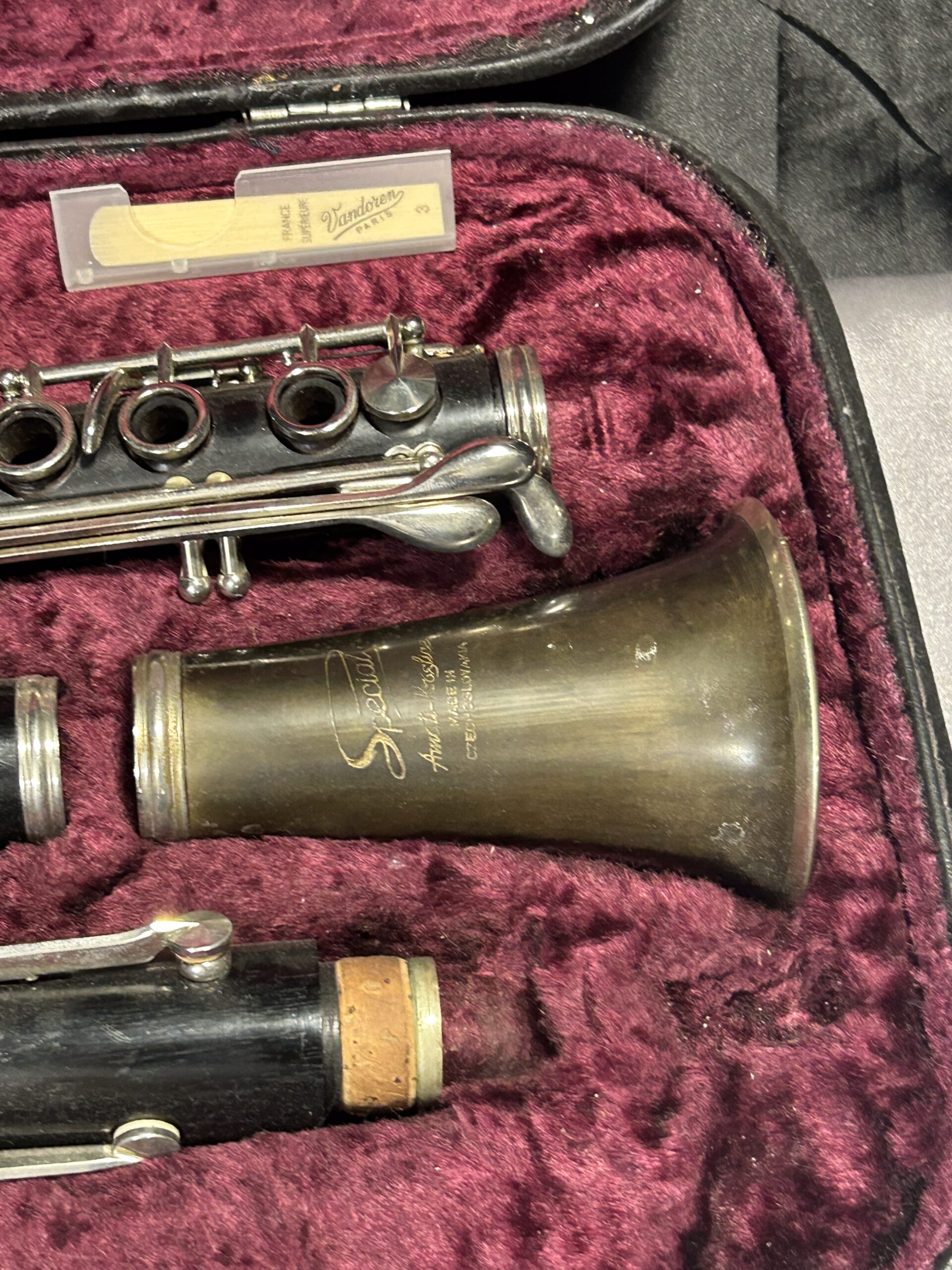 Oferujemy wyjątkowy klarnet B w etui od renomowanej firmy Special Amot-Kraslice, wyprodukowany w Czechosłowacji. Ten instrument został wykonany z wysokiej jakości drewna, co zapewnia doskonałą jakość dźwięku i trwałość.