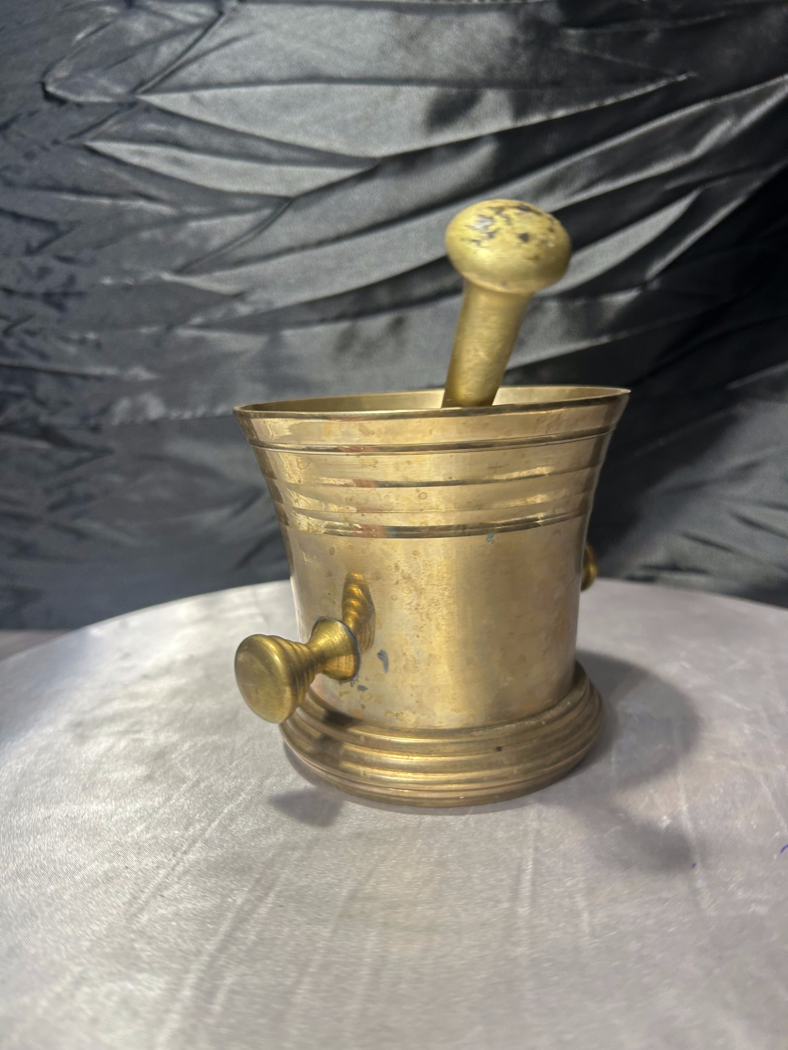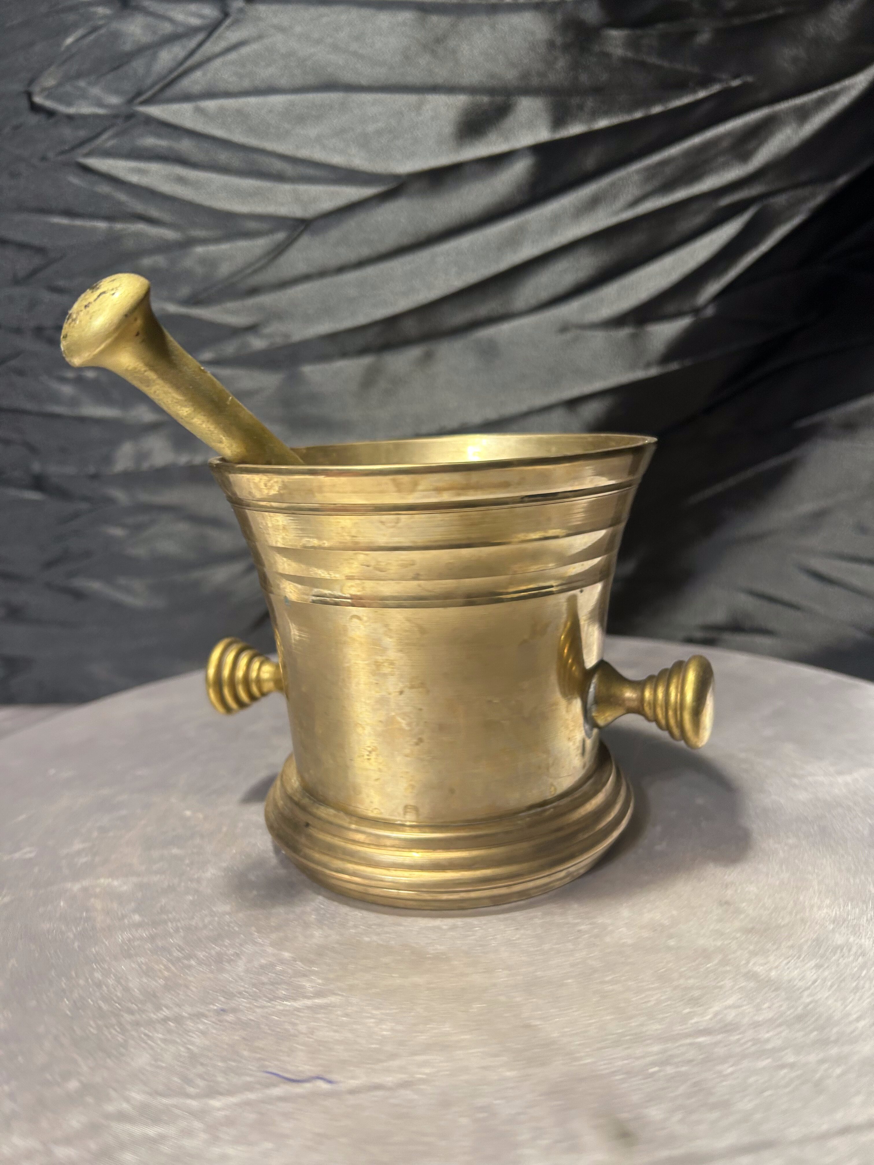 Klasyczny moździerz mosiężny z tłuczkiem – ciężki odlew – 1 kg