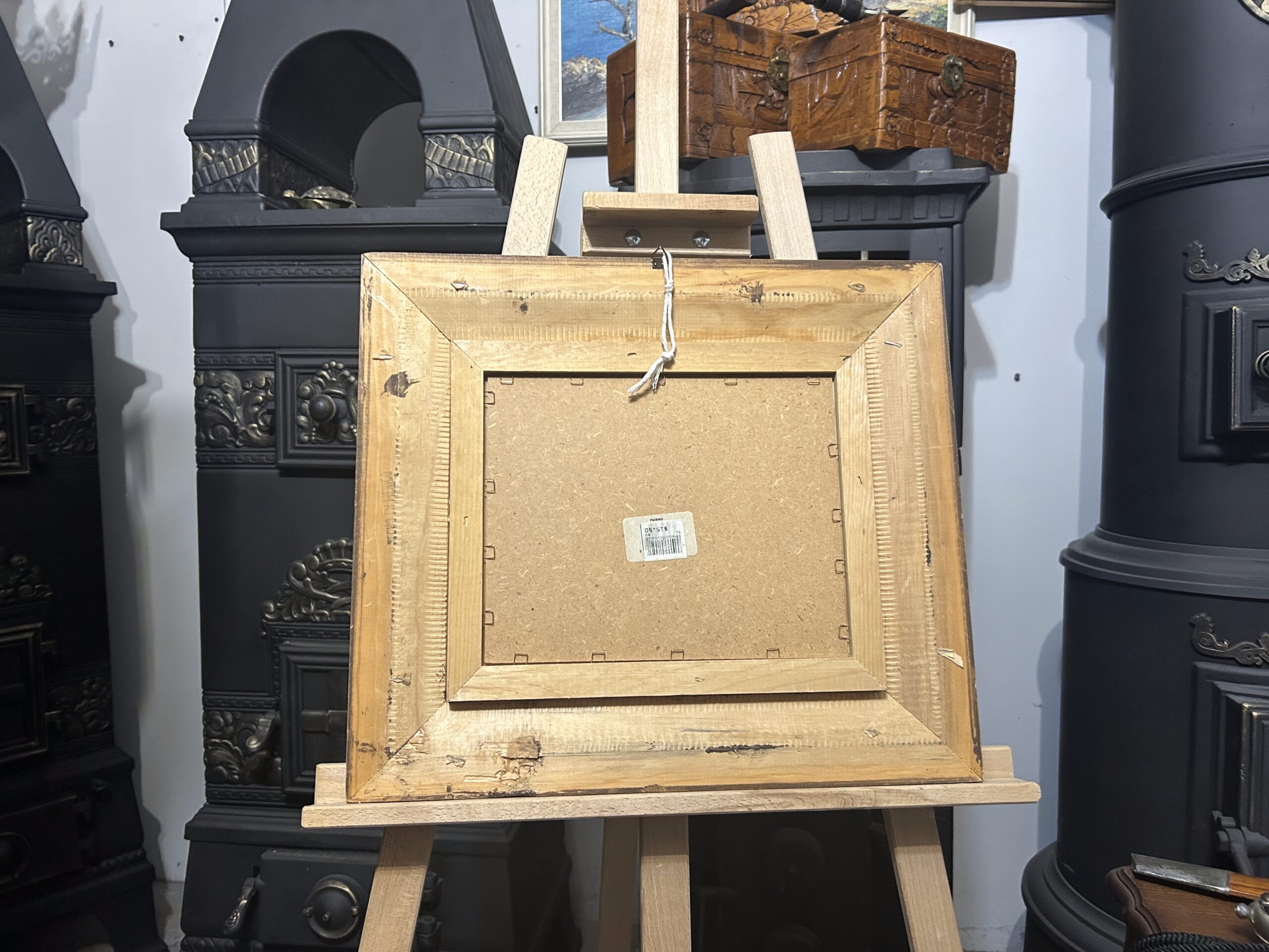 - Rama: drewniana, zdobiona, brązowa,