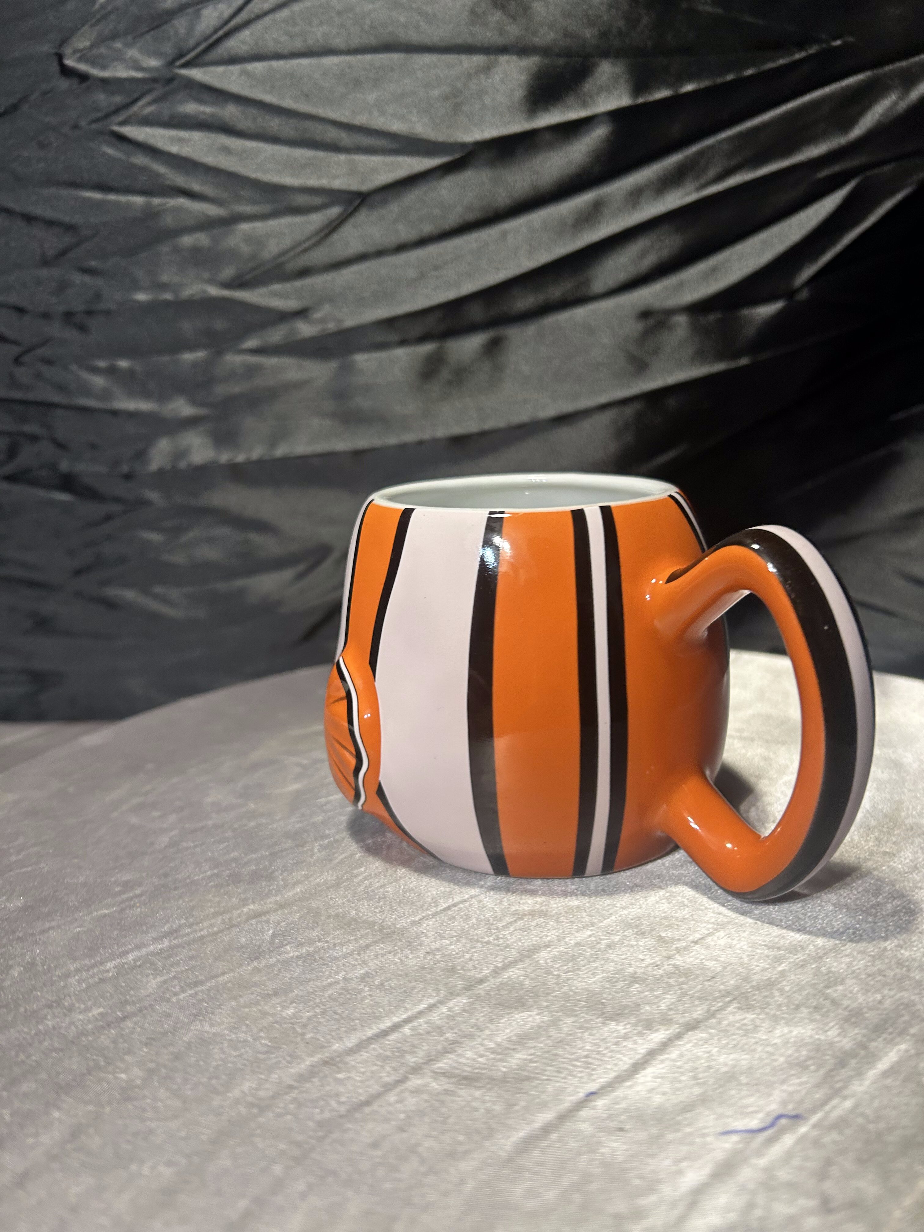 Przedmiotem oferty jest wyjątkowy, trójwymiarowy kubek przedstawiający postać Nemo, bohatera kultowej animacji Disney/Pixar „Gdzie jest Nemo”. Ten konkretny model pochodzi z oficjalnej dystrybucji Genuine Original Authentic Disney Store i jest produktem unikatowym, projektowanym z dbałością o najmniejsze detale. Kubek posiada charakterystyczny, wypukły kształt oddający buzię rybki błazenka, a jego intensywny pomarańczowy kolor i radosny wyraz sprawiają, że wyróżnia się w każdej kolekcji. Jest to rzadka okazja dla kolekcjonerów przedmiotów z limitowanych serii Disney, szczególnie tych zachowanych w tak dobrym stanie.