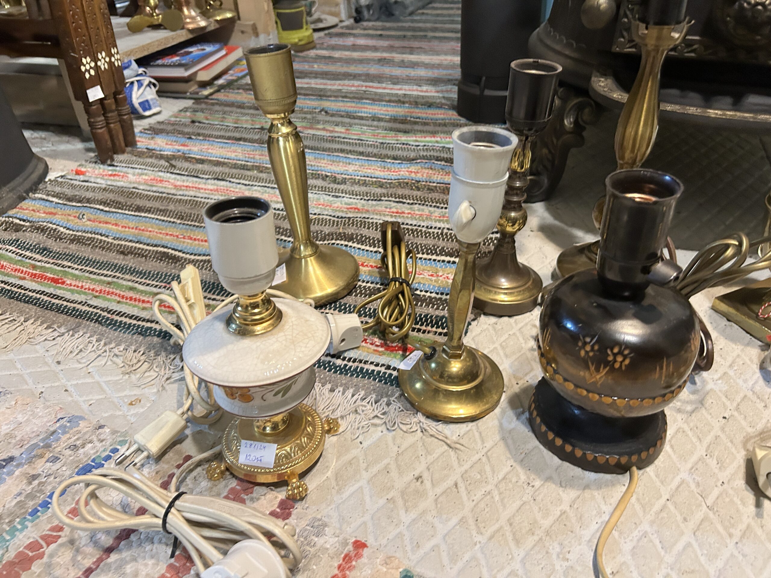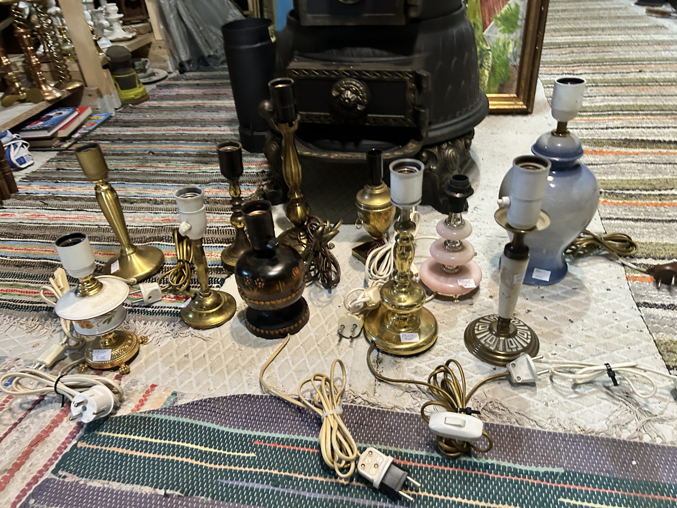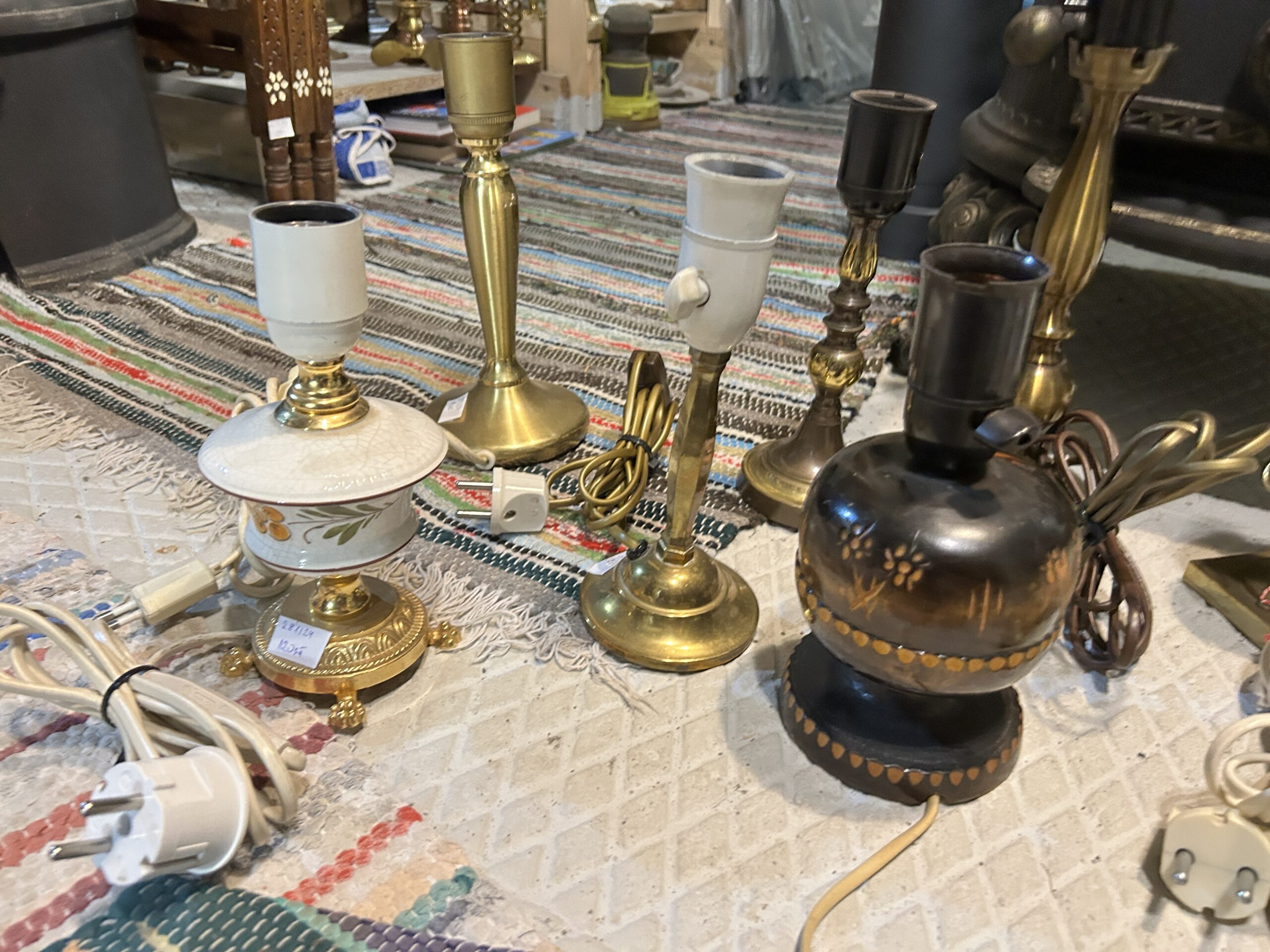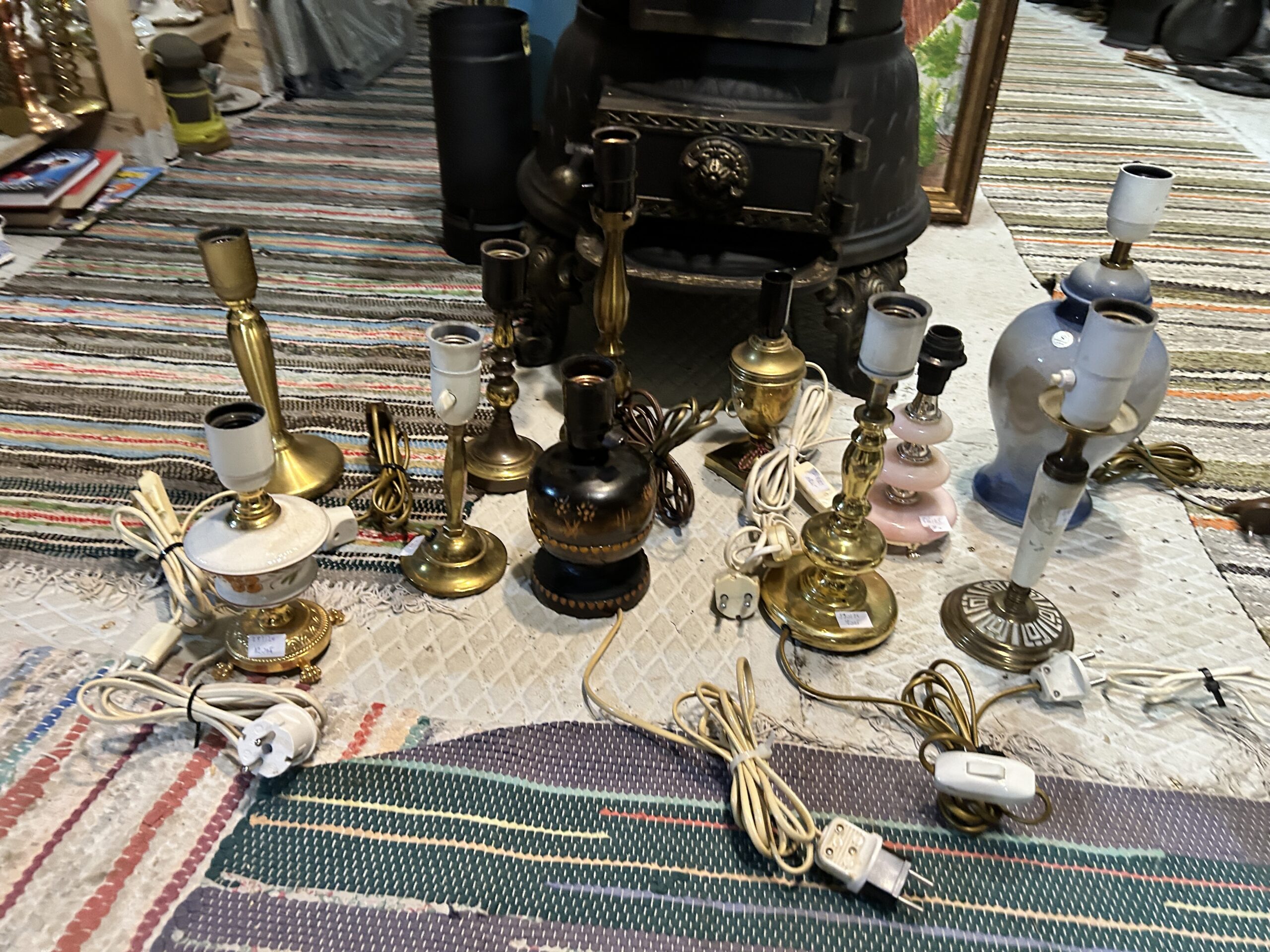 Opis Niezwykle ciekawa oferta skierowana do kolekcjonerów, renowatorów oraz miłośników stylowego oświetlenia. Przedstawiamy zróżnicowany zestaw 11 lamp stołowych i gabinetowych, przywiezionych prosto z Norwegii. Komplet obejmuje szeroki wachlarz stylów i materiałów – od klasycznego, ciężkiego mosiądzu, przez dekoracyjny różowy konglomerat, aż po ceramikę i drewno malowane w ludowe wzory. Każda lampa posiada swój unikatowy charakter: od eleganckich form neoklasycznych, przez przytulne lampki nocne, aż po modele o charakterze marynistycznym. To doskonała okazja, aby w jednej cenie nabyć bazę do stworzenia wyjątkowej aranżacji oświetleniowej lub uzupełnić asortyment stylowego butiku vintage.