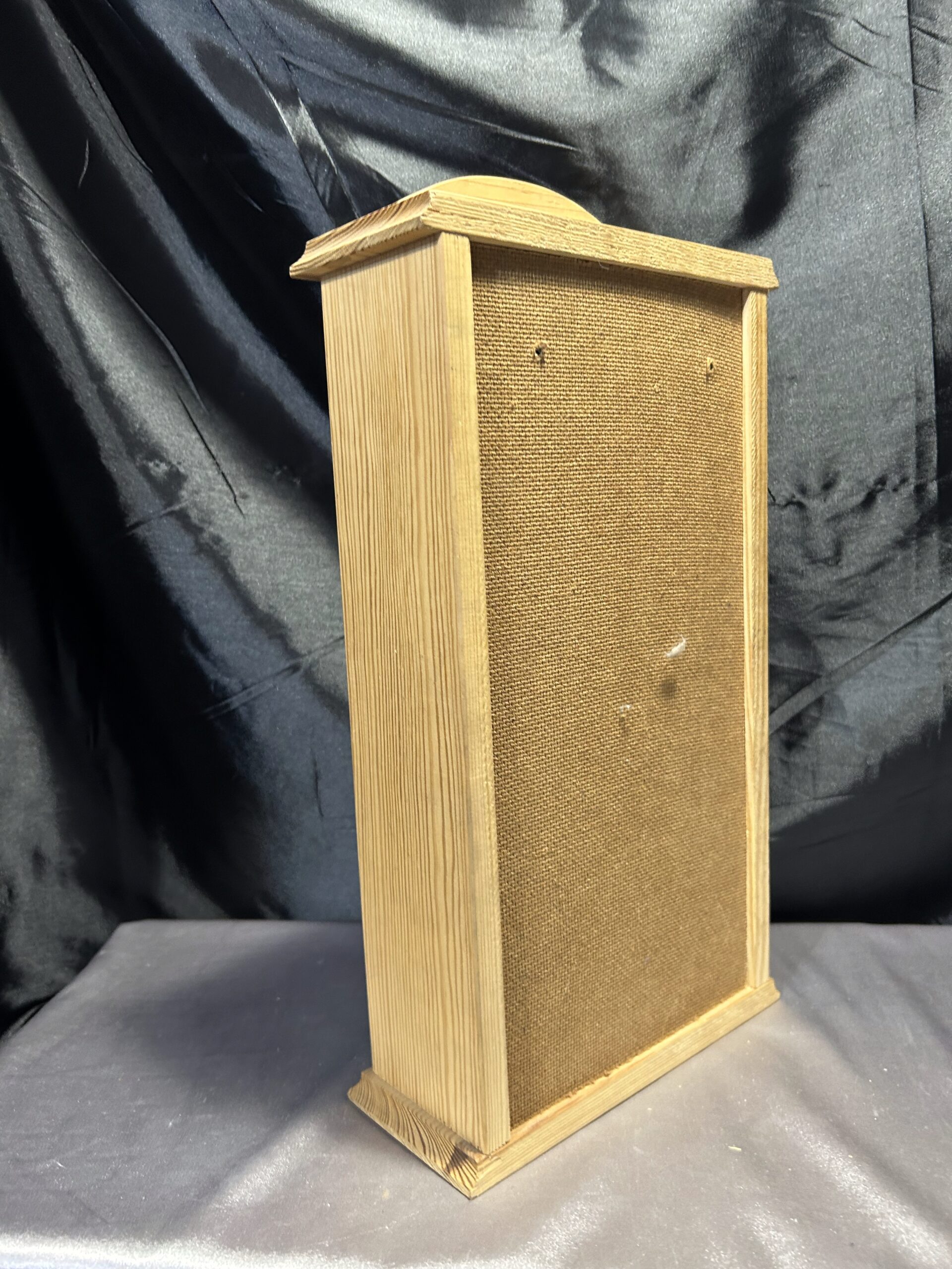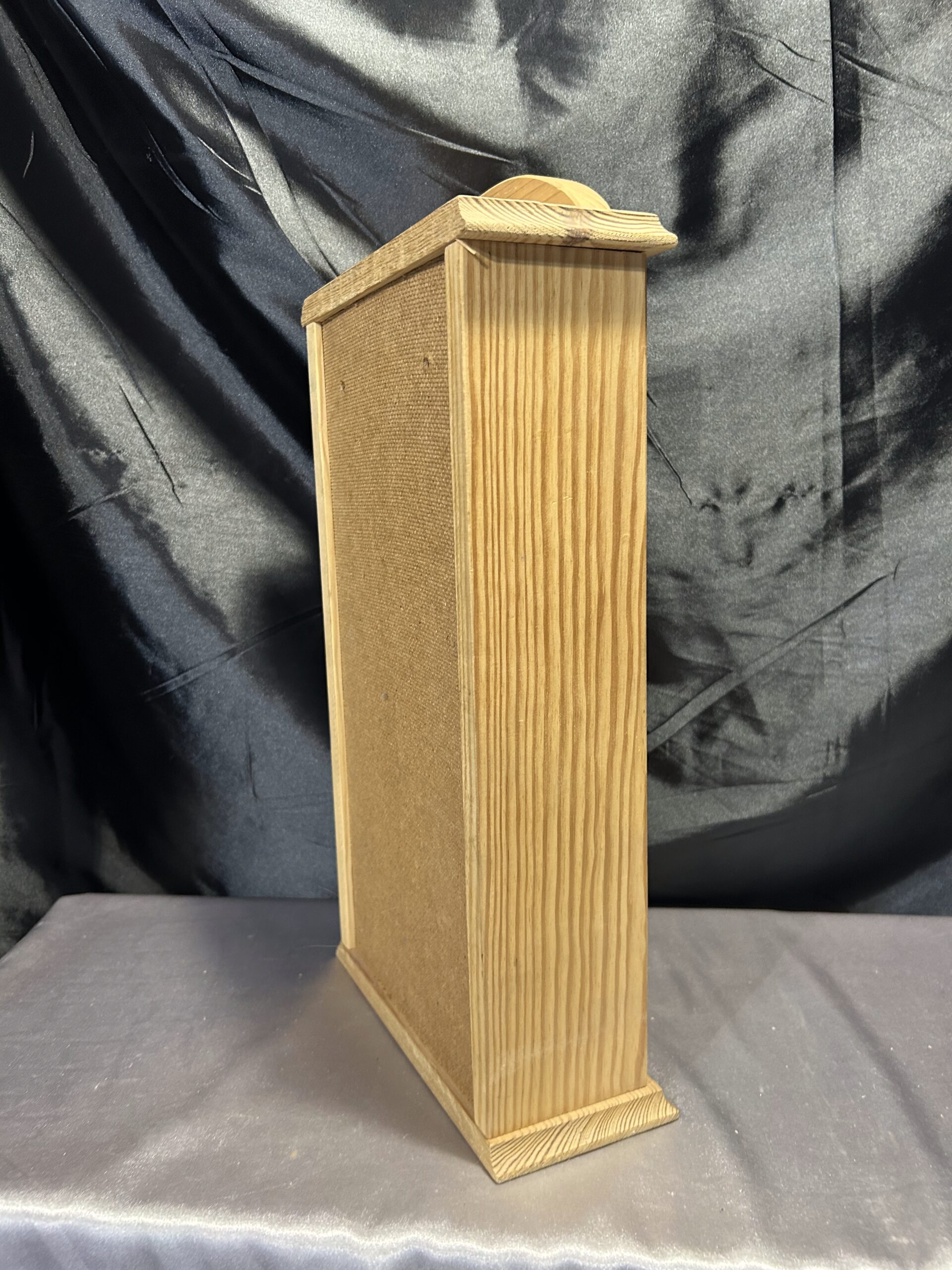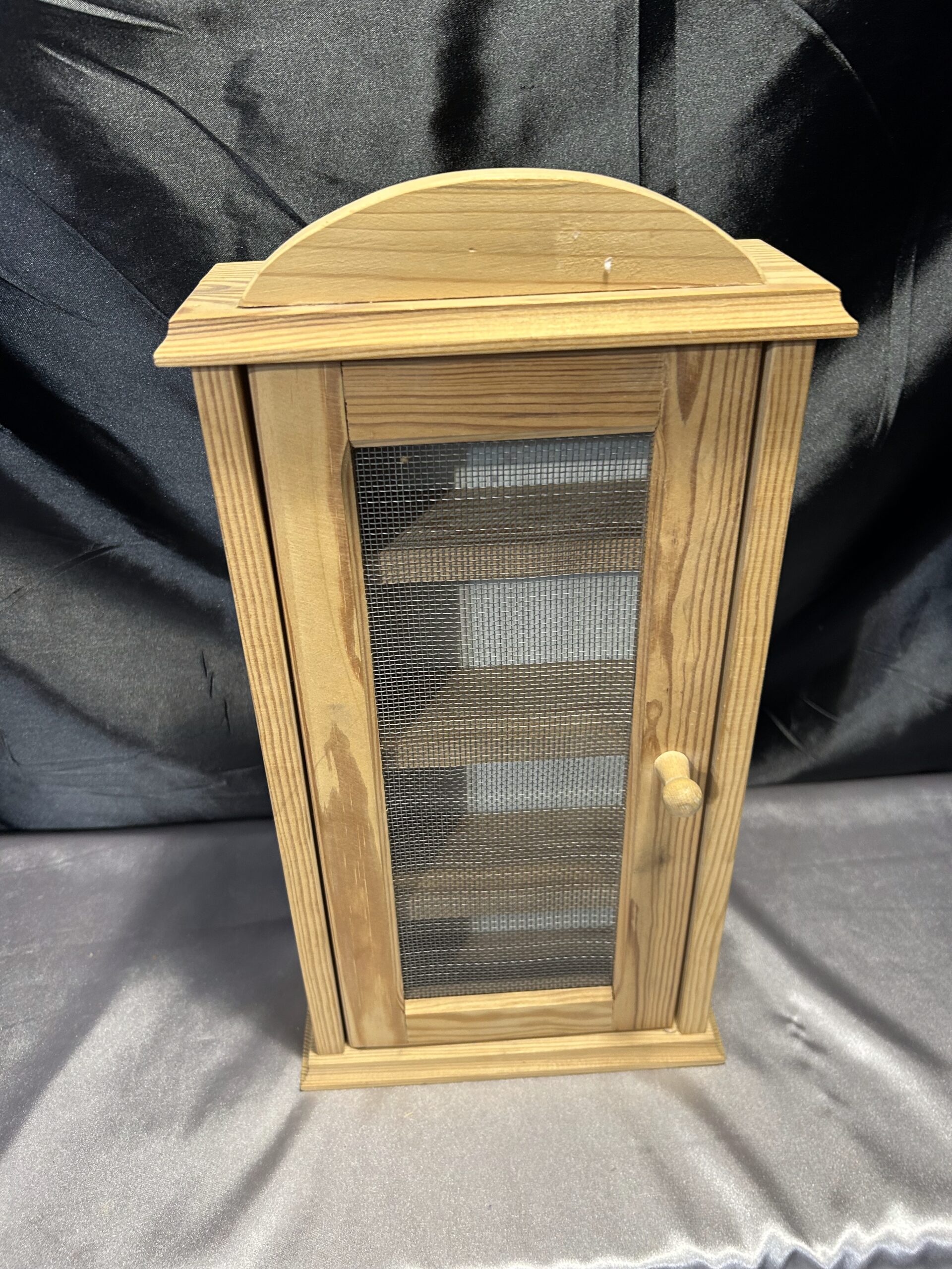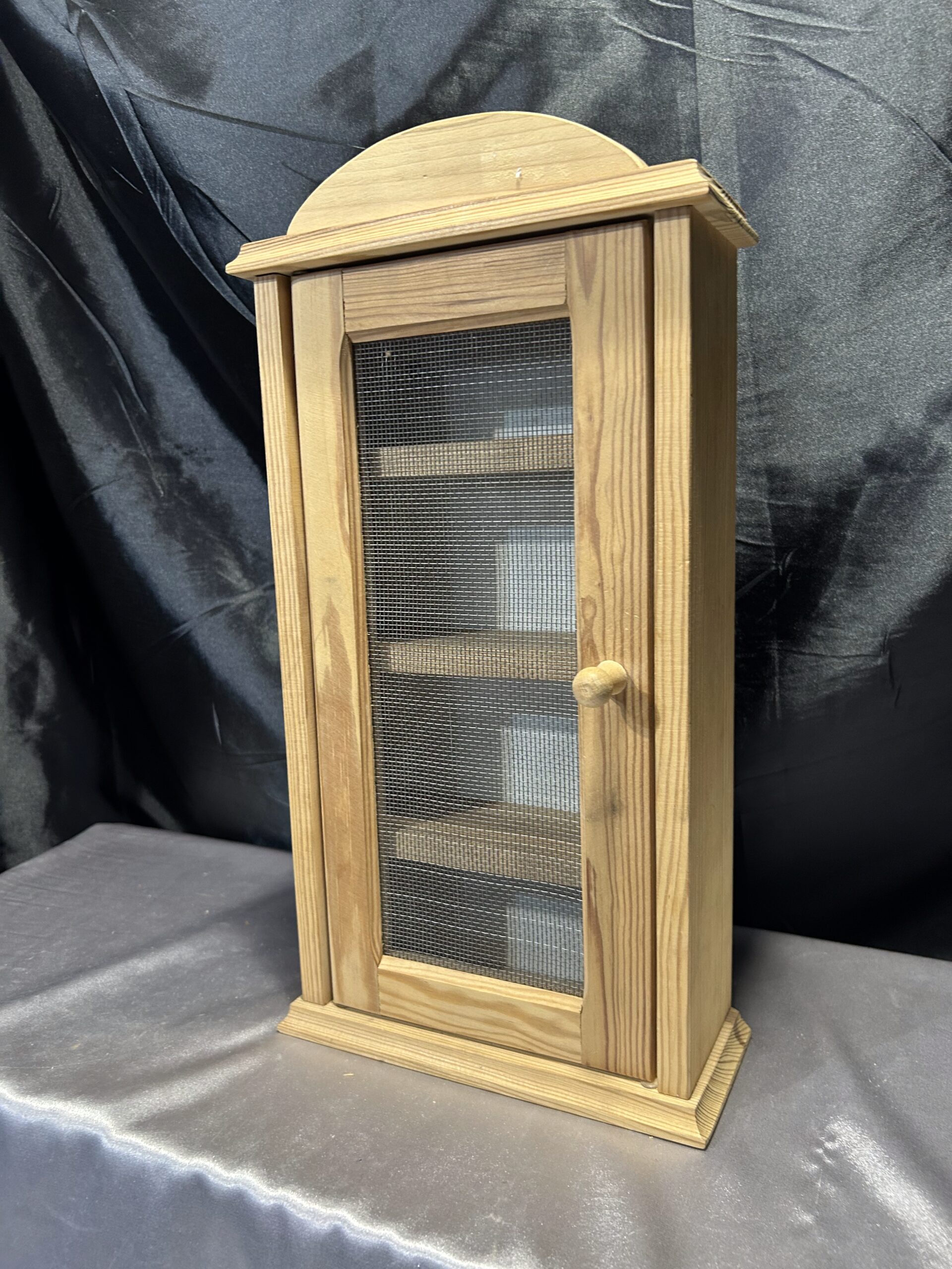 Materiały: sosnowe drewno, metalowa siatka w drzwiczkach
