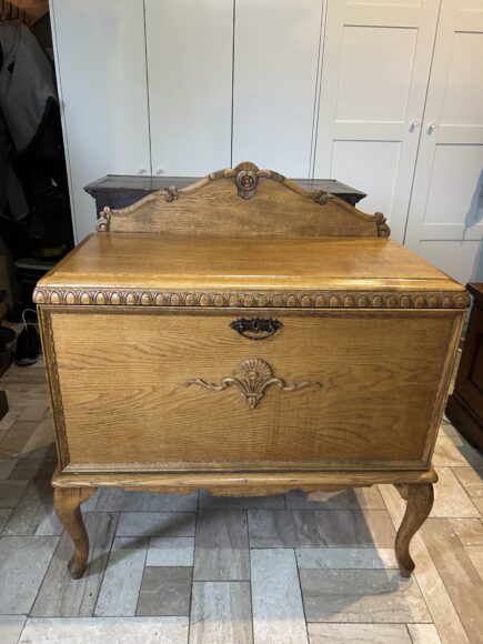 Komoda drewniana z dekoracyjną górką – styl klasyczny