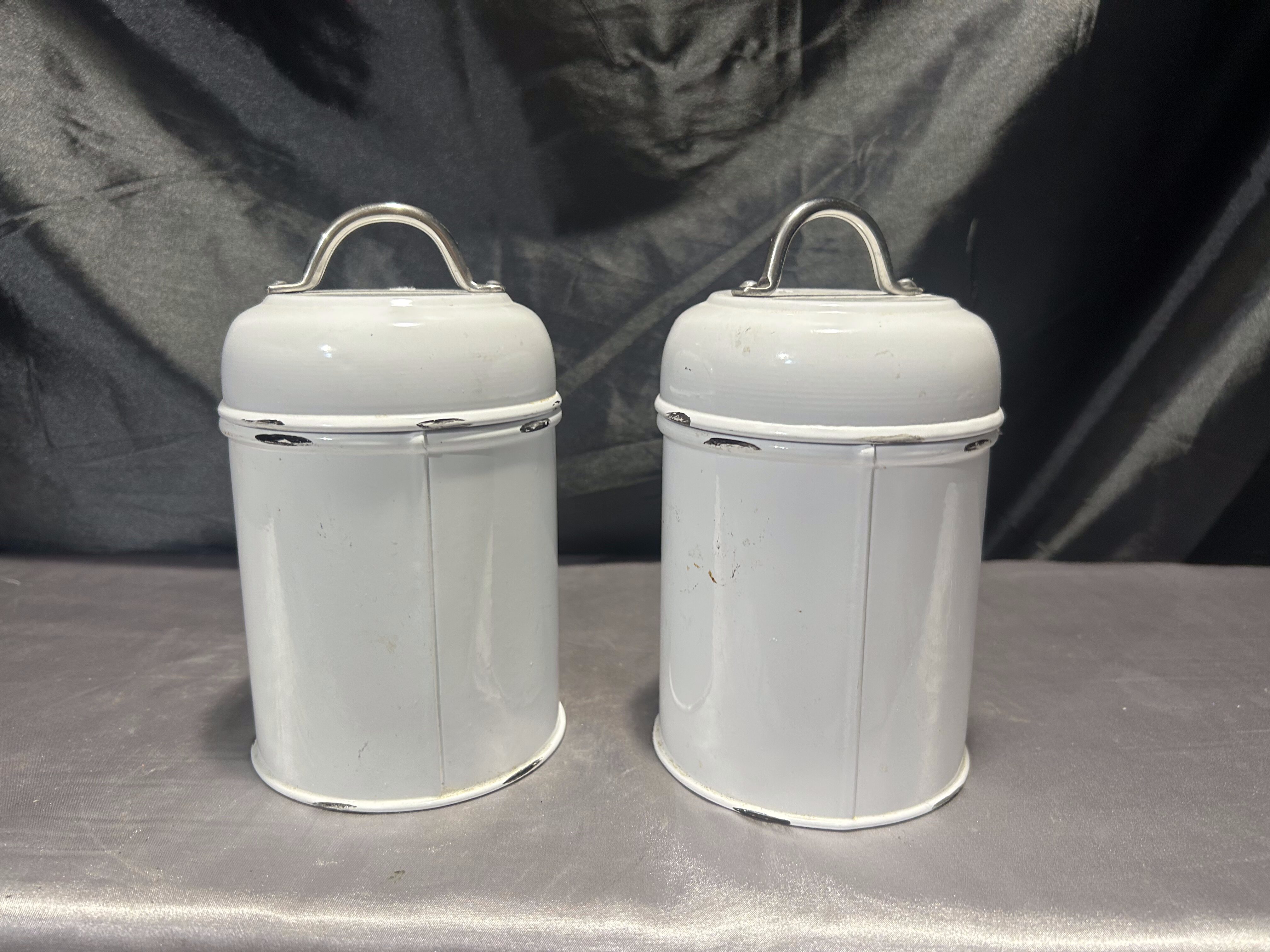 Komplet 2 pojemników kuchennych – styl vintage – metalowe z przecierkami