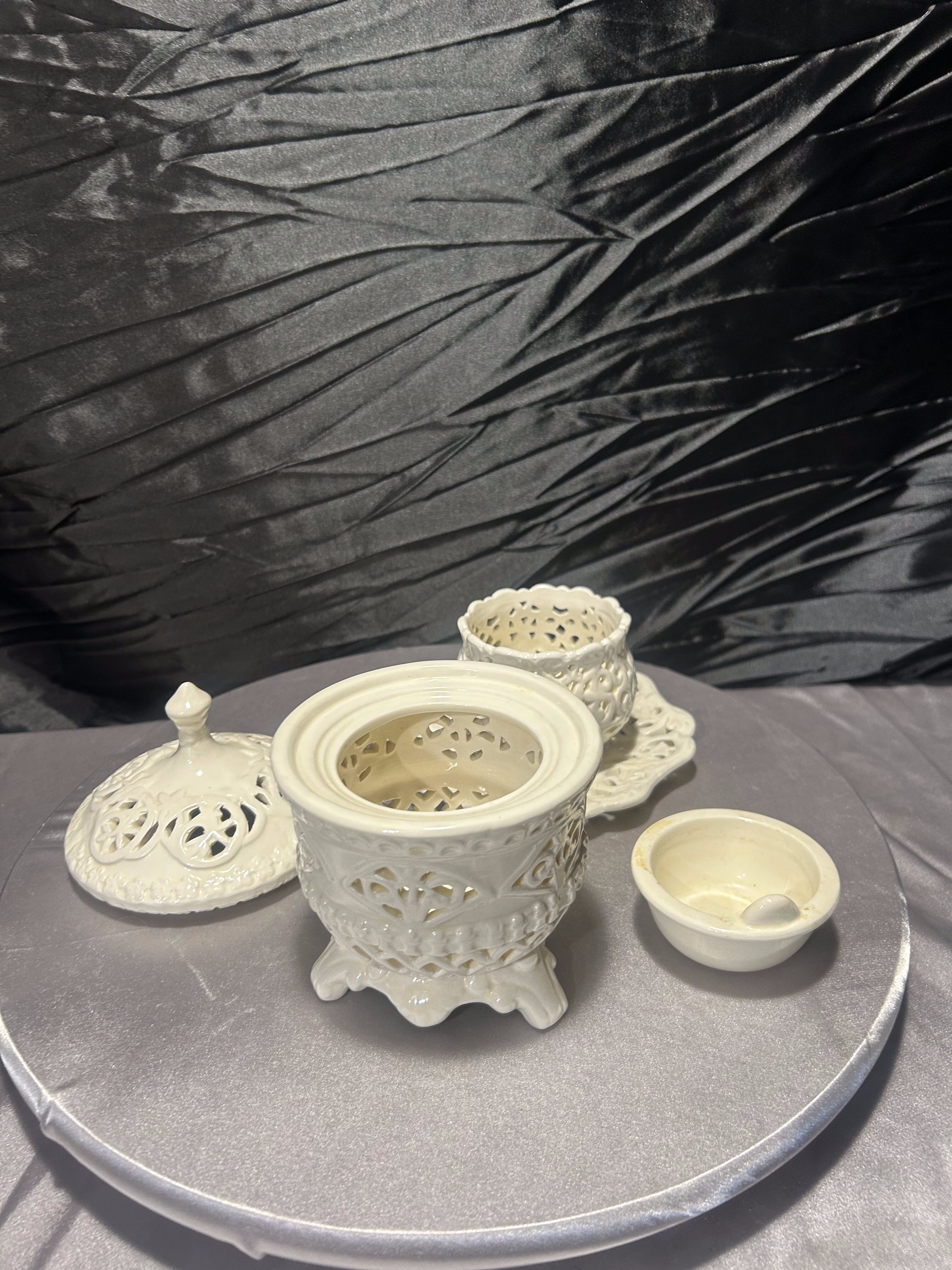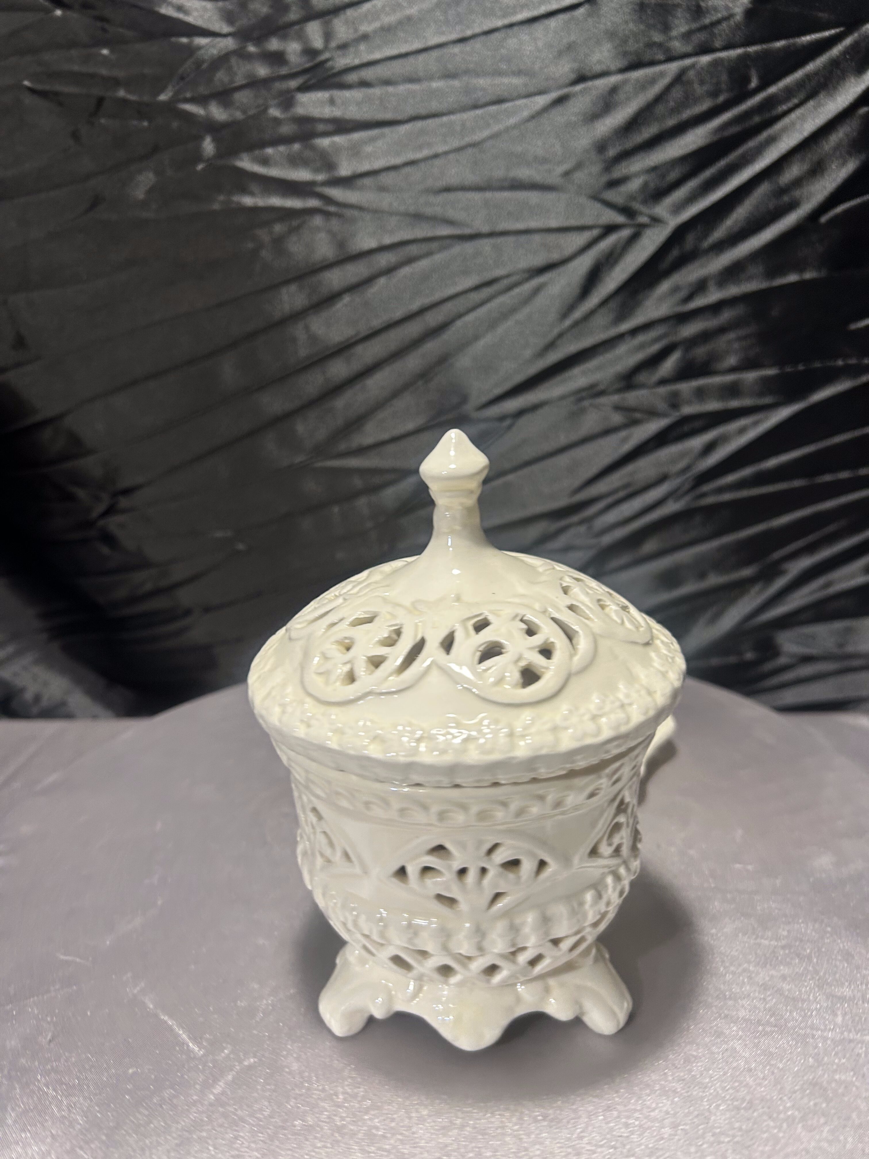 ażurowy kominek zapachowy z pokrywą – wysokość 18 cm, szerokość 12 cm,