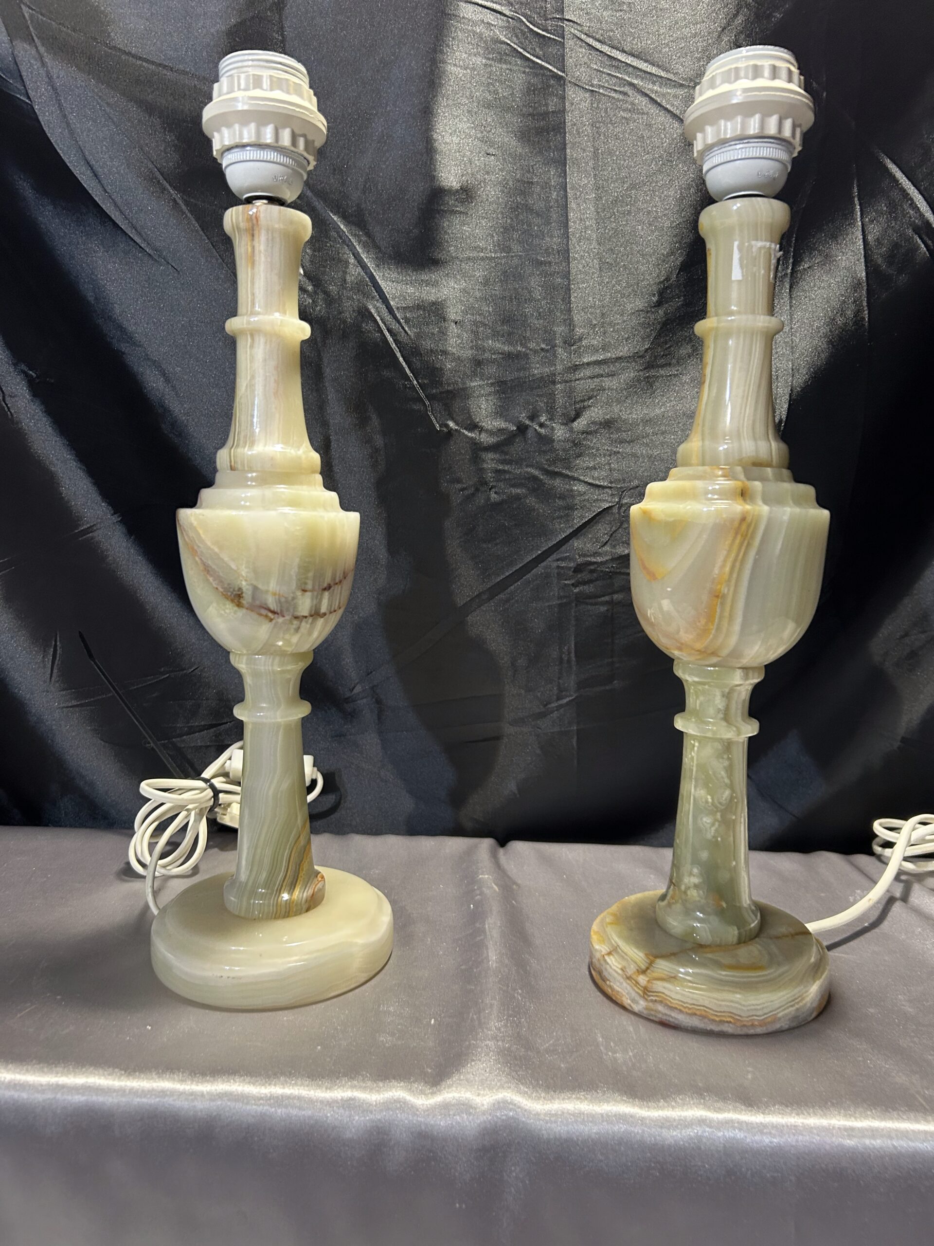 - Komplet Dwóch Lamp z Onyksu – Eleganckie Lampki Stojące