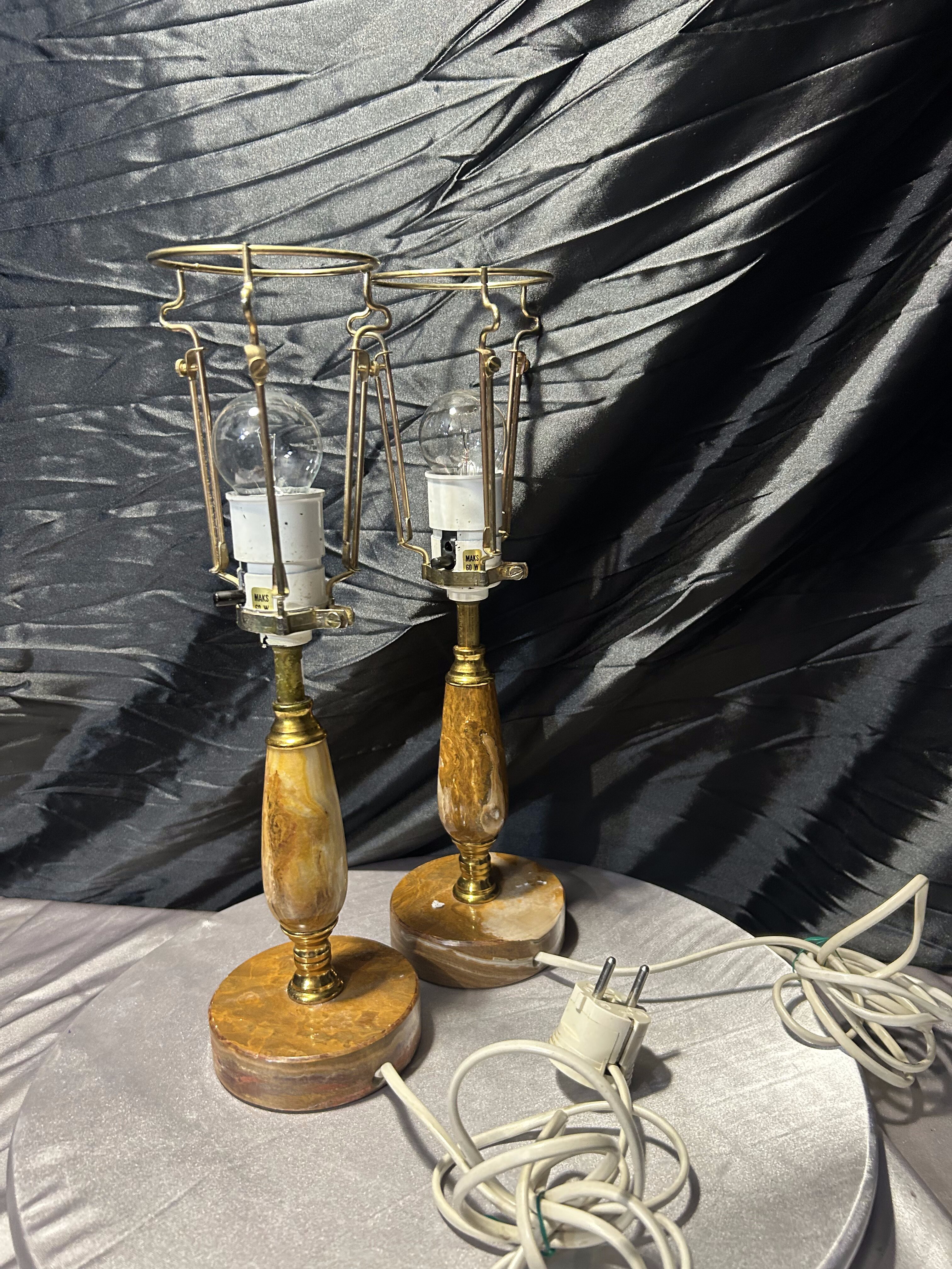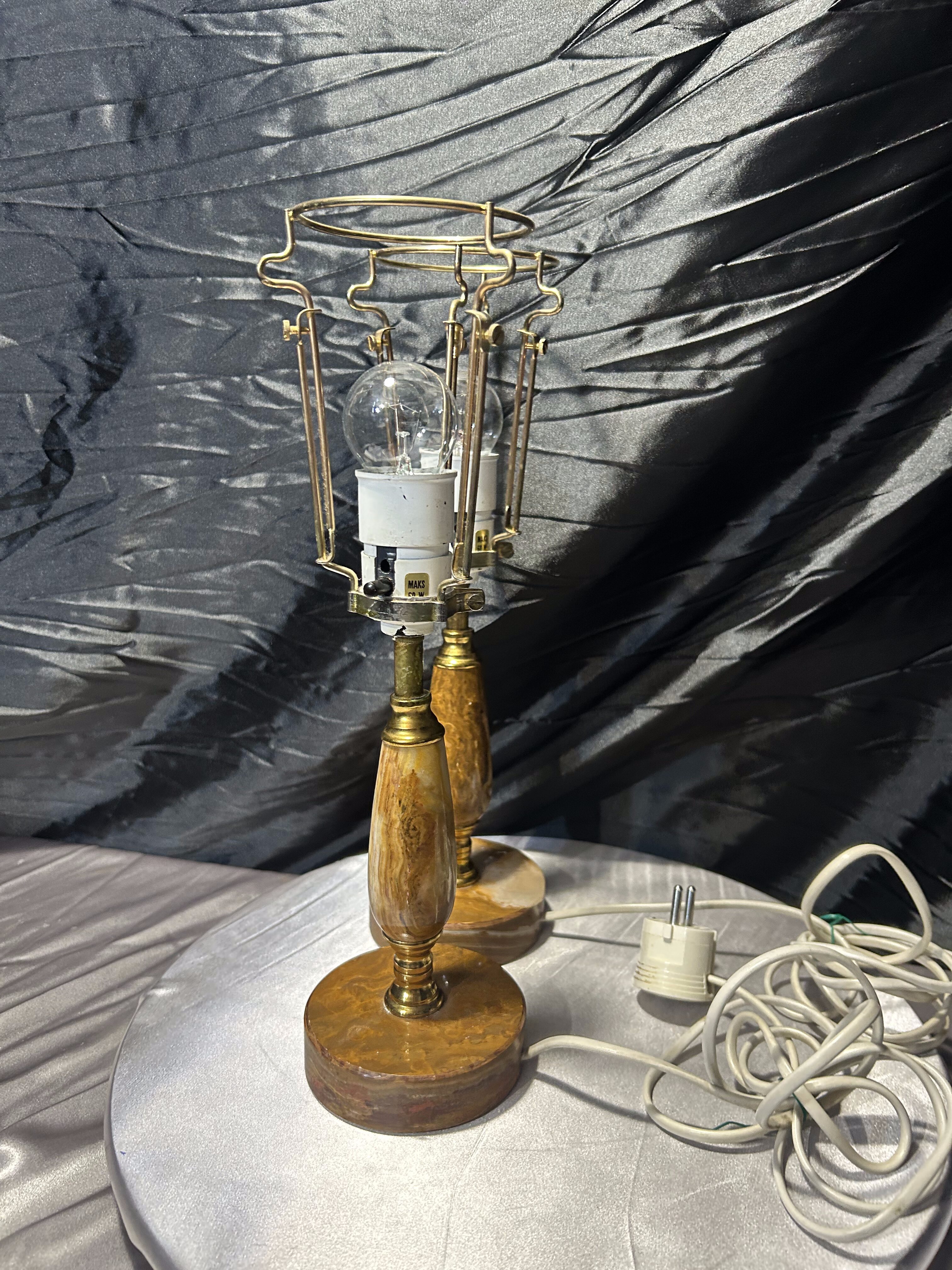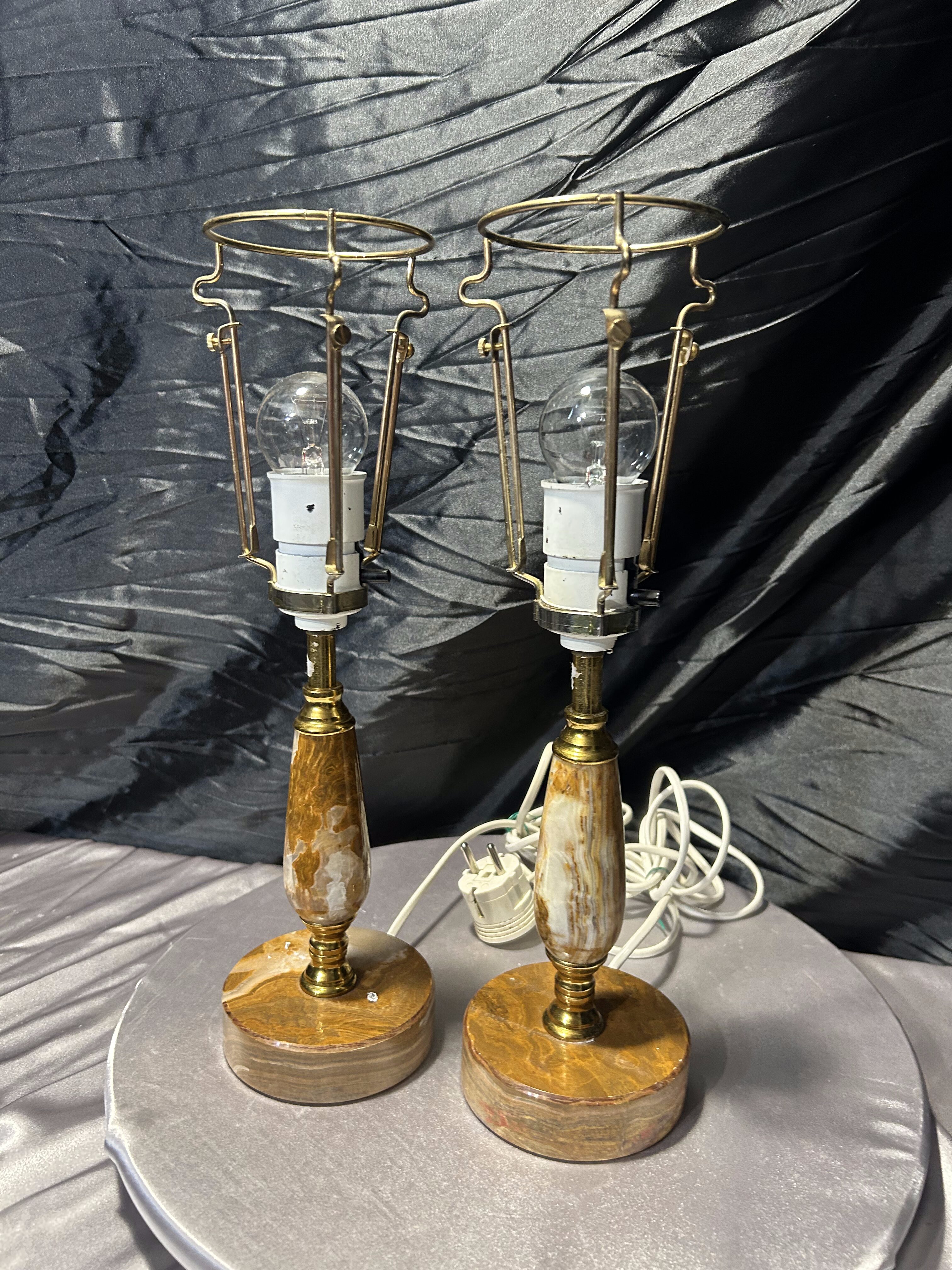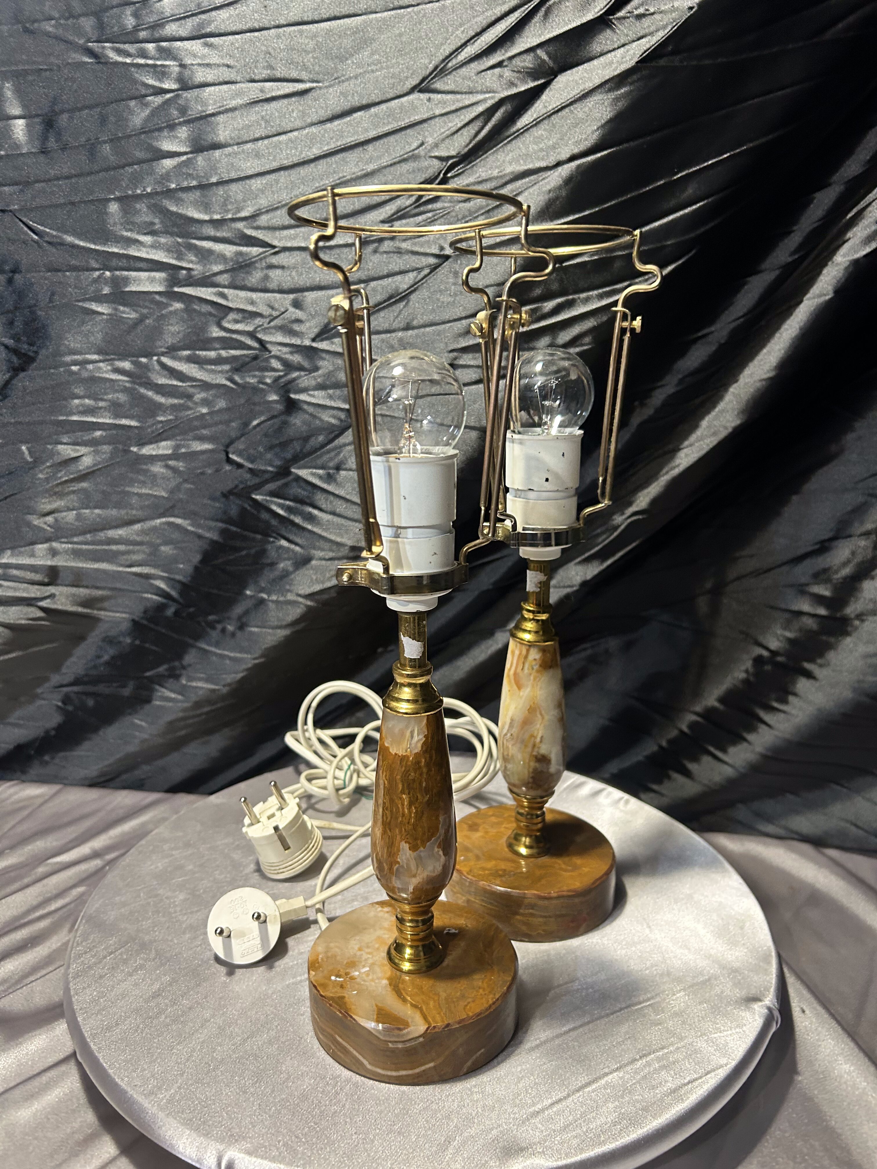 – Komplet dwóch lamp z onyksu i mosiądzu