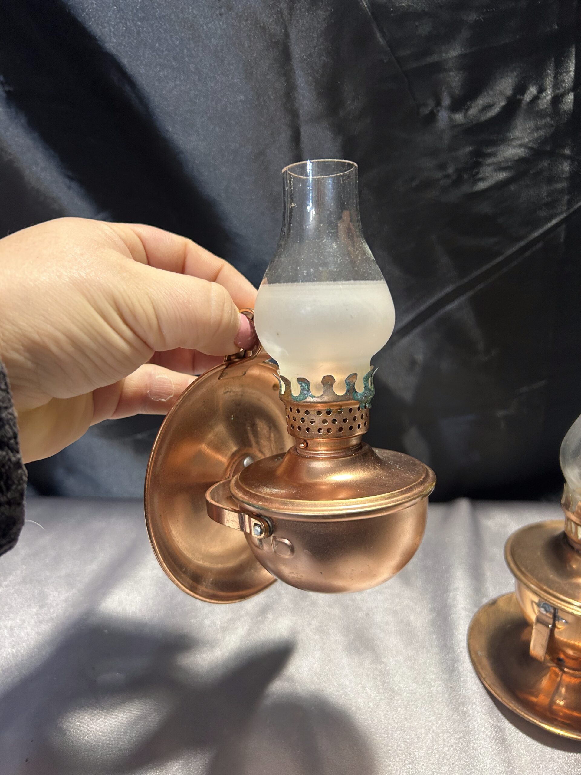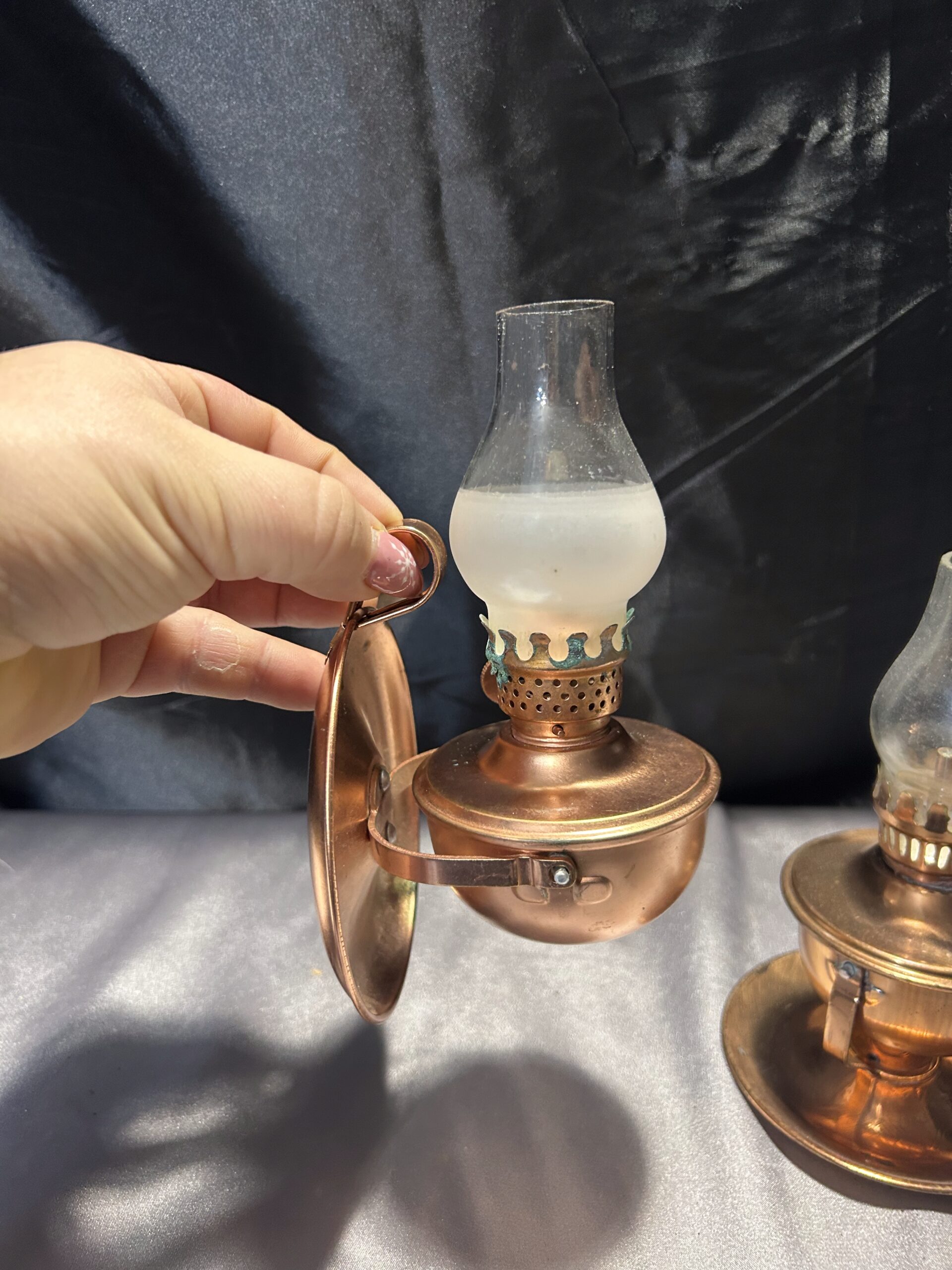 - Komplet Dwóch Lampek Naftowych – Miedziane Kaganki