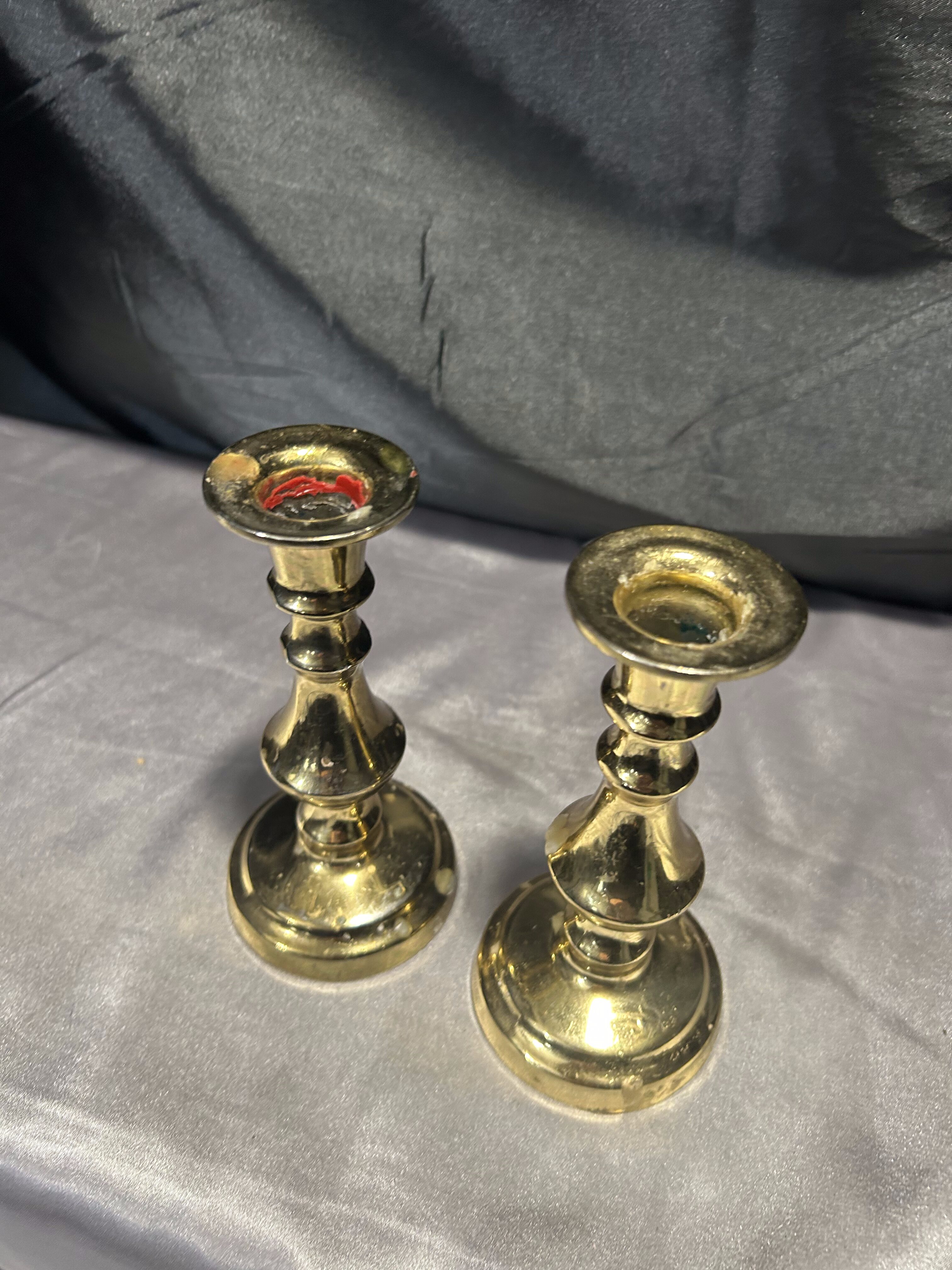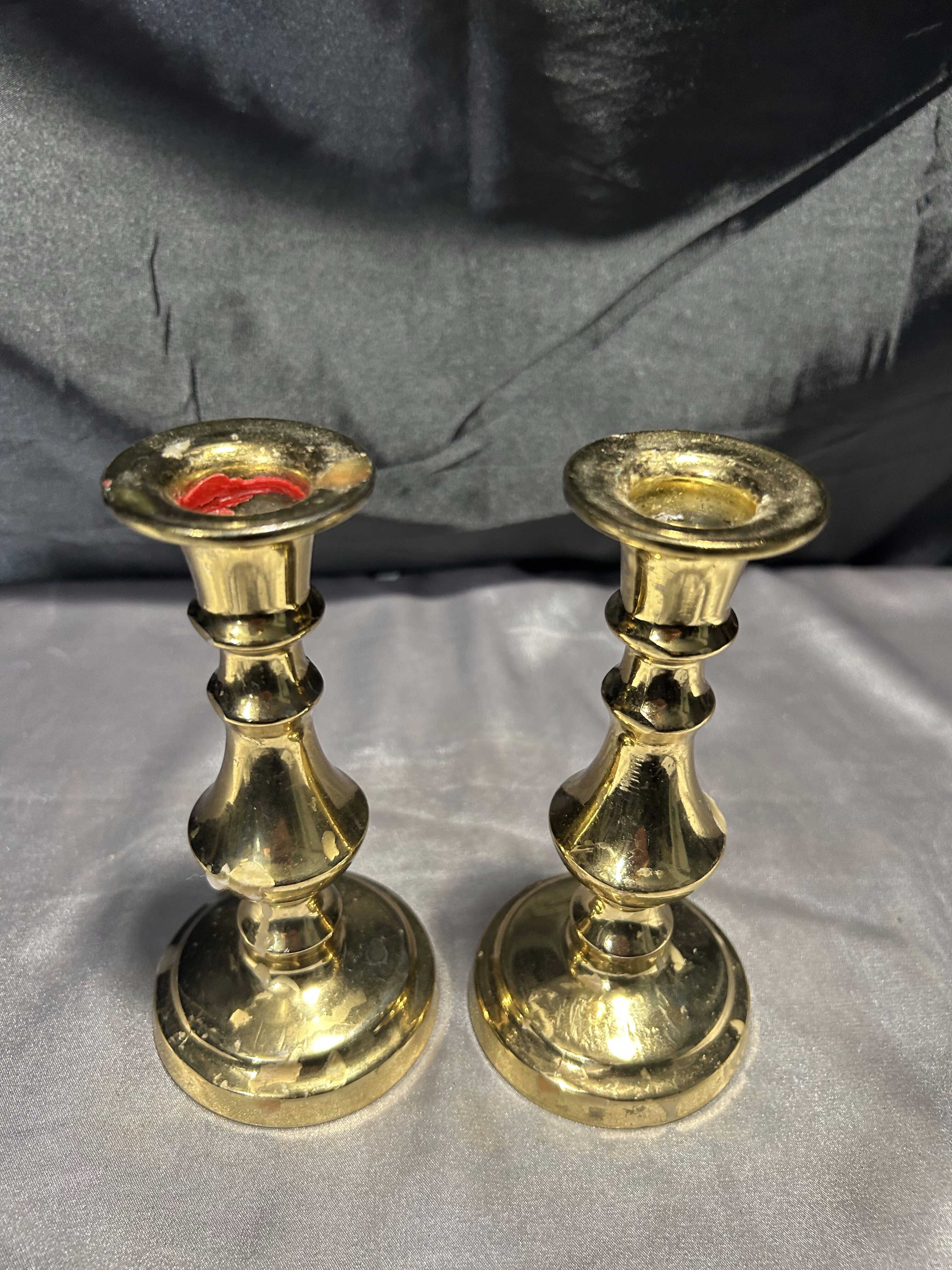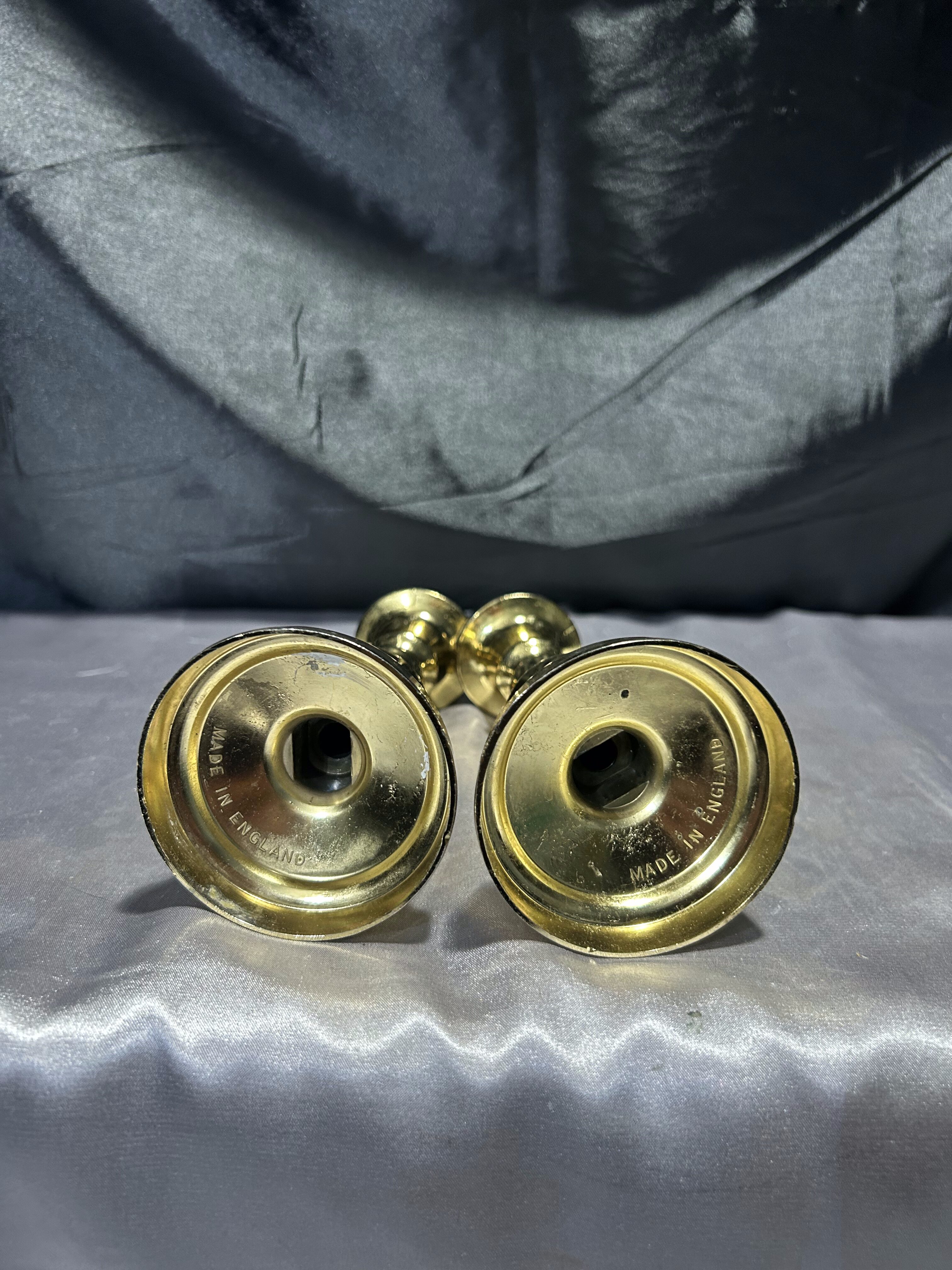 - Komplet dwóch mosiężnych lichtarzy – sygnowane Made in England – vintage