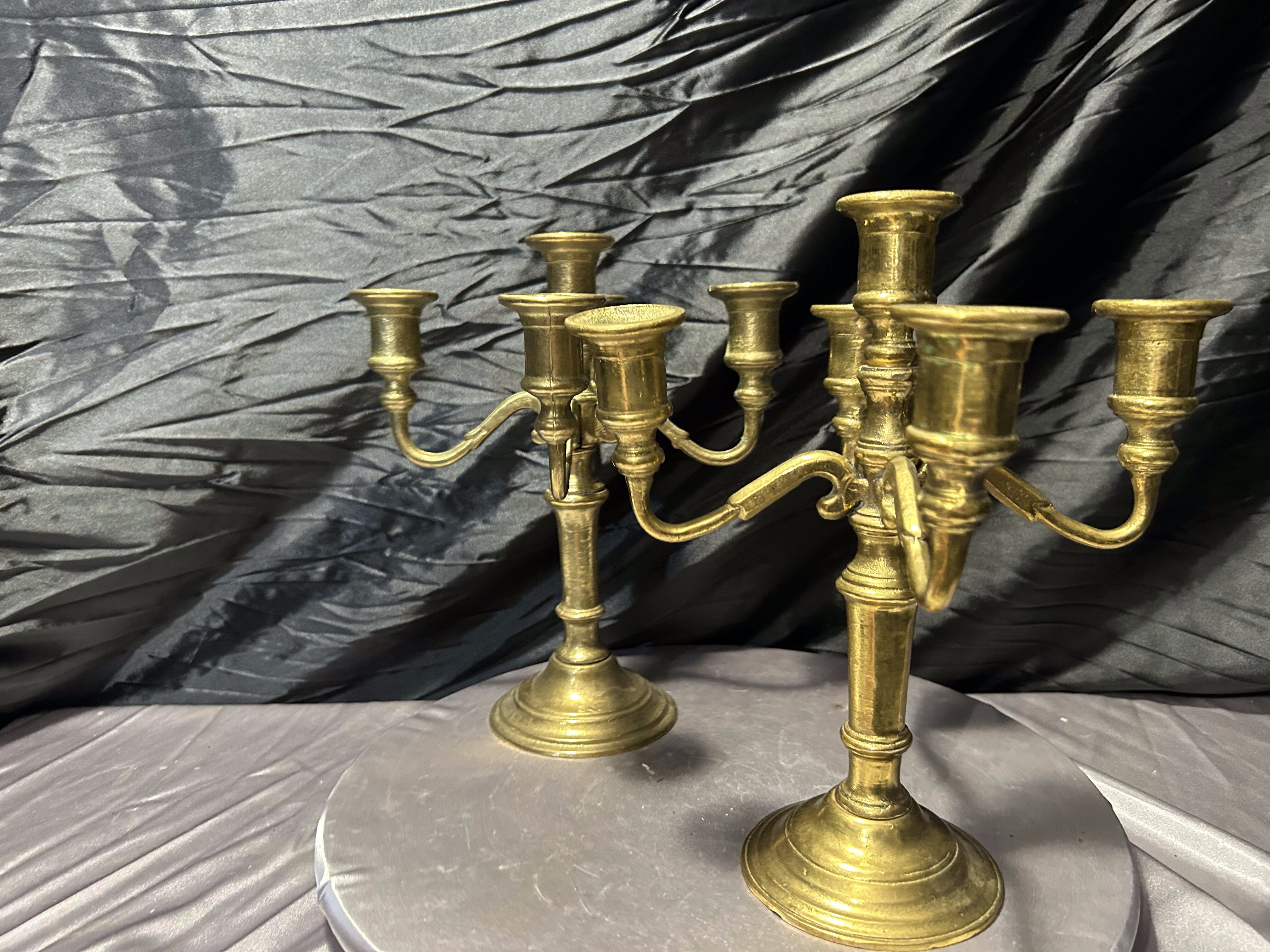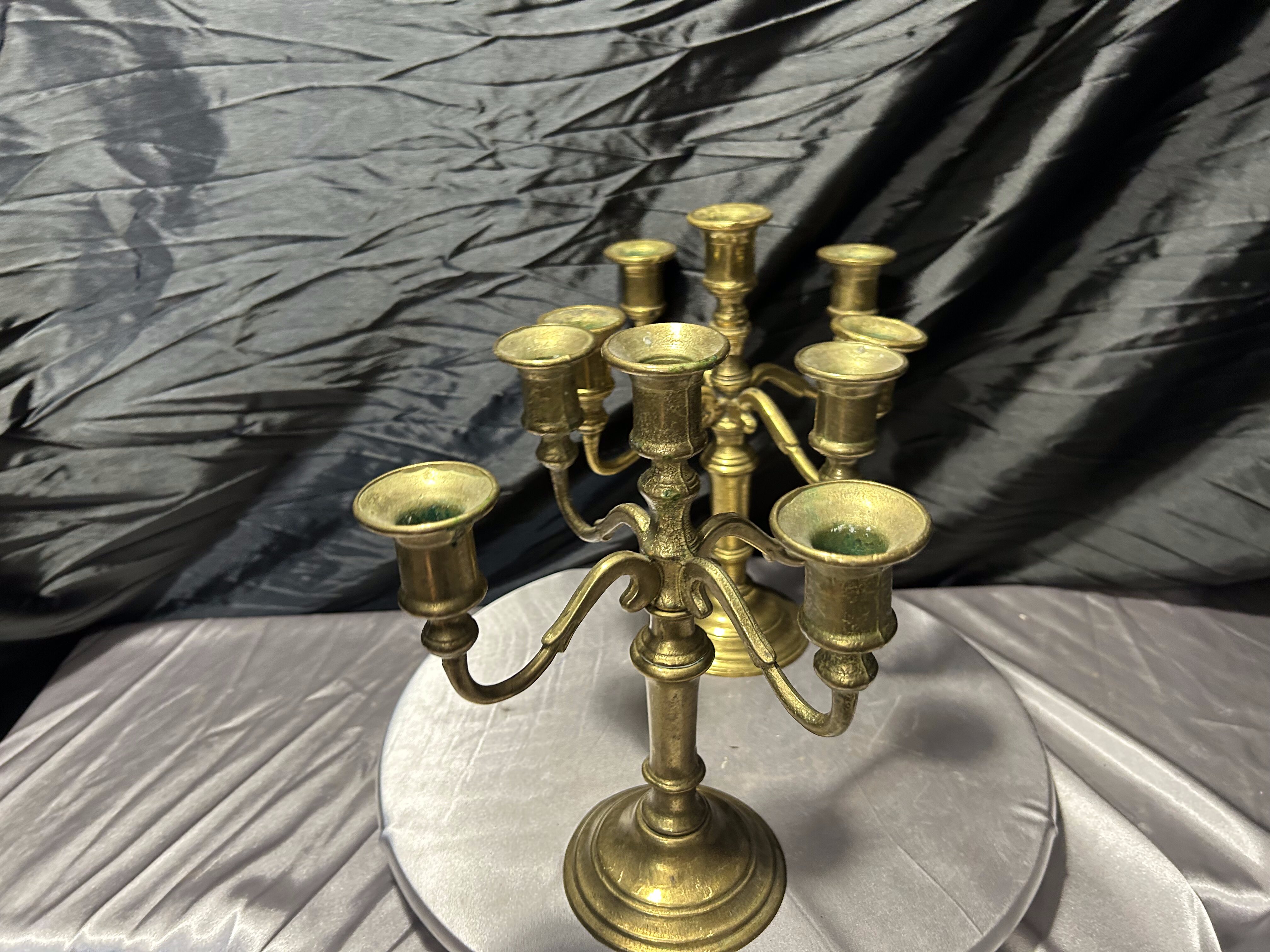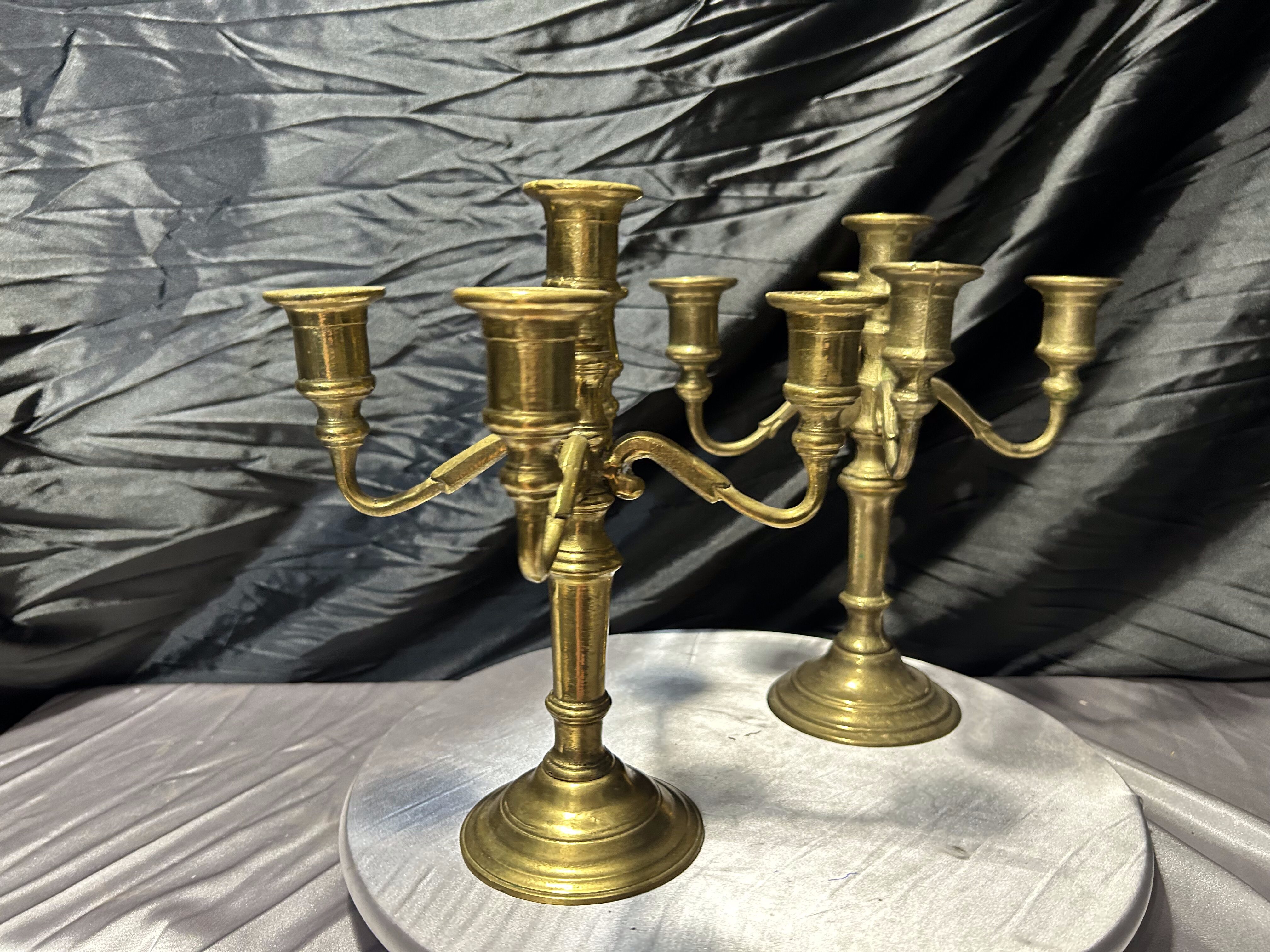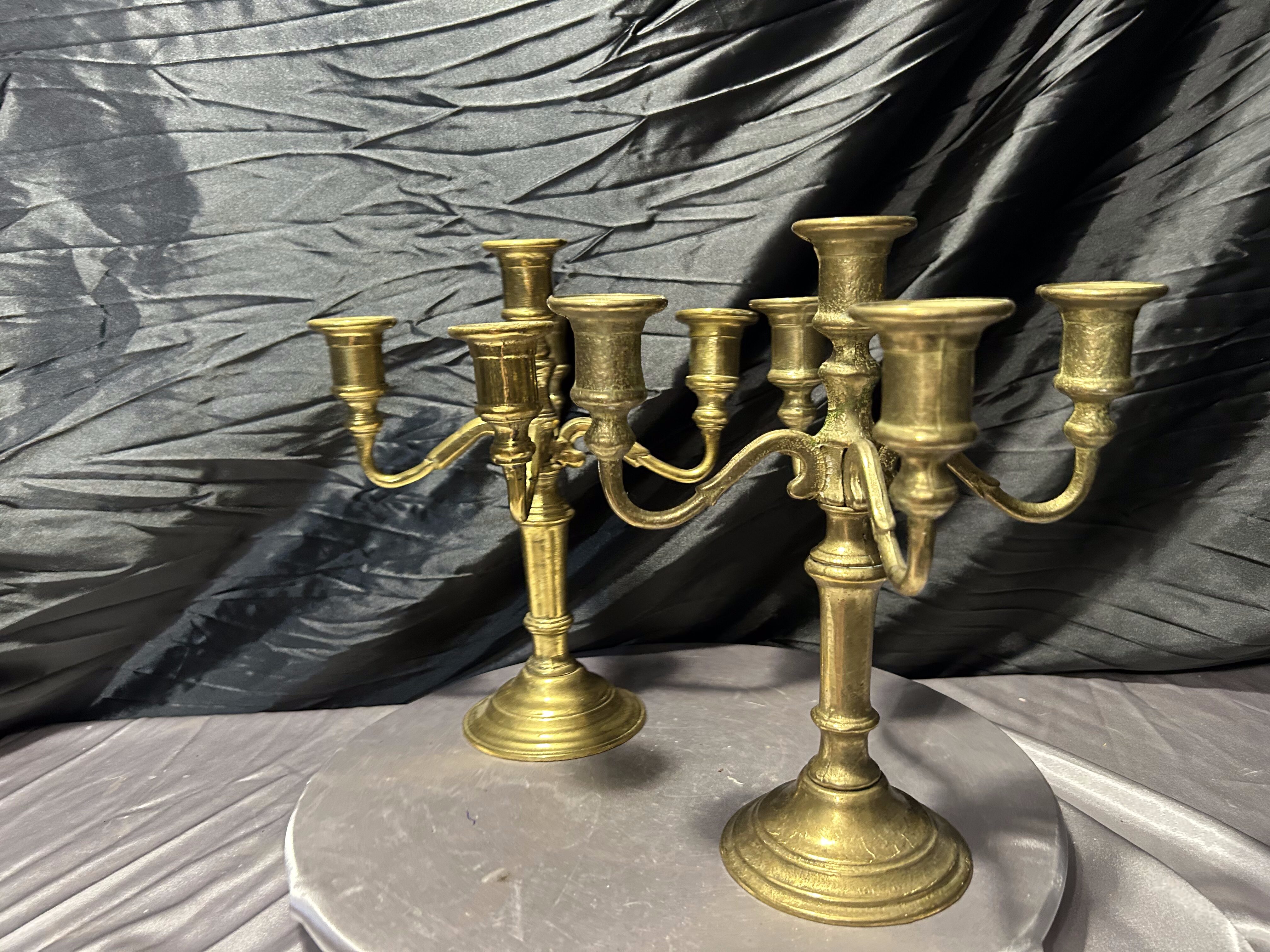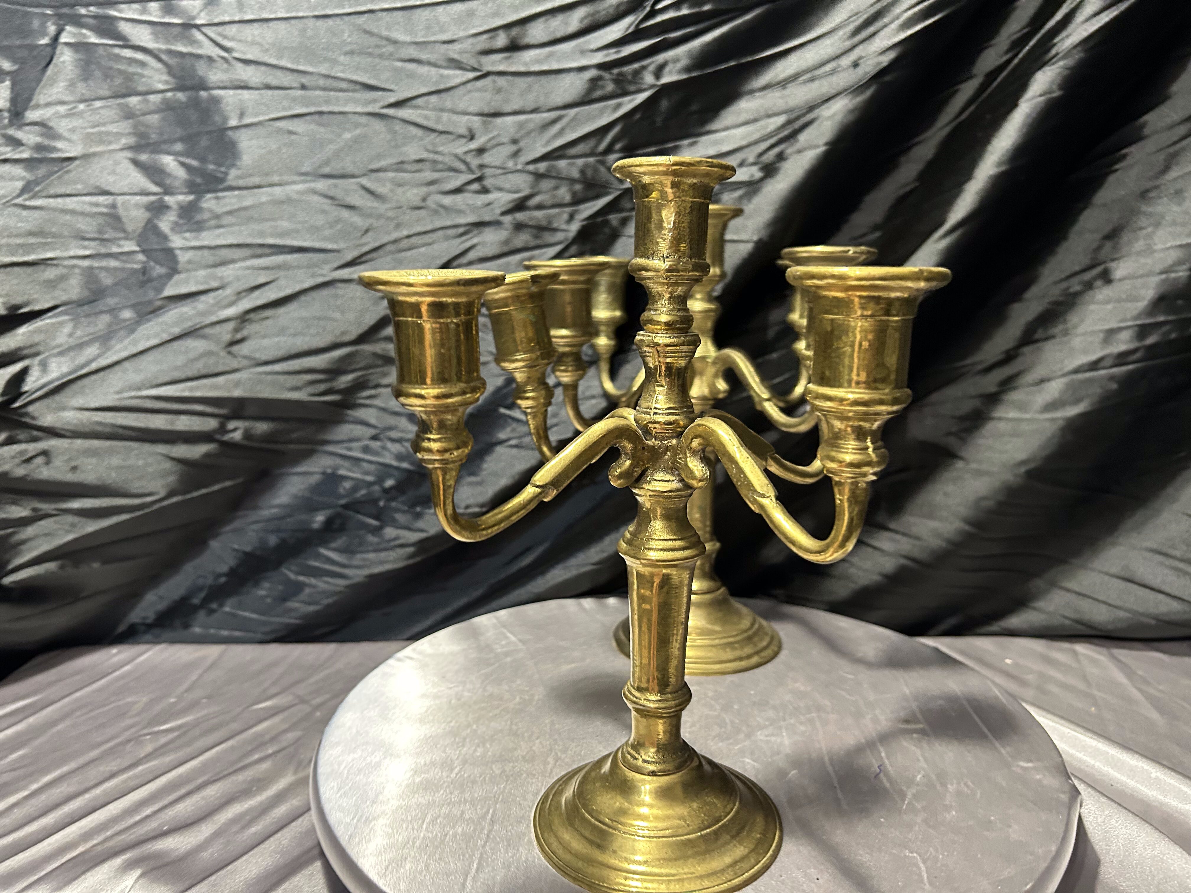 - Komplet dwóch mosiężnych świeczników – na pięć świec – styl klasyczny