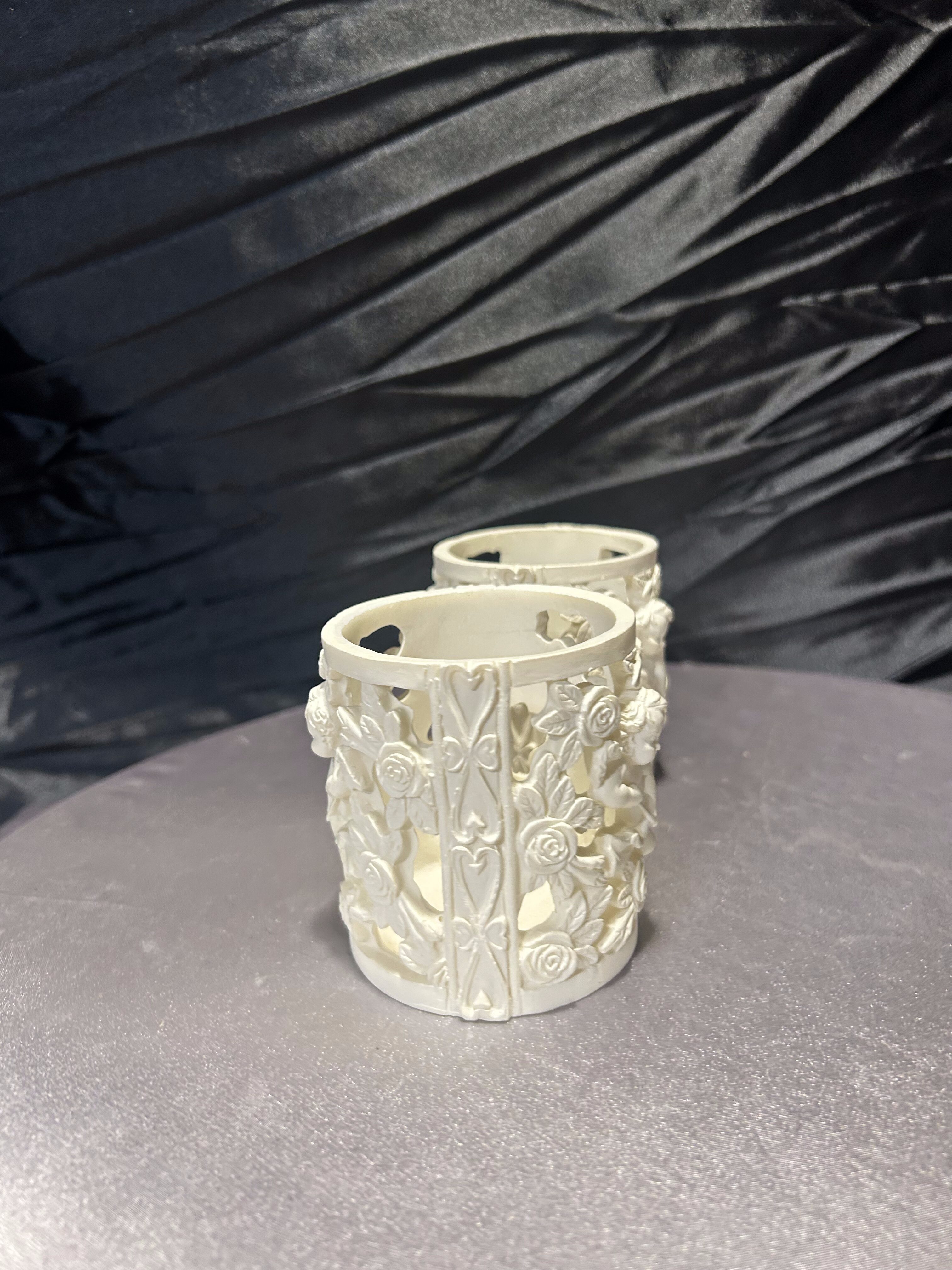 Komplet dwóch świeczników ceramicznych – ażurowe z aniołkami – romantyczna dekoracja