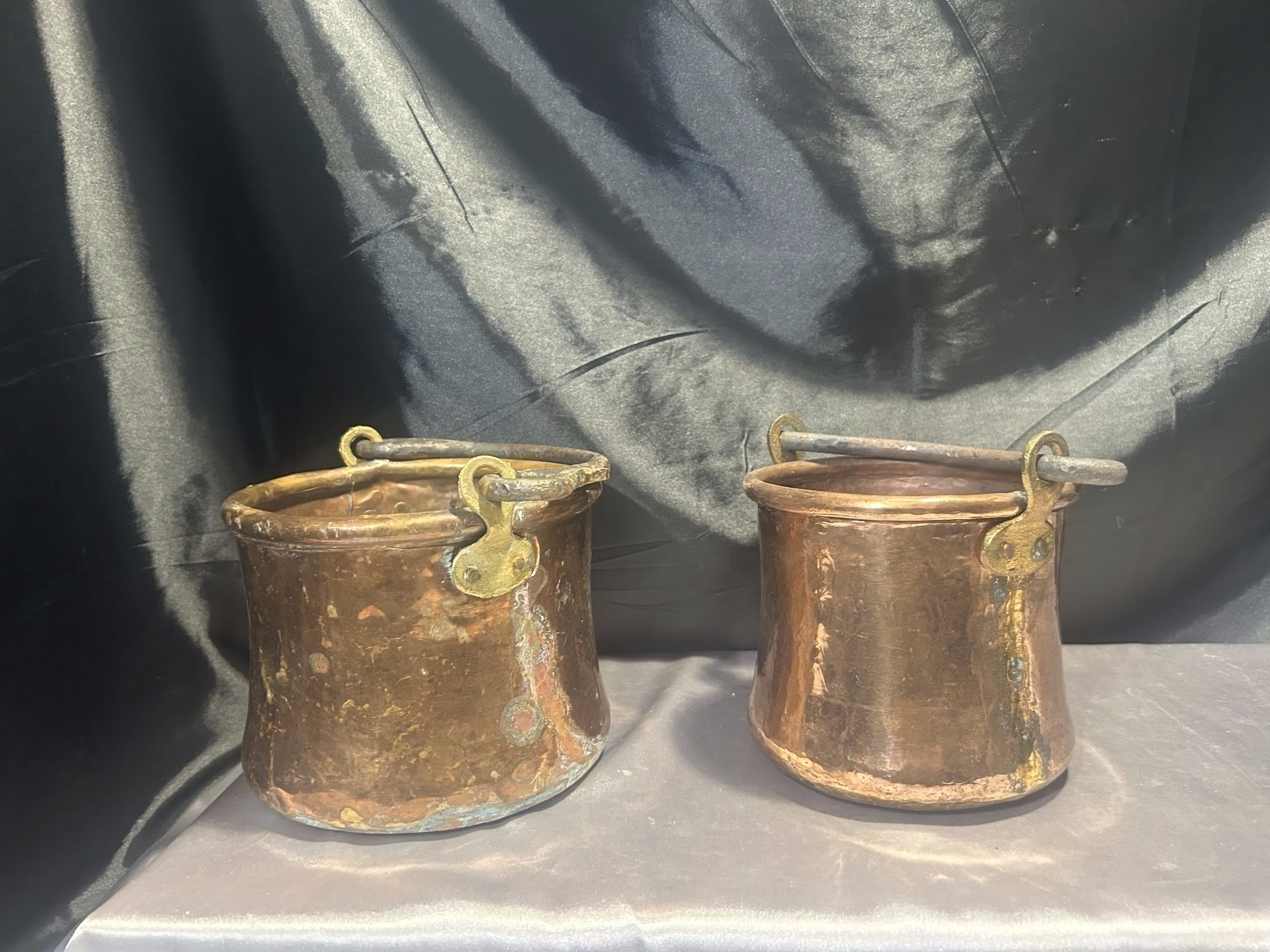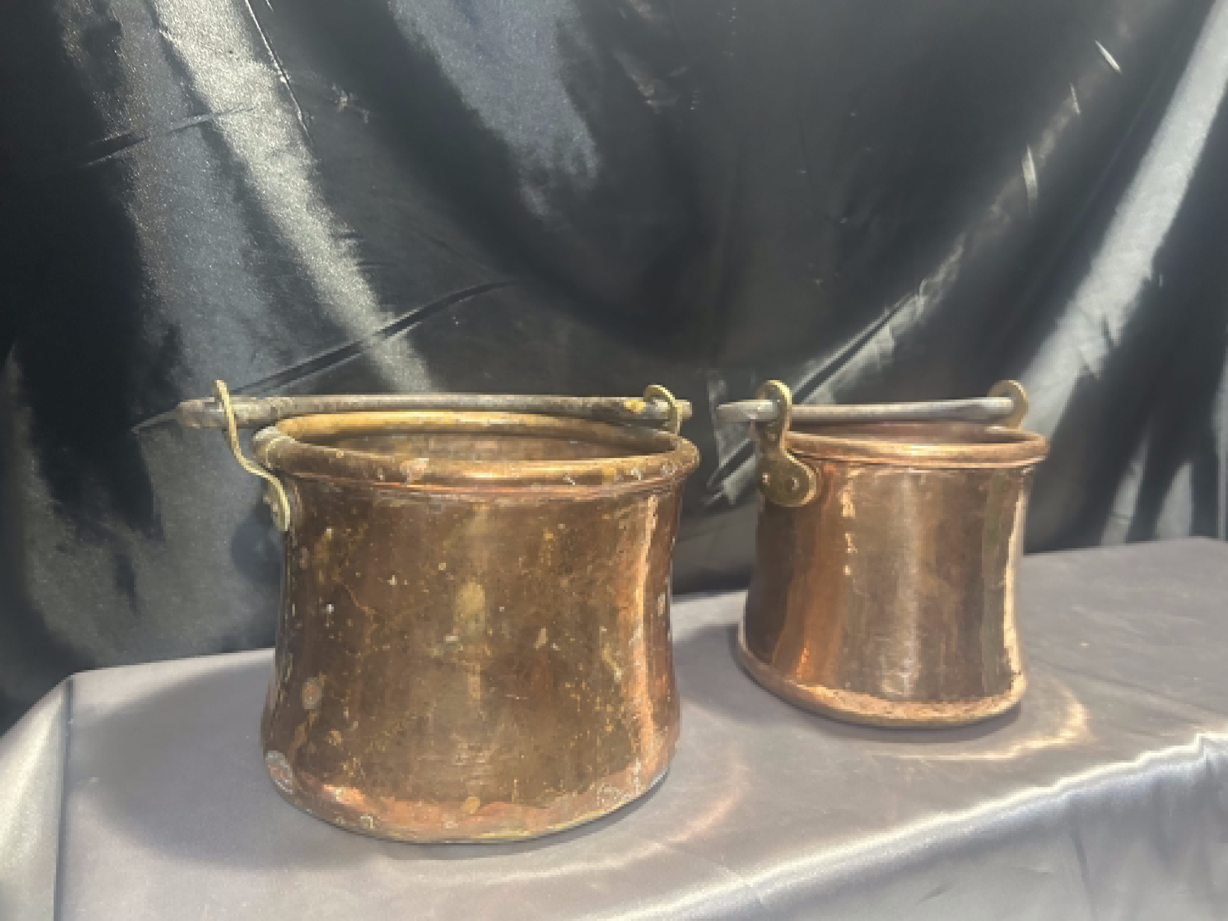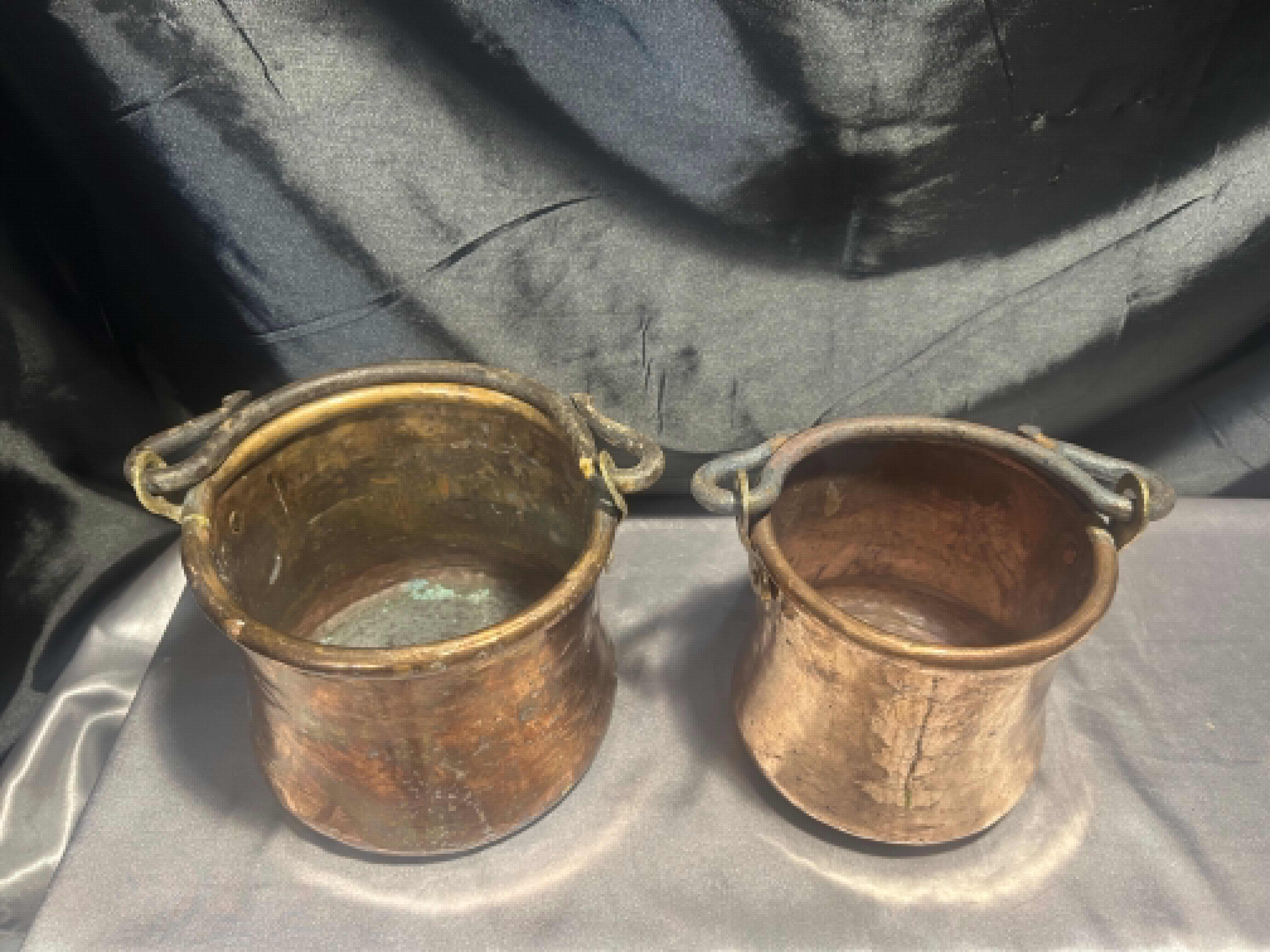 Komplet Miedzianych Kwietników – Kute Rączki – 2 Wiaderka – Styl Rustykalny