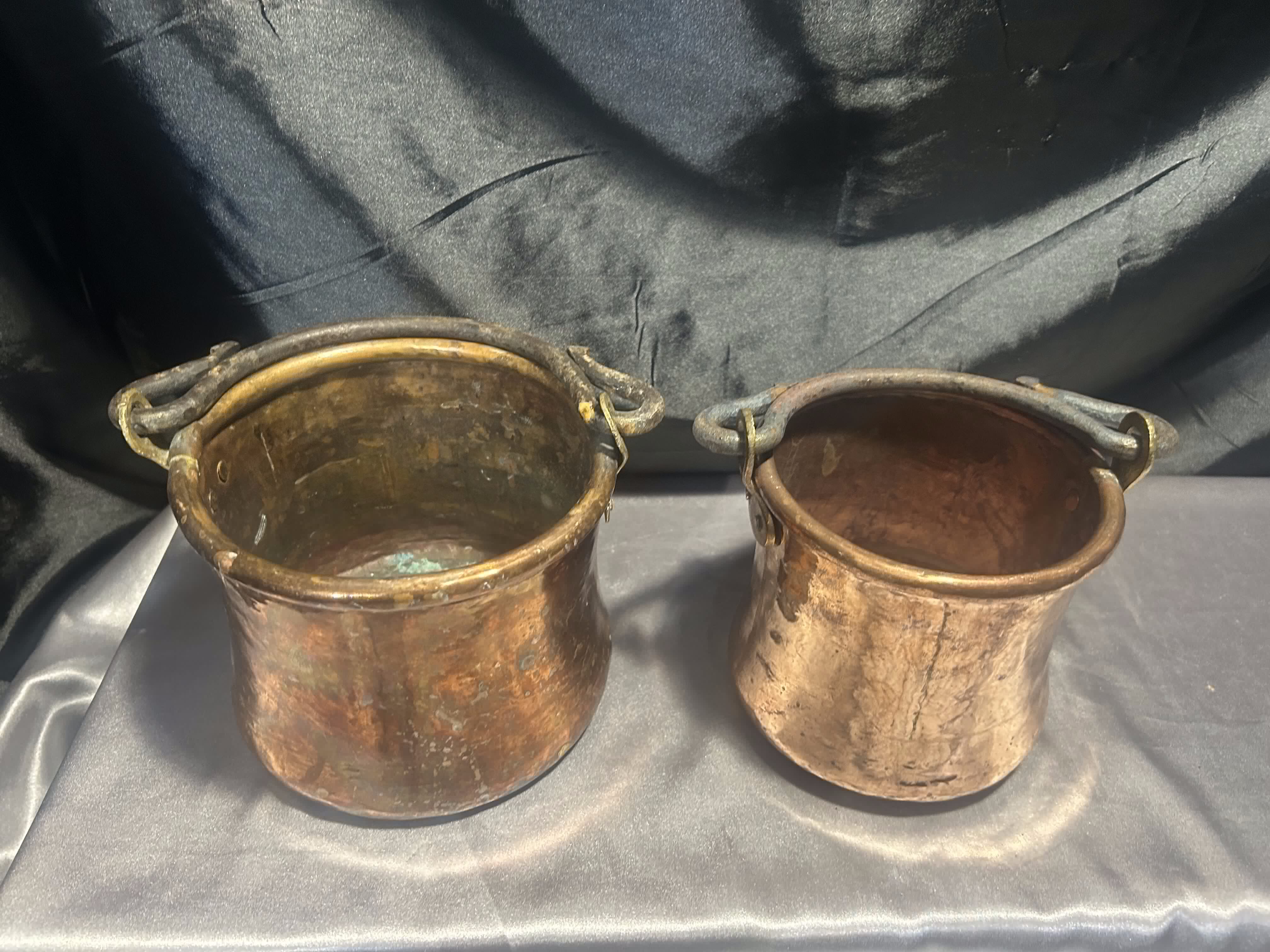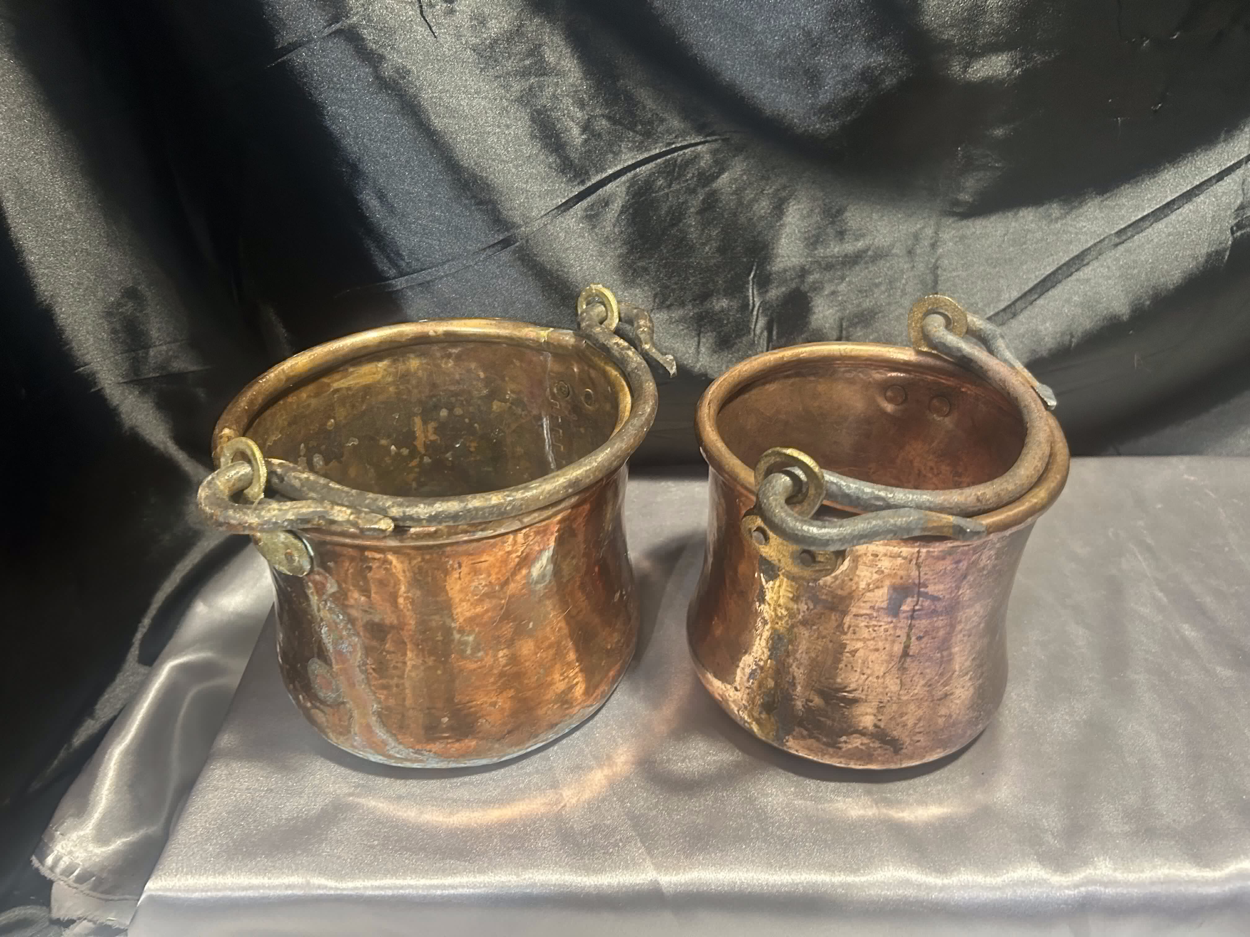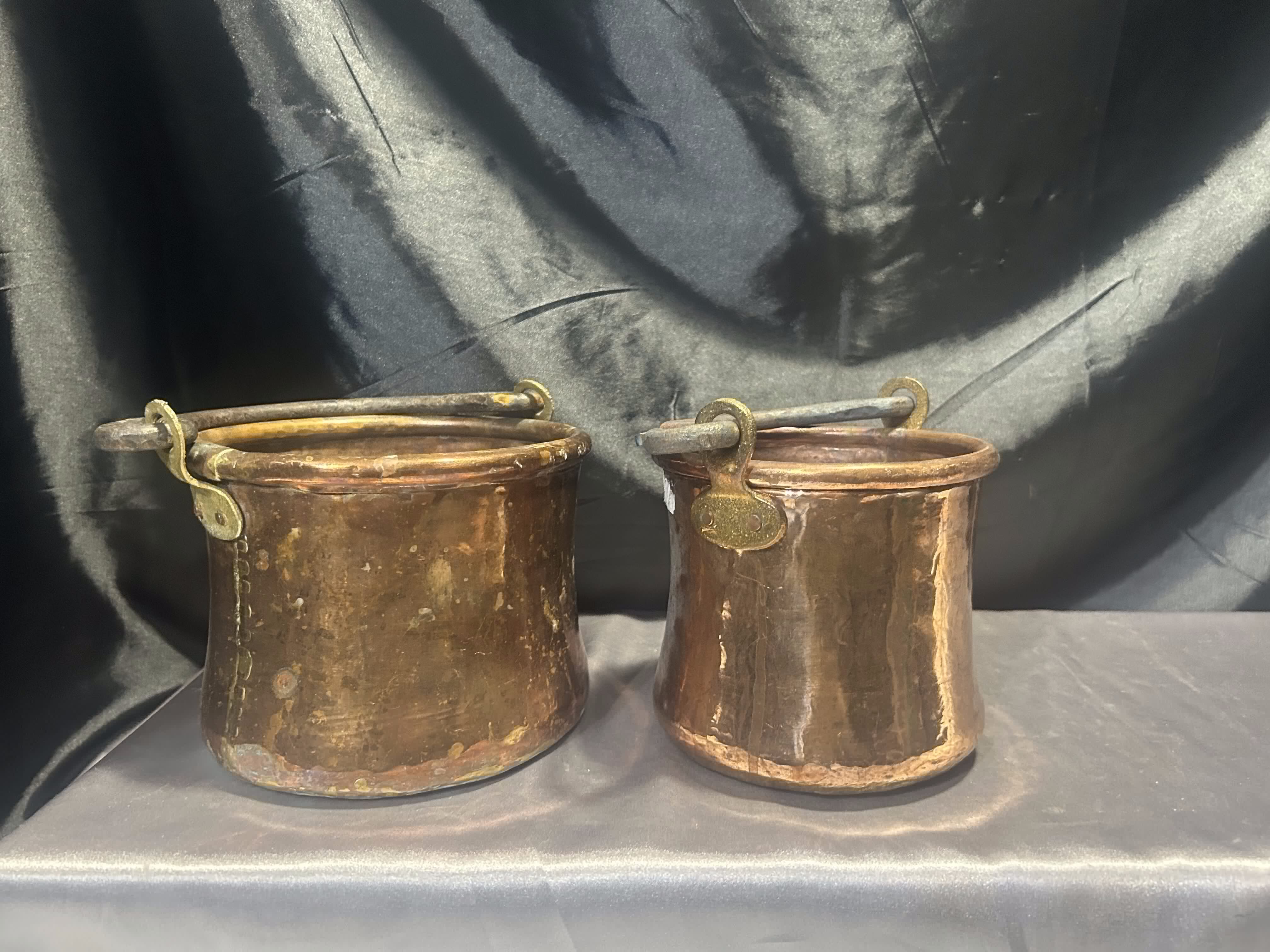 Komplet Miedzianych Kwietników – Kute Rączki – 2 Wiaderka – Styl Rustykalny