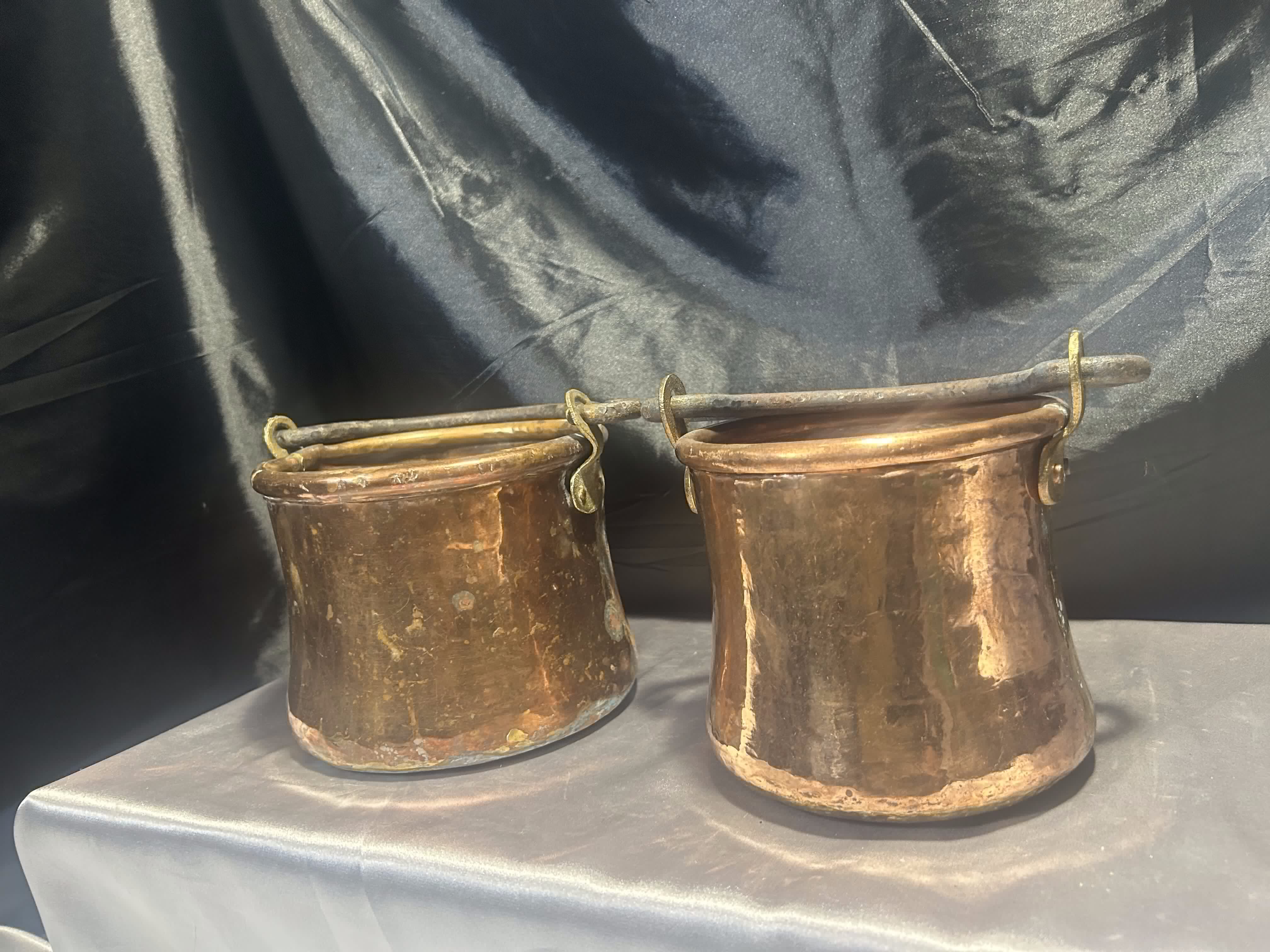 Materiał: miedź, stal (kute uchwyty)