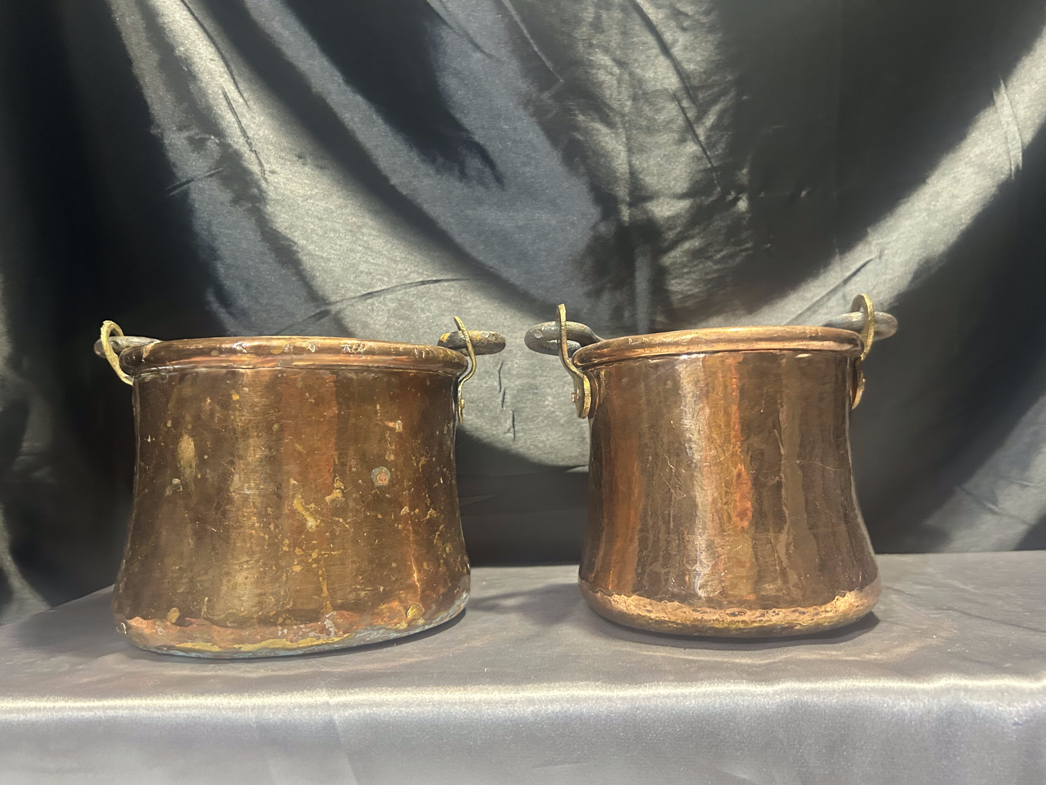 Piękny zestaw dwóch miedzianych kwietników w formie ozdobnych wiaderek, wyposażonych w ręcznie kute rączki. Dzięki praktycznym uchwytom kwietniki można zarówno zawiesić, jak i postawić, tworząc wyjątkową dekorację wnętrza, tarasu lub ogrodu. Starannie wykonane, z piękną patyną miedzi i eleganckim wykończeniem, idealnie wpisują się w styl rustykalny, retro oraz vintage.