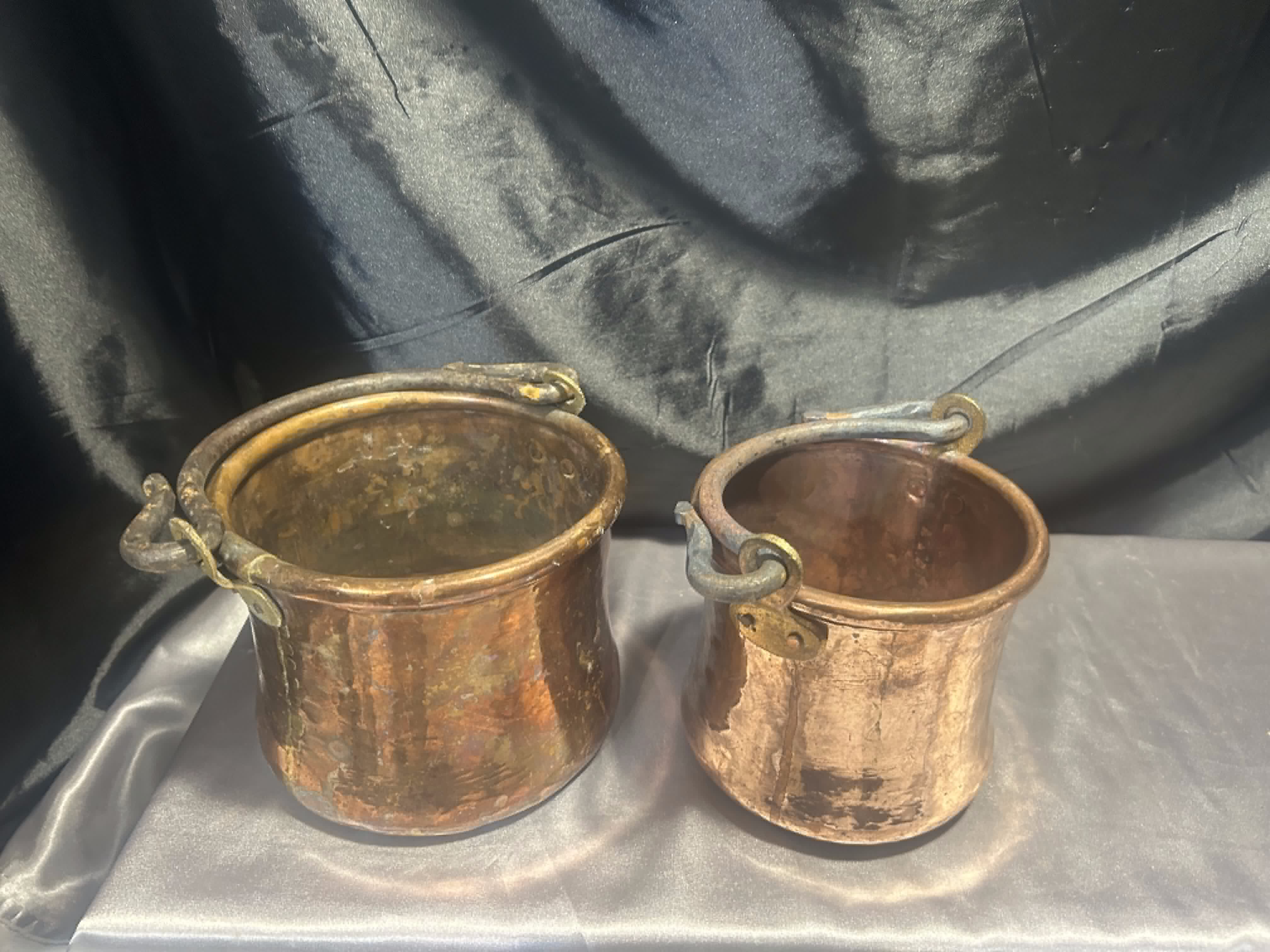 Typ: komplet miedzianych kwietników/wiaderek z kutymi rączkami