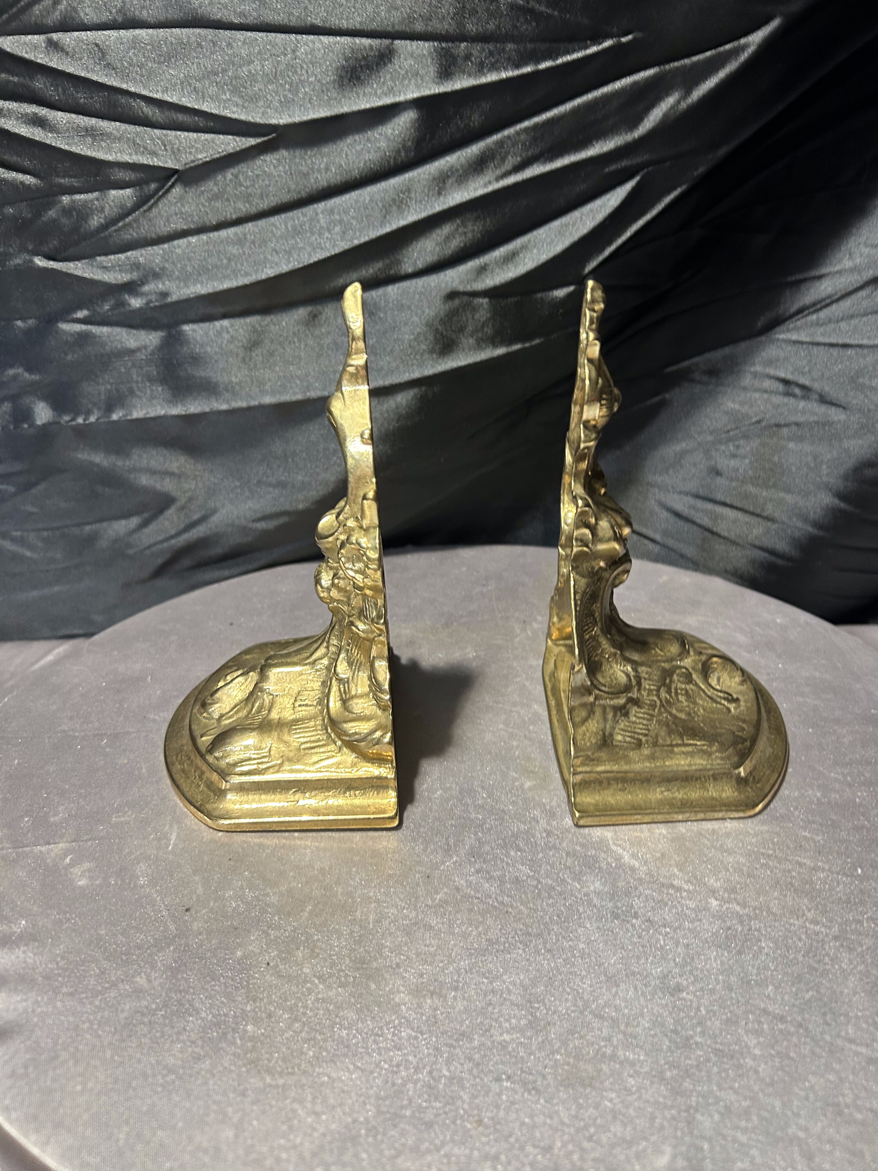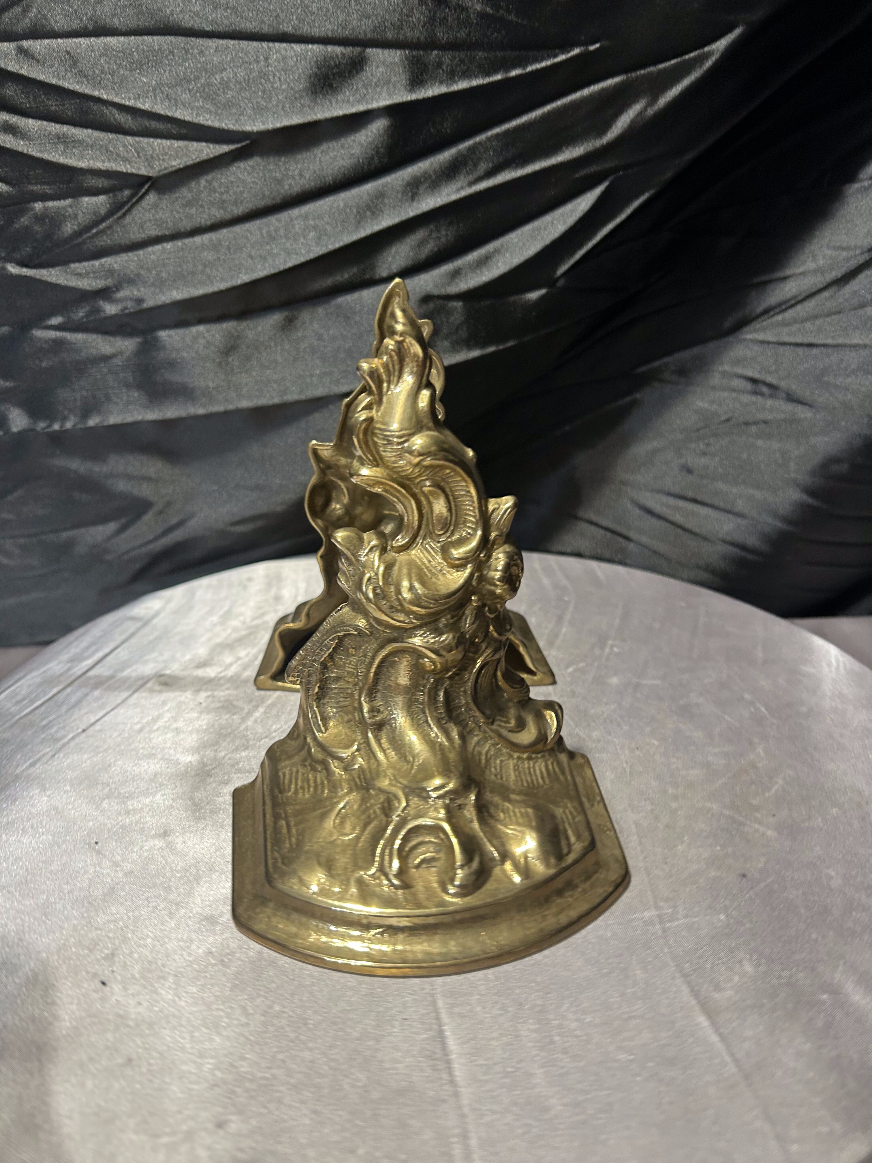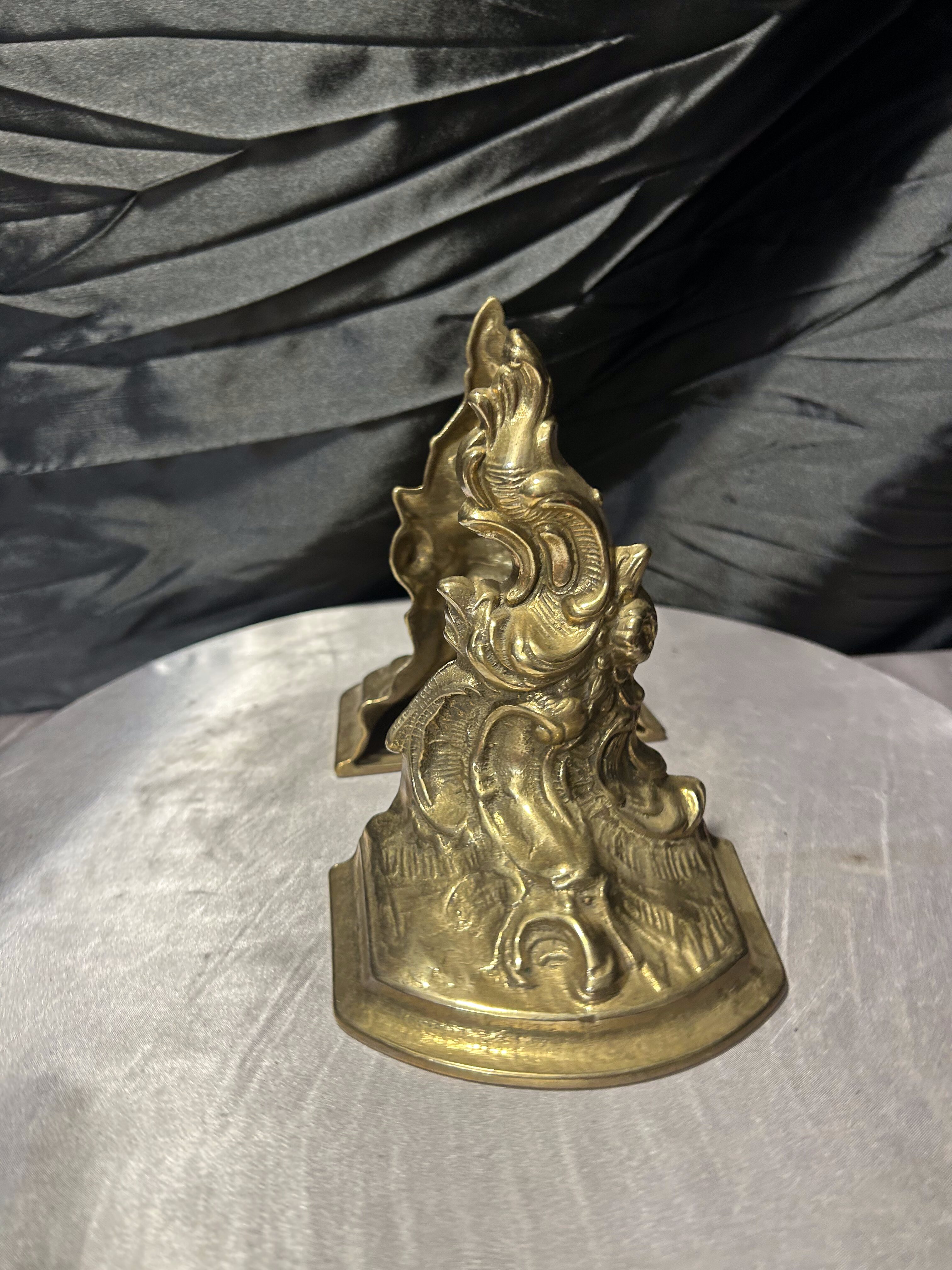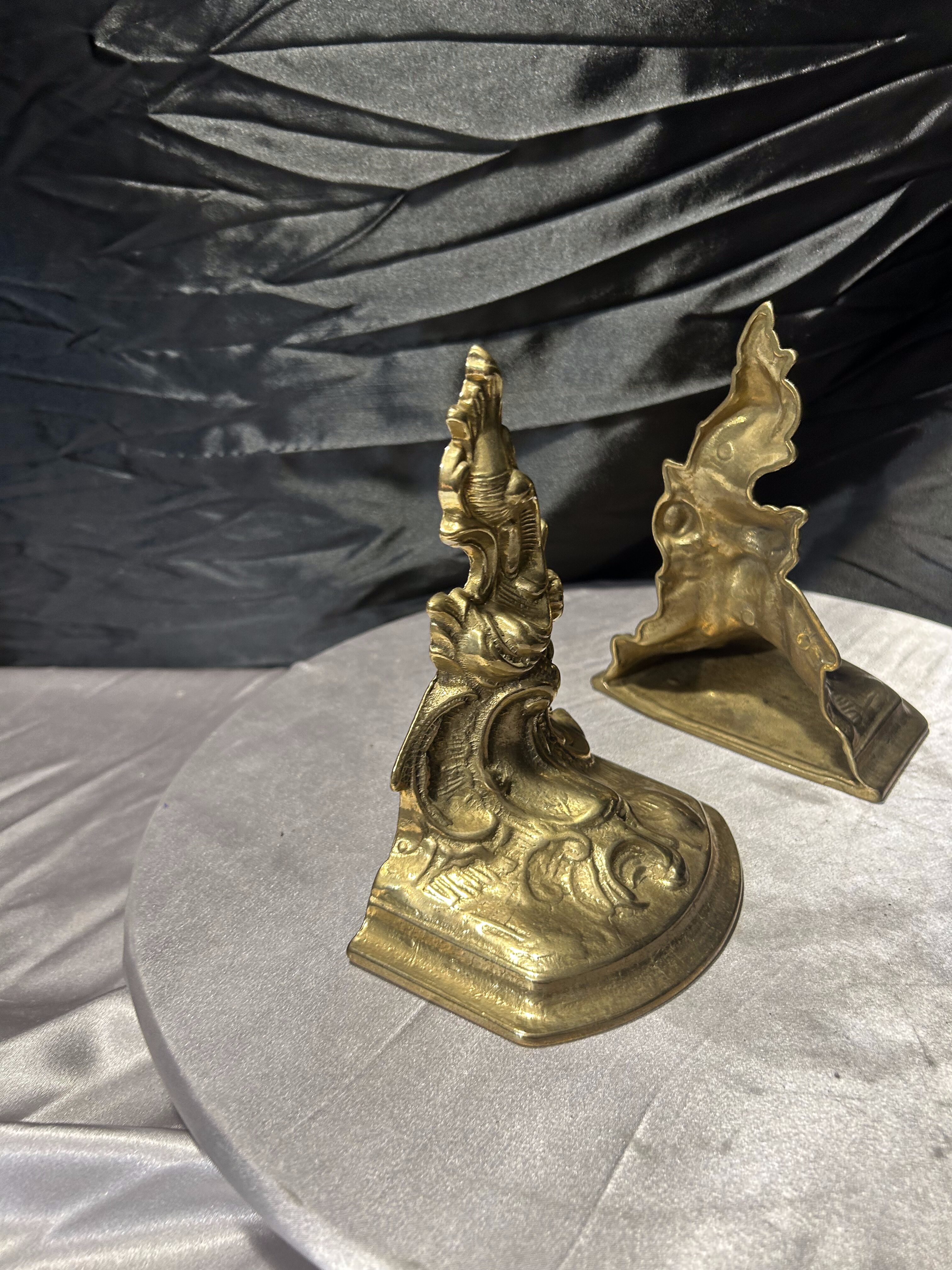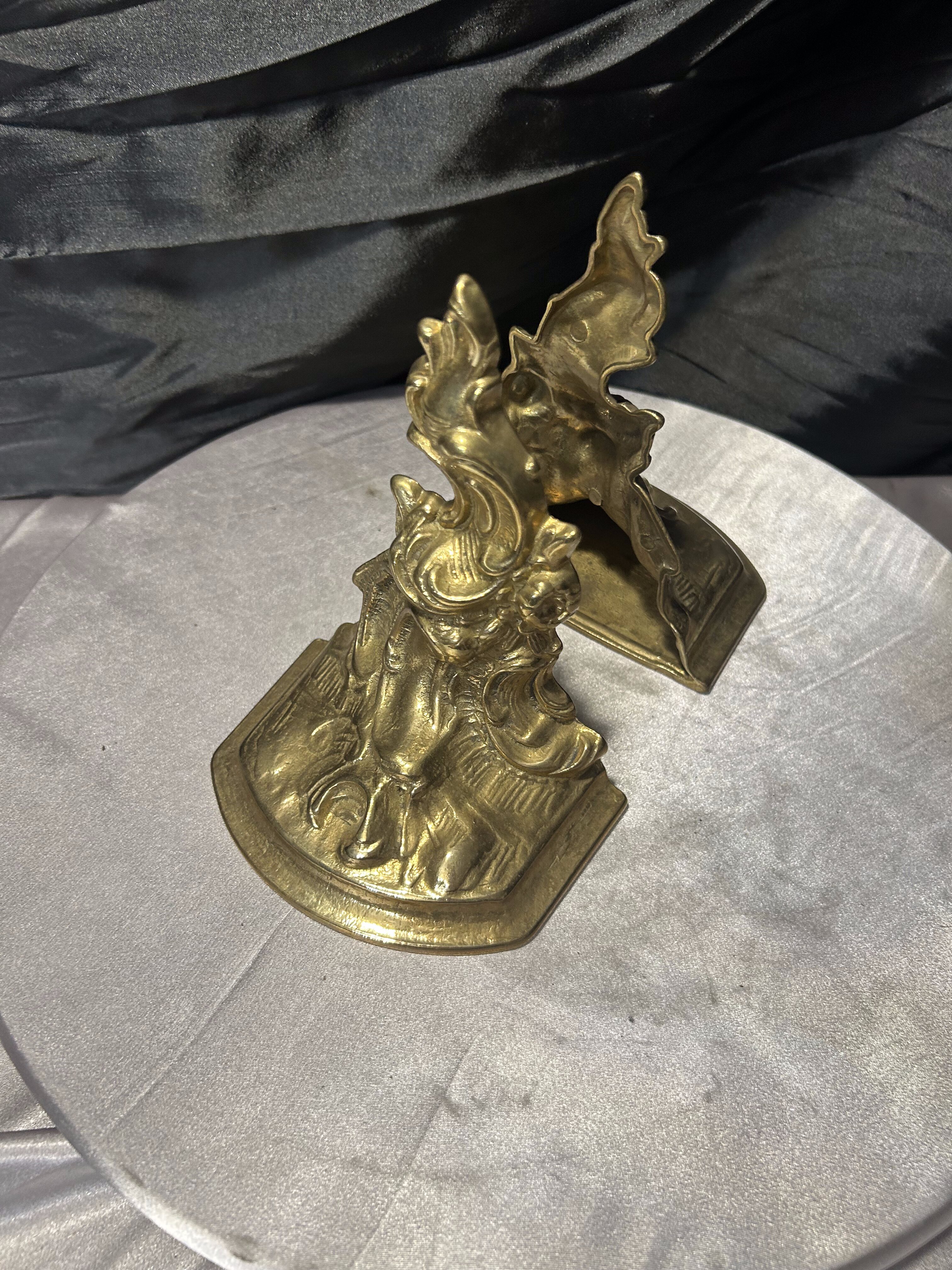Efektowny komplet dwóch ciężkich podstawek na książki wykonanych z mosiądzu. Bogato zdobiona forma o dekoracyjnym, niemal barokowym charakterze sprawia, że są to nie tylko praktyczne podpórki, ale również wyrazisty element wystroju wnętrza.