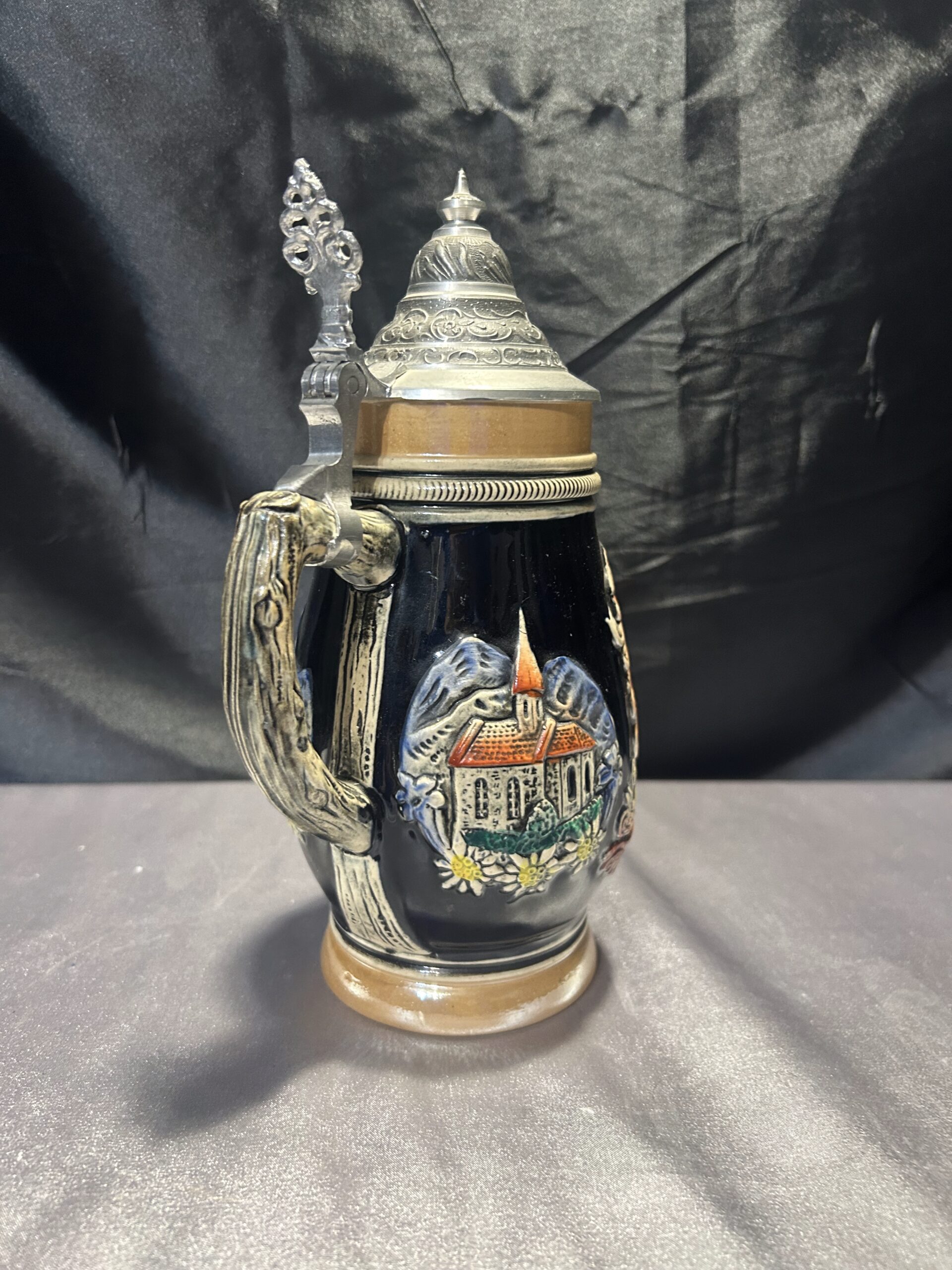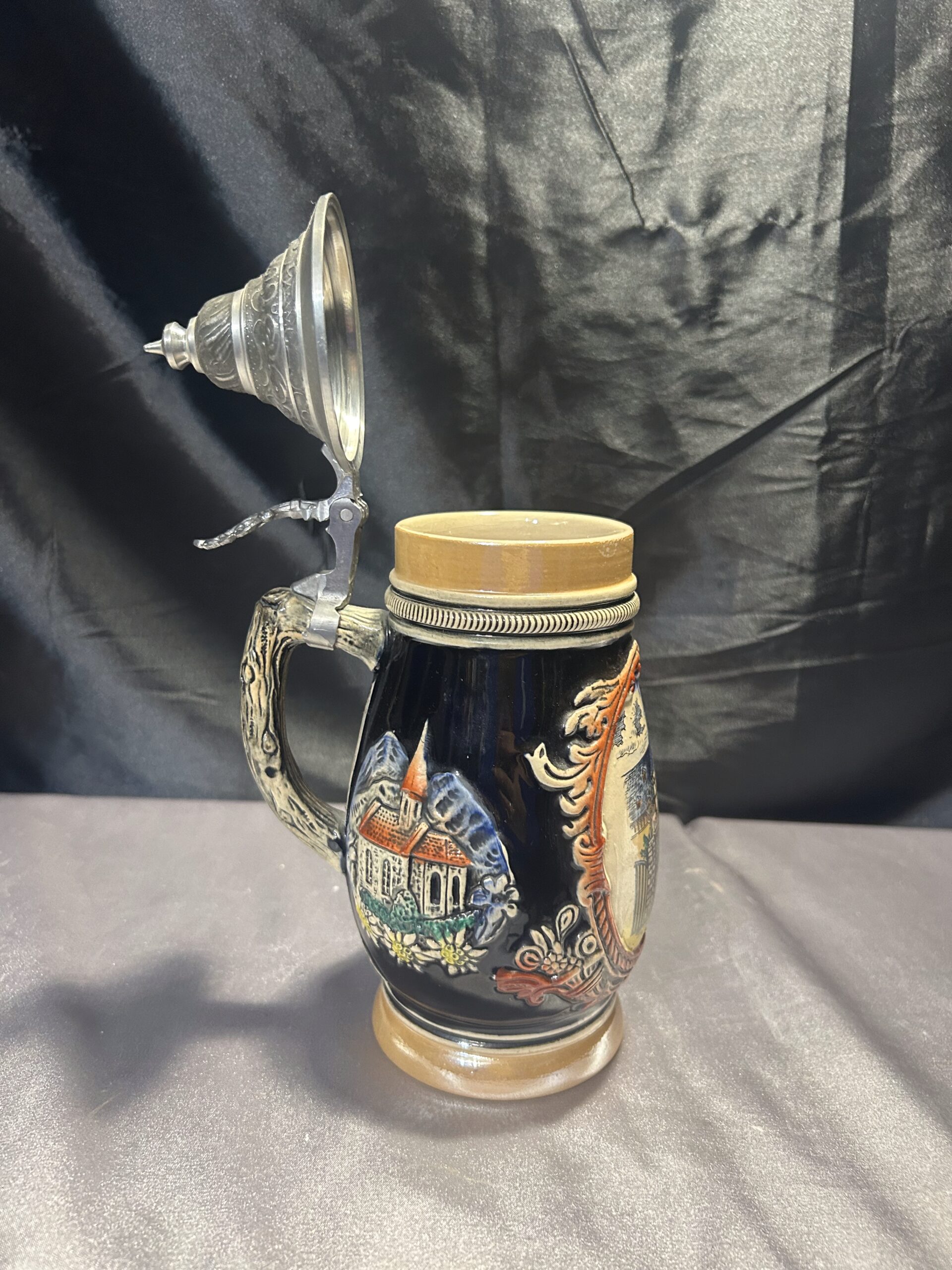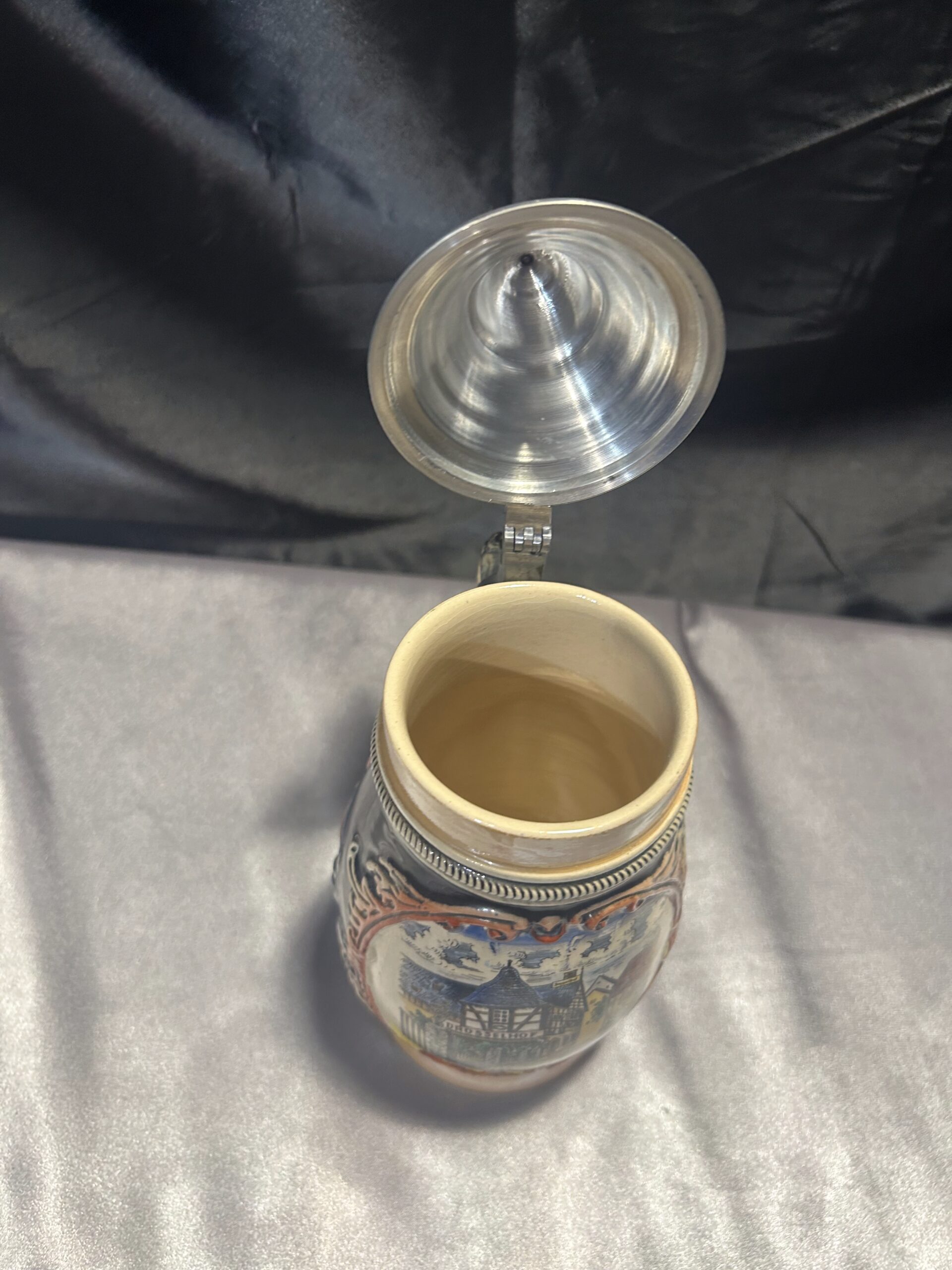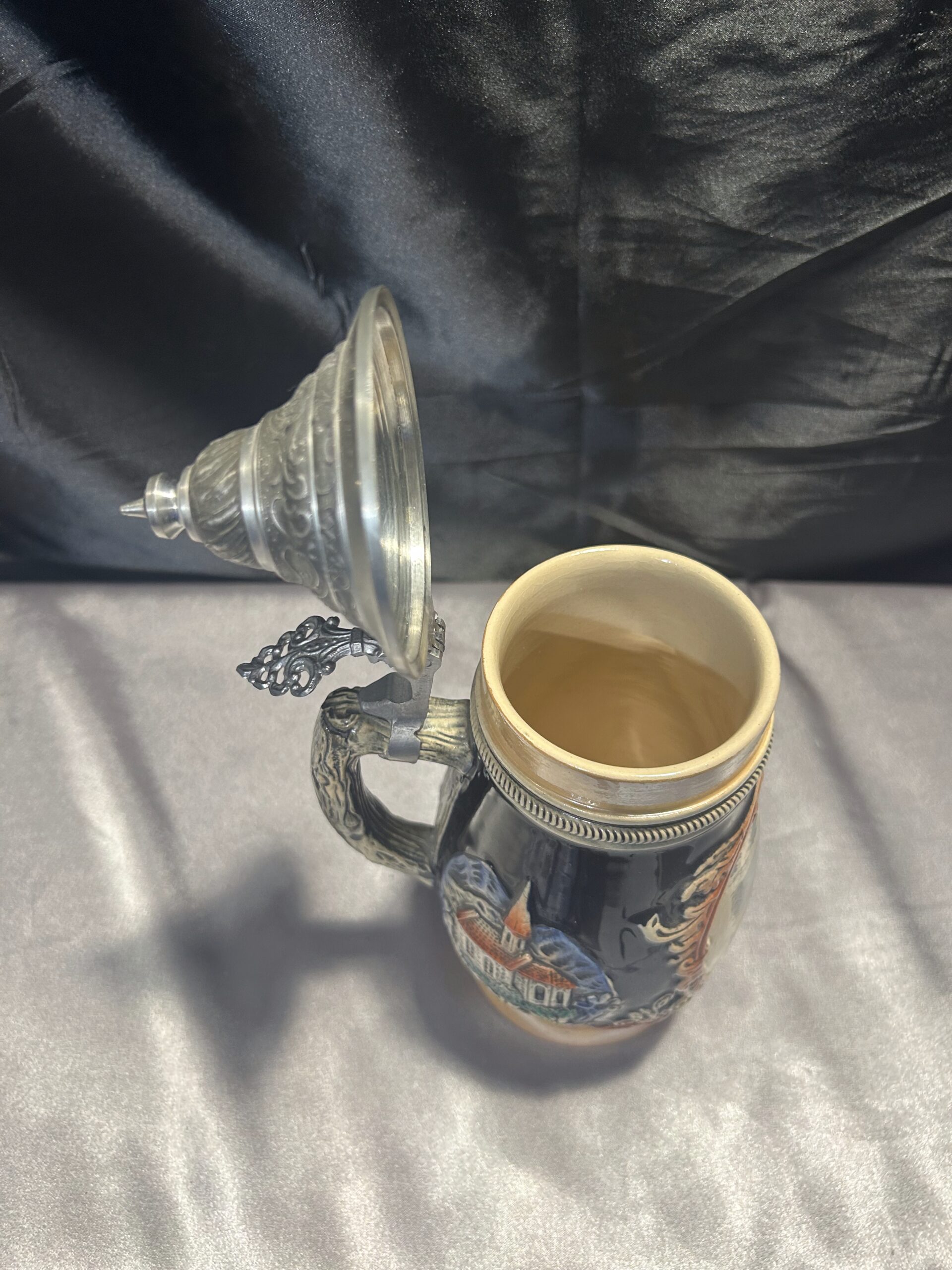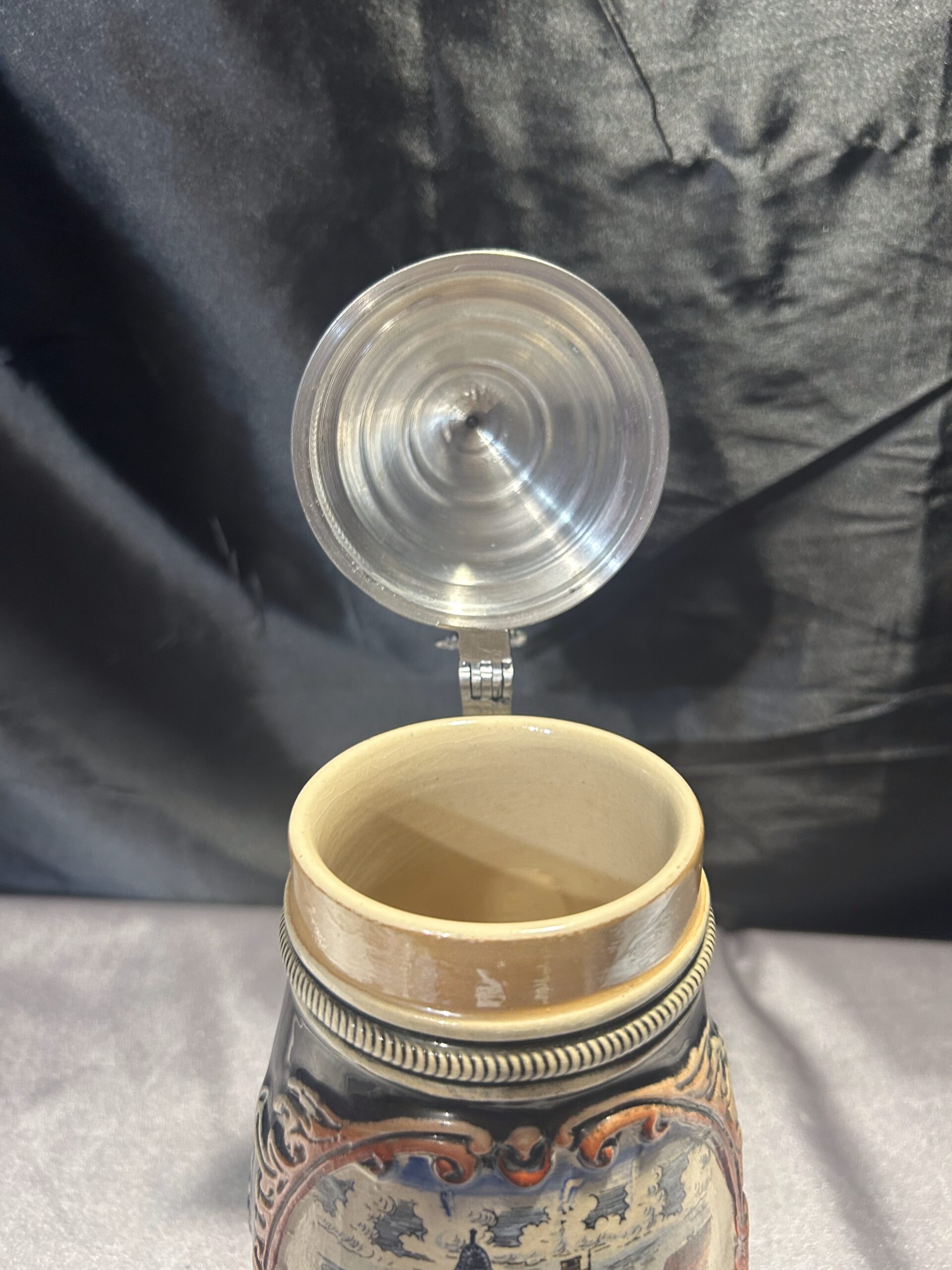 Ten kufel ceramiczny to idealne połączenie tradycji i funkcjonalności. Wykonany w Niemczech Zachodnich, zachwyca solidnym wykonaniem i klasycznym designem. Pokrywka i rączka z cyny dodają mu wyjątkowego charakteru, a ceramiczny korpus zapewnia trwałość.