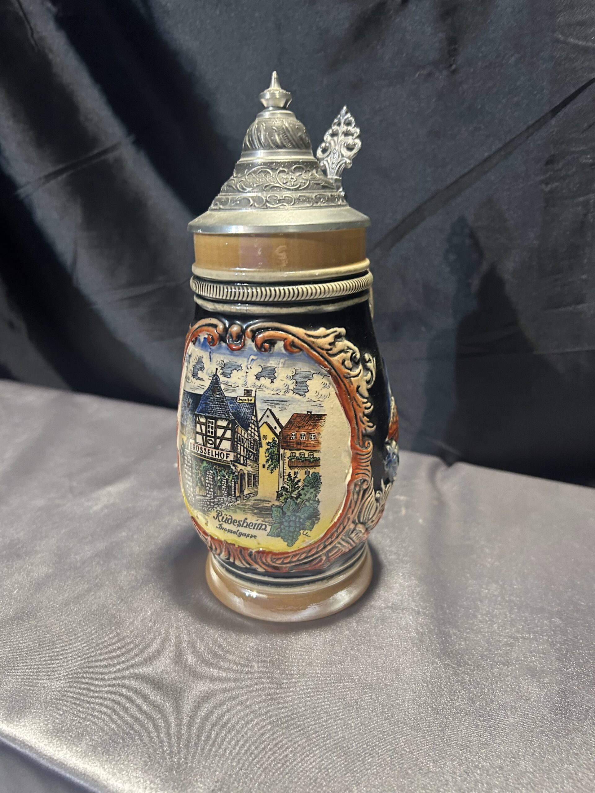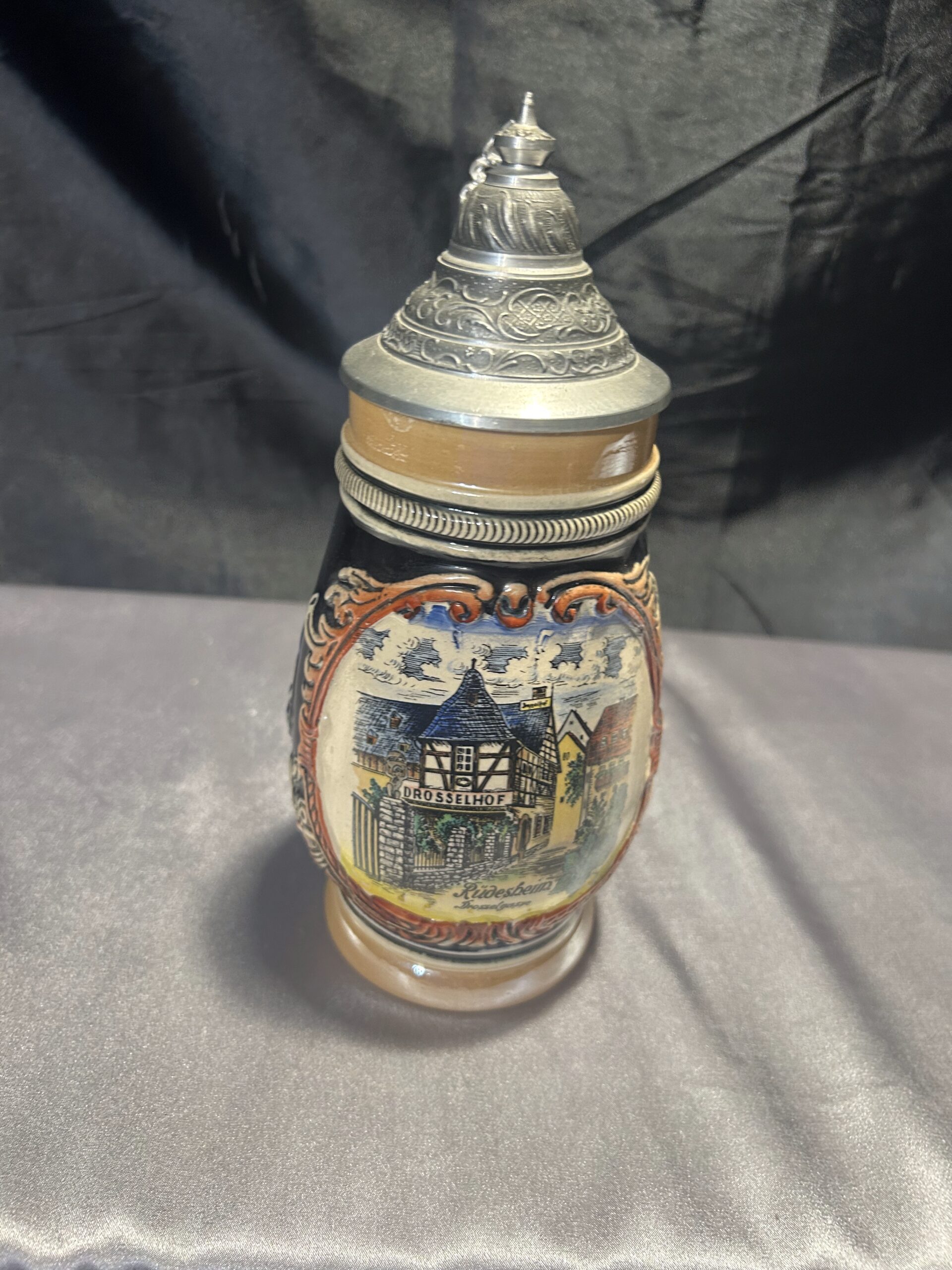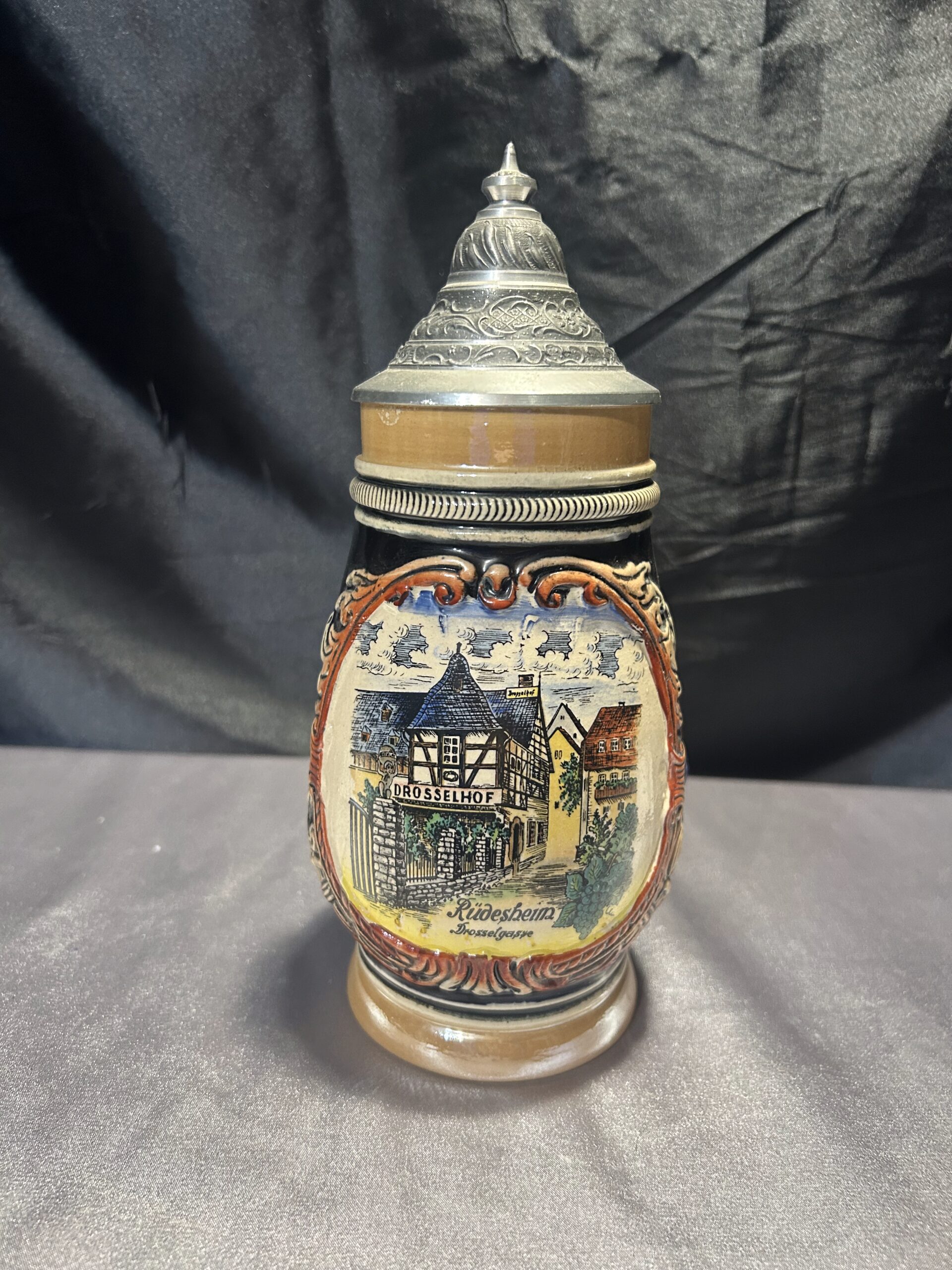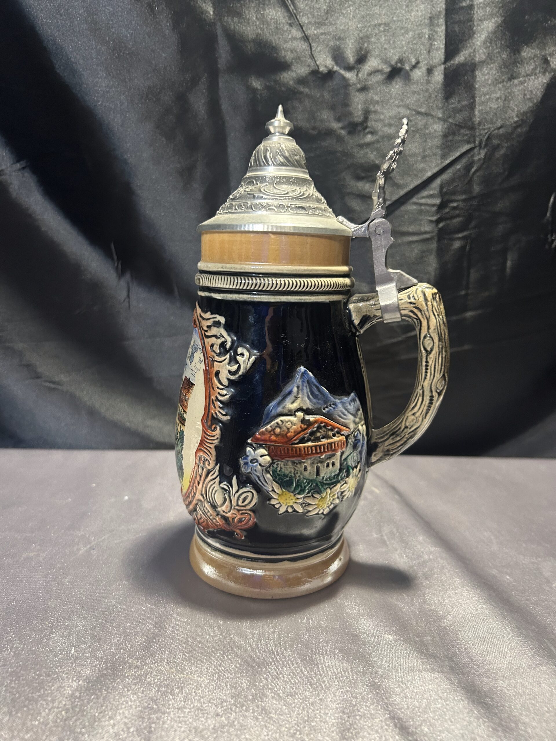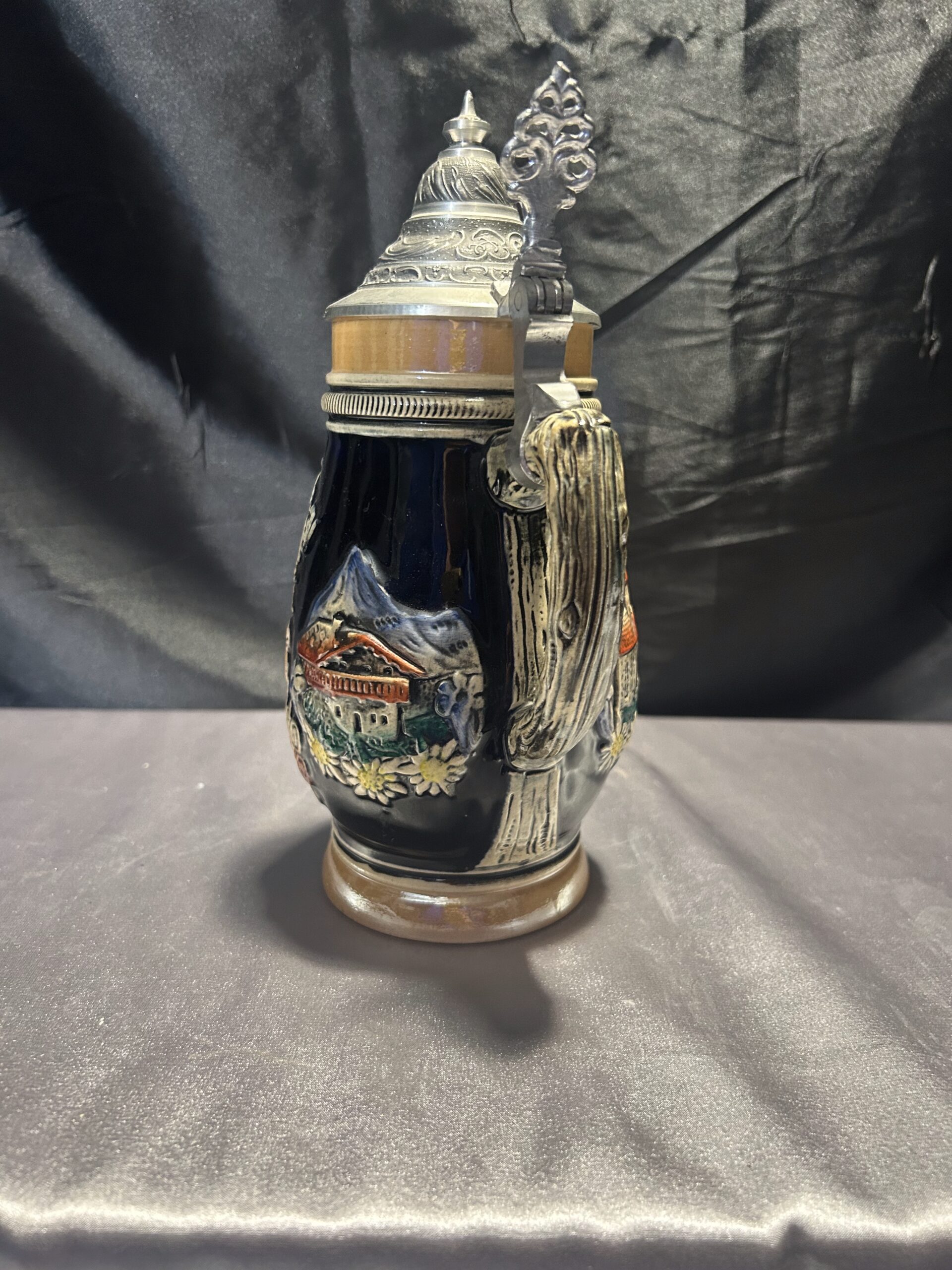 Ten kufel ceramiczny to idealne połączenie tradycji i funkcjonalności. Wykonany w Niemczech Zachodnich, zachwyca solidnym wykonaniem i klasycznym designem. Pokrywka i rączka z cyny dodają mu wyjątkowego charakteru, a ceramiczny korpus zapewnia trwałość.