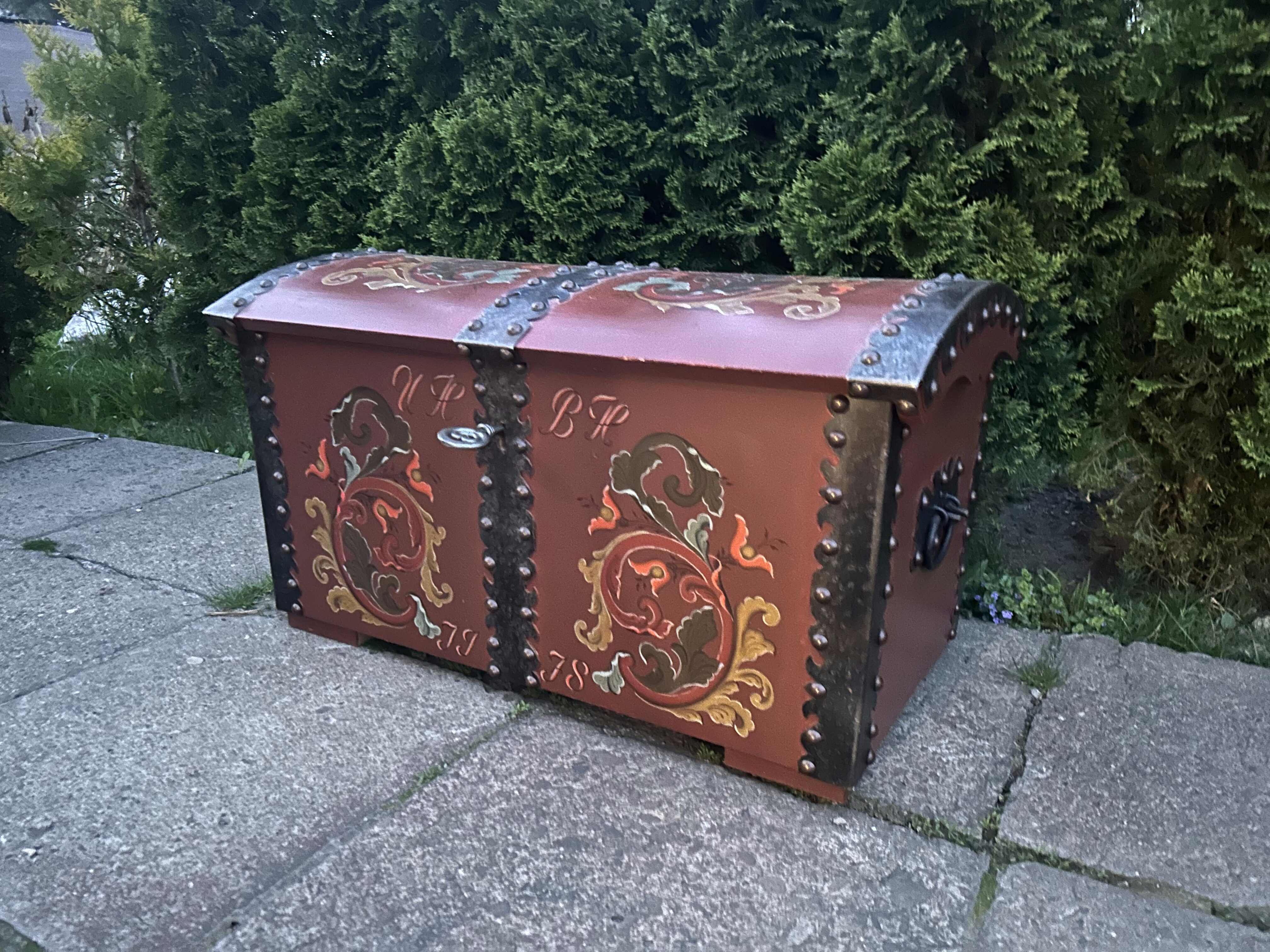 Ten piękny kufer to coś więcej niż mebel – to kawałek dziedzictwa zamknięty w drewnie i barwach tradycji. Idealny dla miłośników rękodzieła, historii i stylu vintage – będzie ozdobą każdego wnętrza.