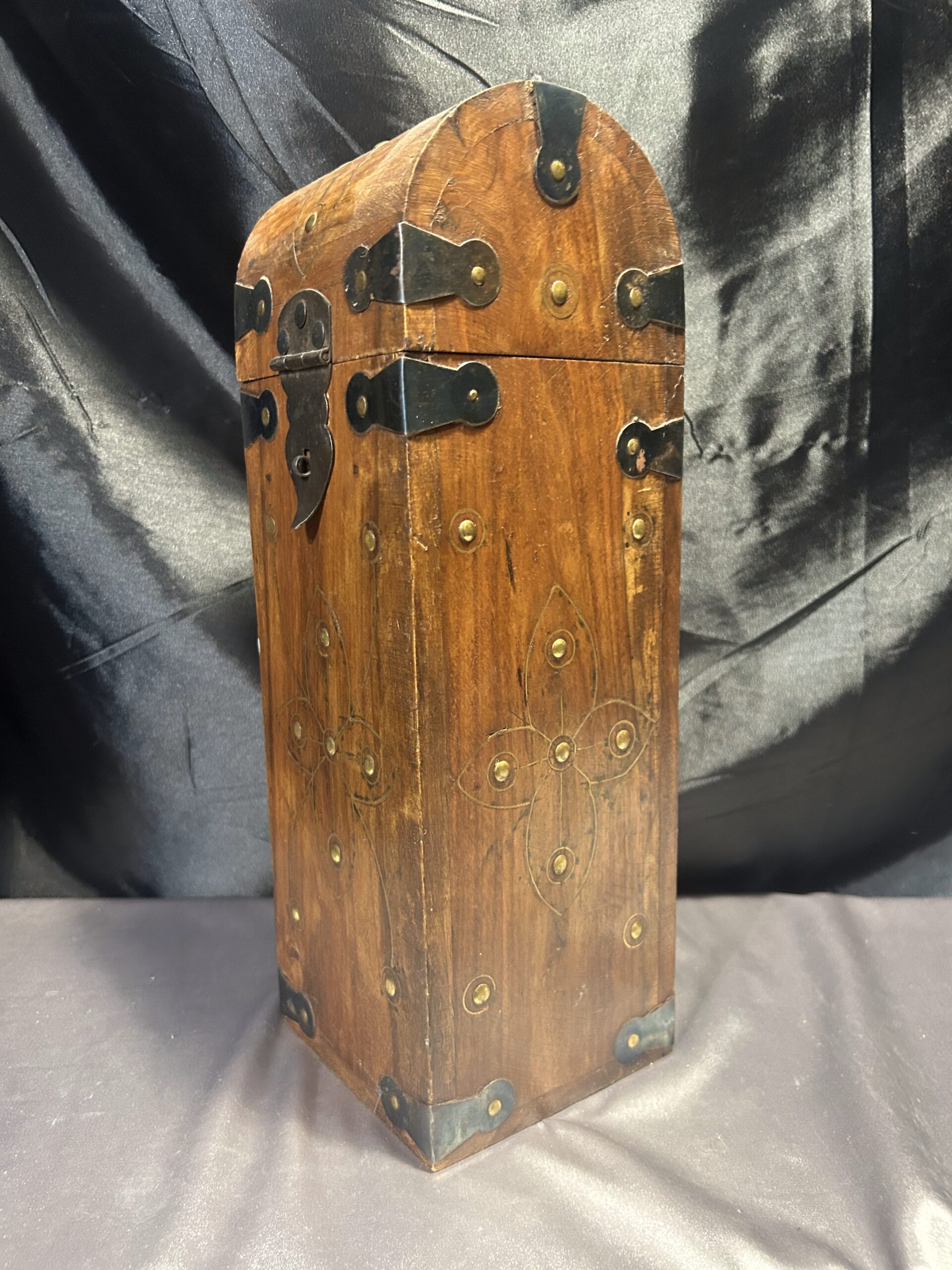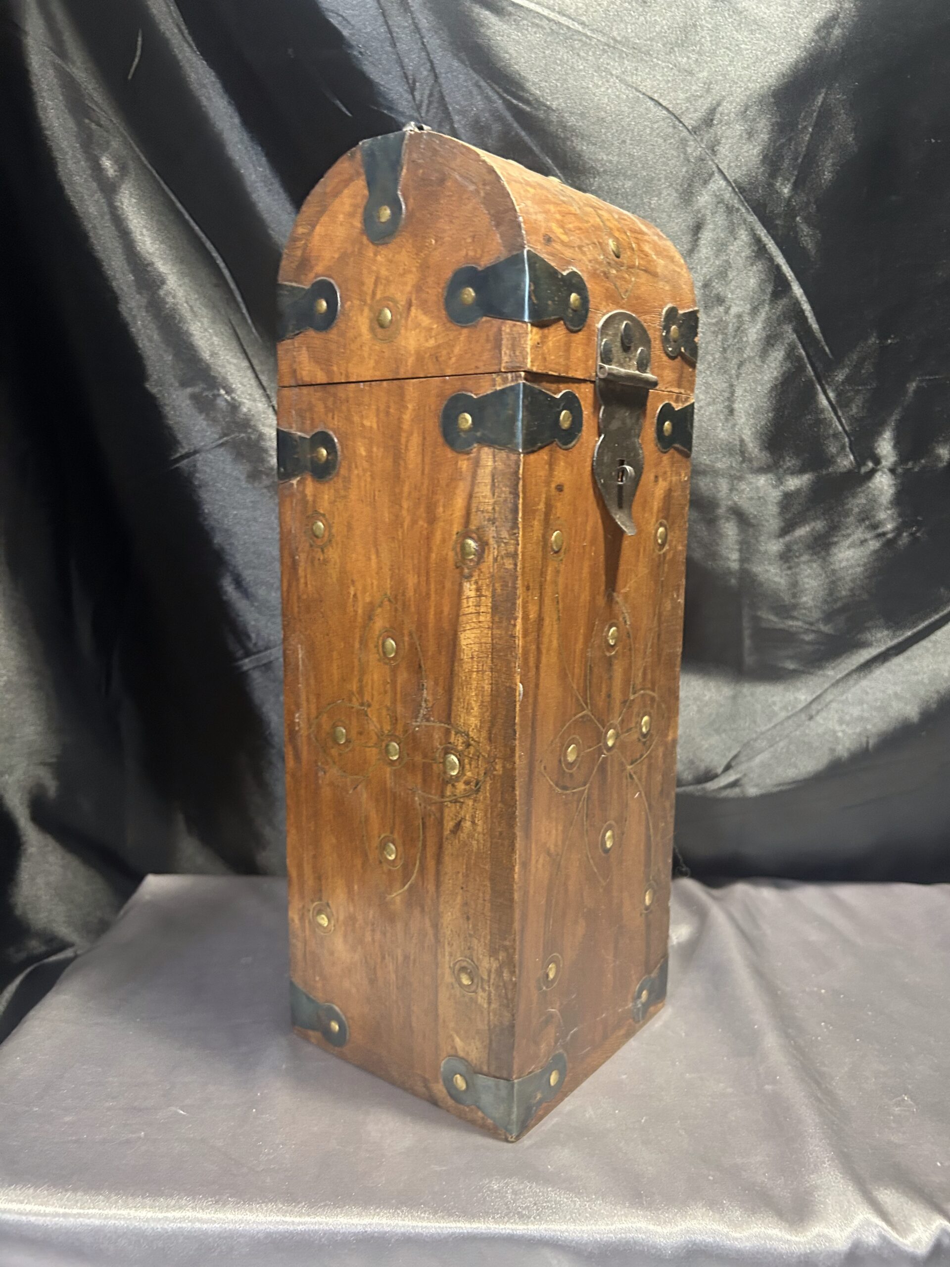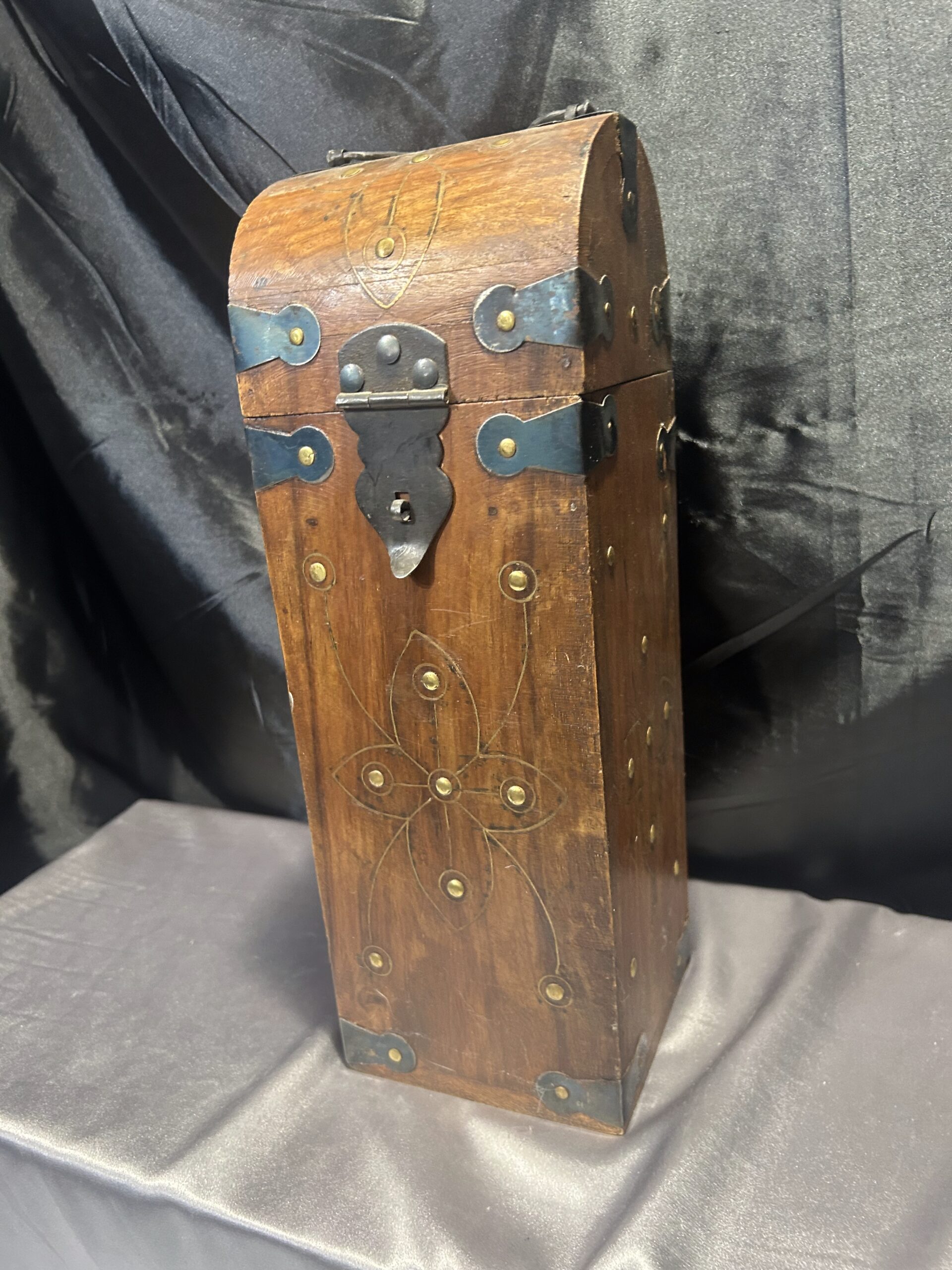 Kuferek Drewniany – Skrzyneczka z Ćwiekami i Kutymi Akcentami