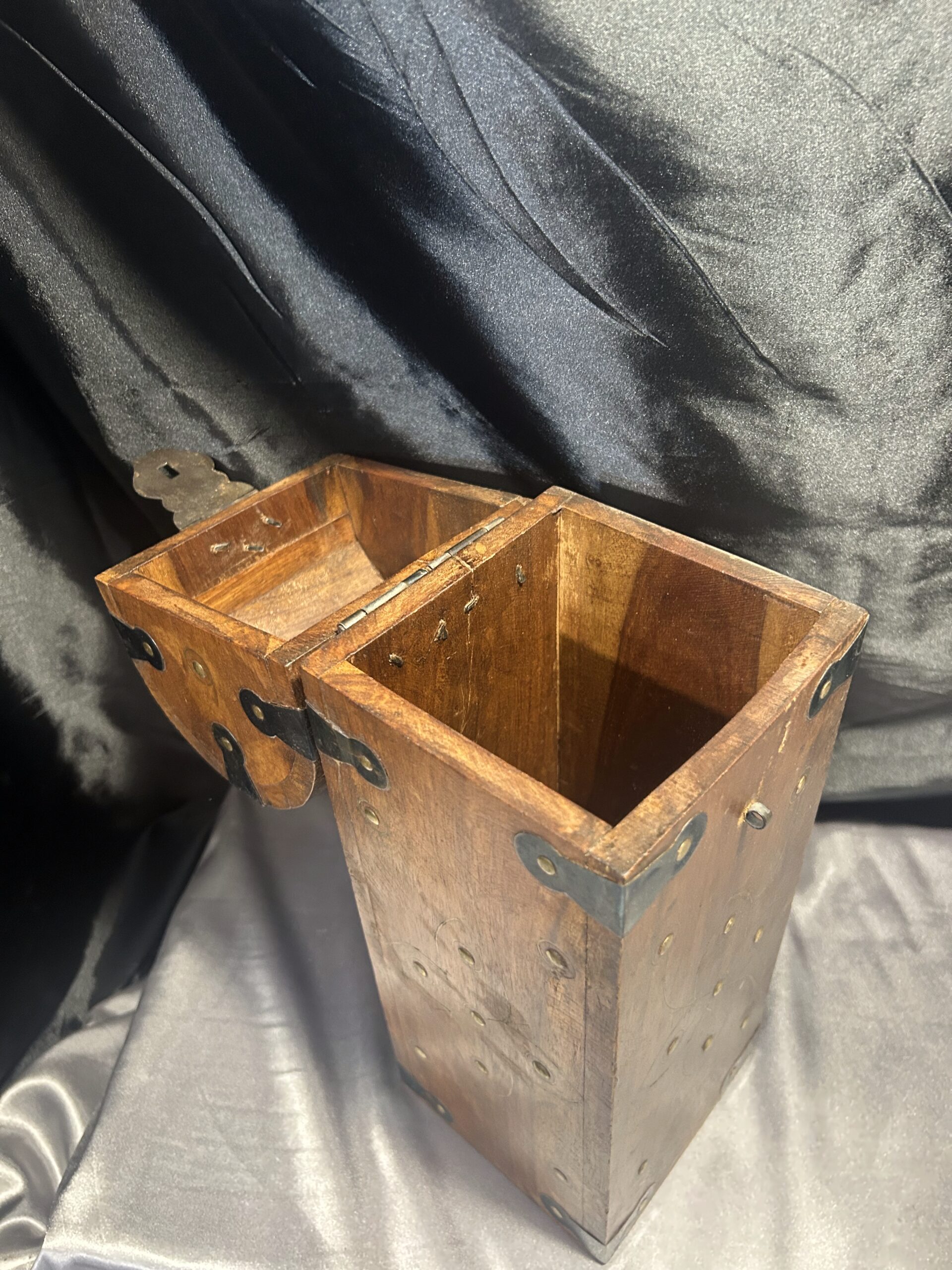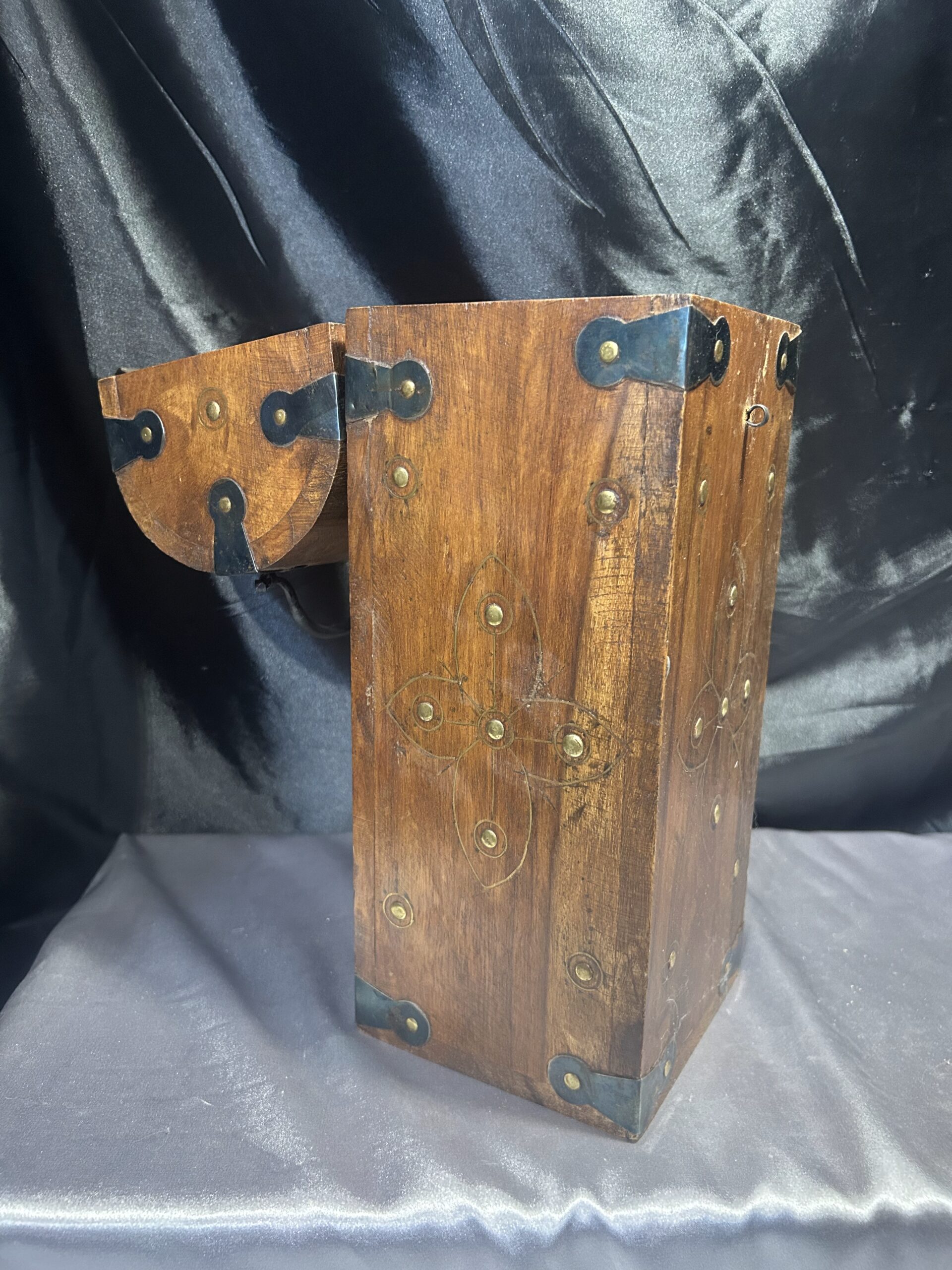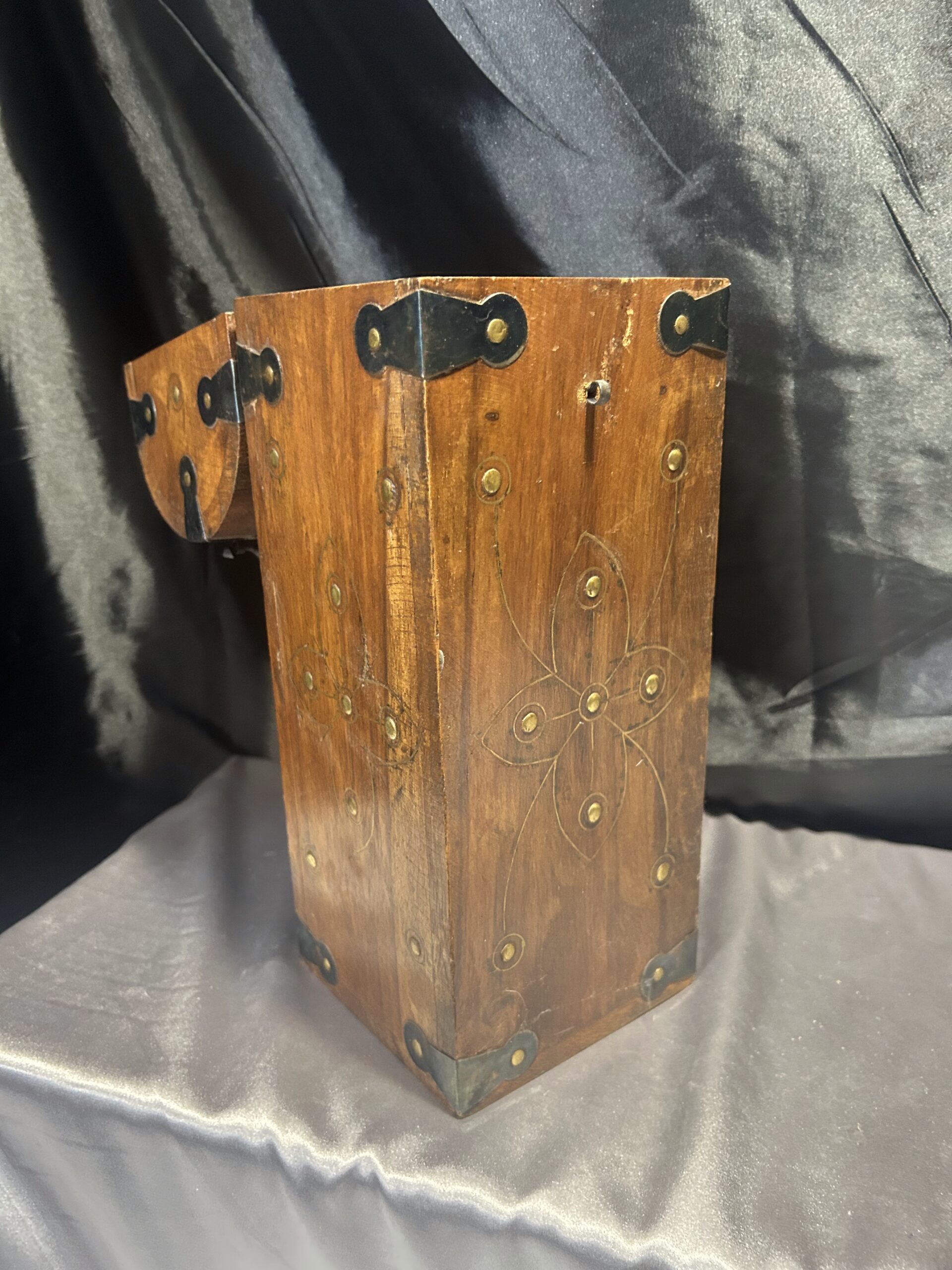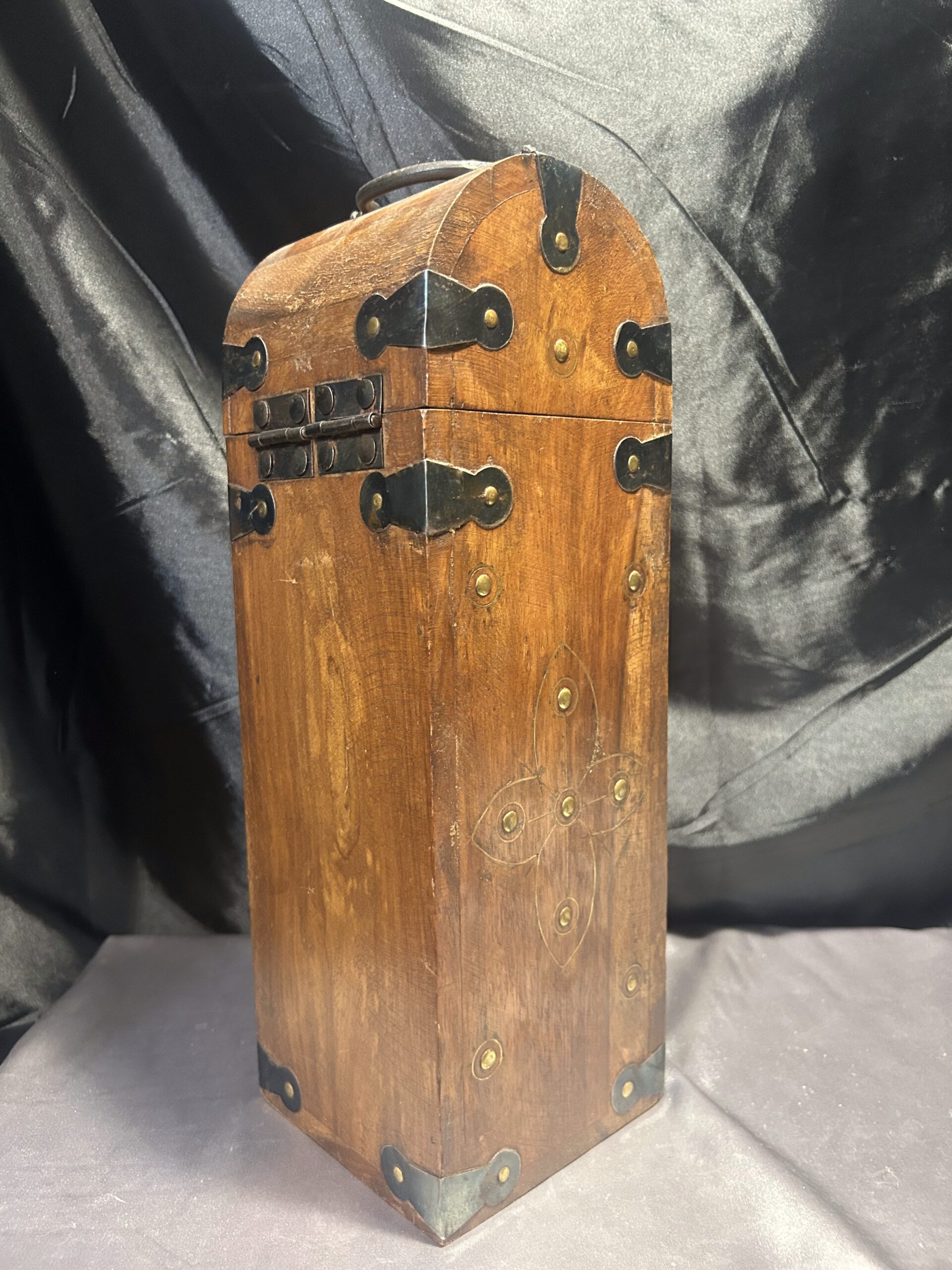 Kuferek Drewniany – Skrzyneczka z Ćwiekami i Kutymi Akcentami