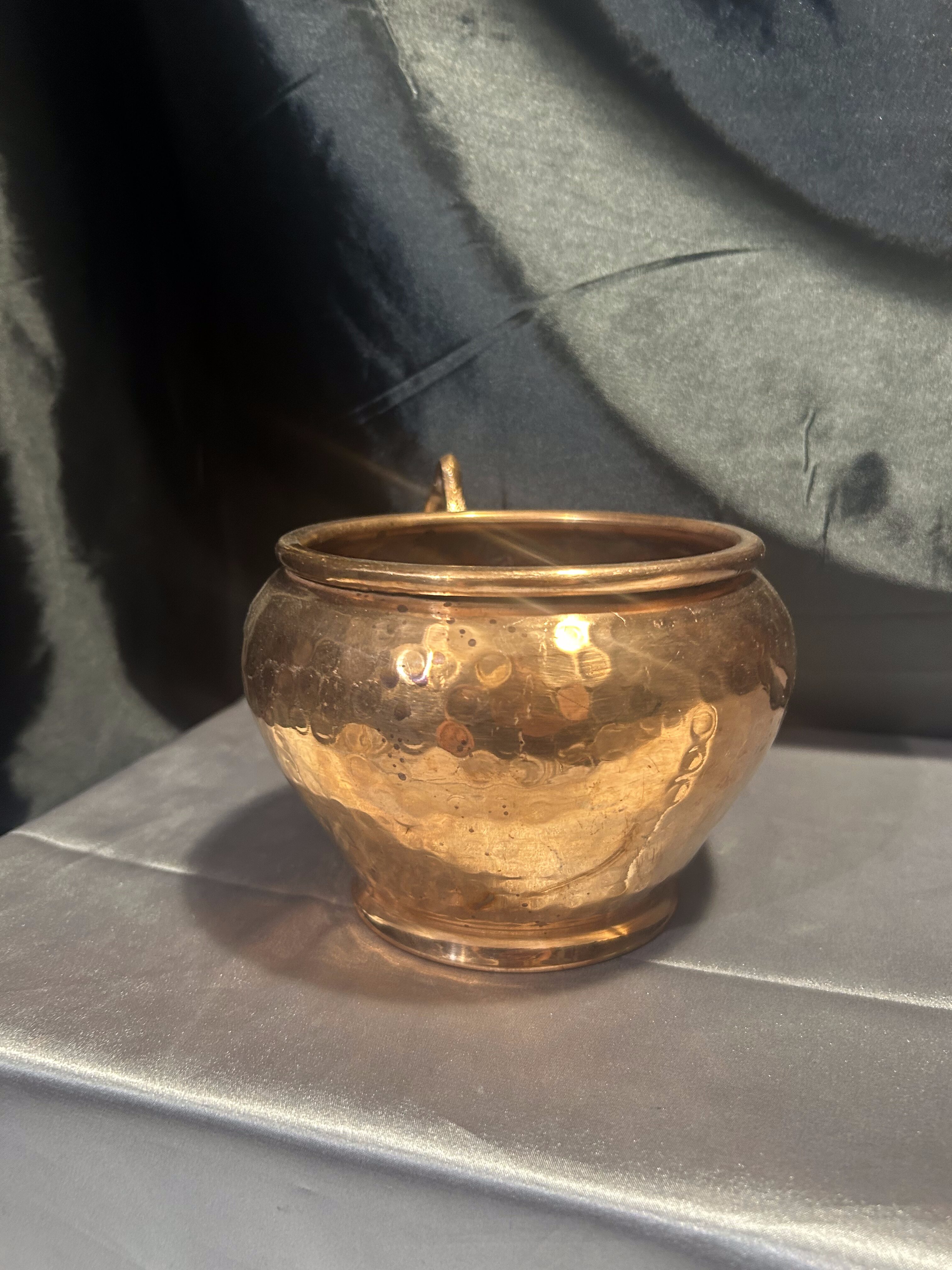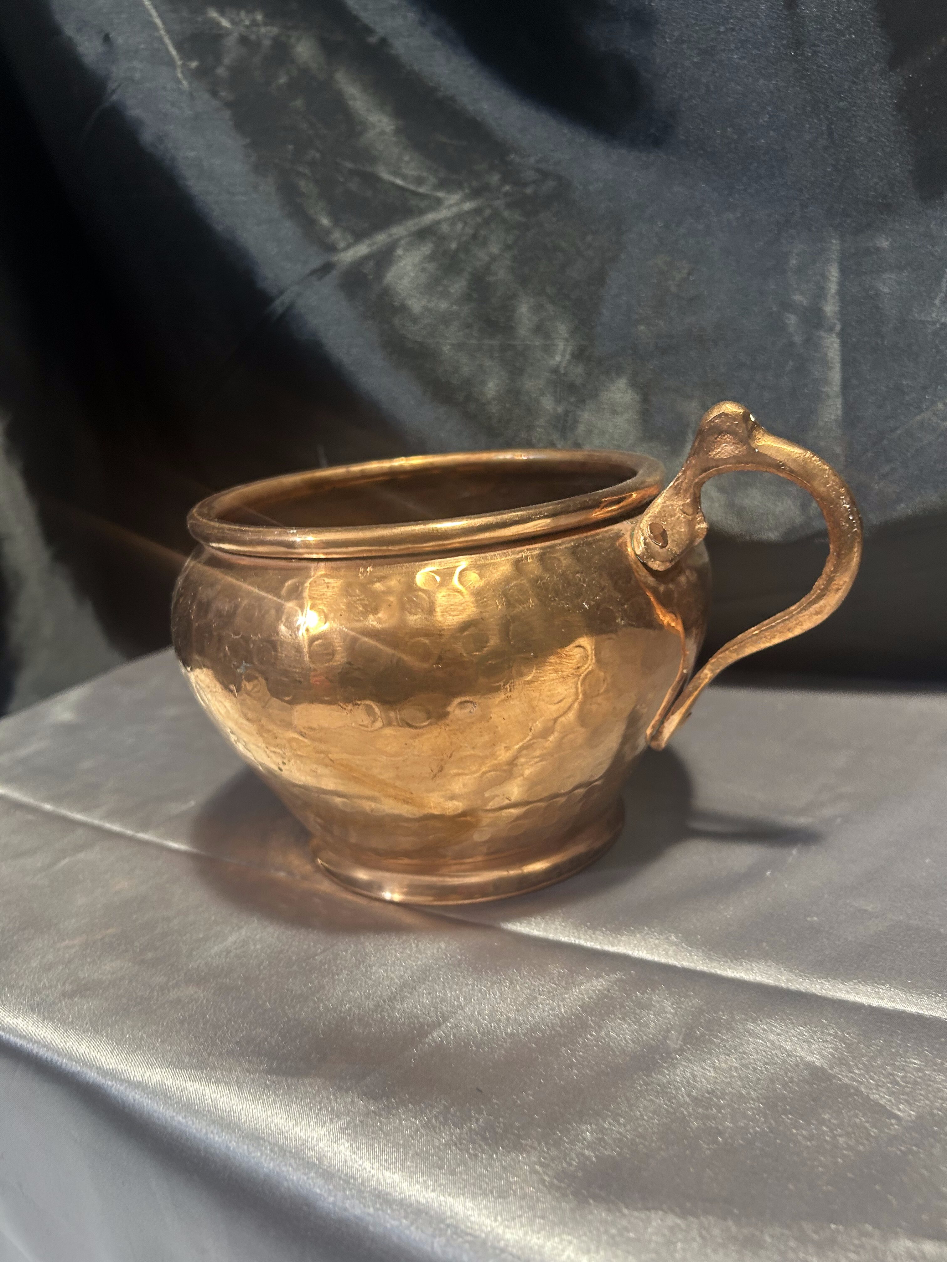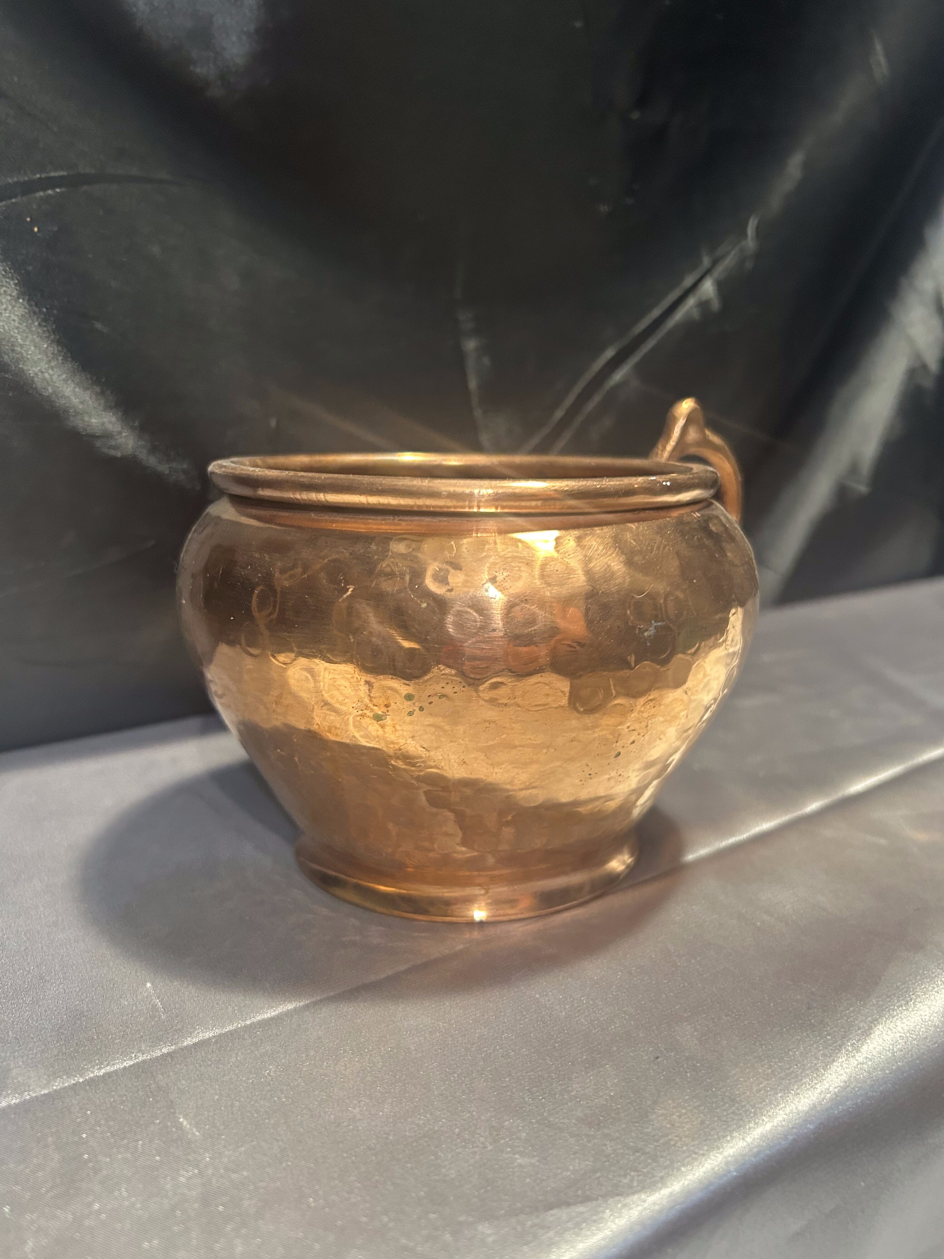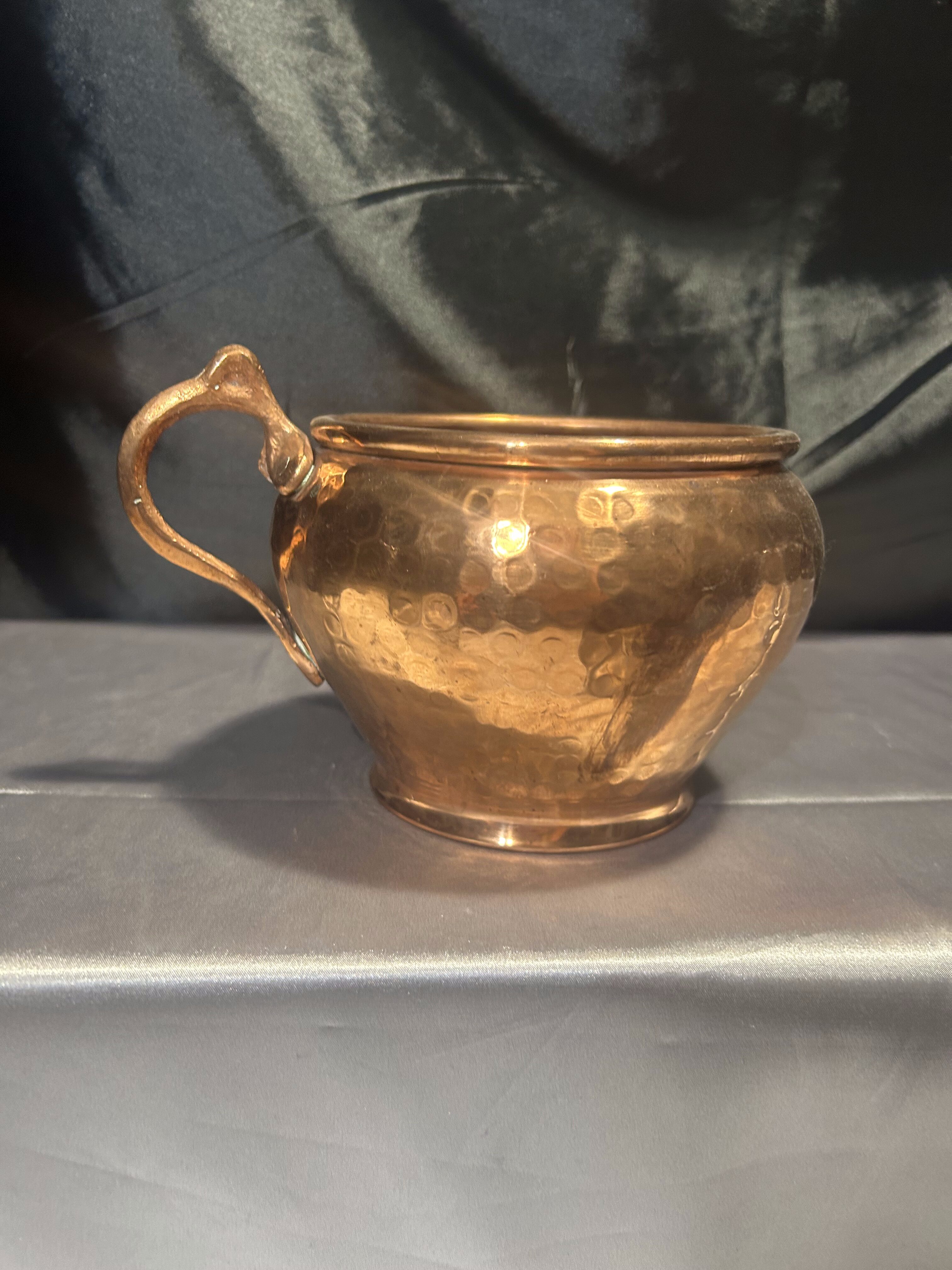 Kwietnik miedziany – Młotkowany – Forma kubka z uchem – Styl rustykalny