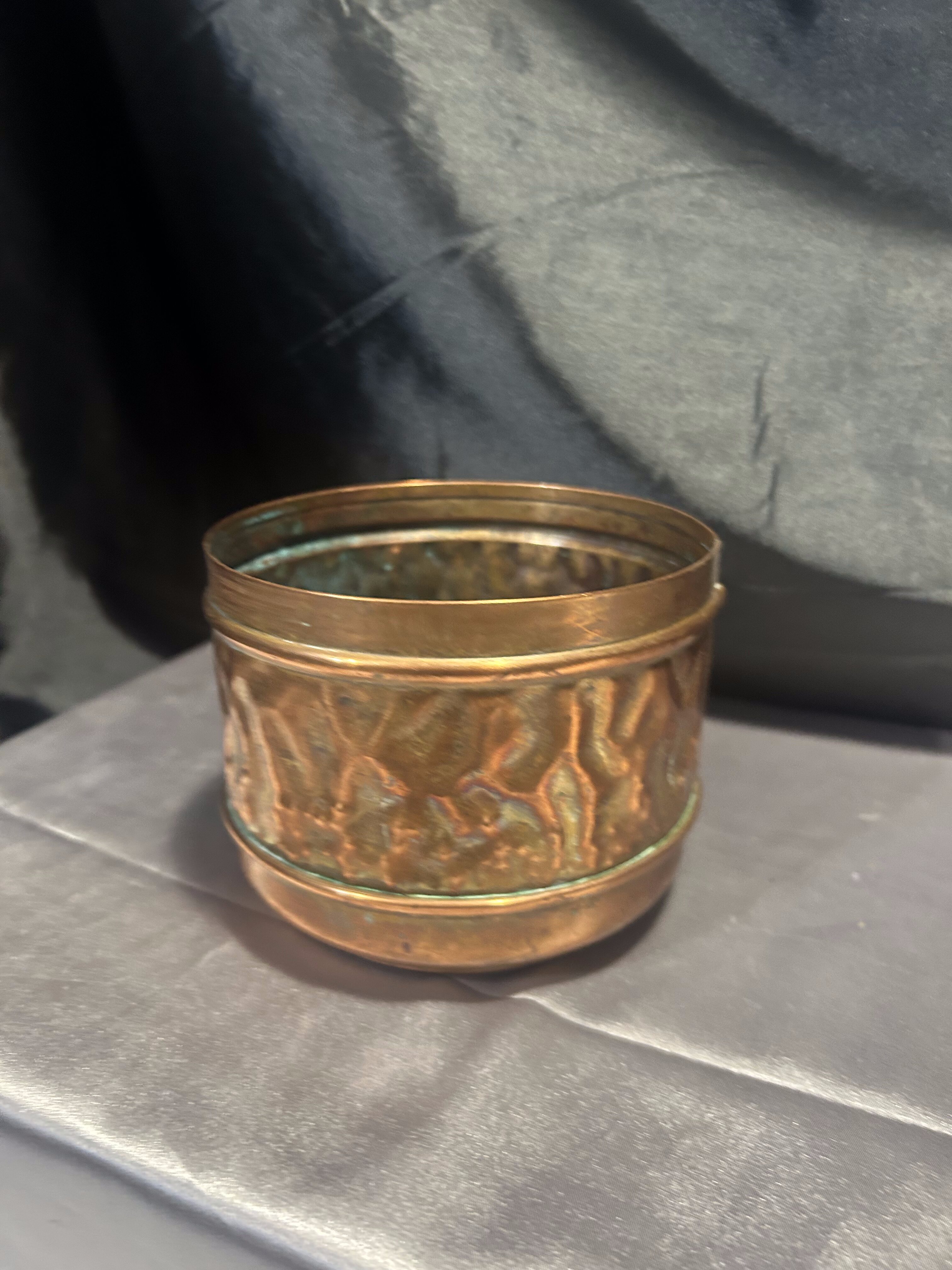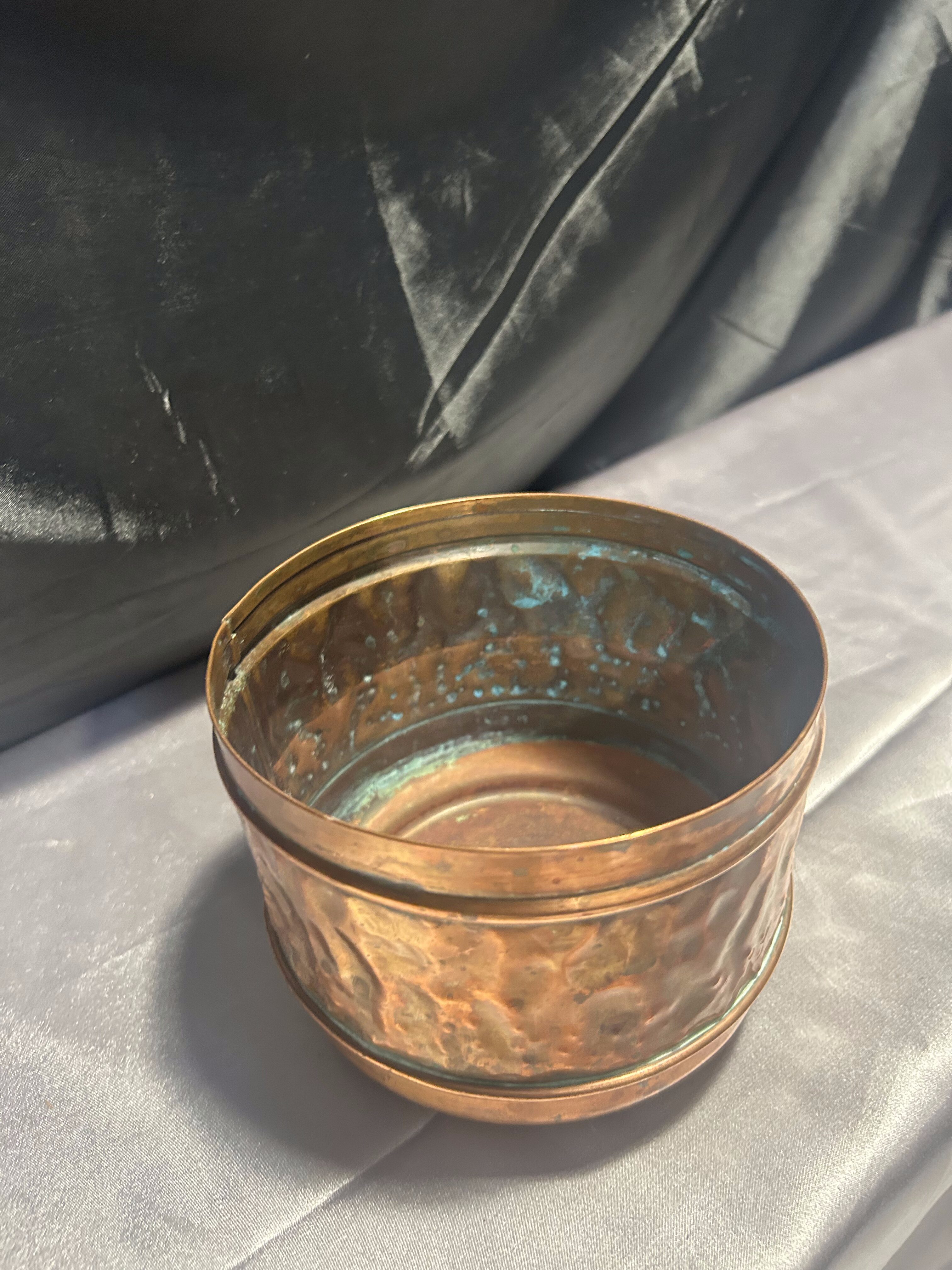 Na sprzedaż subtelny kwietnik wykonany z miedzi – idealny jako osłonka na doniczkę. Niewielki, ale pełen uroku, świetnie sprawdzi się jako dekoracyjny akcent na parapecie, półce czy stole. Klasyczna forma i ciepły odcień miedzi nadają mu ponadczasowy charakter.