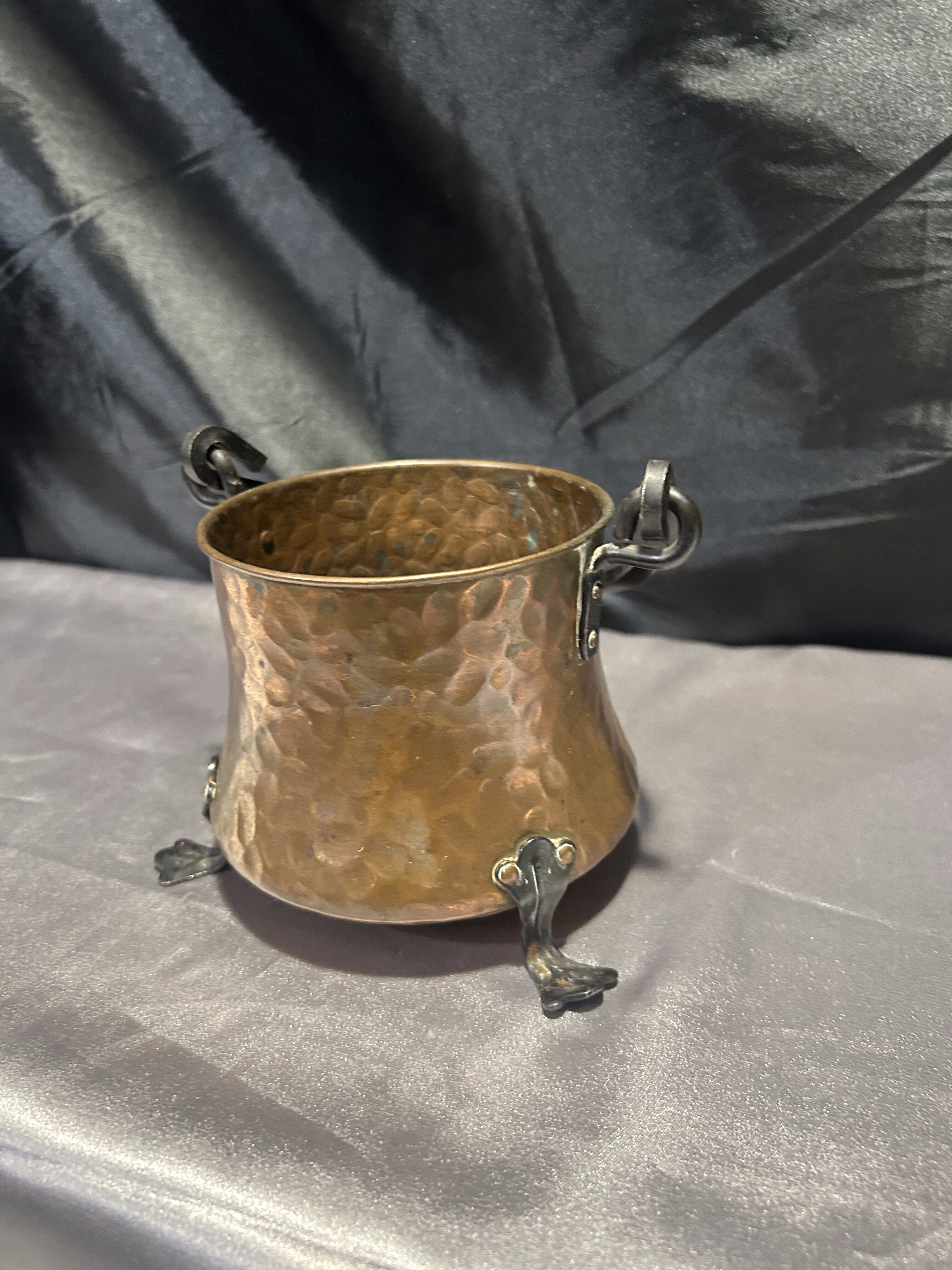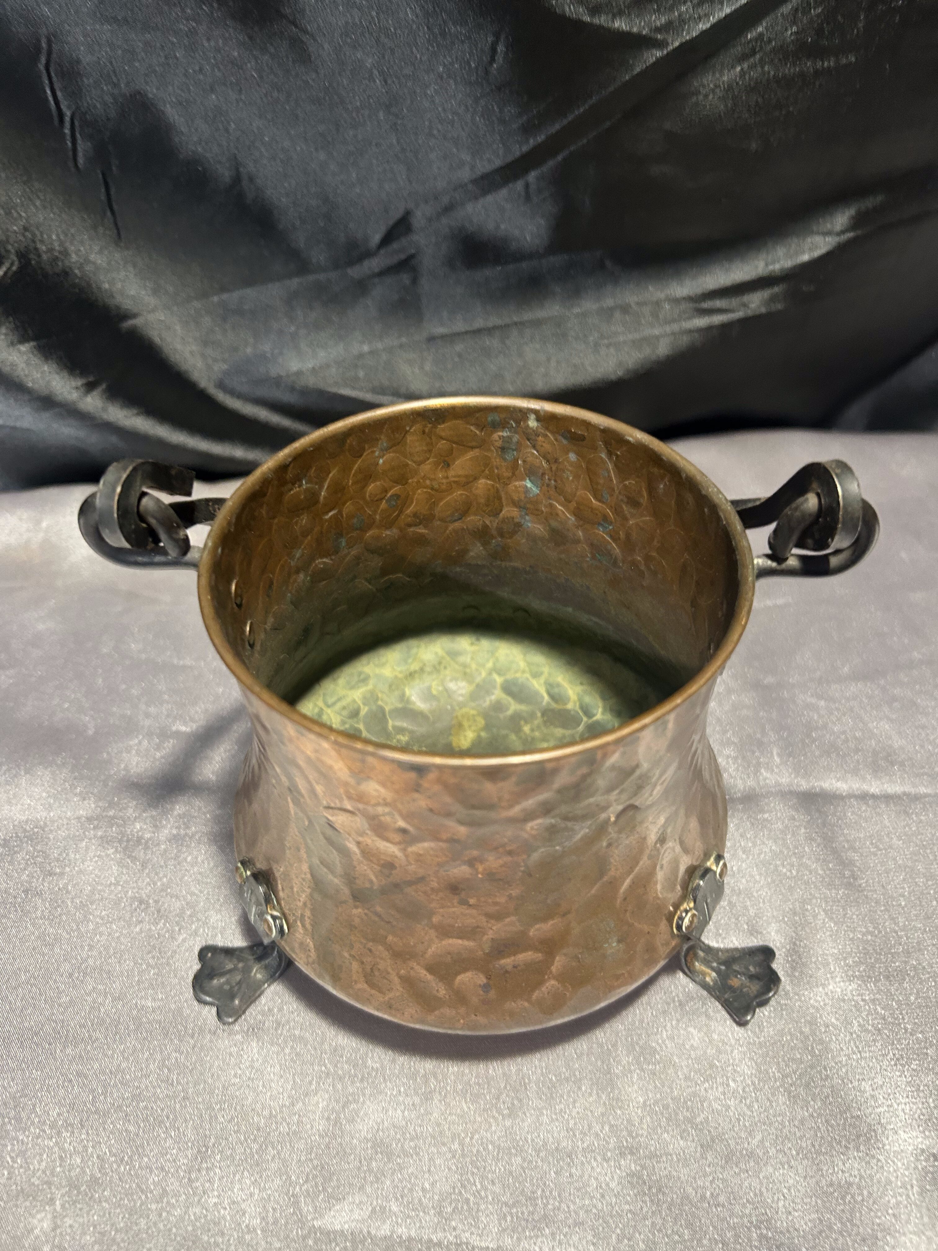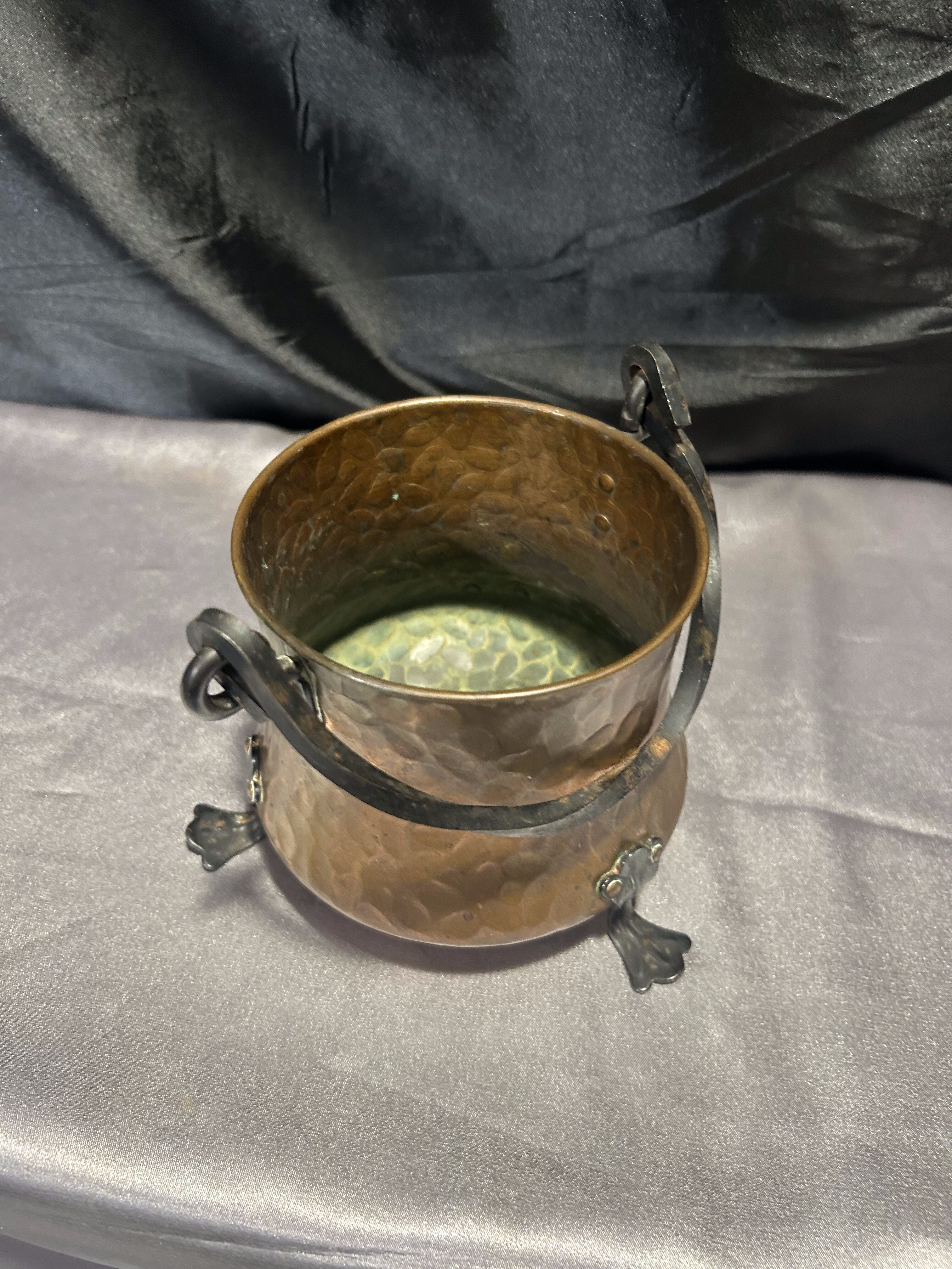 Kwietnik miedziany – Z kutą rączką i nogami – Styl rustykalny