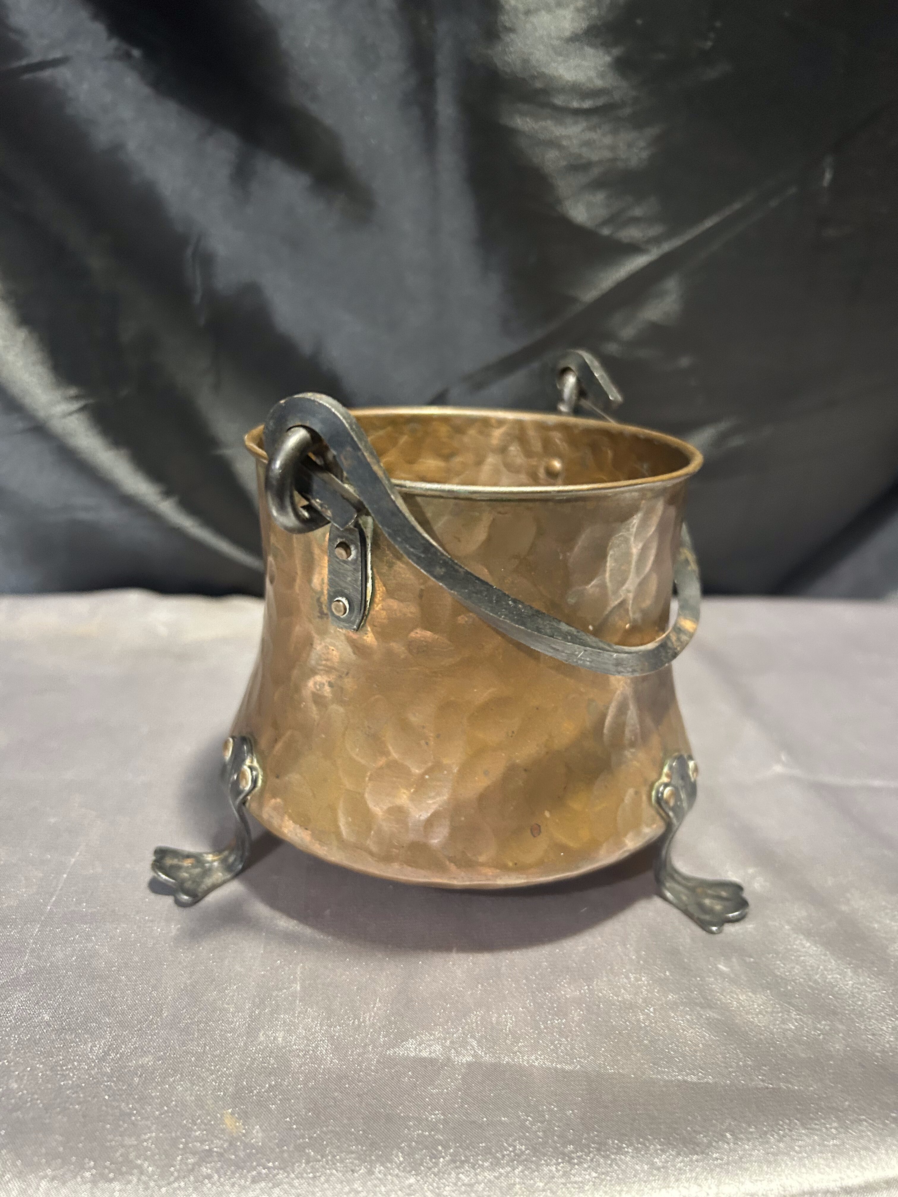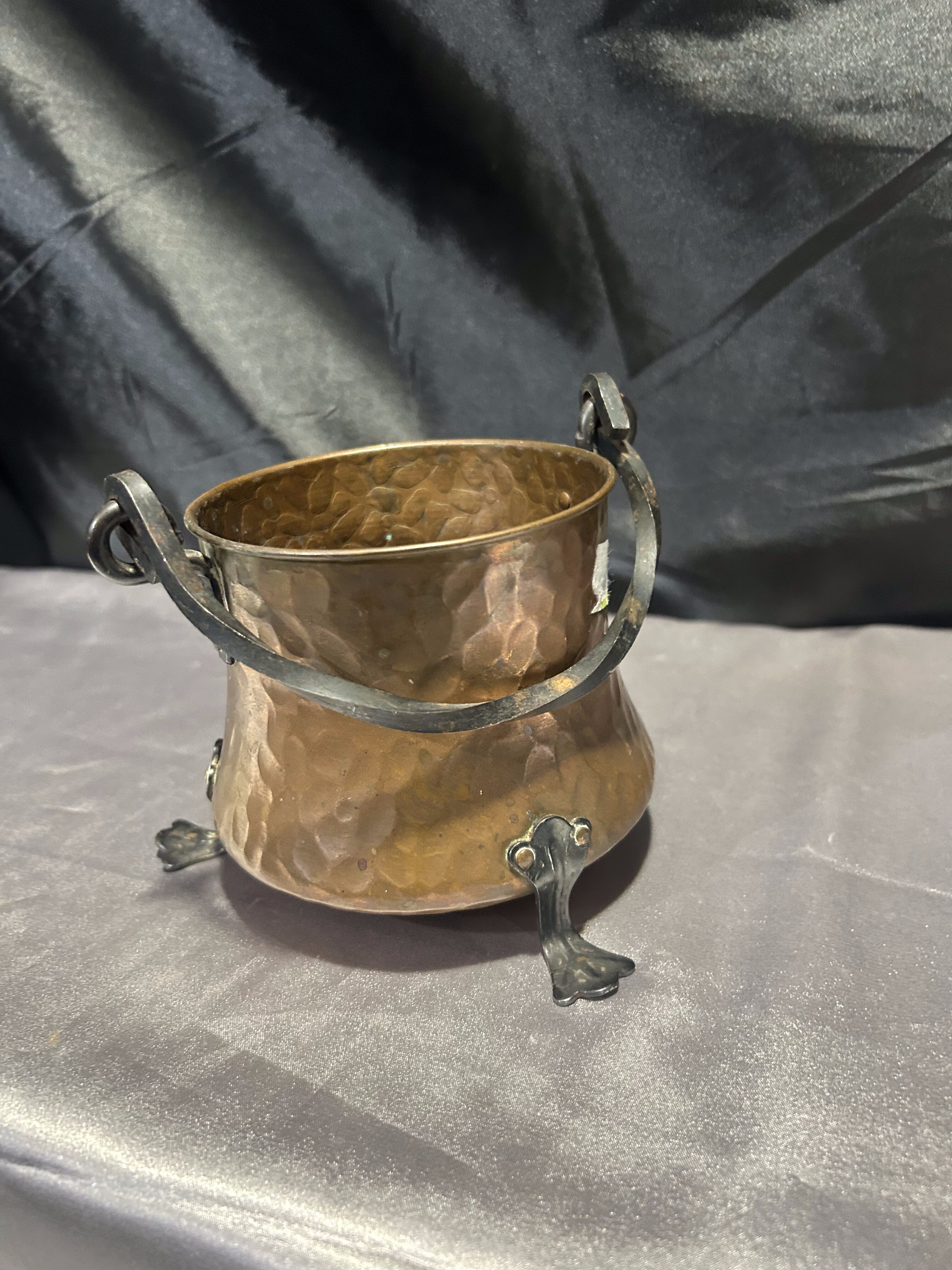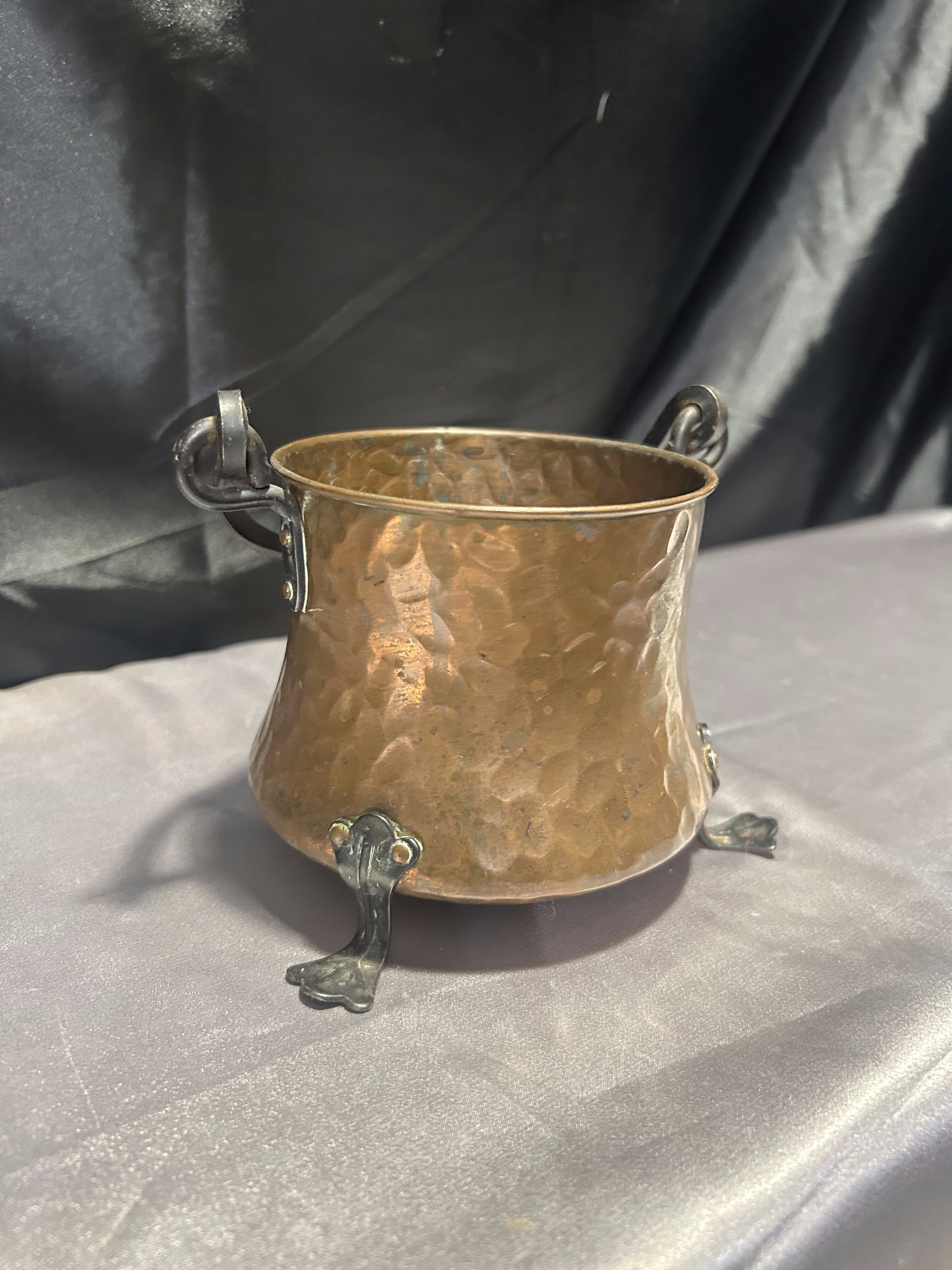Kwietnik miedziany – Z kutą rączką i nogami – Styl rustykalny