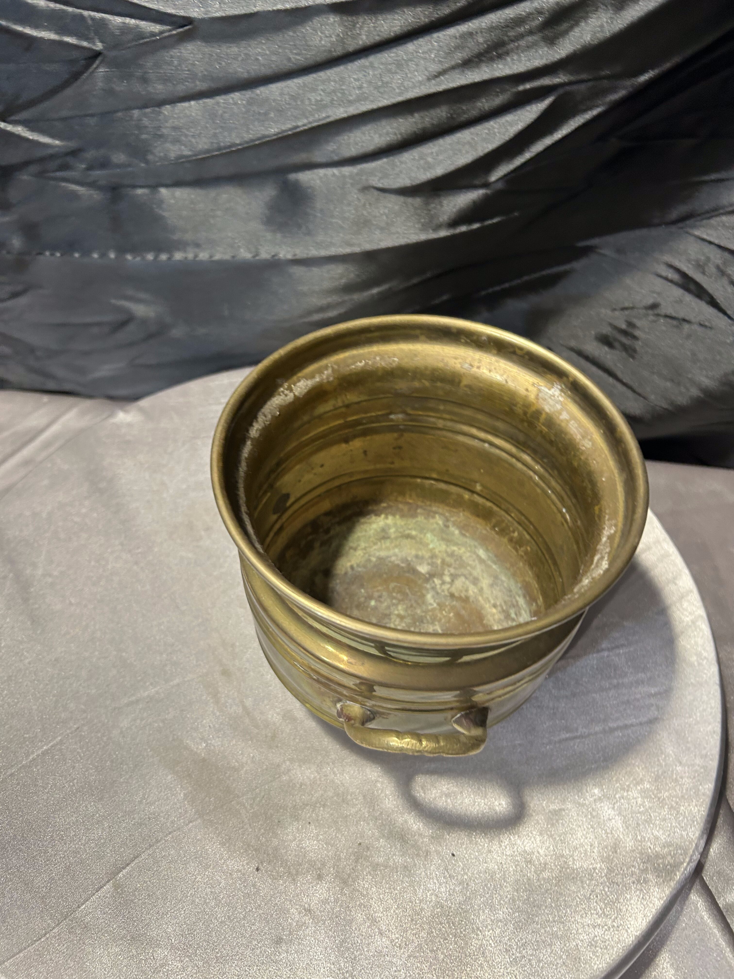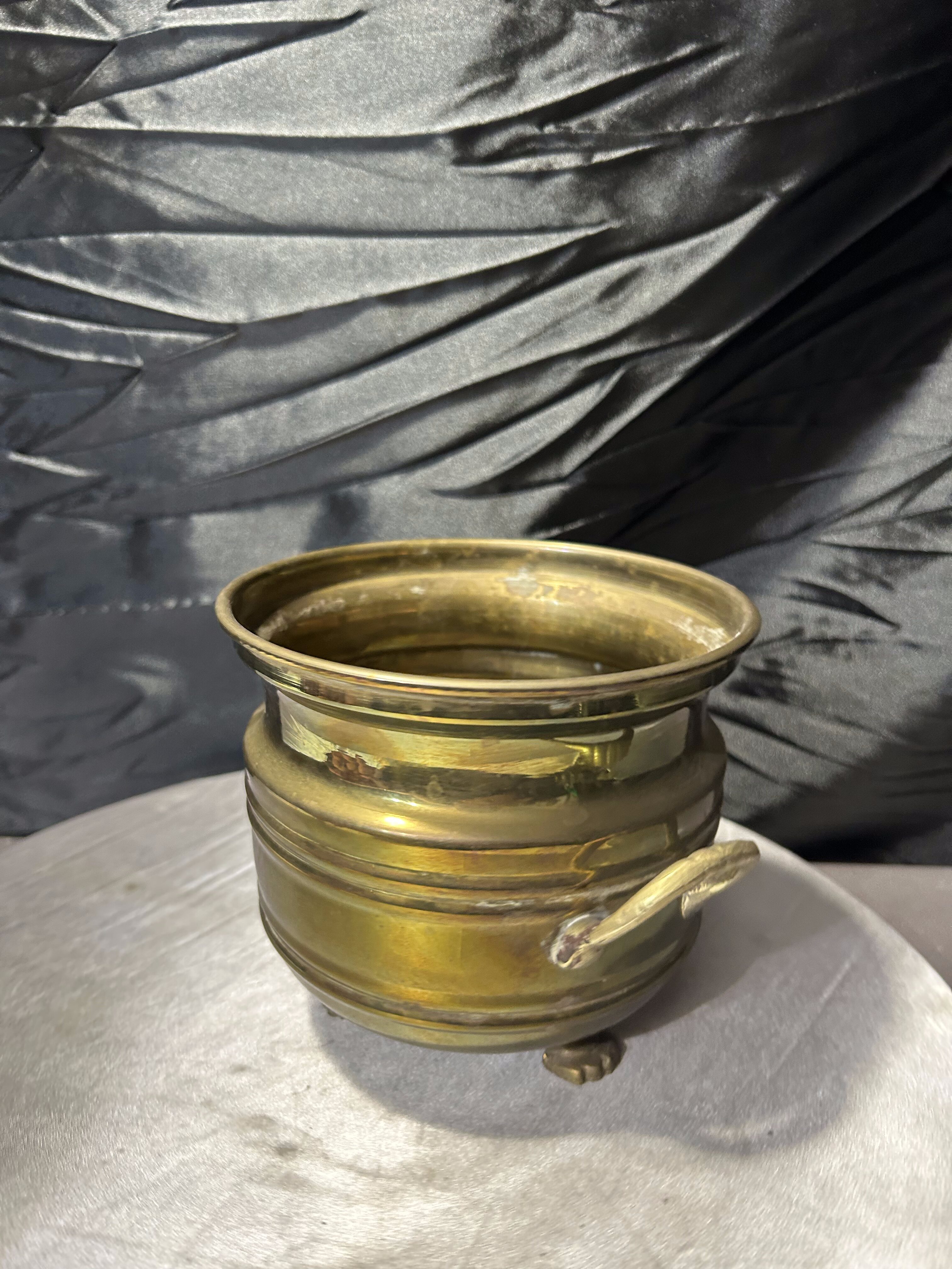Mosiężny kwietnik w klasycznej formie to elegancka i ponadczasowa dekoracja wnętrza. Dzięki ozdobnym uchwytom i stabilnym nóżkom doskonale sprawdzi się jako osłonka na rośliny lub stylowy element wystroju.
