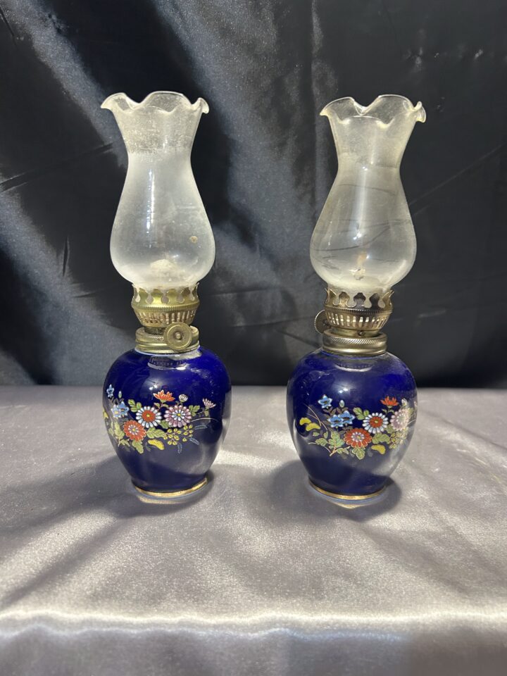 Zestaw 2 Lampek Naftowych – Ceramiczne z Malowanymi Kwiatami