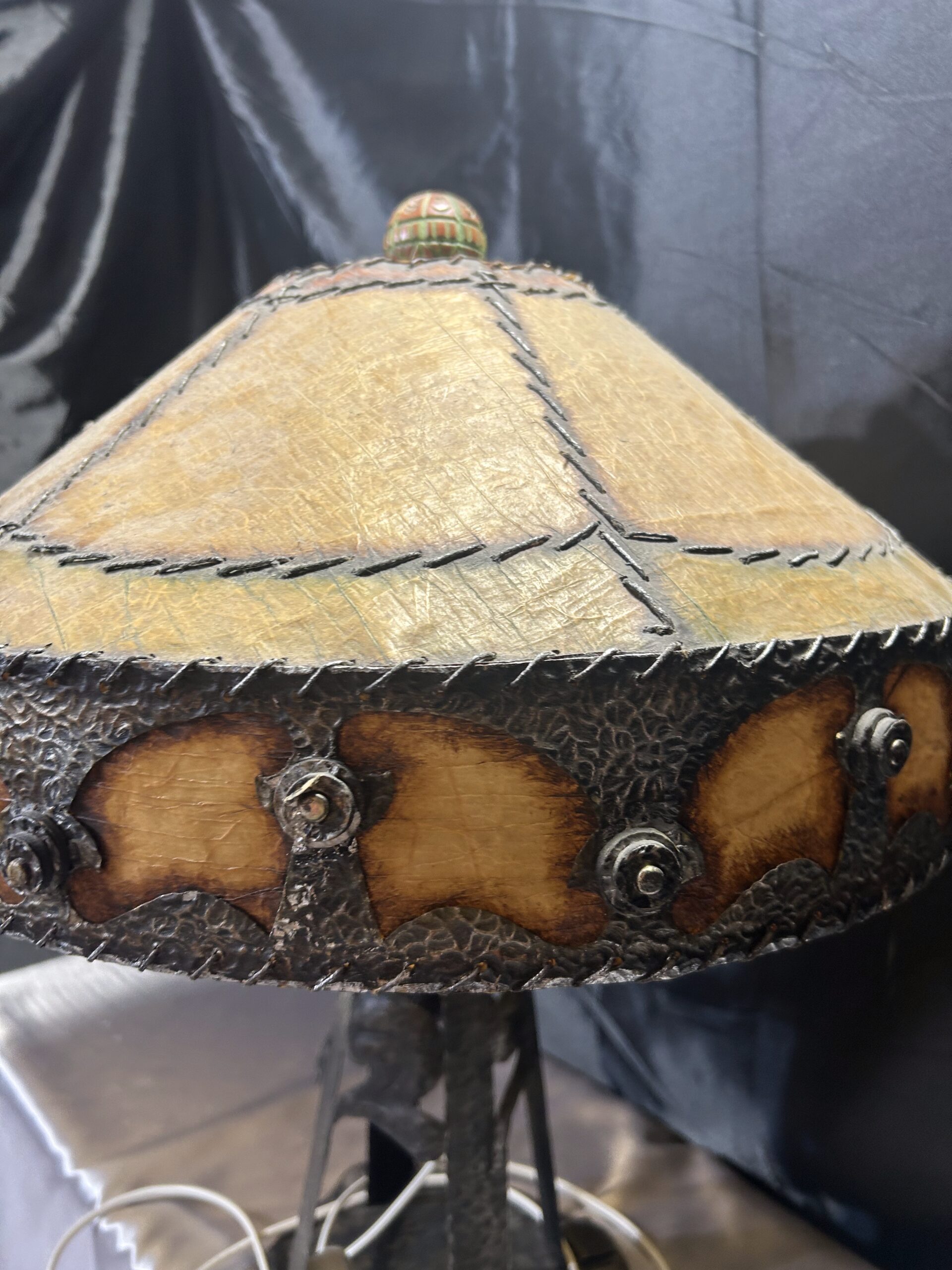 • Abażur: kuty rant, szyty grubymi nićmi