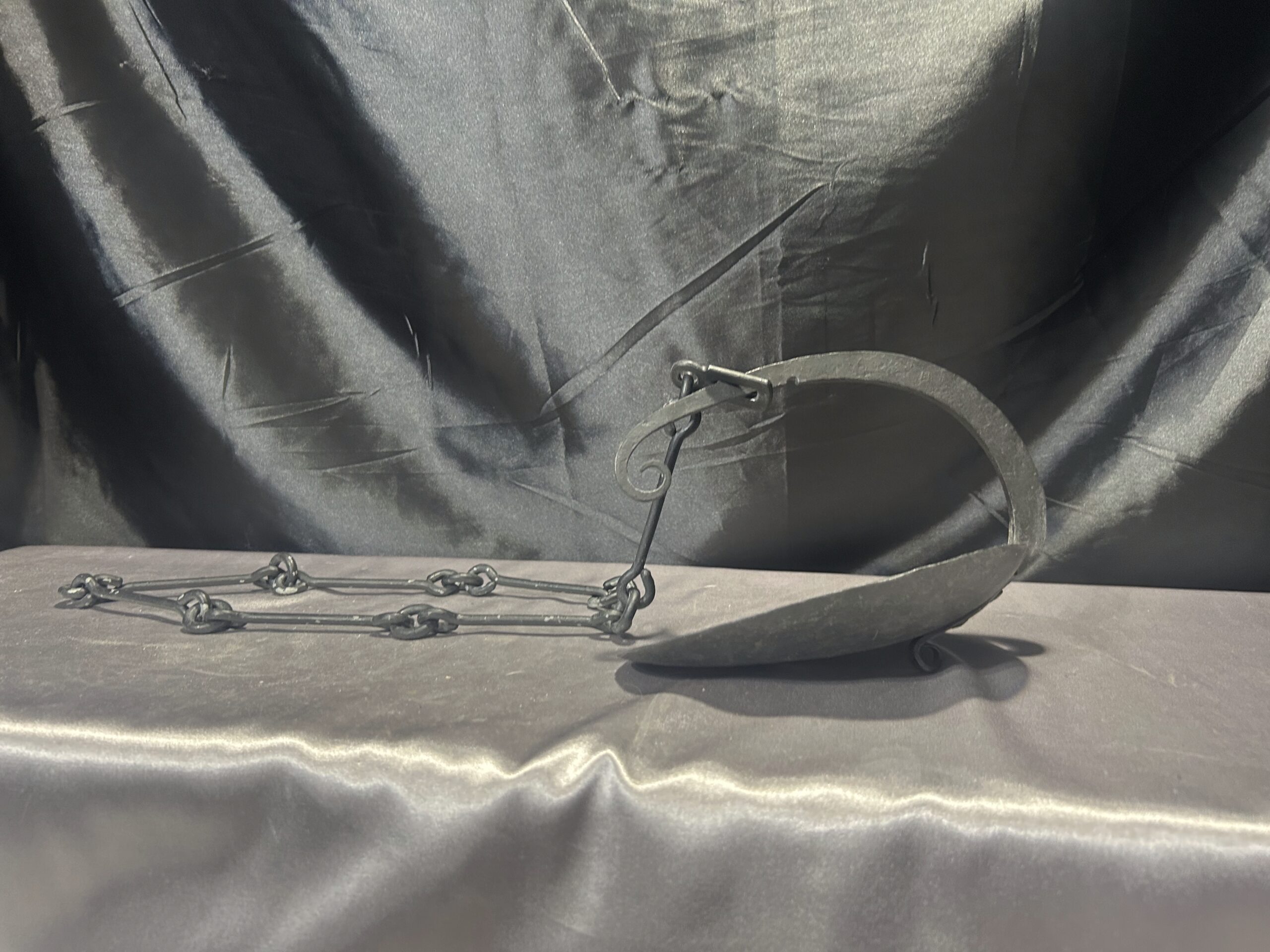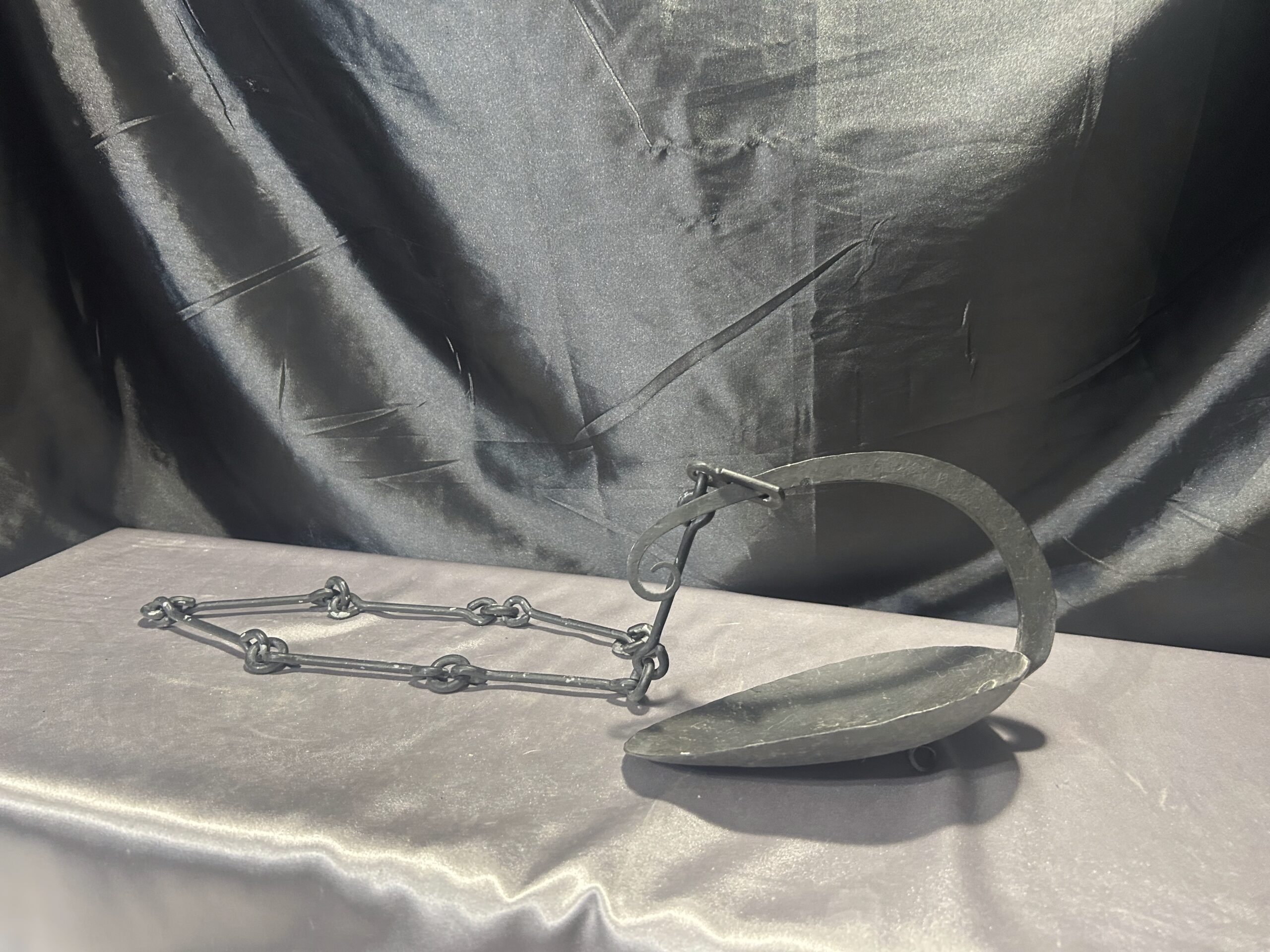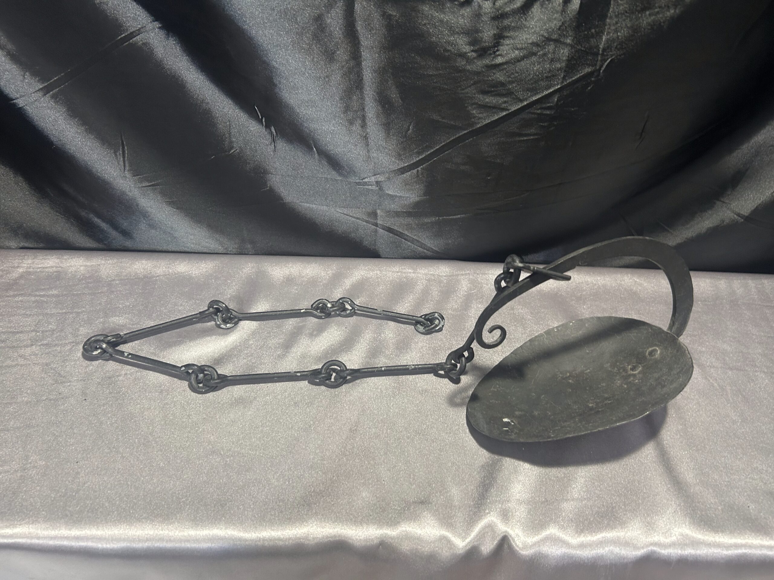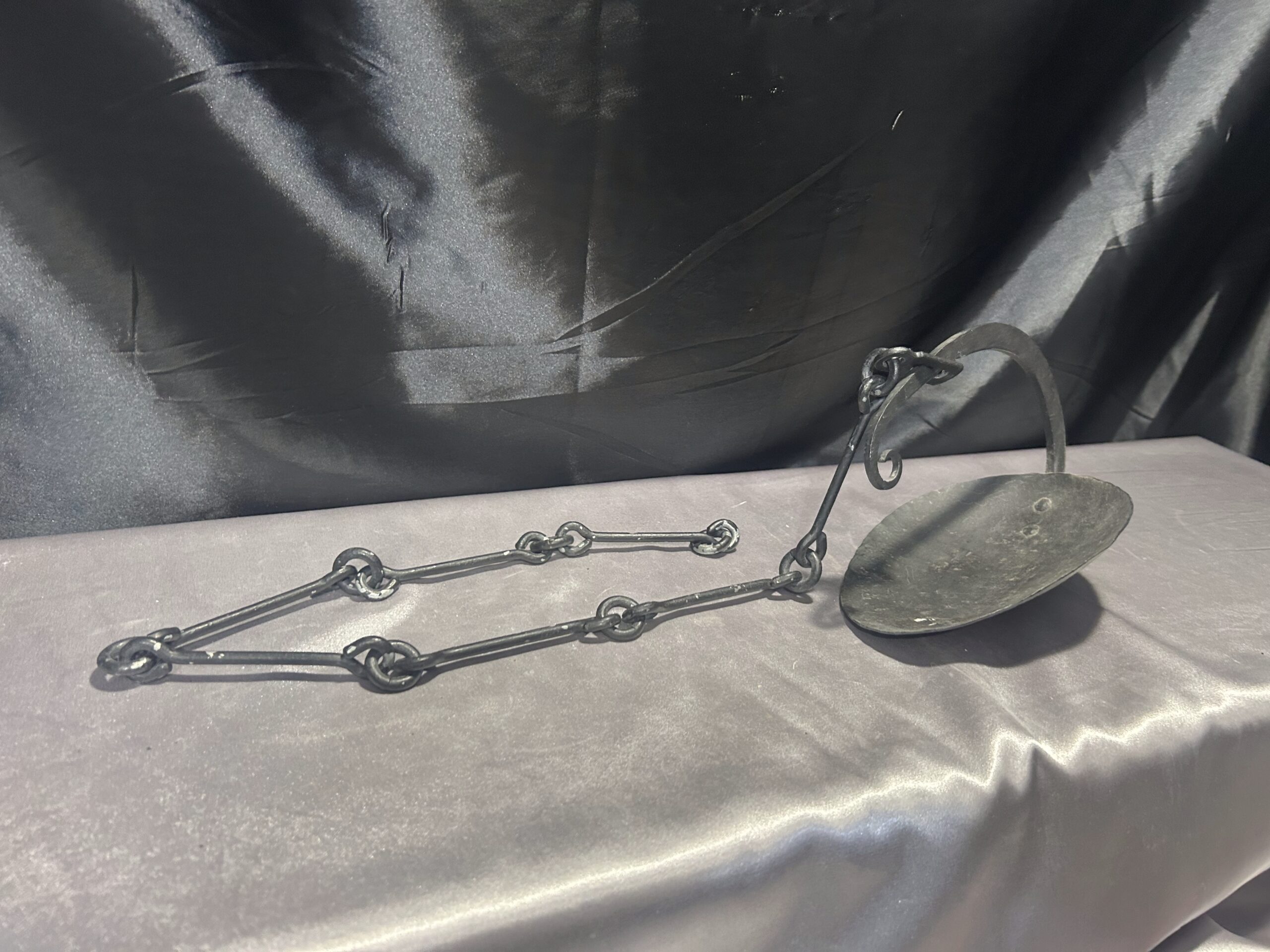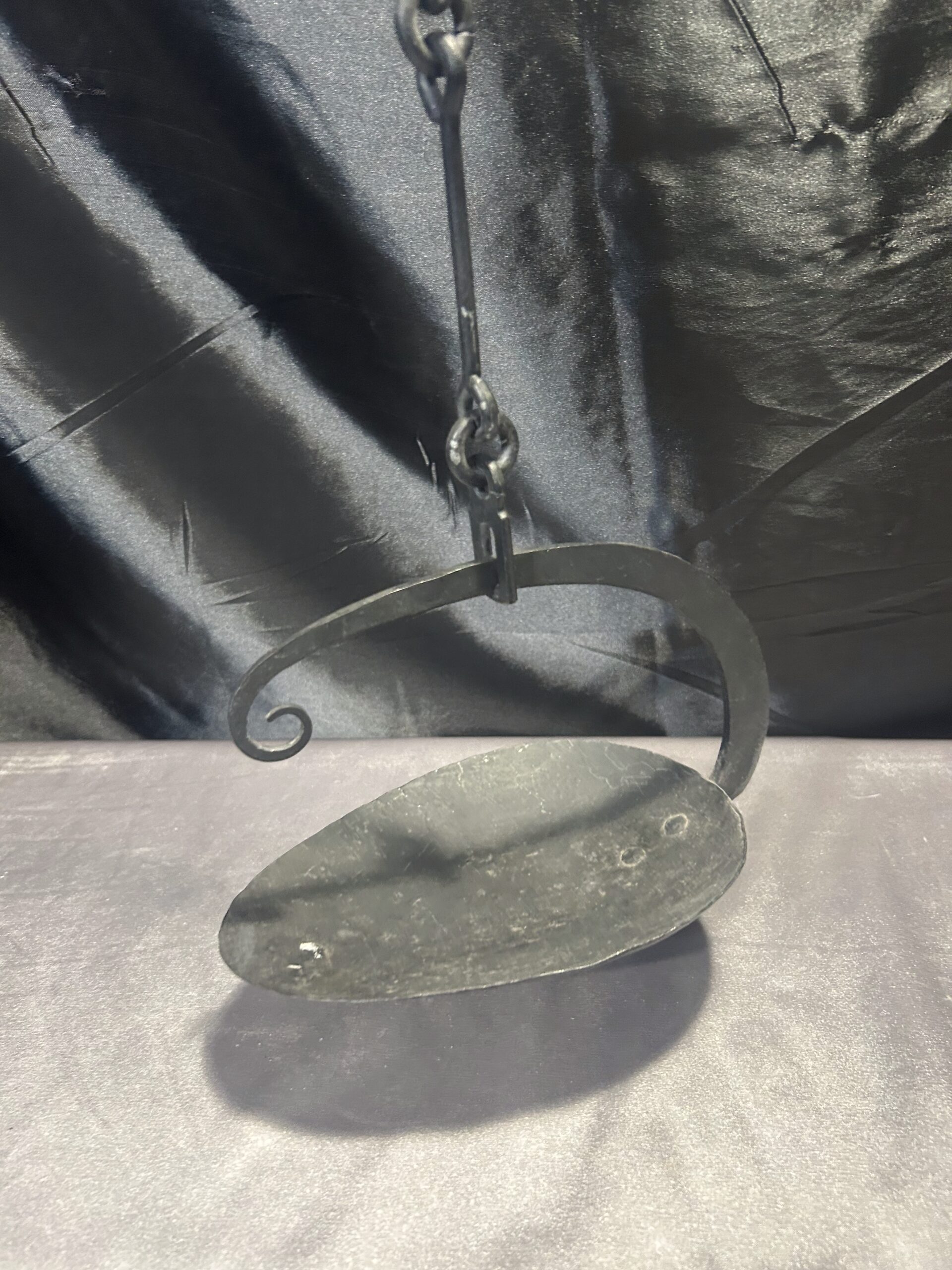 Prezentujemy wyjątkową lampę łojową wiszącą, wykonaną z kutego metalu. Dzięki swojej surowej, klasycznej formie i długiemu łańcuchowi, doskonale wpisuje się w historyczne, rustykalne oraz klasyczne wnętrza.
