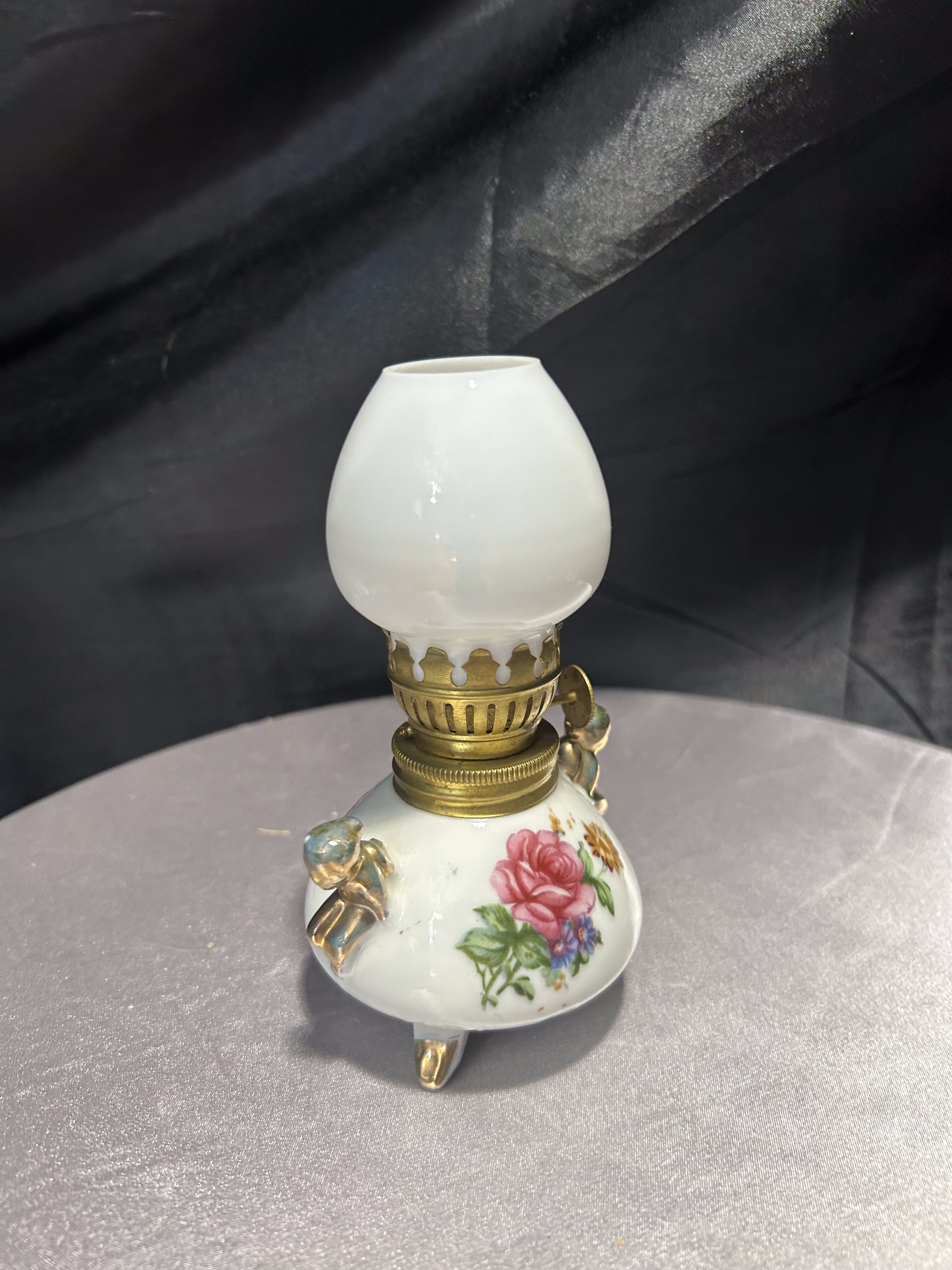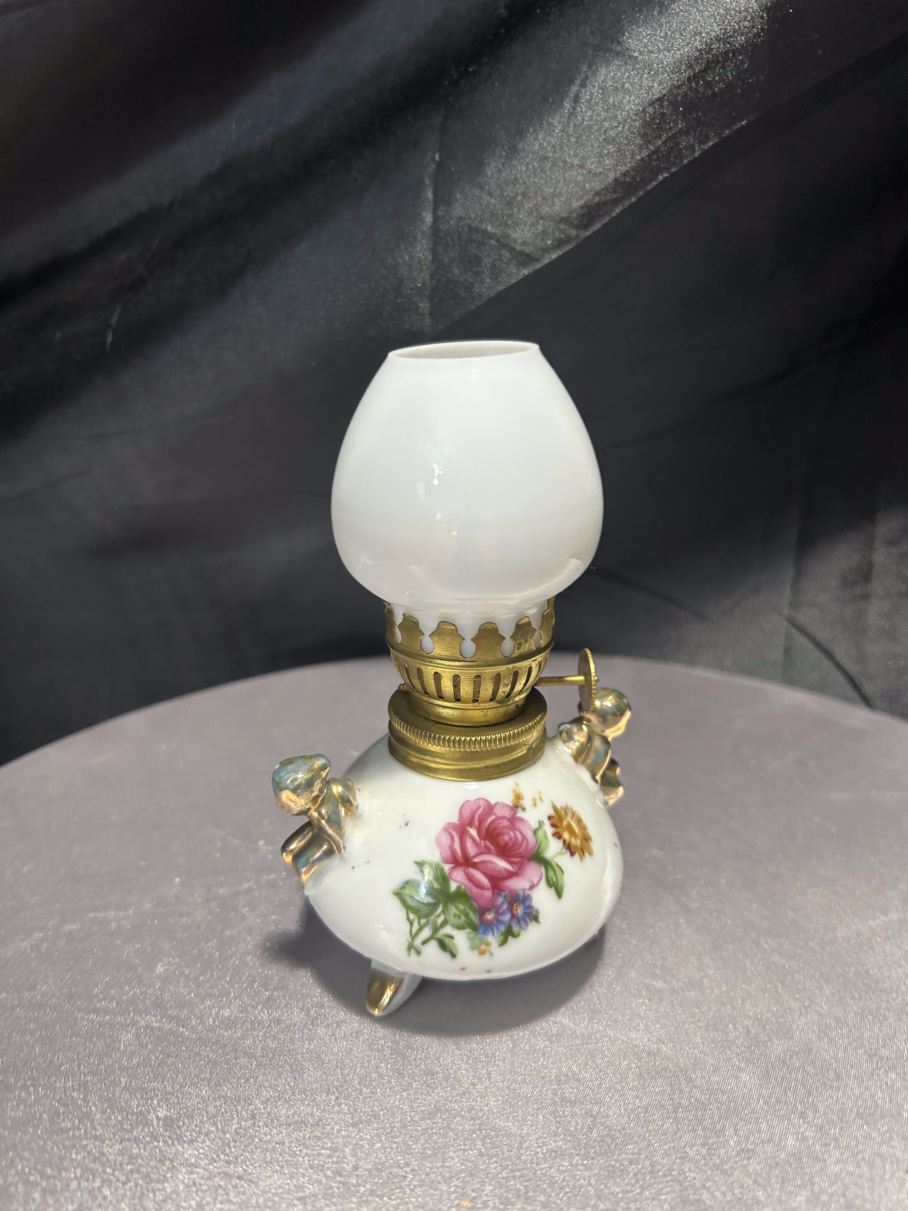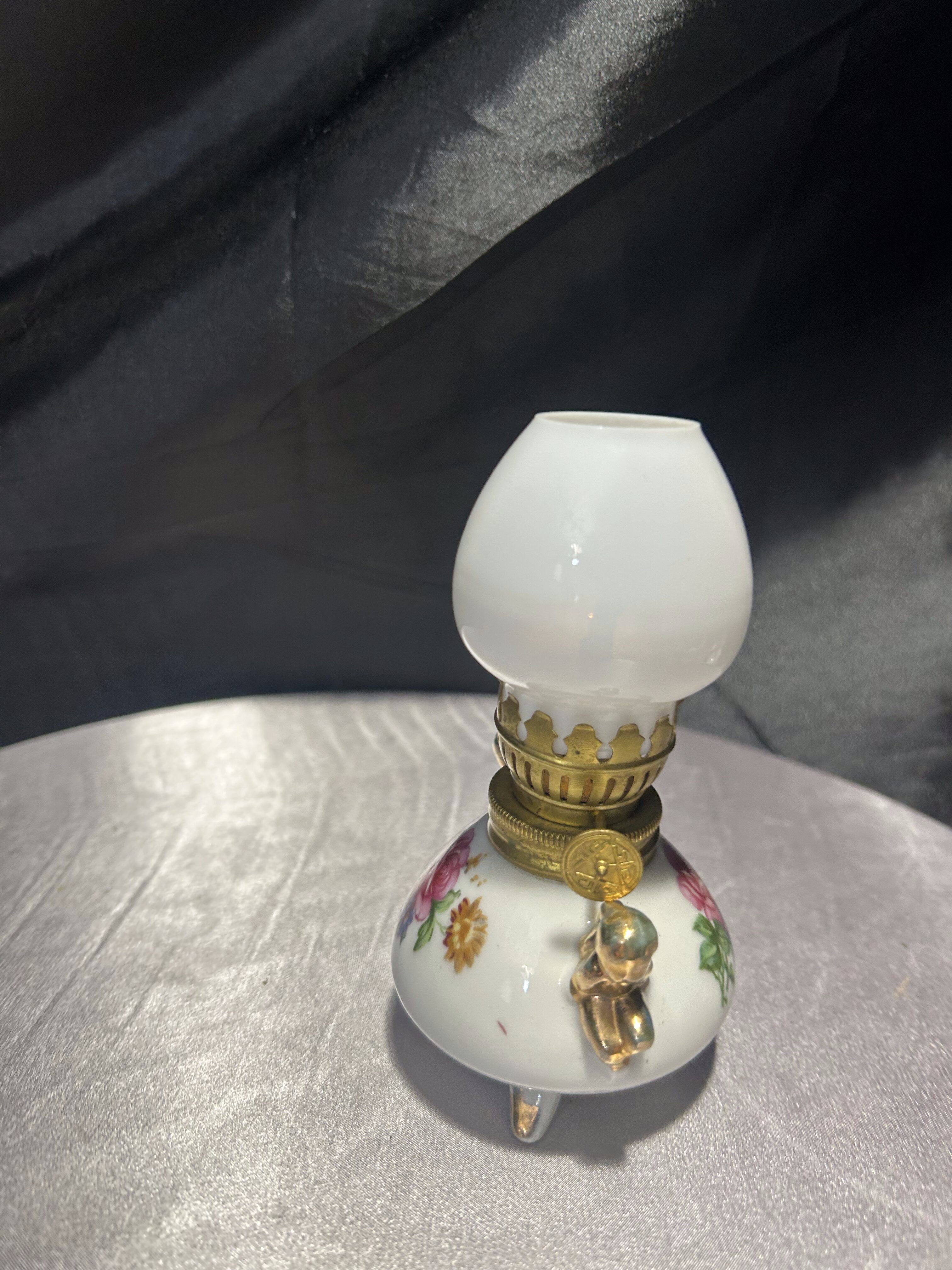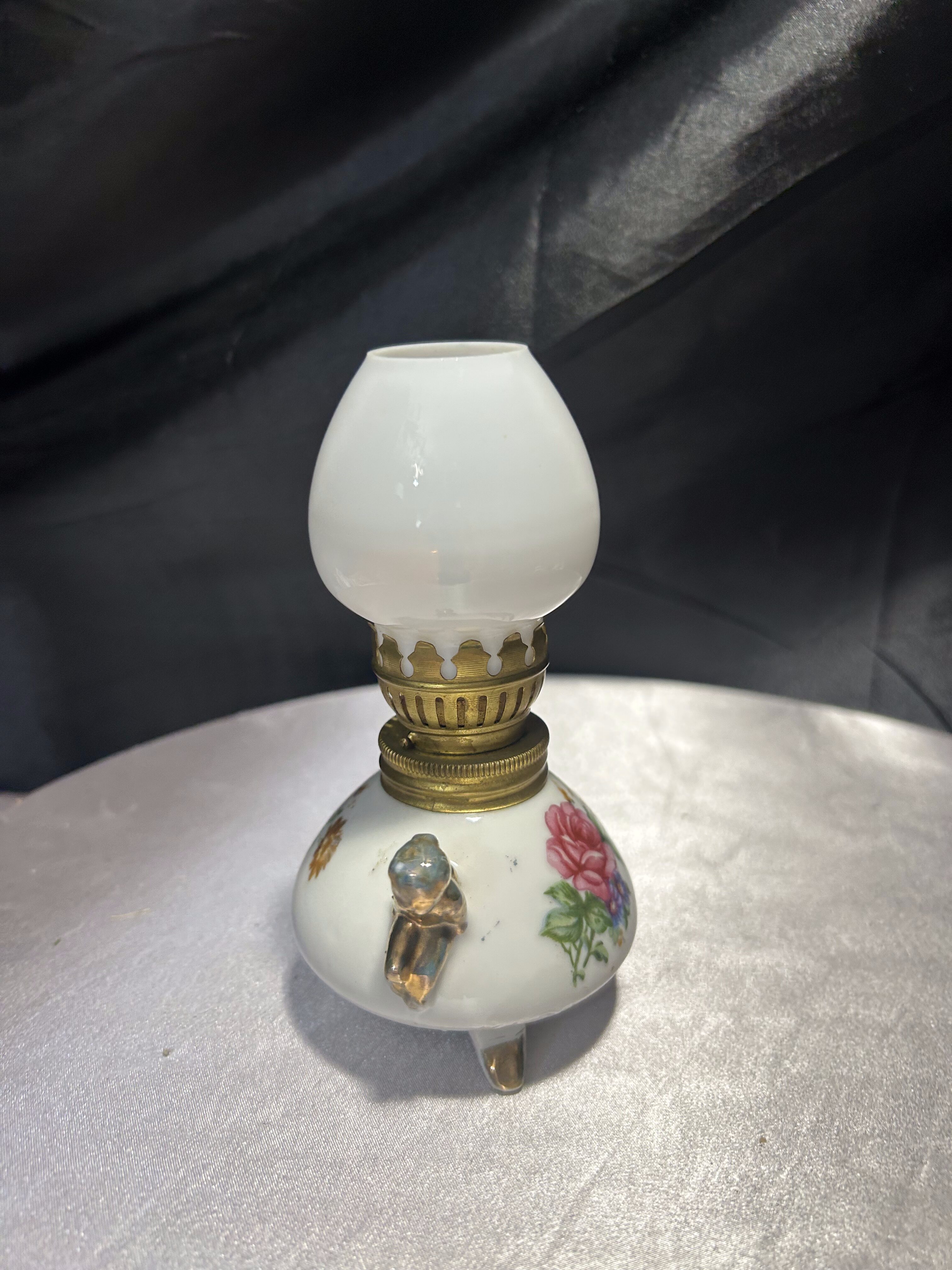 - Lampa naftowa – kwiatowy motyw i złote akcenty – styl vintage
