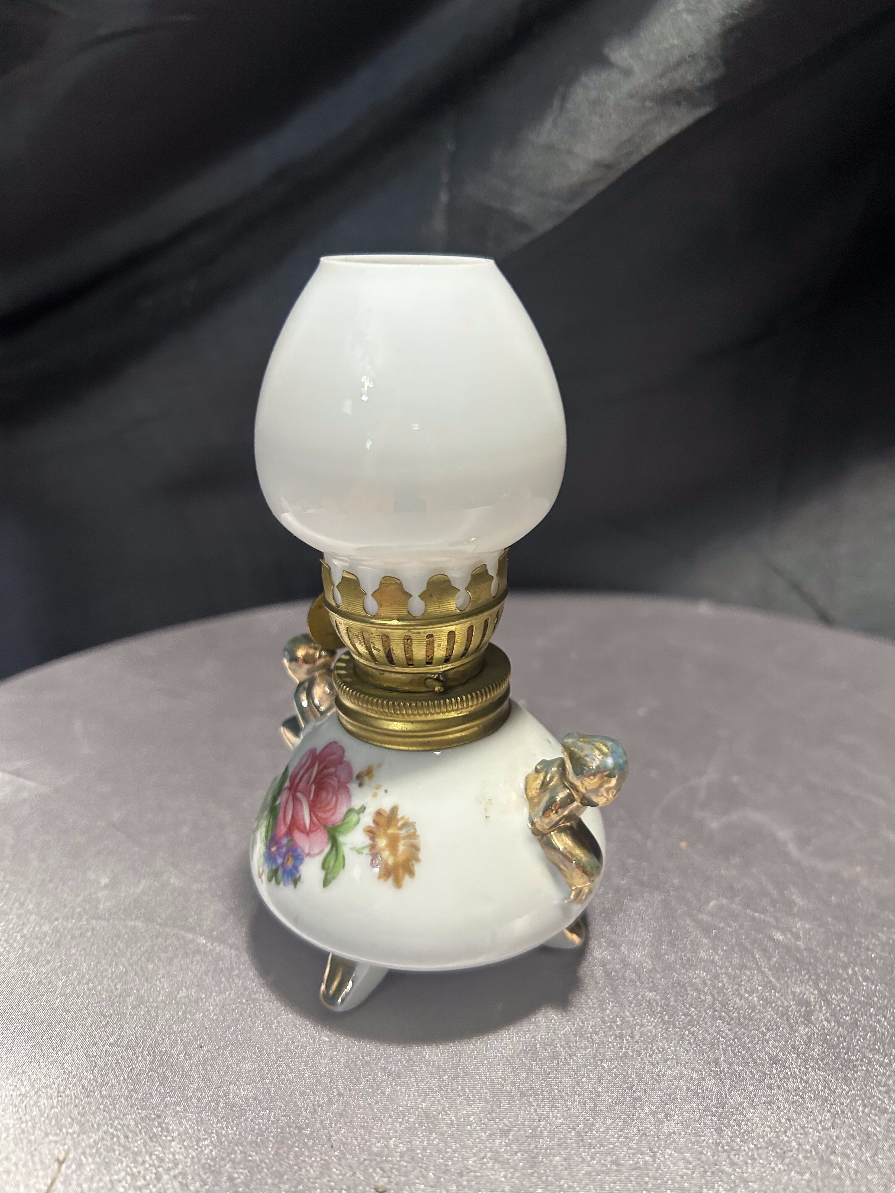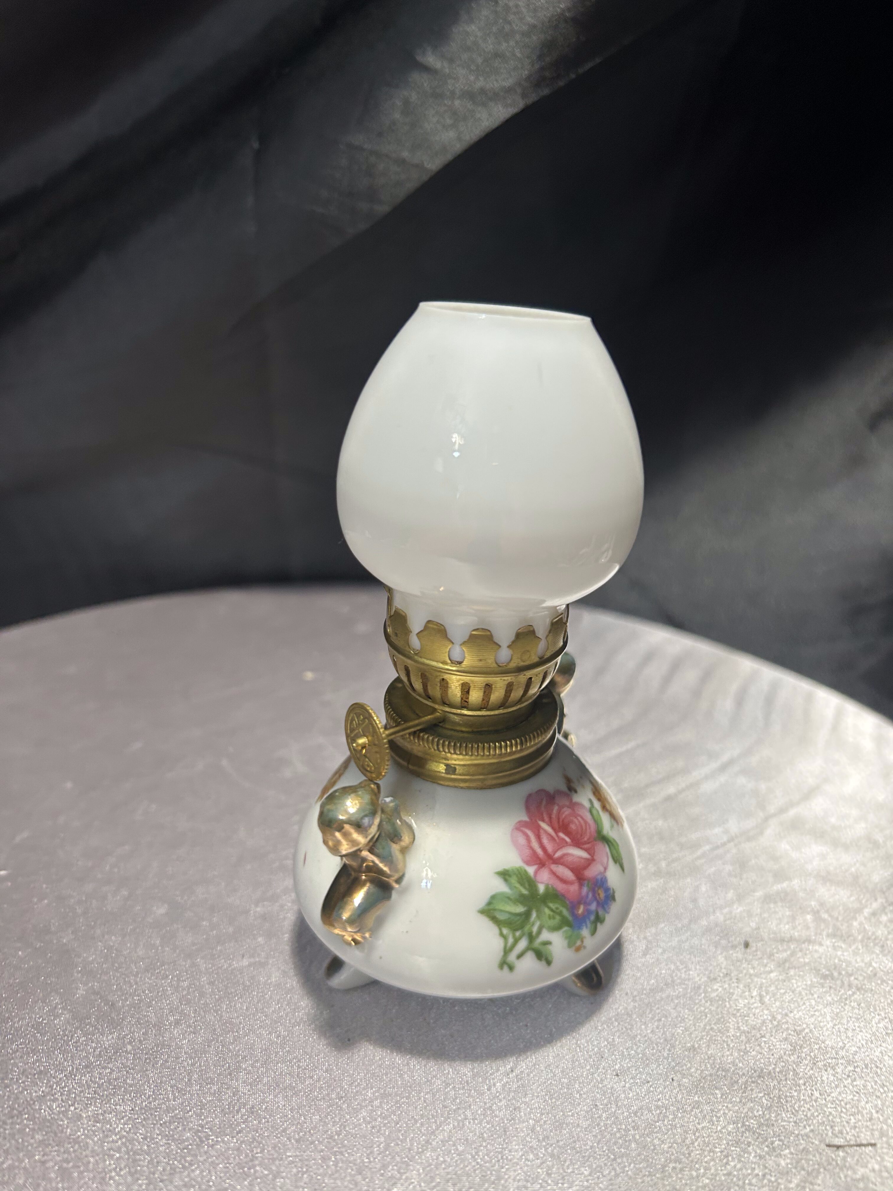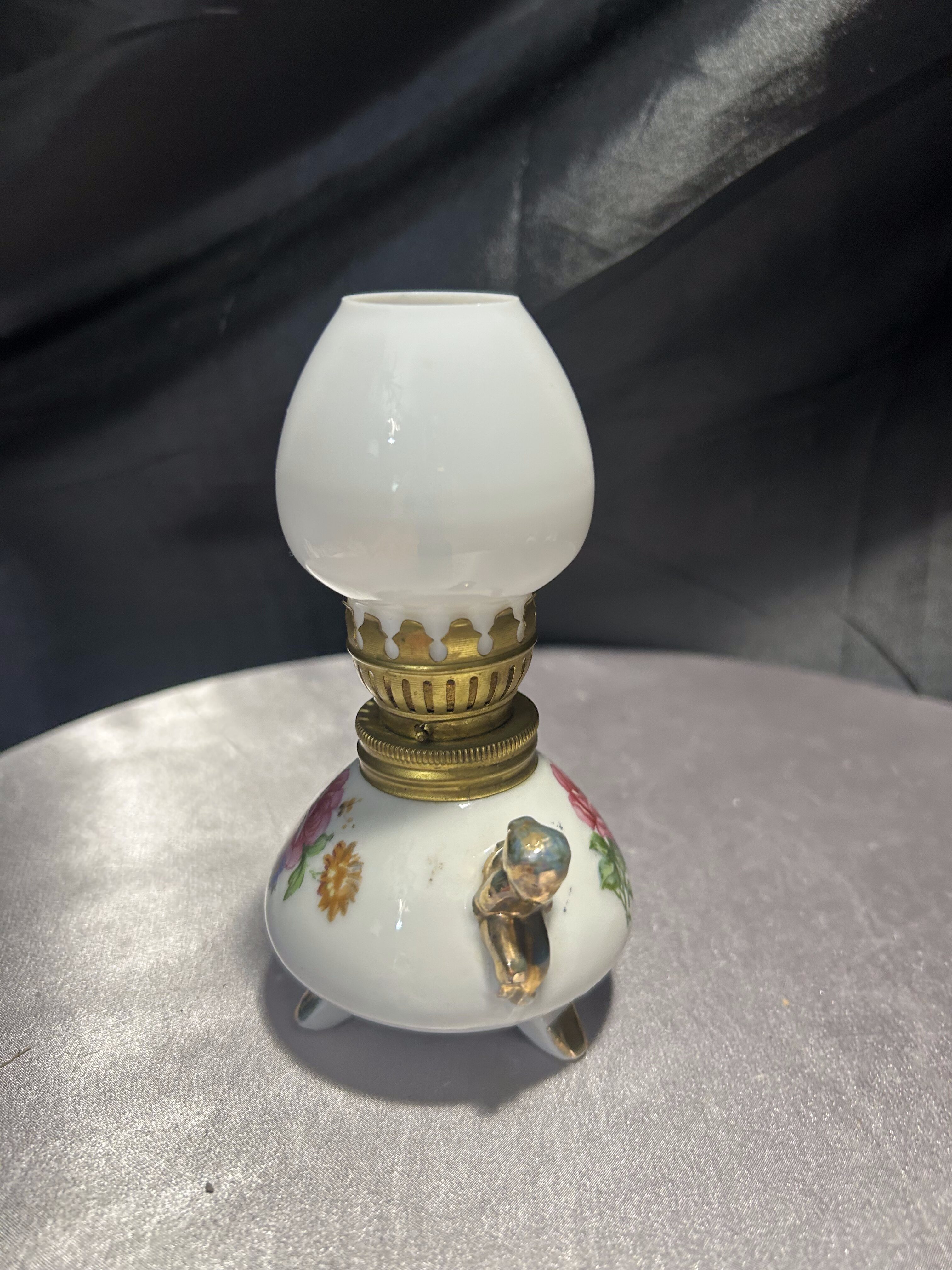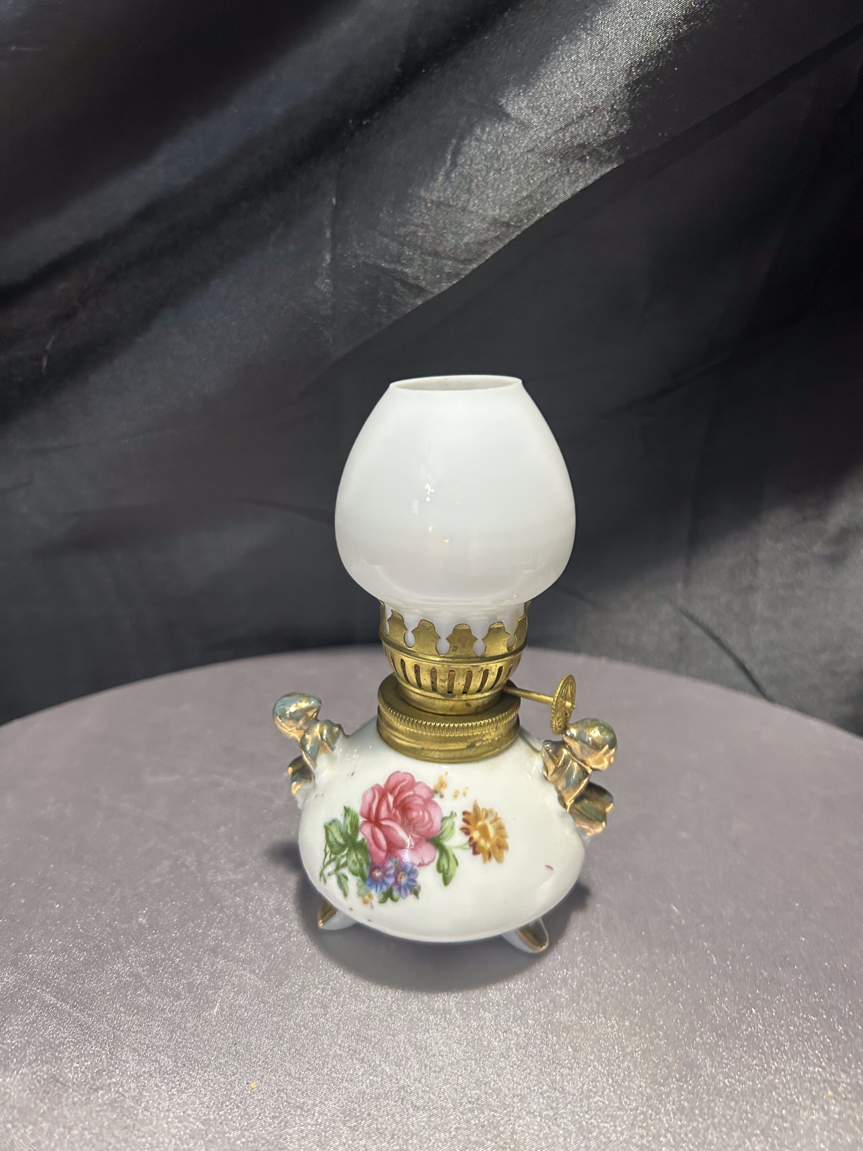 - Lampa naftowa – kwiatowy motyw i złote akcenty – styl vintage