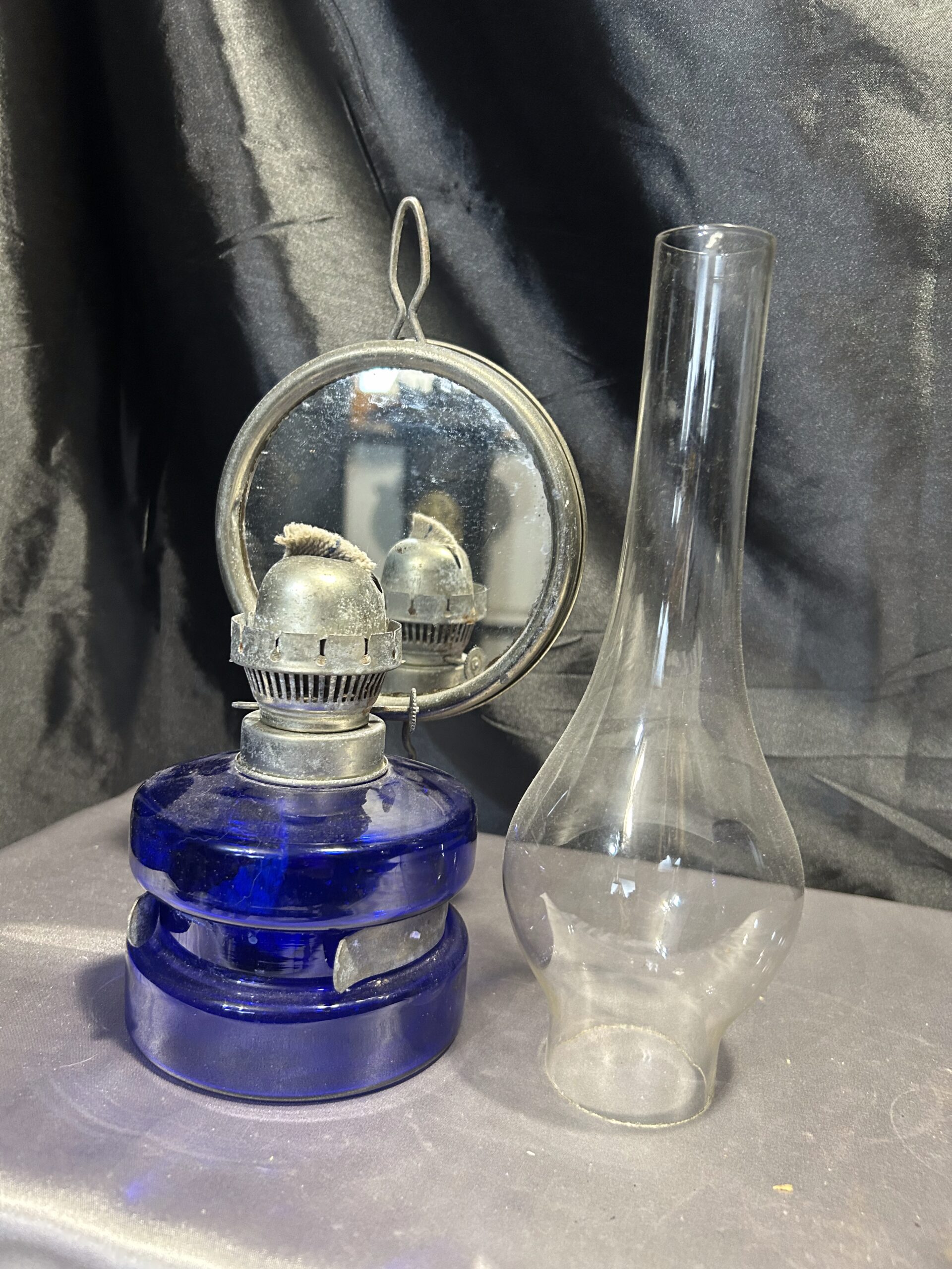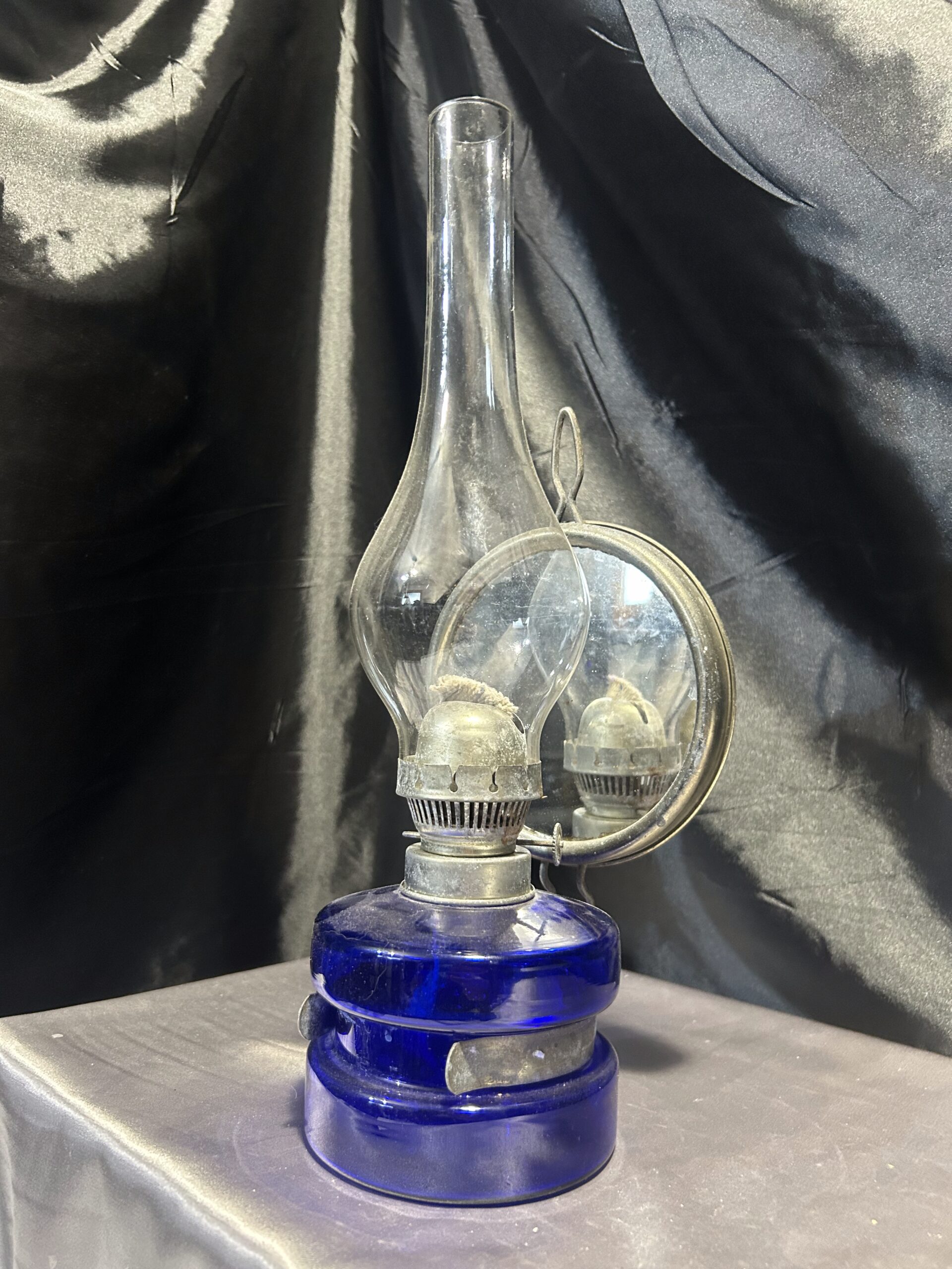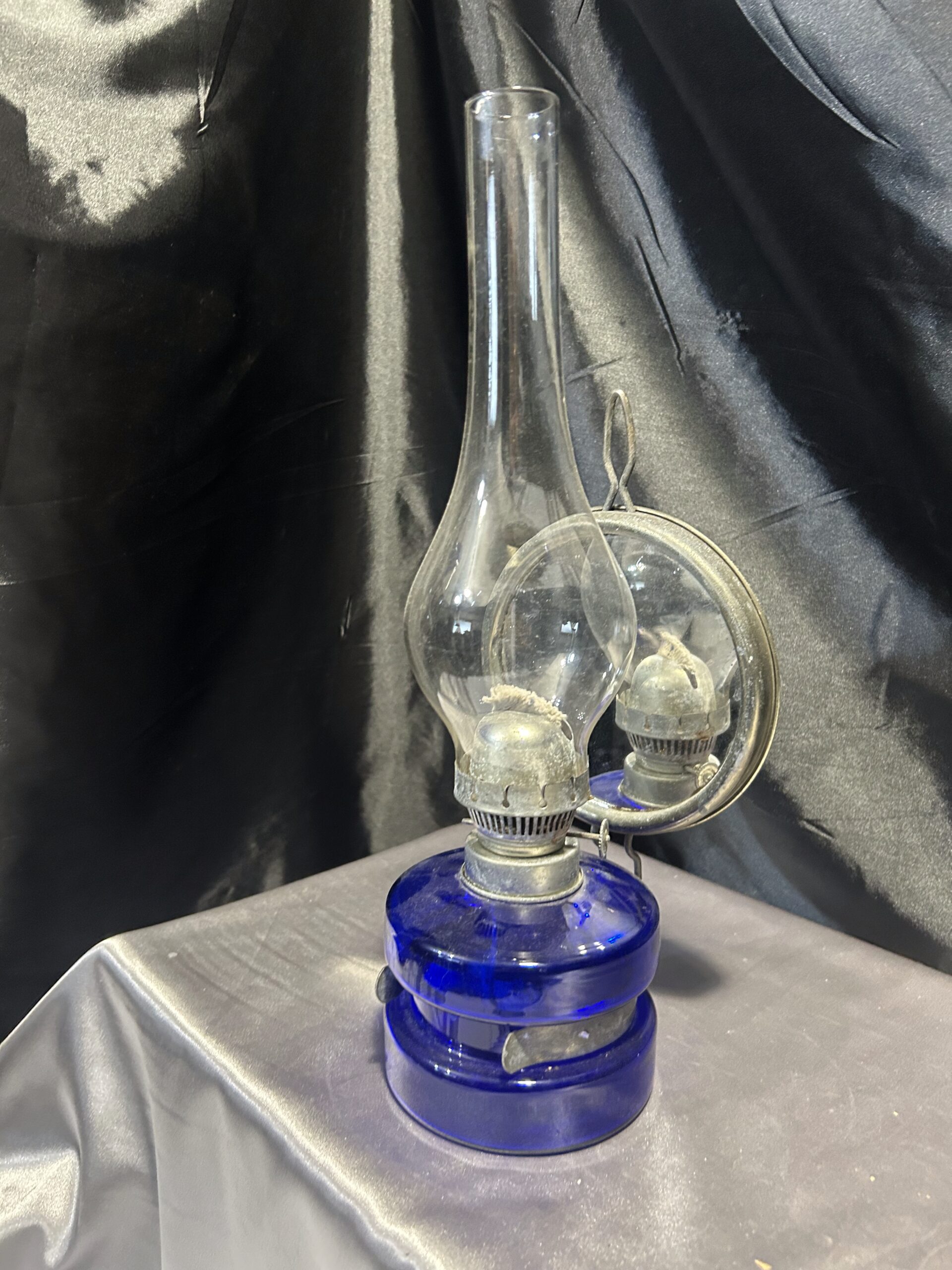 Lampa Naftowa – Niebieska Chabrowa, Z Lusterkiem do Rozpraszania Światła