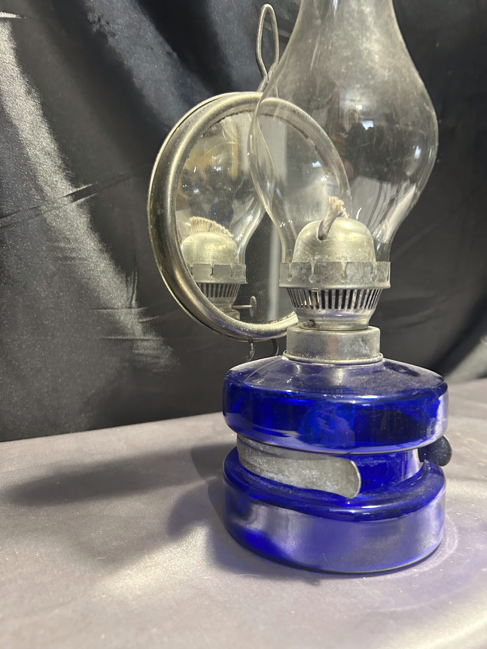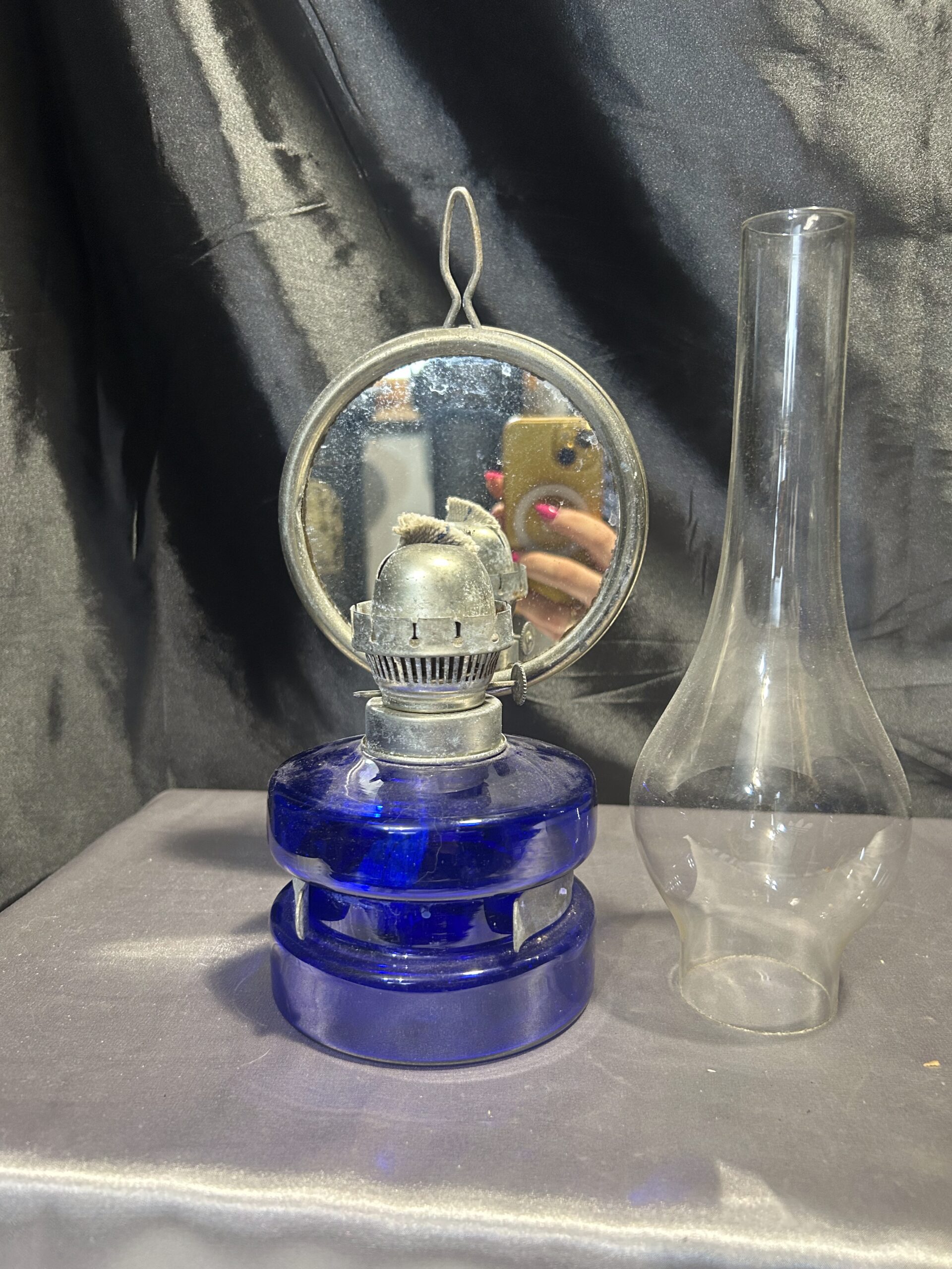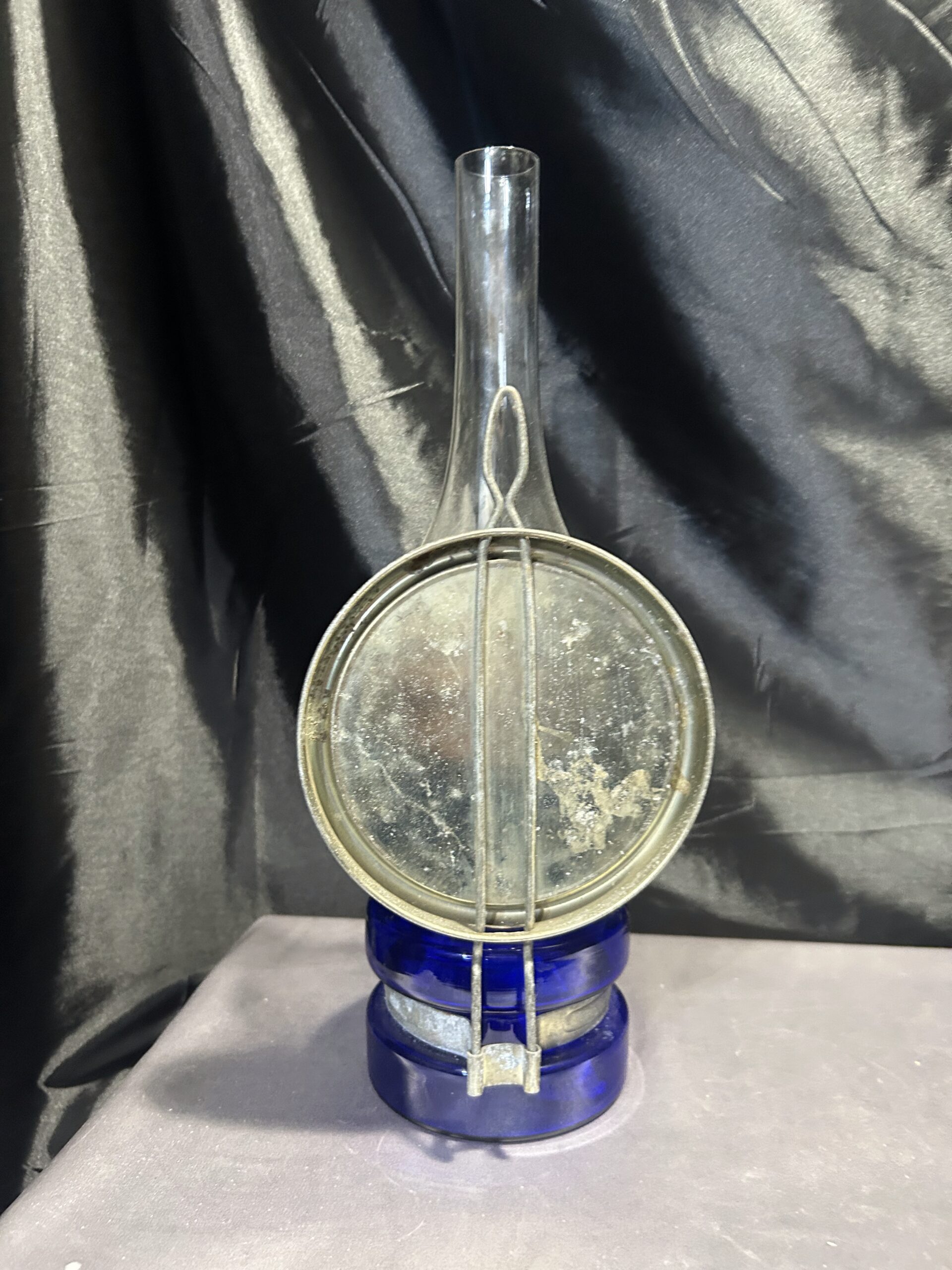 Lampa Naftowa – Niebieska Chabrowa, Z Lusterkiem do Rozpraszania Światła
