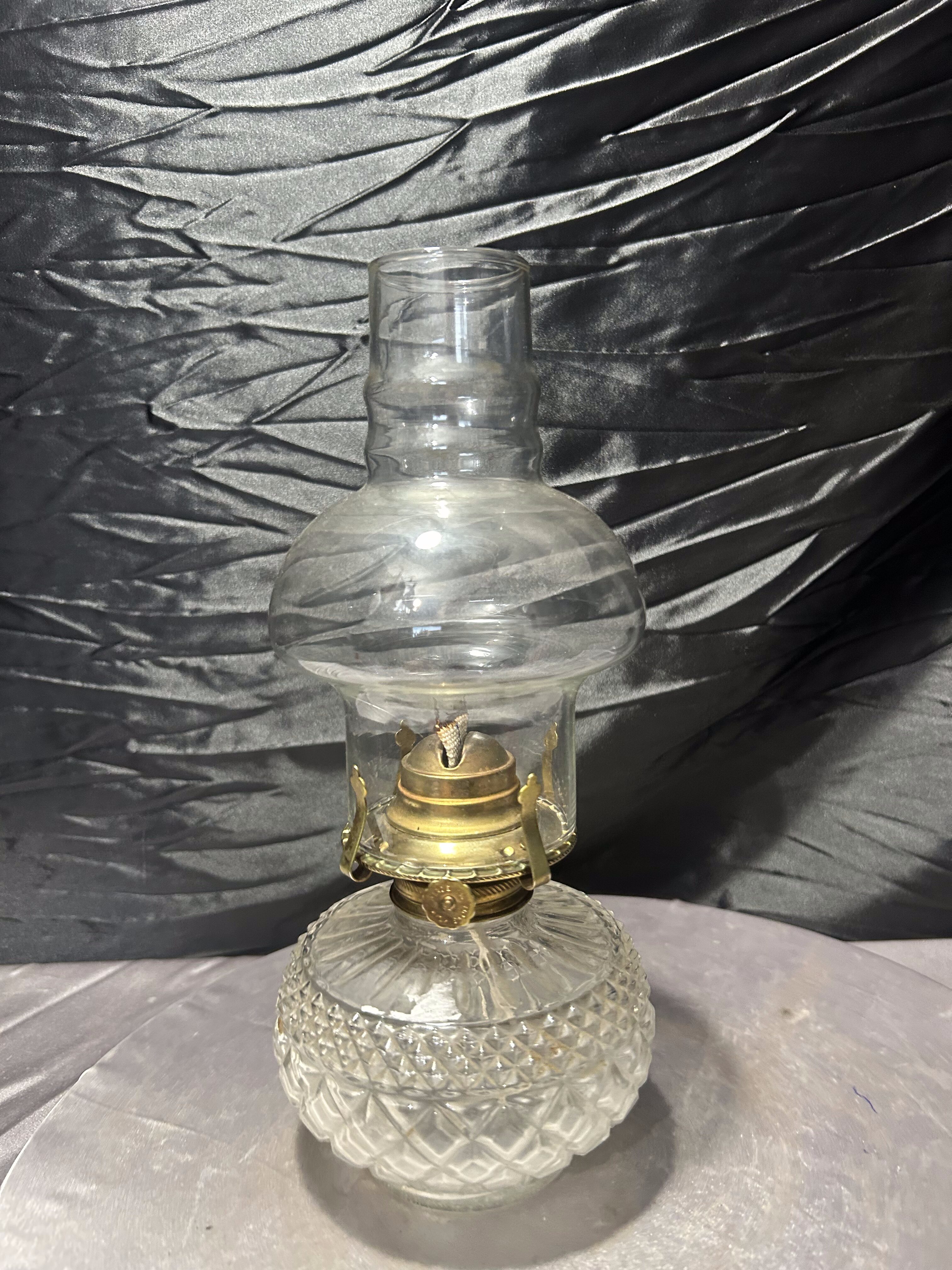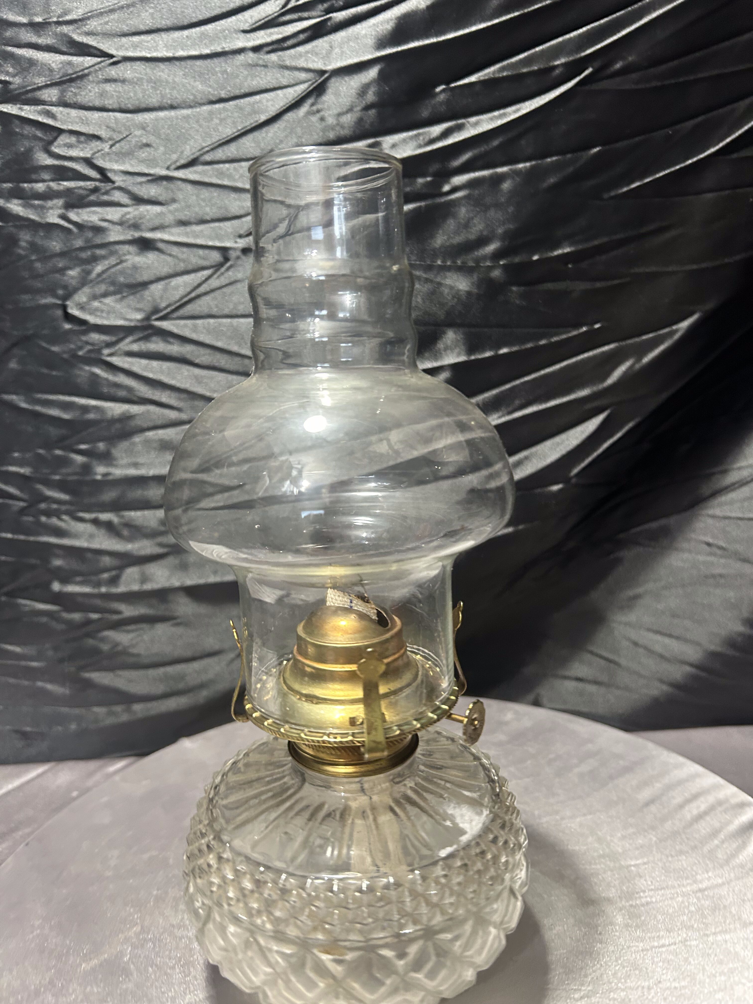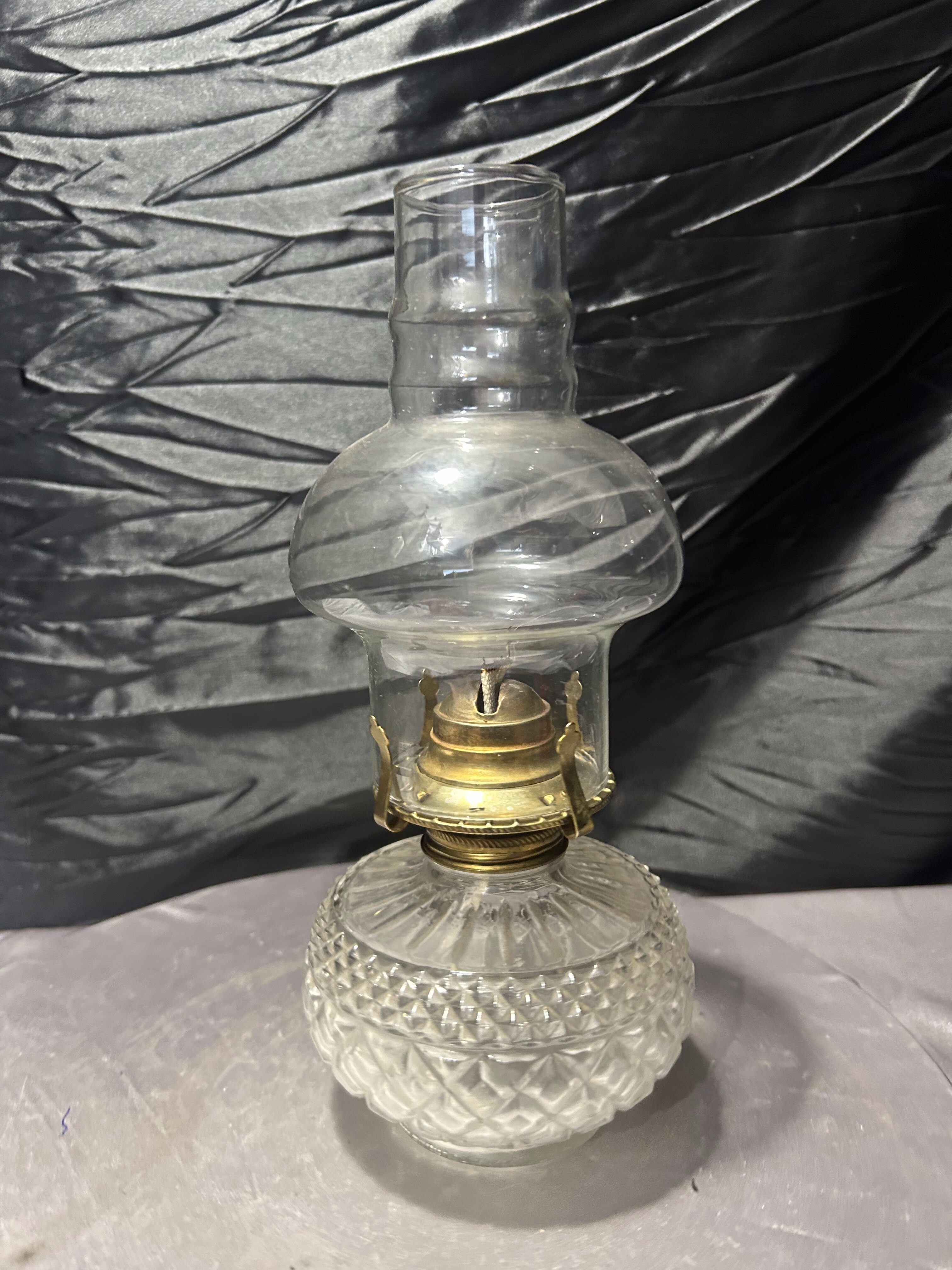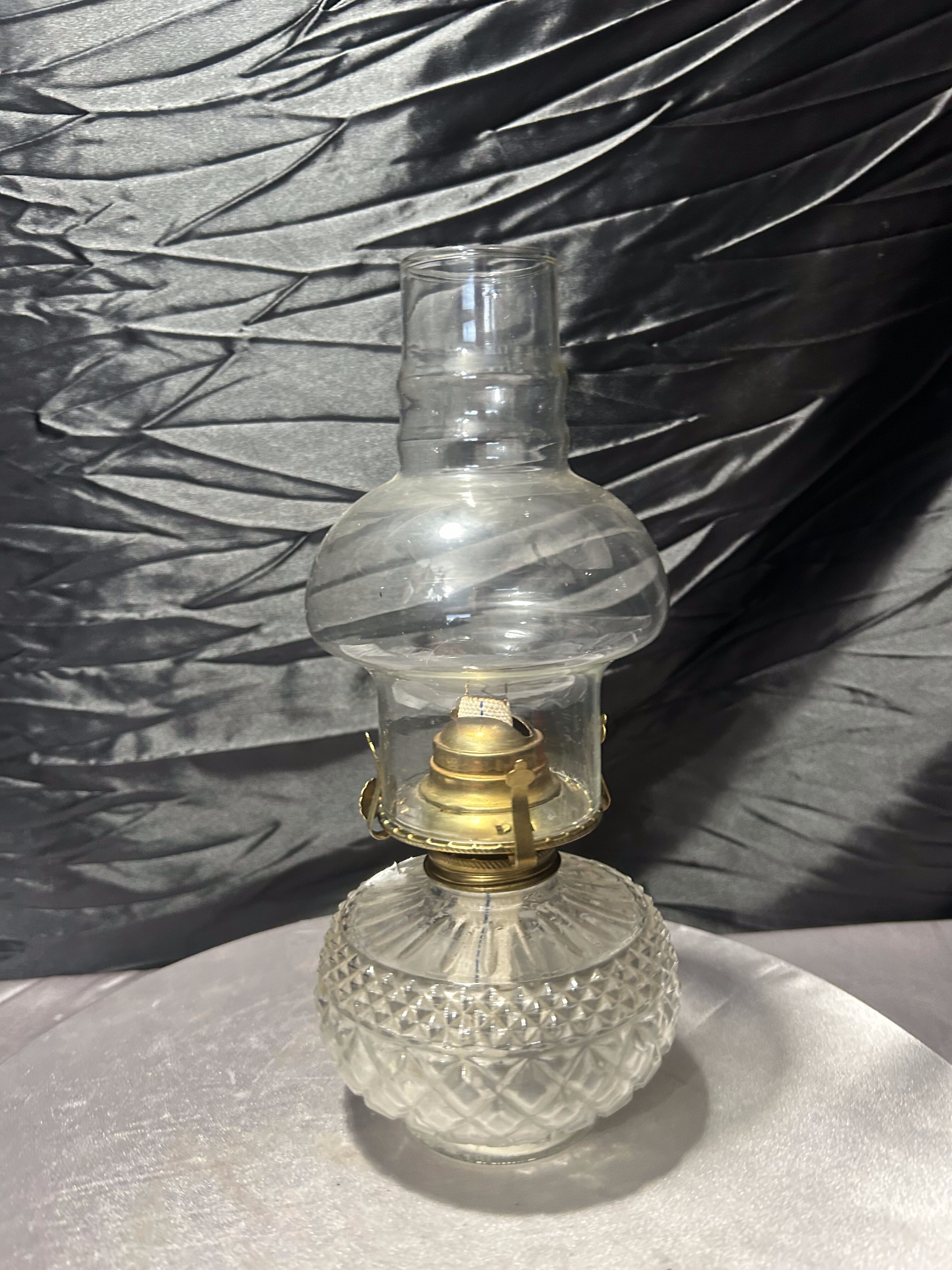 Duża, efektowna lampa naftowa w klasycznej formie, wykonana ze szkła z dekoracyjnie tłoczonym zbiornikiem na naftę. Transparentny klosz oraz elegancka, proporcjonalna sylwetka nadają jej ponadczasowego charakteru.