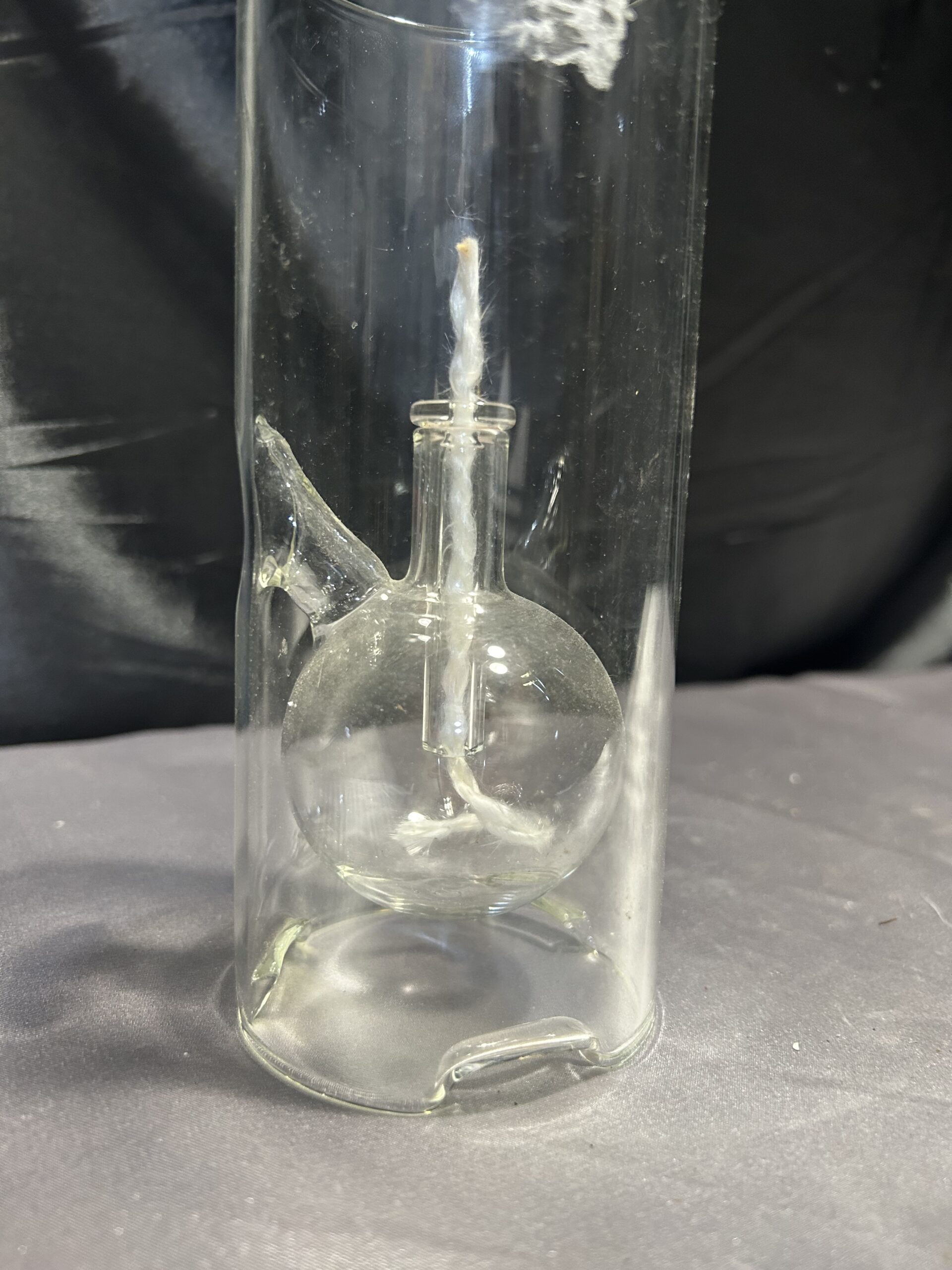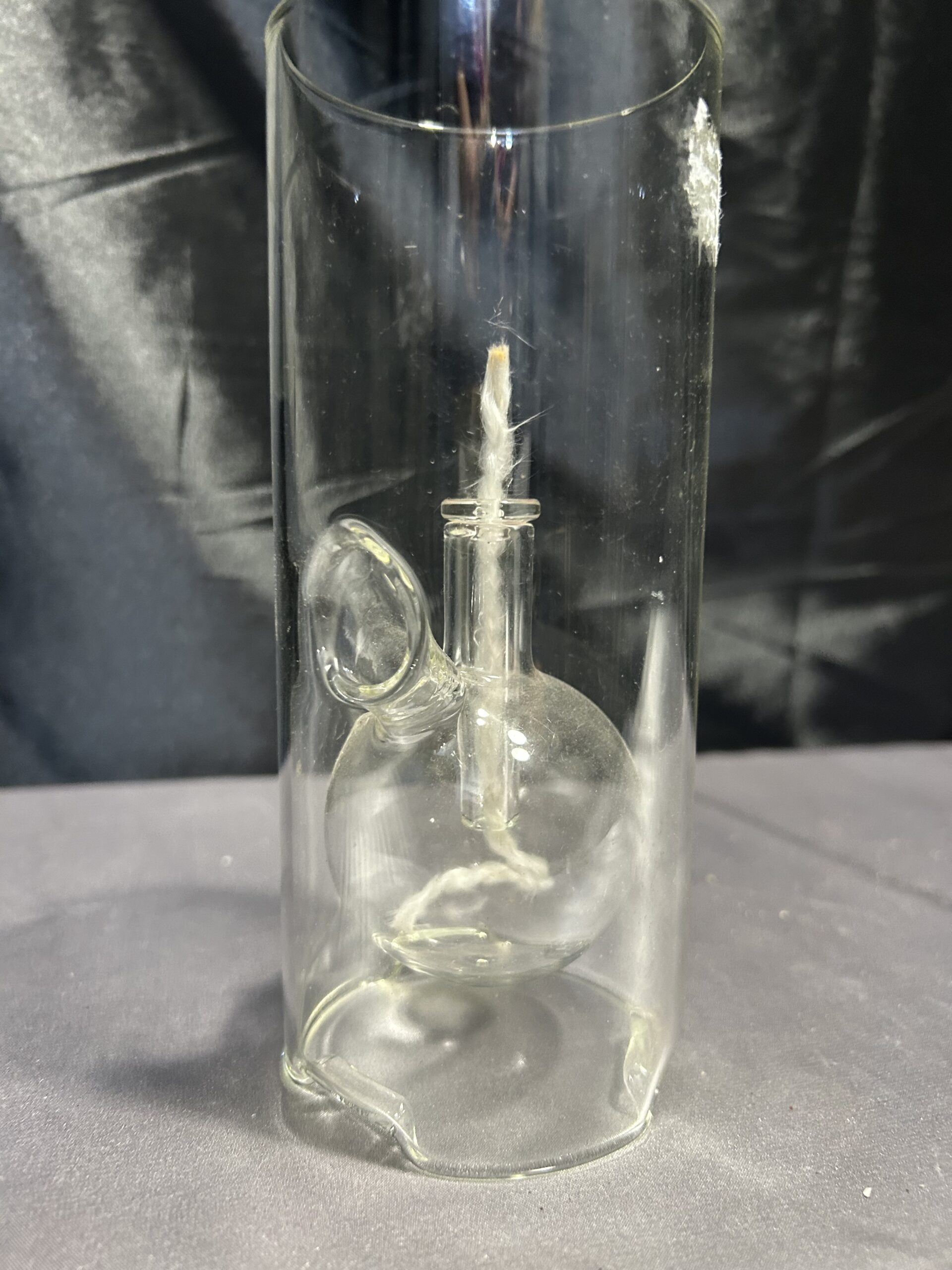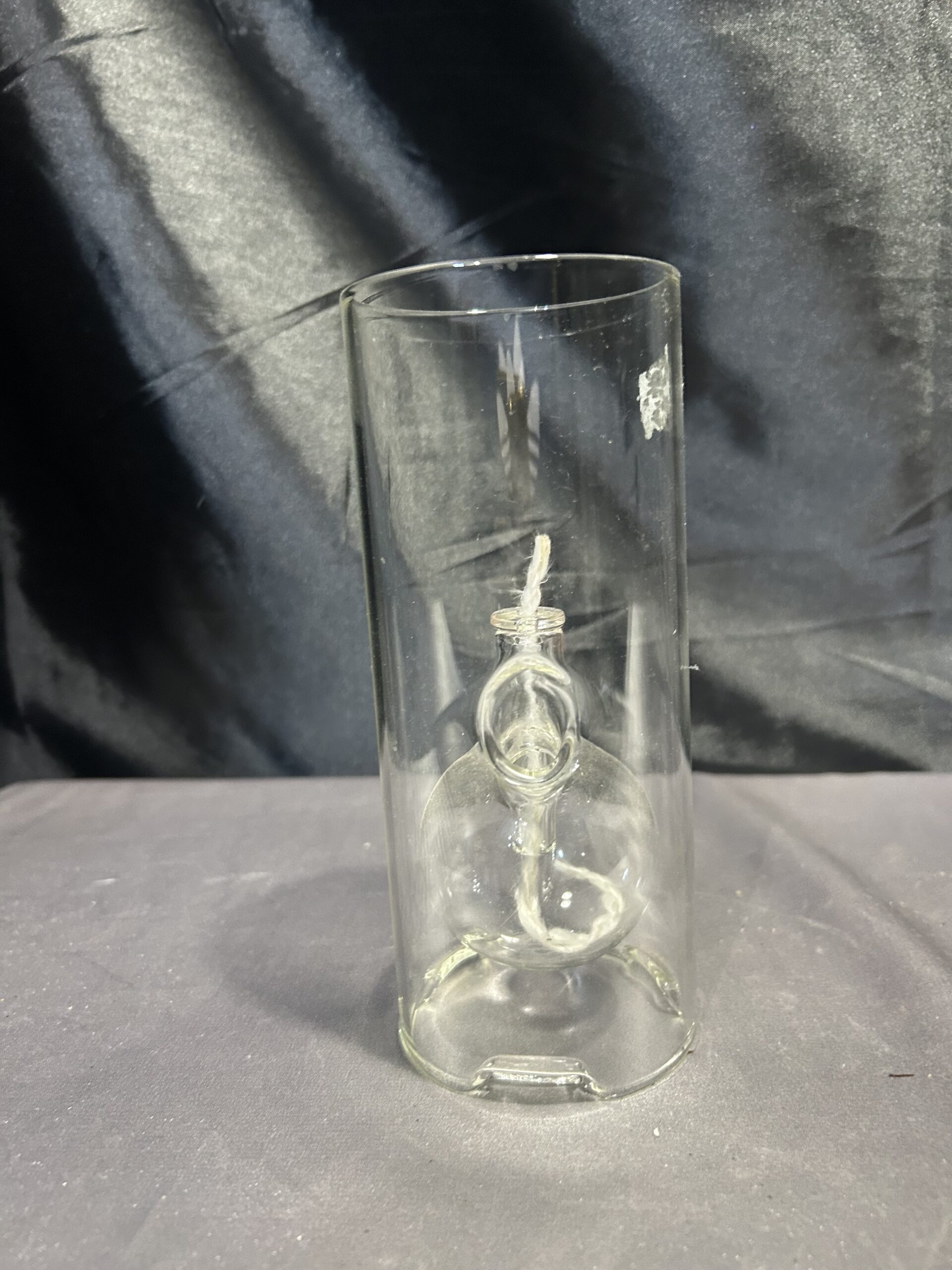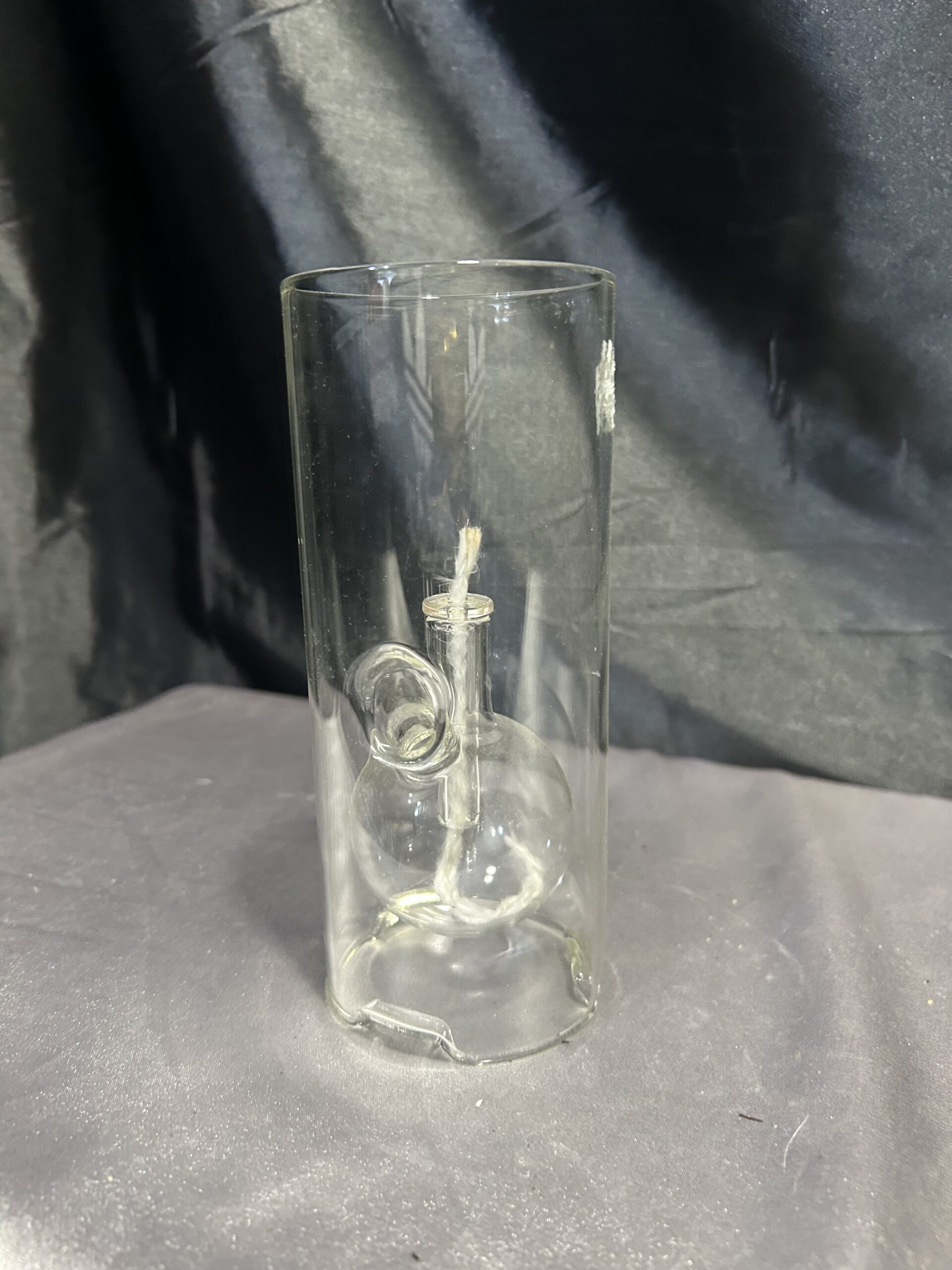 Ta szklana lampa naftowa to wyjątkowy przykład precyzji i elegancji w rzemiośle. Dmuchane szkło i wewnętrzna bańka tworzą niezwykły efekt wizualny. Idealna jako dekoracja na półkę, komodę lub stół, doskonale wpasuje się w aranżacje w stylu retro, minimalistycznym lub skandynawskim. Świetny wybór dla miłośników unikalnych przedmiotów z duszą.