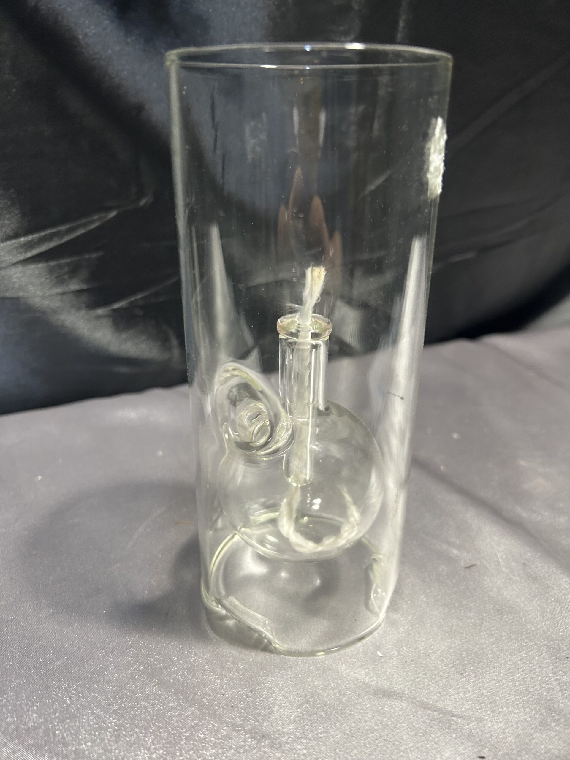 Elegancka lampa naftowa wykonana z dmuchanego szkła, z unikalnym elementem w postaci szklanej bańki wewnątrz. Piękny i niepowtarzalny design sprawia, że jest to wyjątkowy dodatek dekoracyjny, który wprowadzi subtelny akcent do każdego wnętrza.